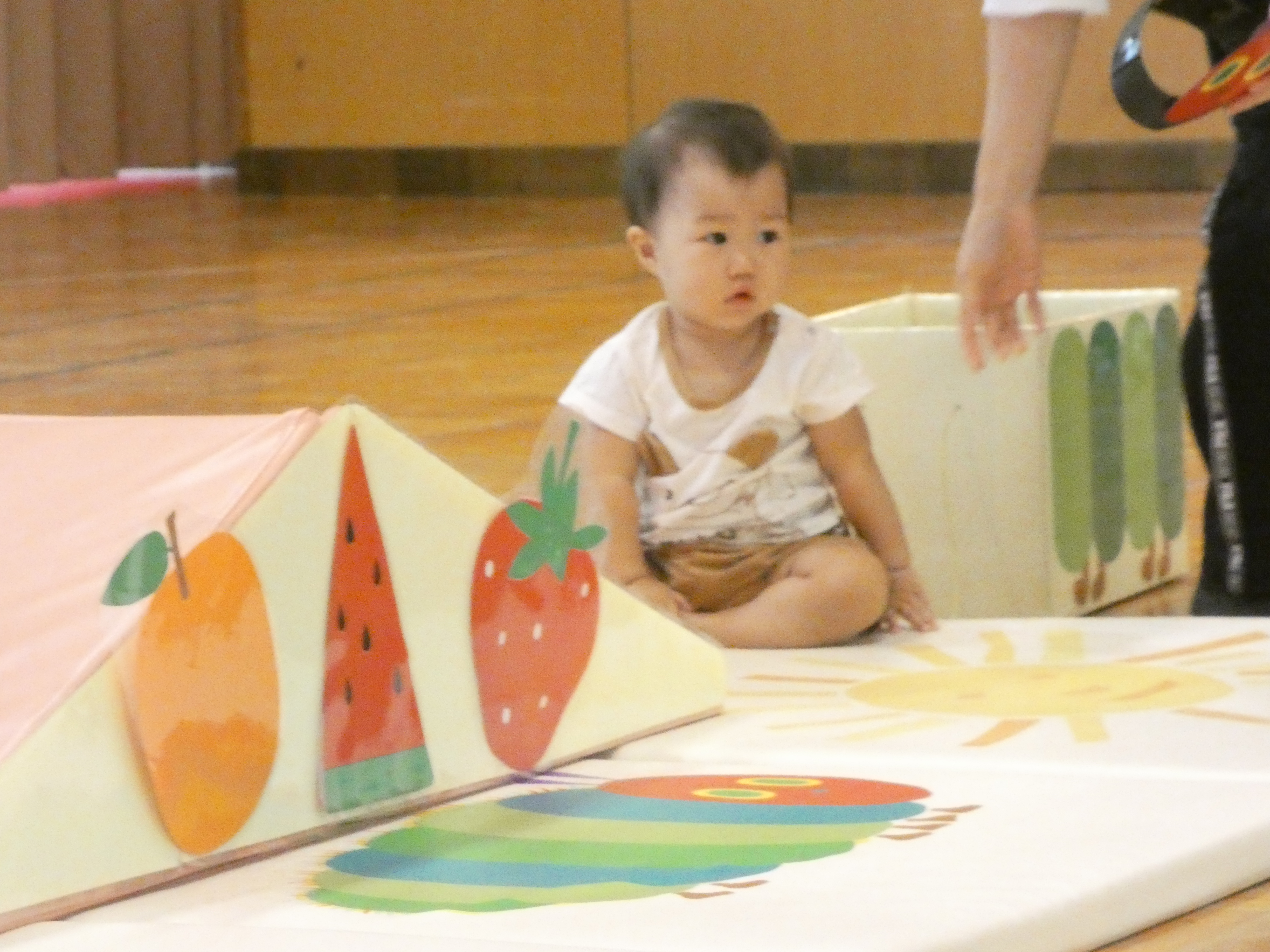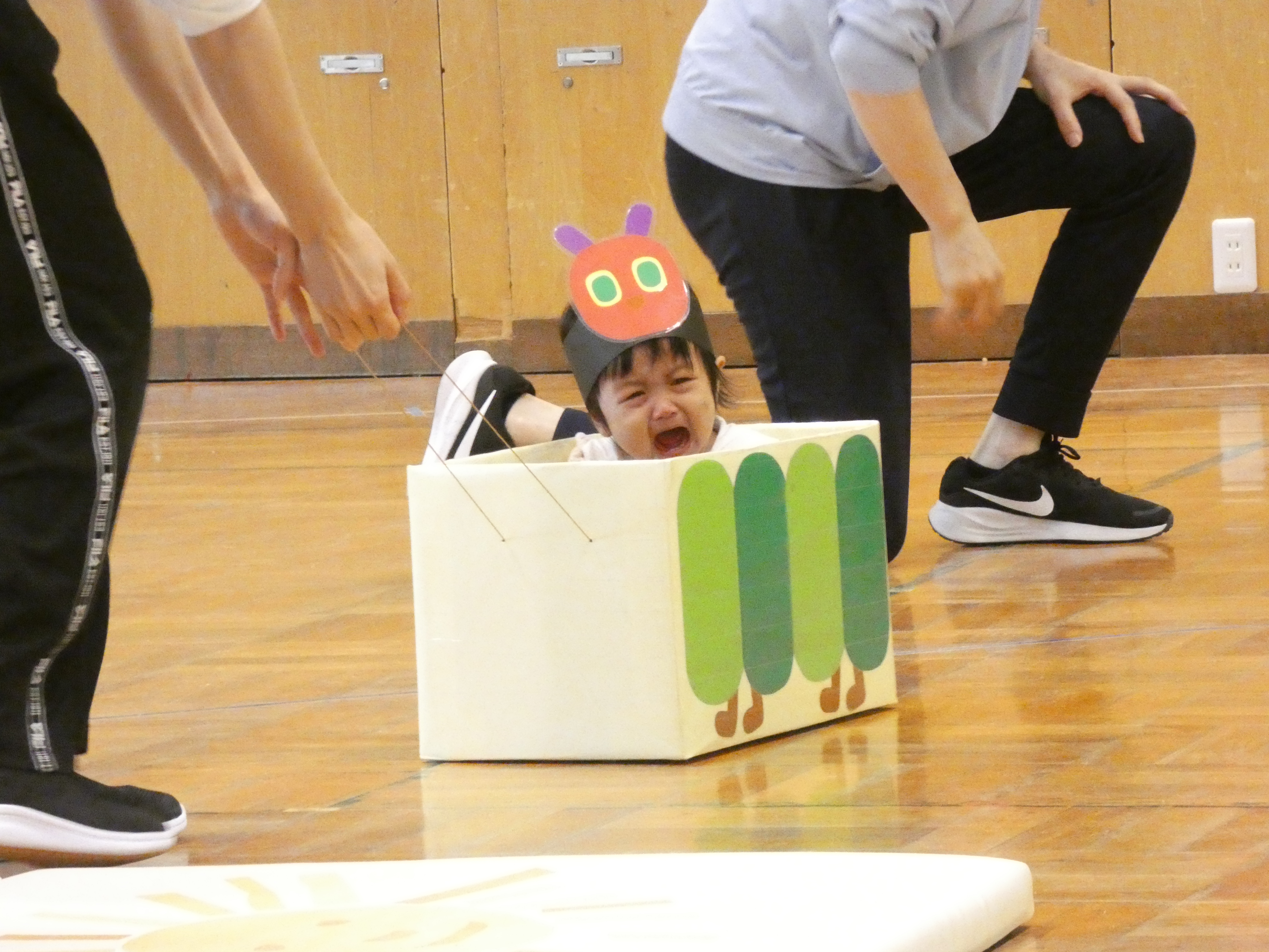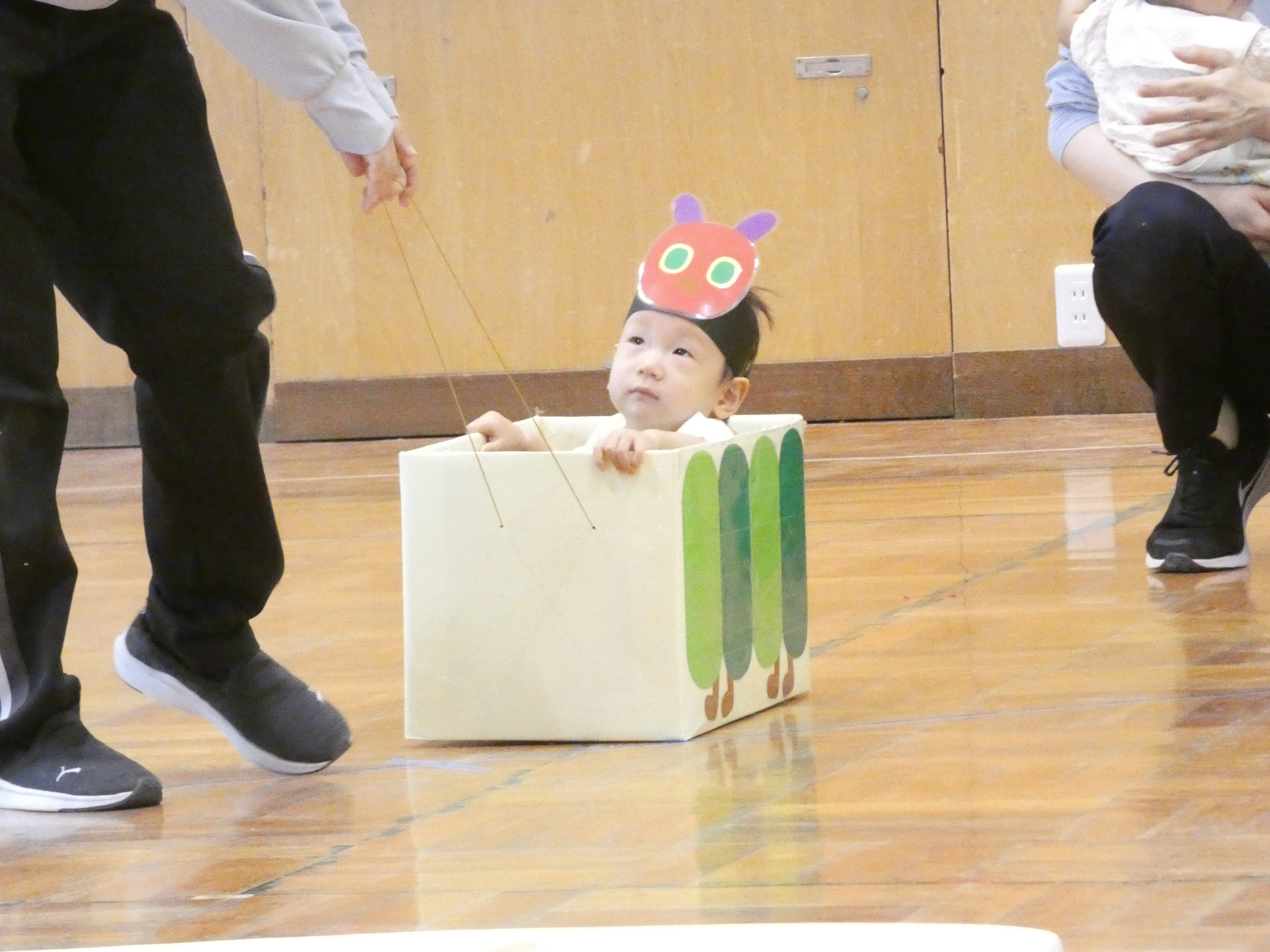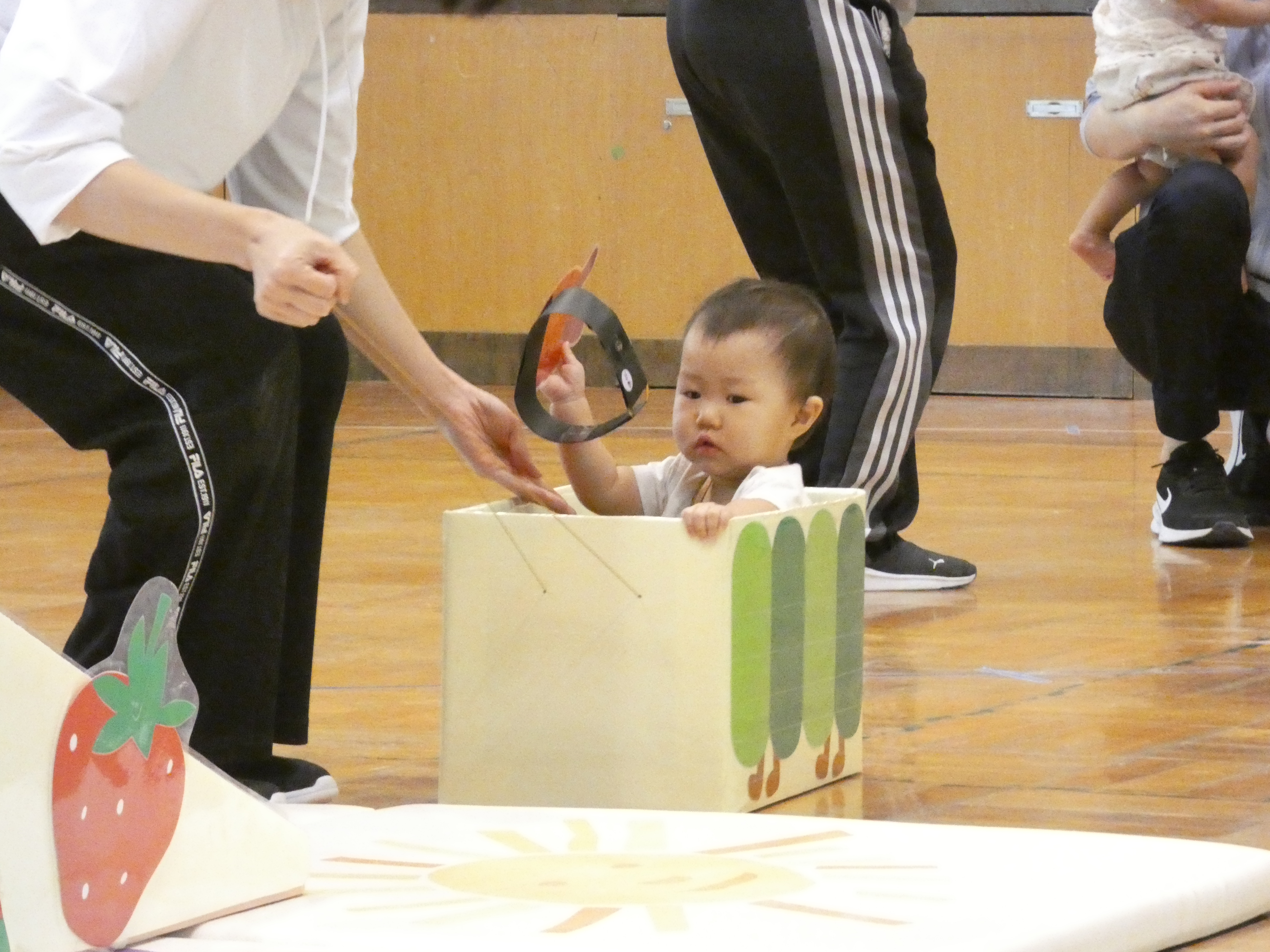 本番はパパやママと一緒に競技をしてもらいます。まずは、ほし組さんから。緊張のあまりお眠になってしまったお友だちも・・・。