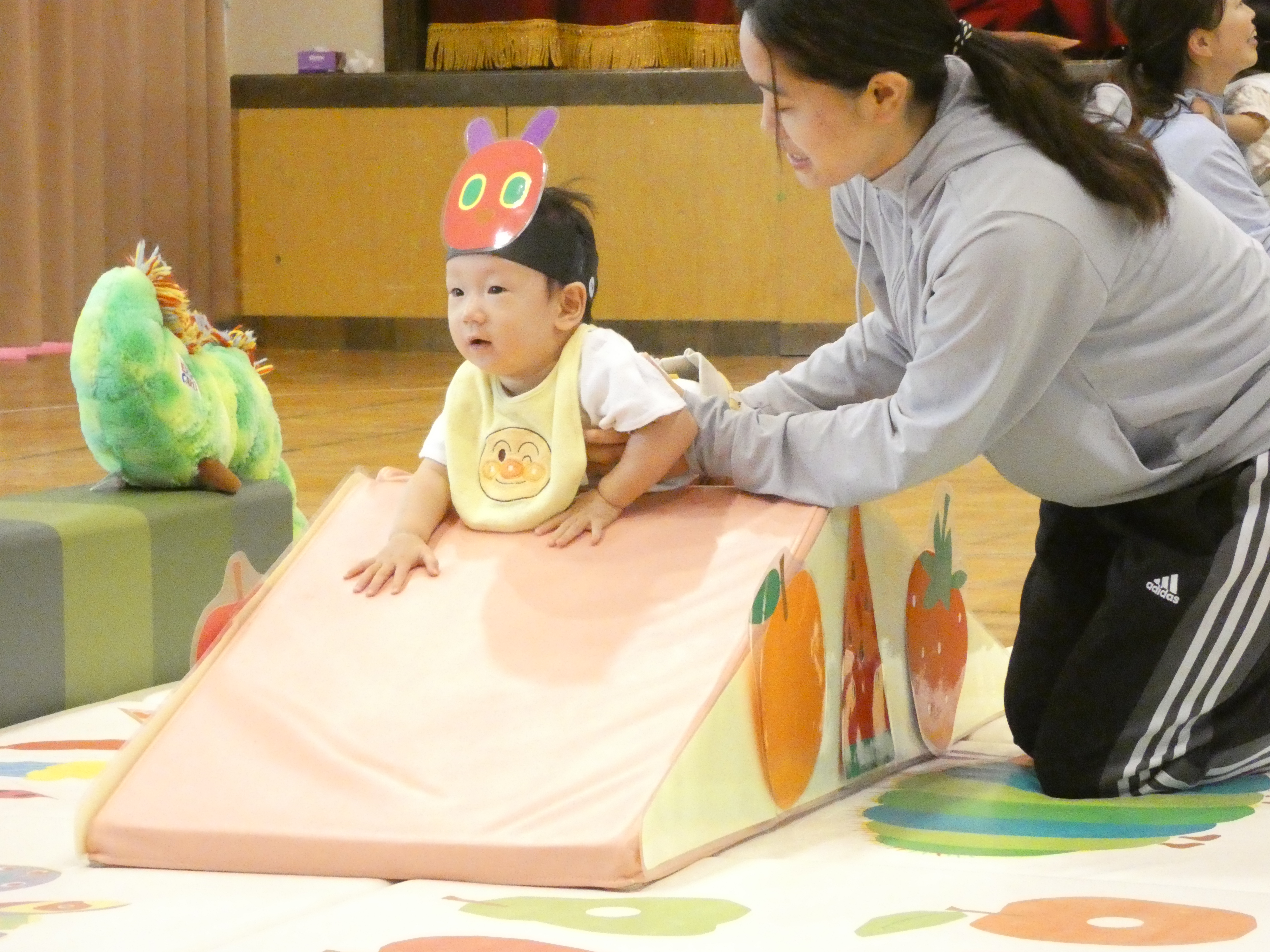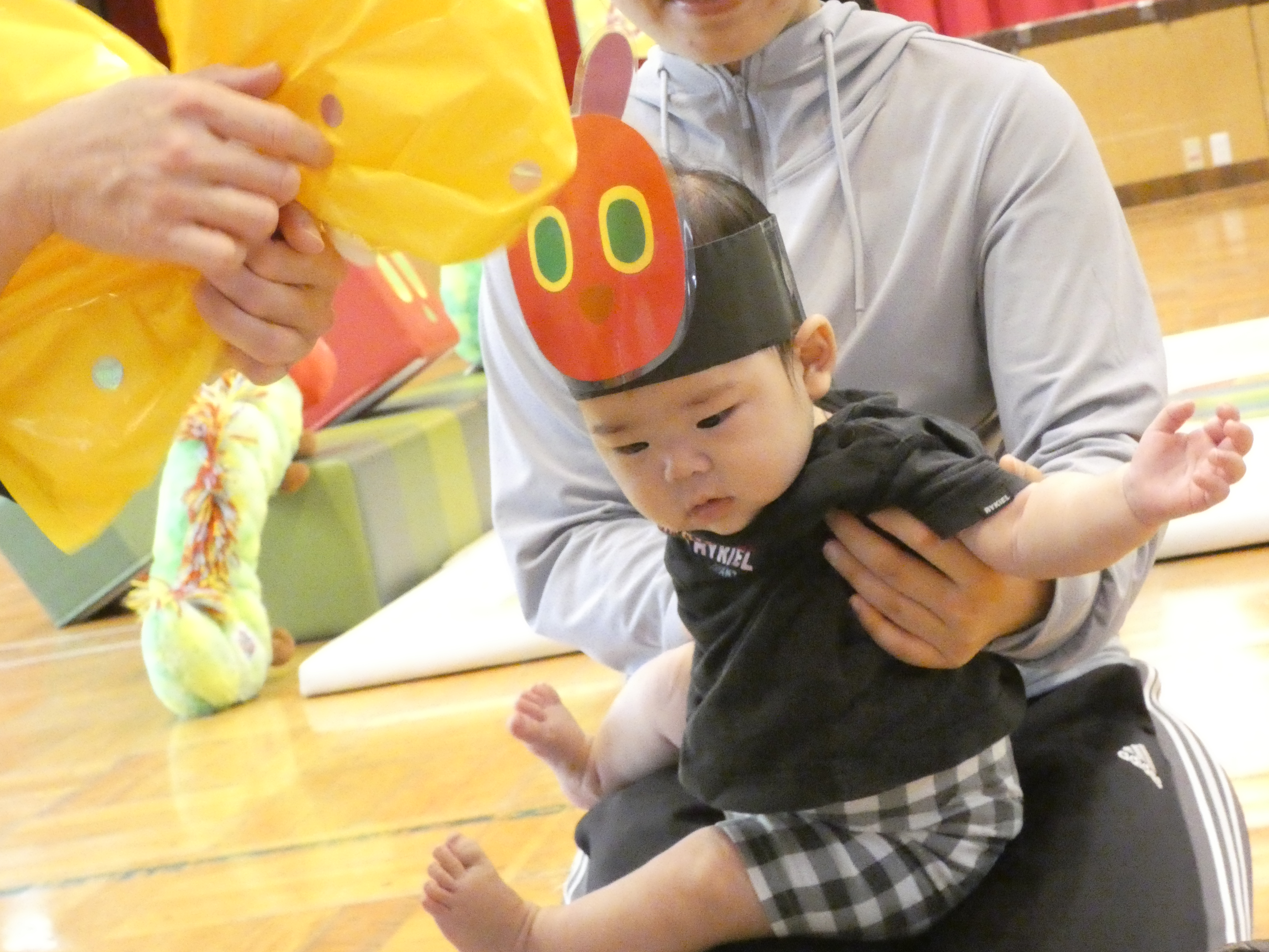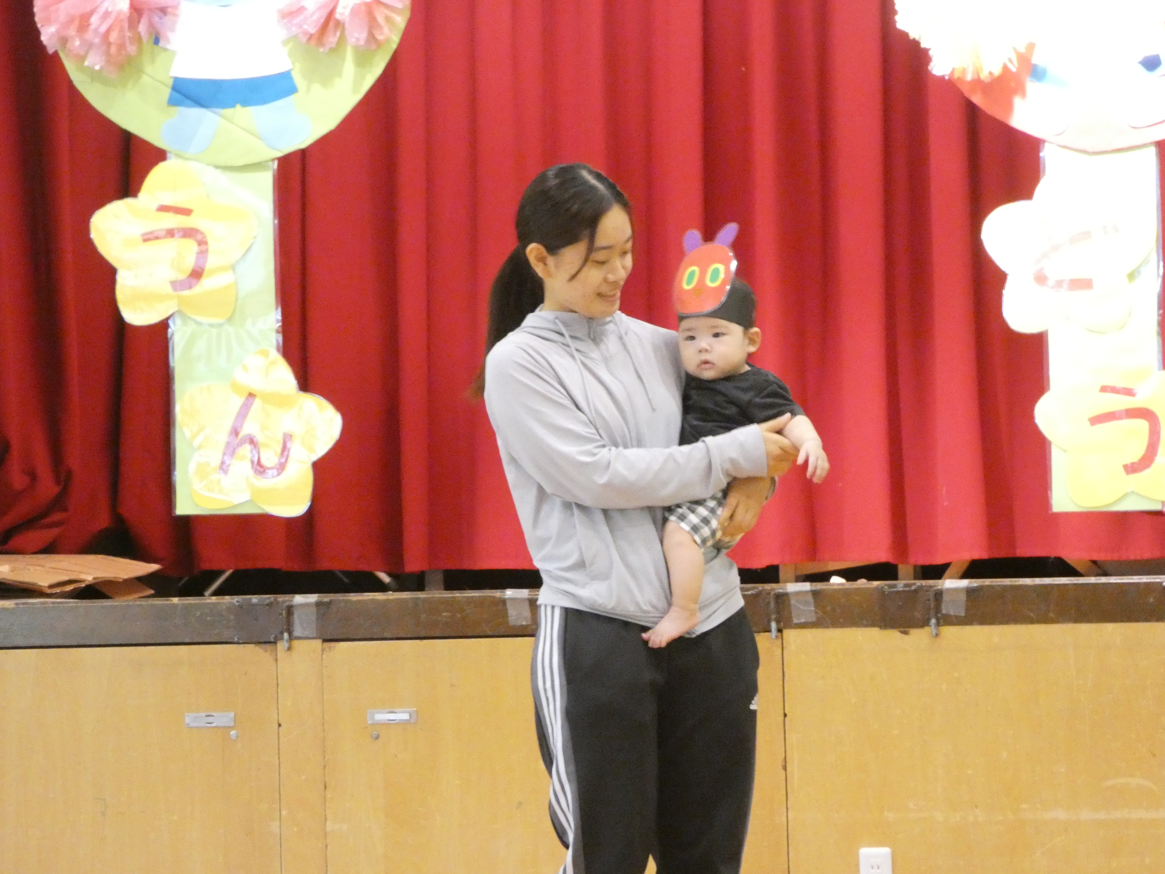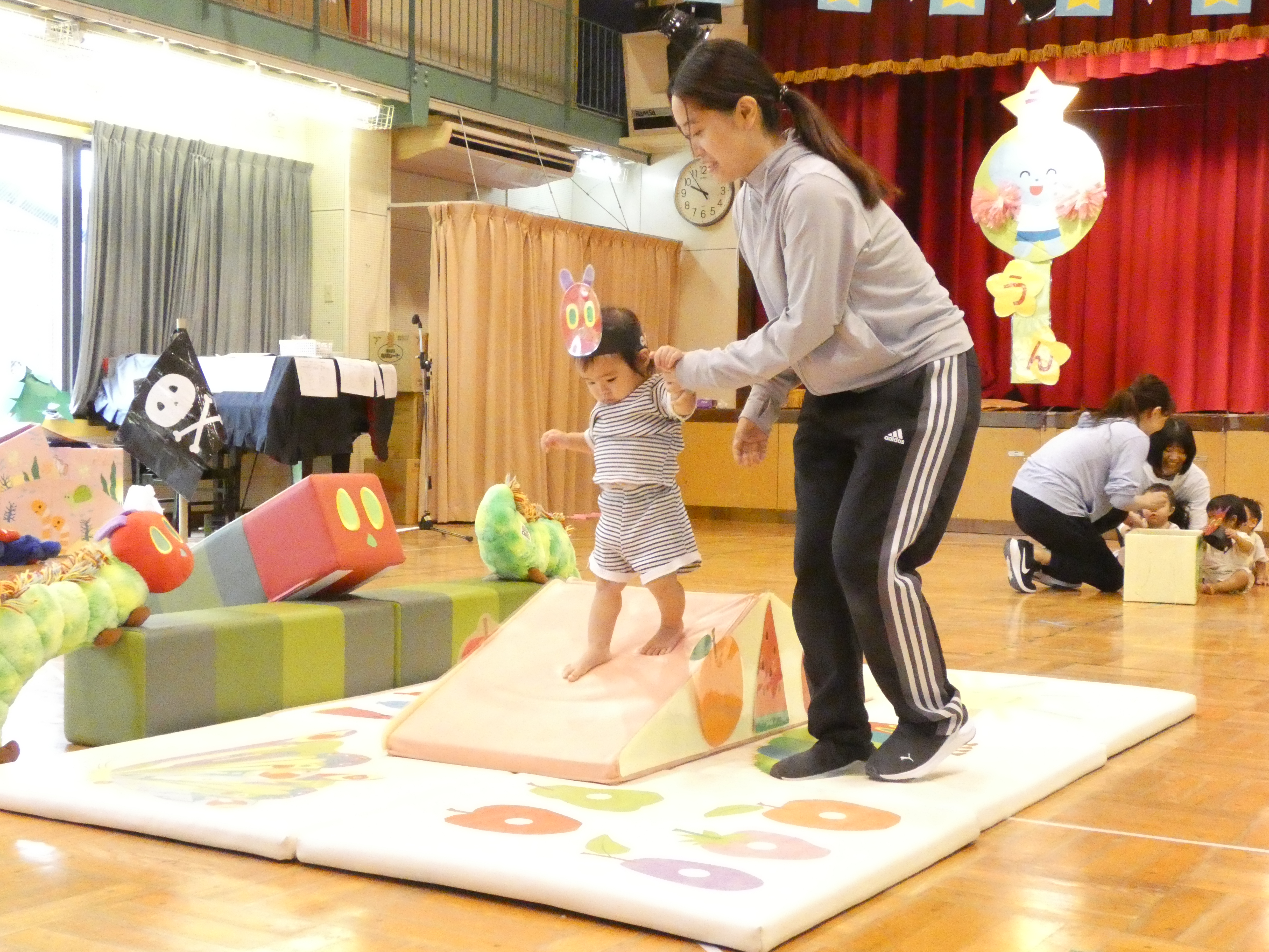 本番はパパやママと一緒に競技をしてもらいます。まずは、ほし組さんから。緊張のあまりお眠になってしまったお友だちも・・・。