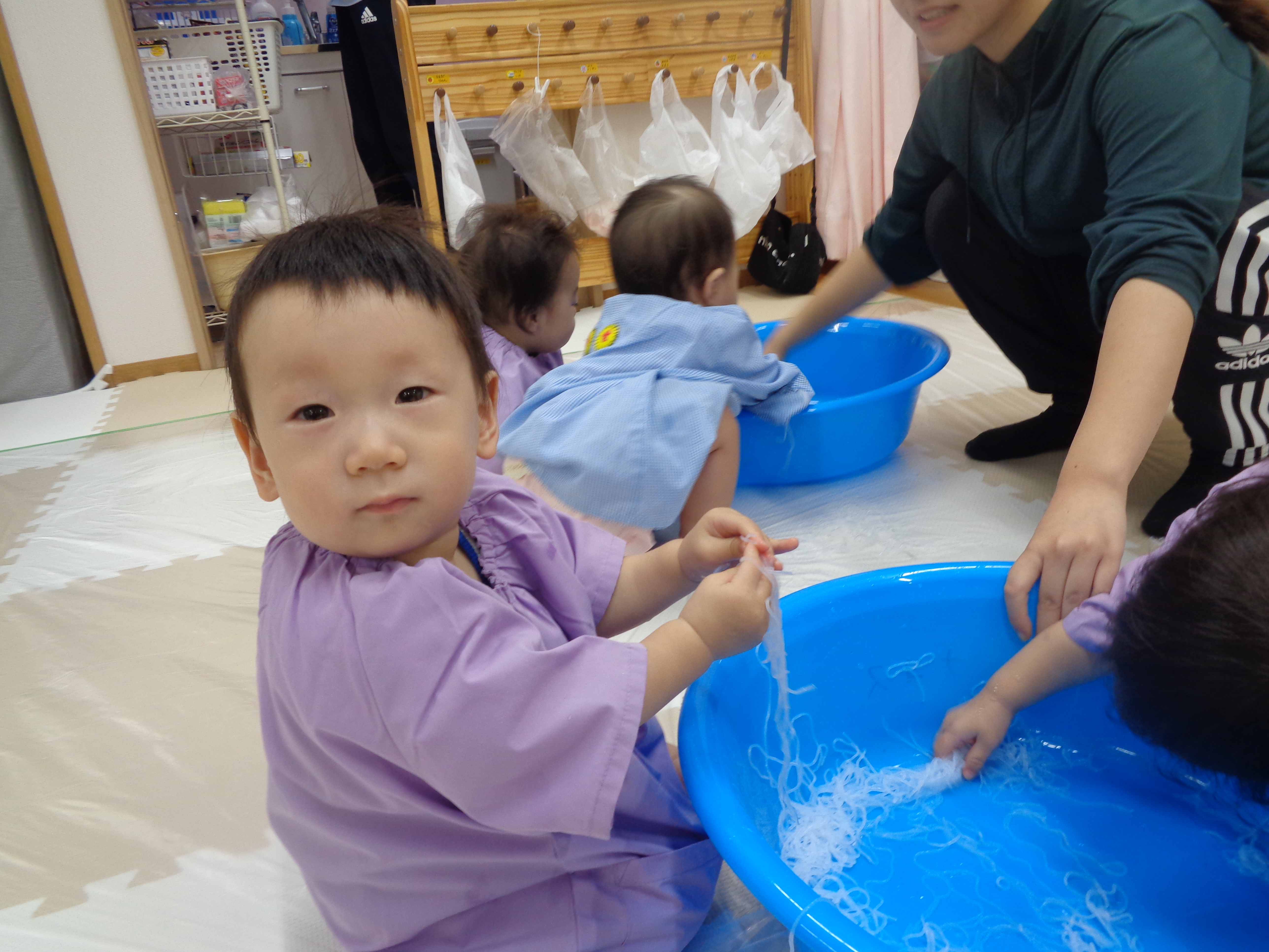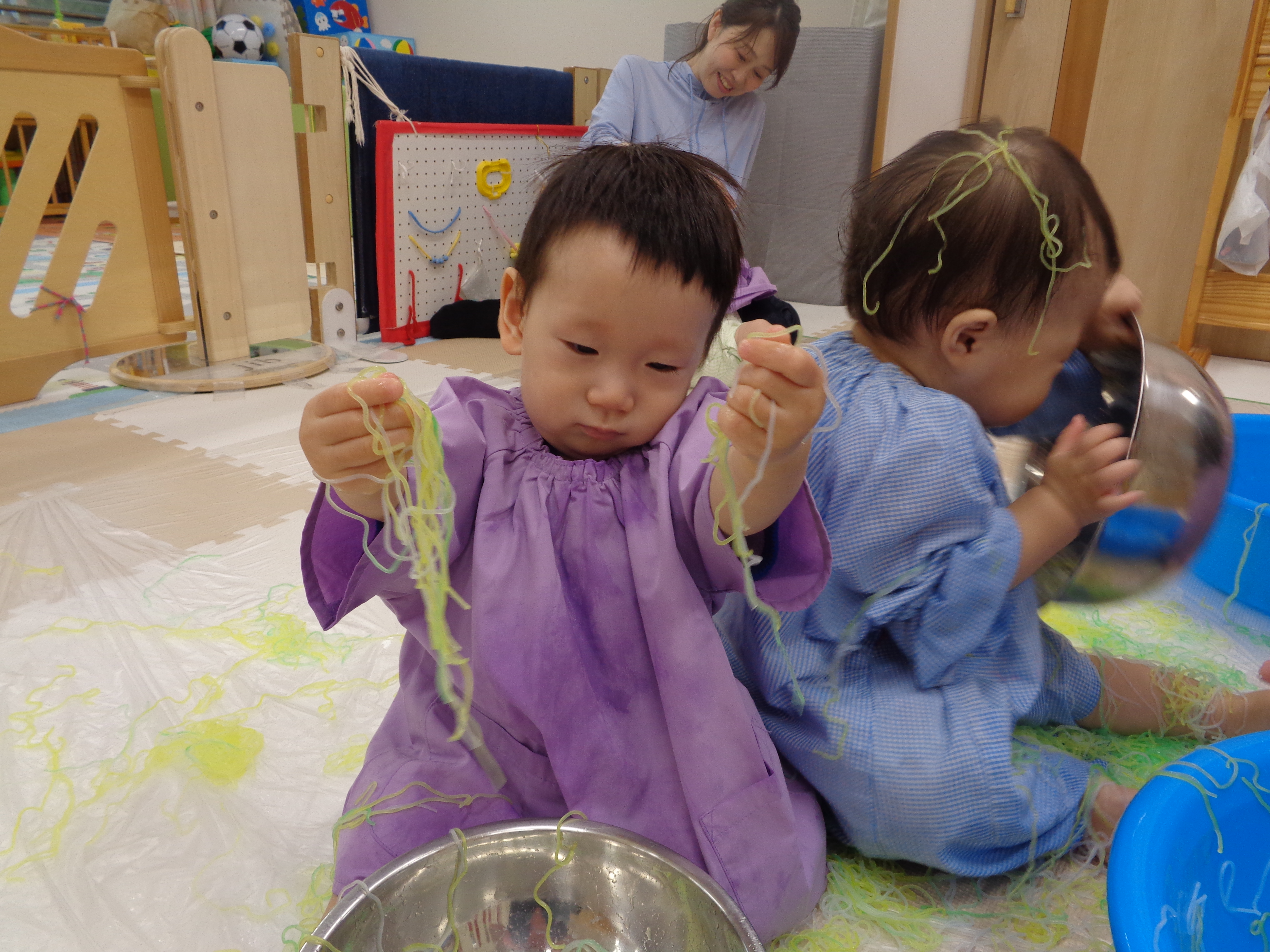 つるつるで長いはるさめをみんなにぎにぎ♪
