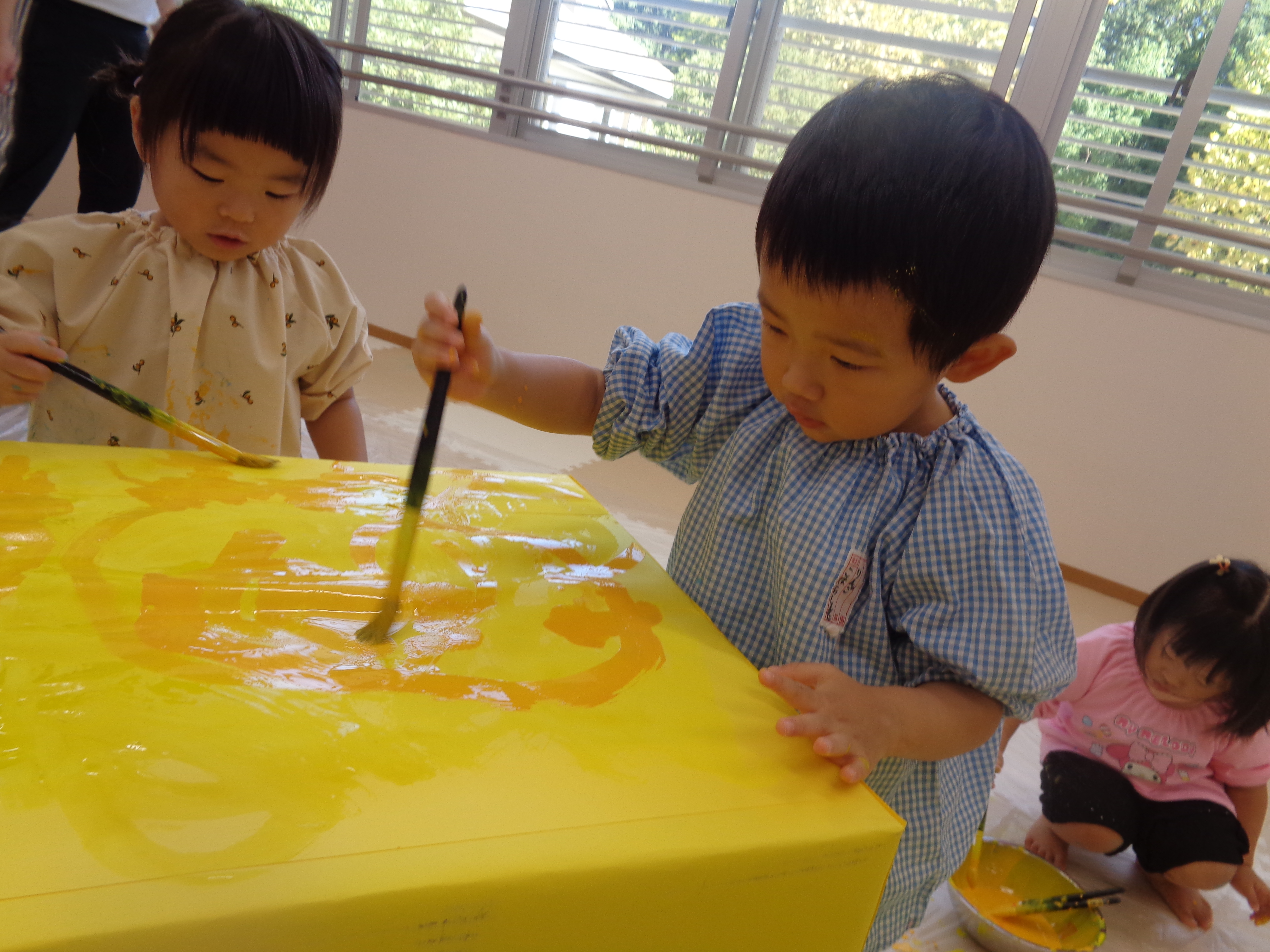 17 10月 2025 美木多 幼稚園 美木多チコスブログ 2025年10月17日 美木多 幼稚園 共同制作(そら組) そら組も共同制作を行いました。 筆で色付けです。 みんな楽しみながらもしっかり考えて塗りこんでくれました。