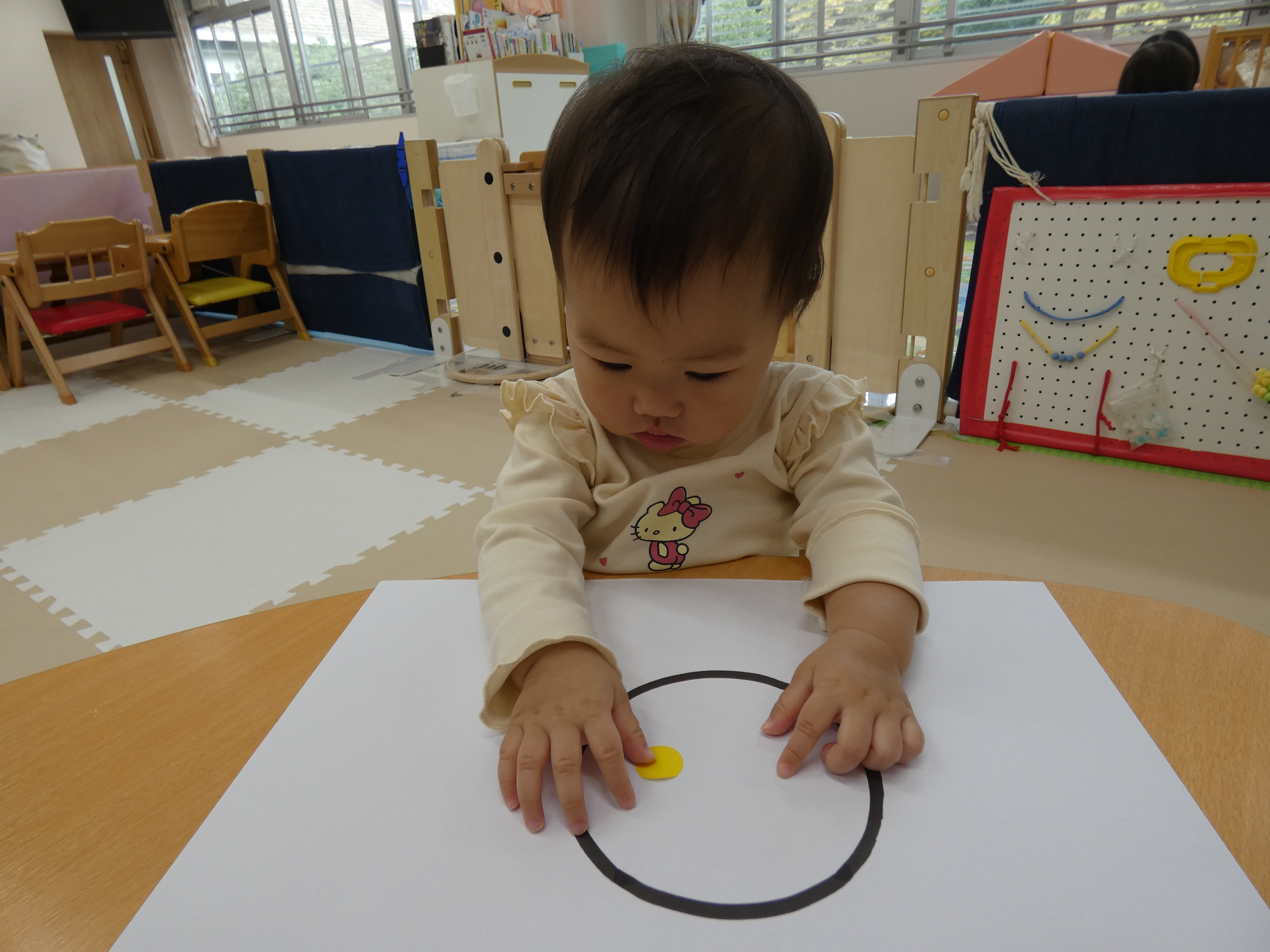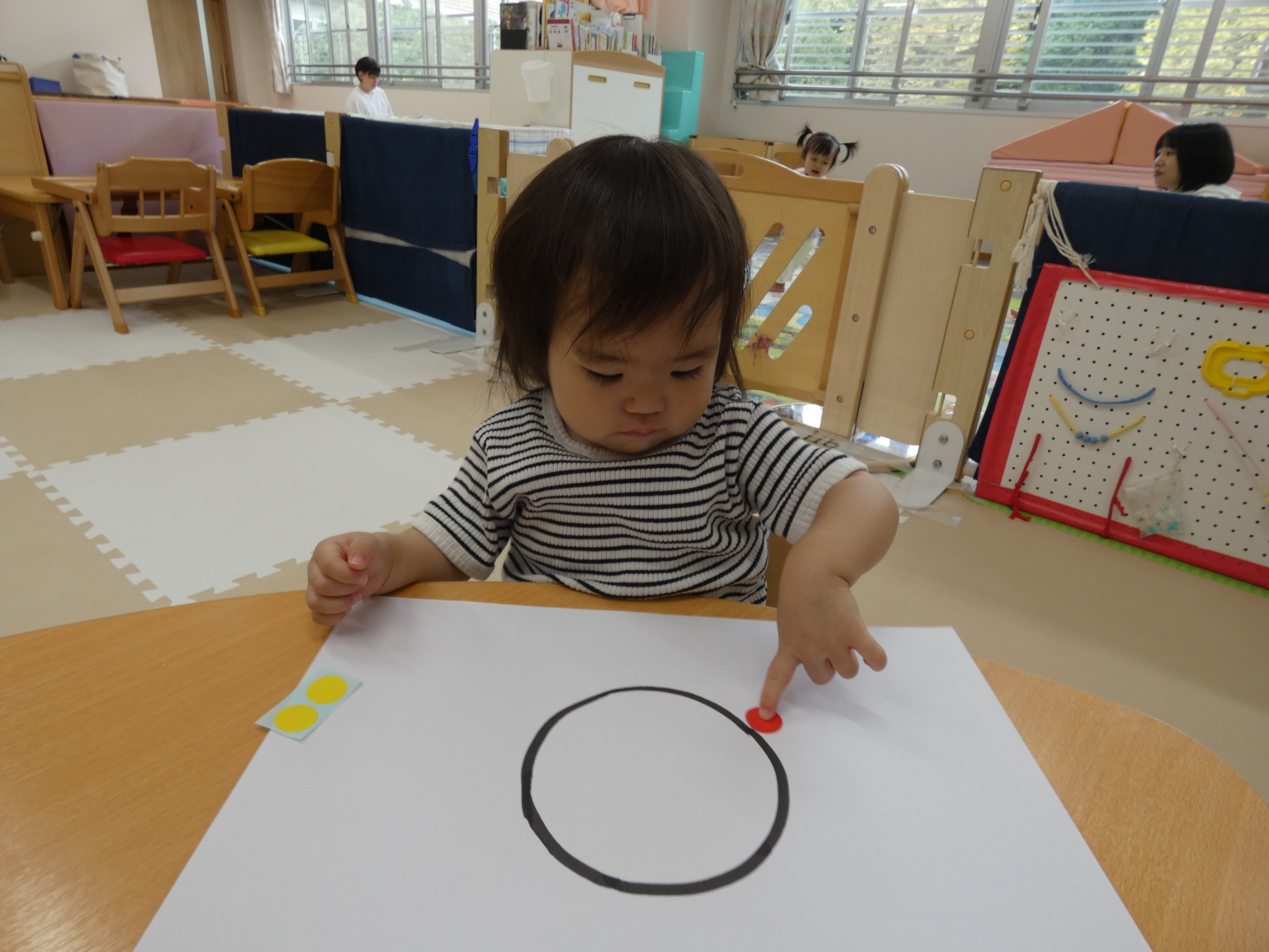 20 10月 2025 美木多 幼稚園 美木多チコスブログ 2025年10月20日 美木多 幼稚園 シールぺったん(ほし組) シールを貼るのにも少しずつ慣れてきました。画用紙にまん丸が描かれているものにシールを貼りました。これはなんだろう?と触って確かめているお友だちもいますね♪