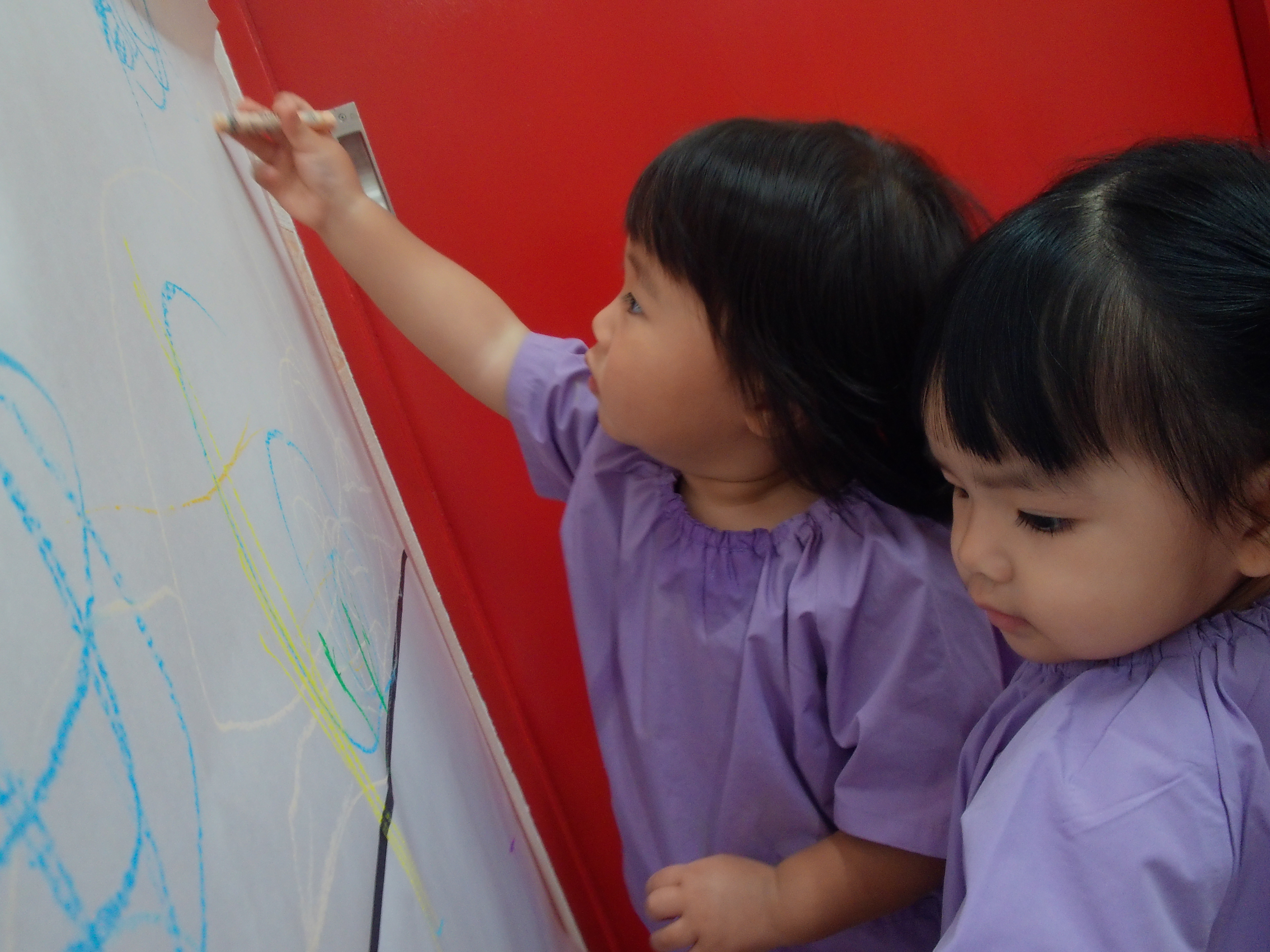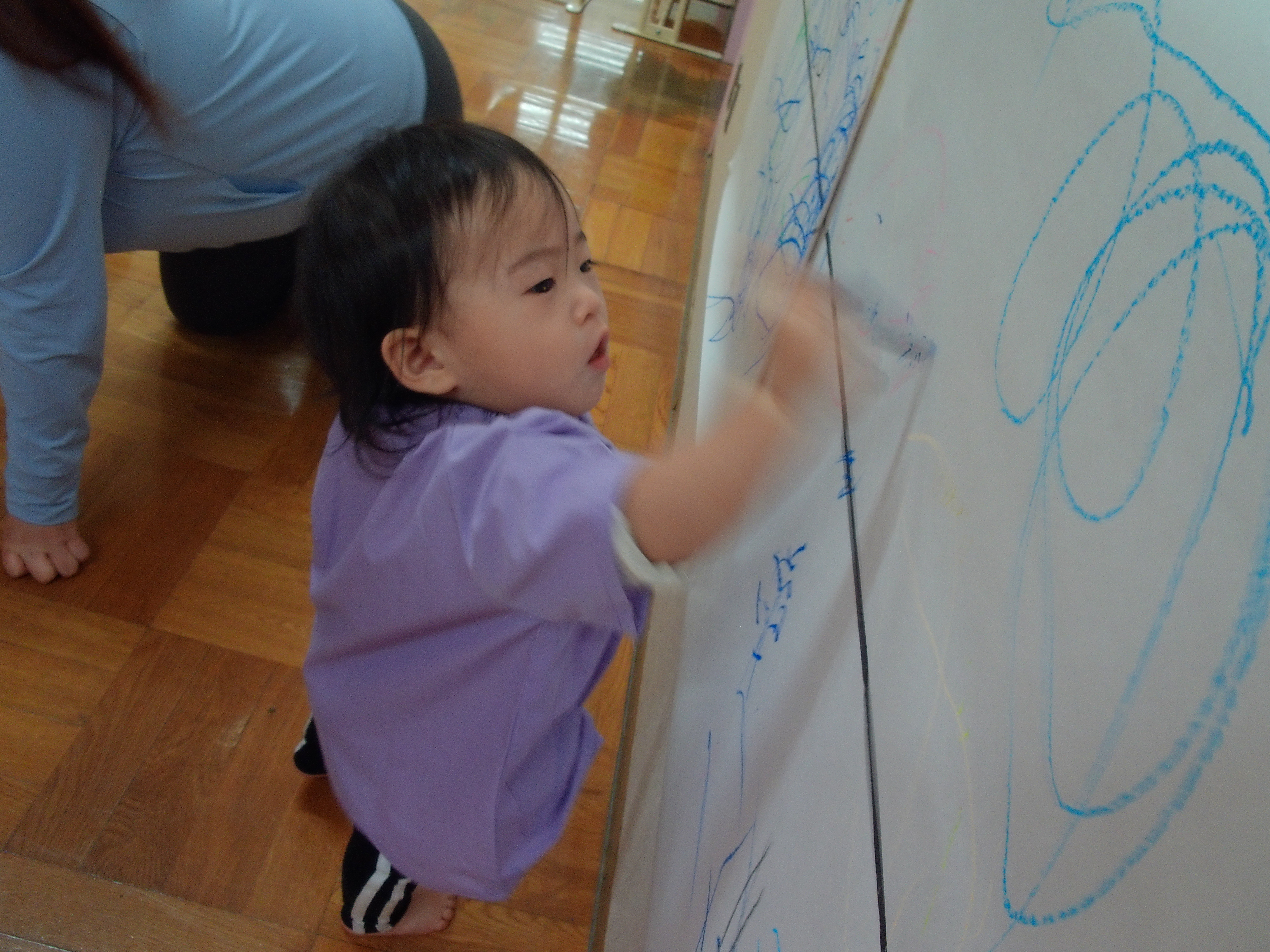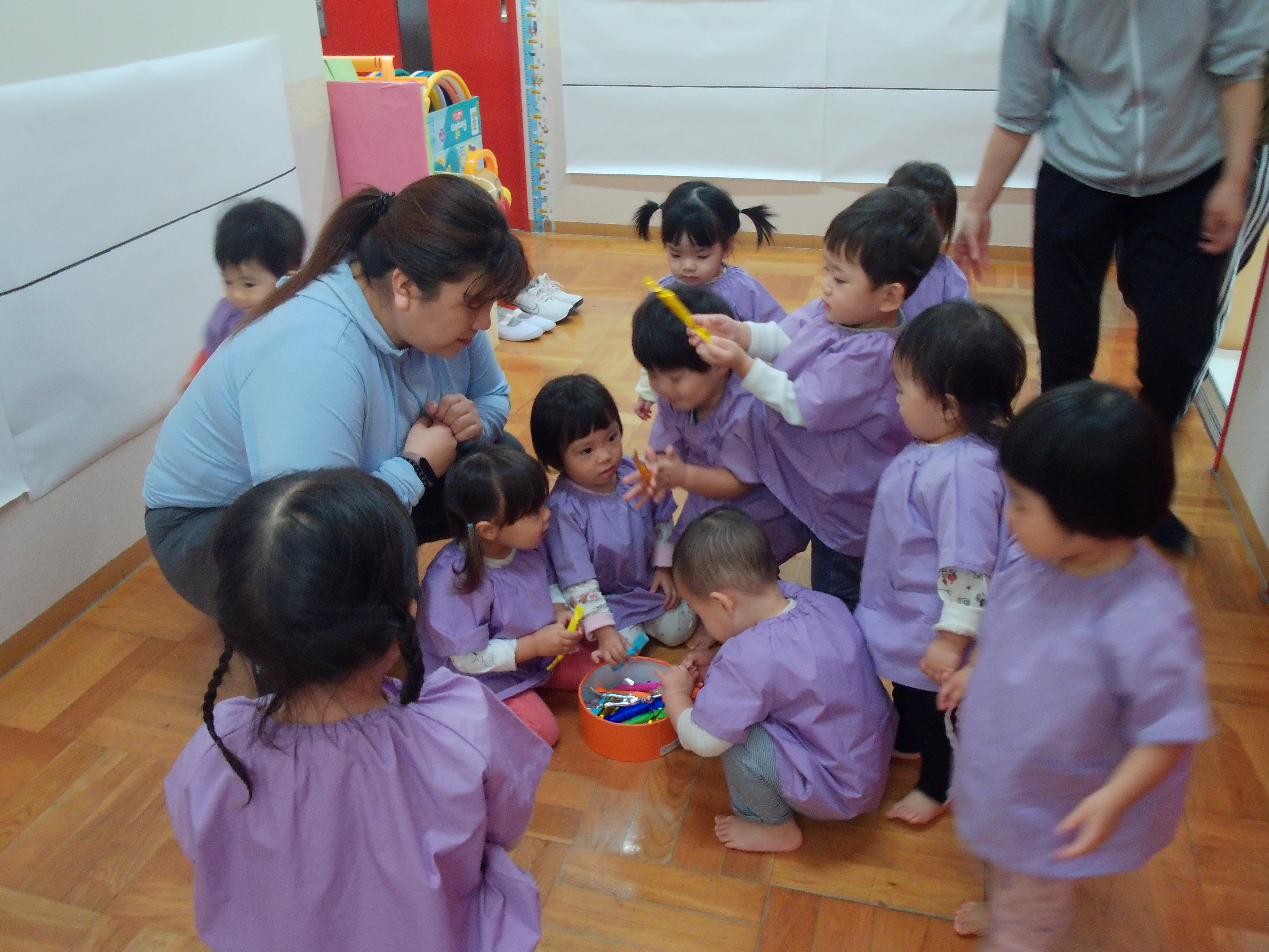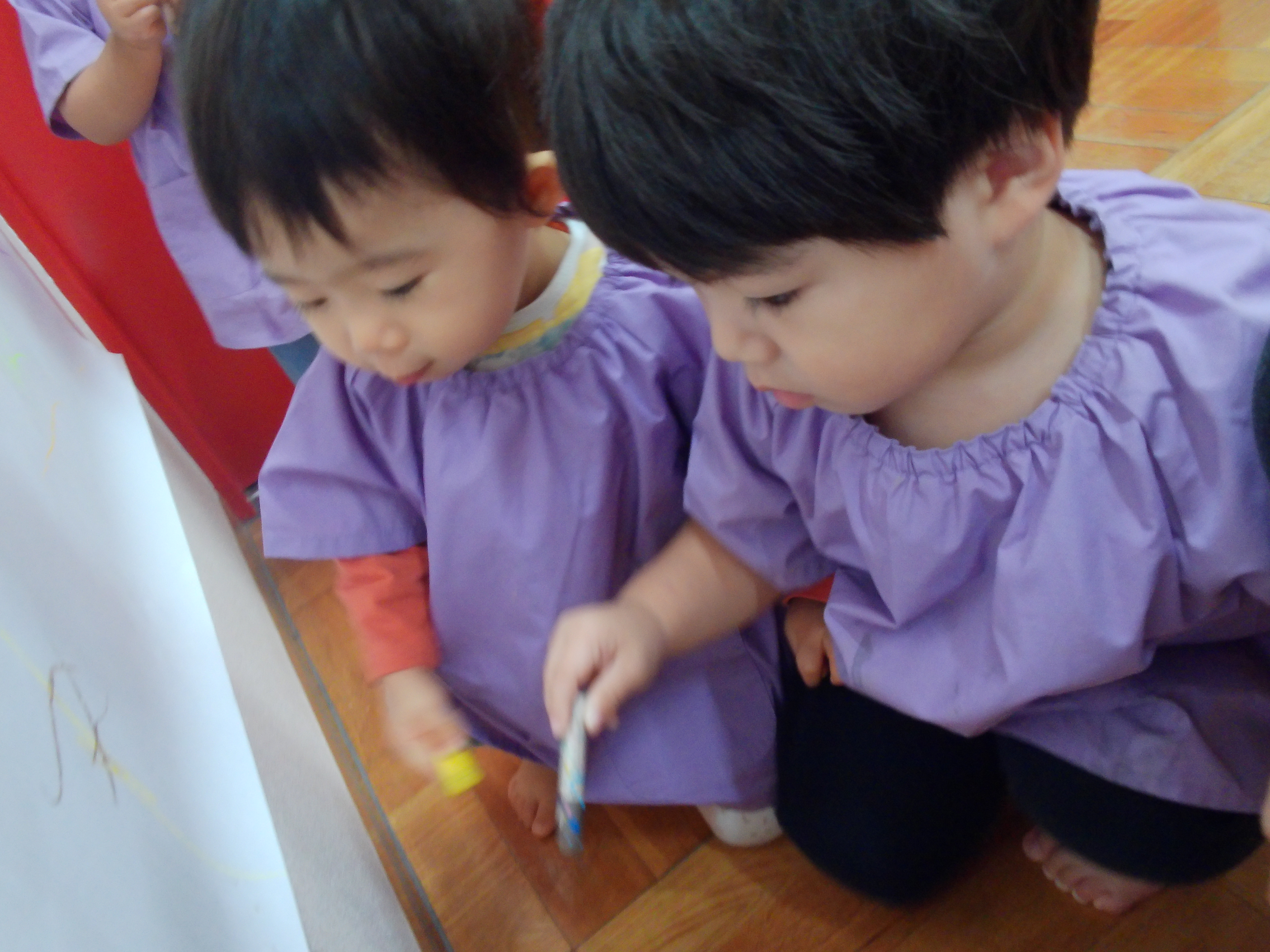 21 10月 2025 美木多 幼稚園 美木多チコスブログ 2025年10月21日 美木多 幼稚園 大きなキャンバス(つき組) 廊下に出てみると、大きなキャンバスとプレゼントがありましたよ。クレヨンのプレゼントをもらったみんなは大きなキャンバスに絵をたくさん描きました。 みんなの元気いっぱいの絵で壁いっぱいになり、とてもかわいかったです。