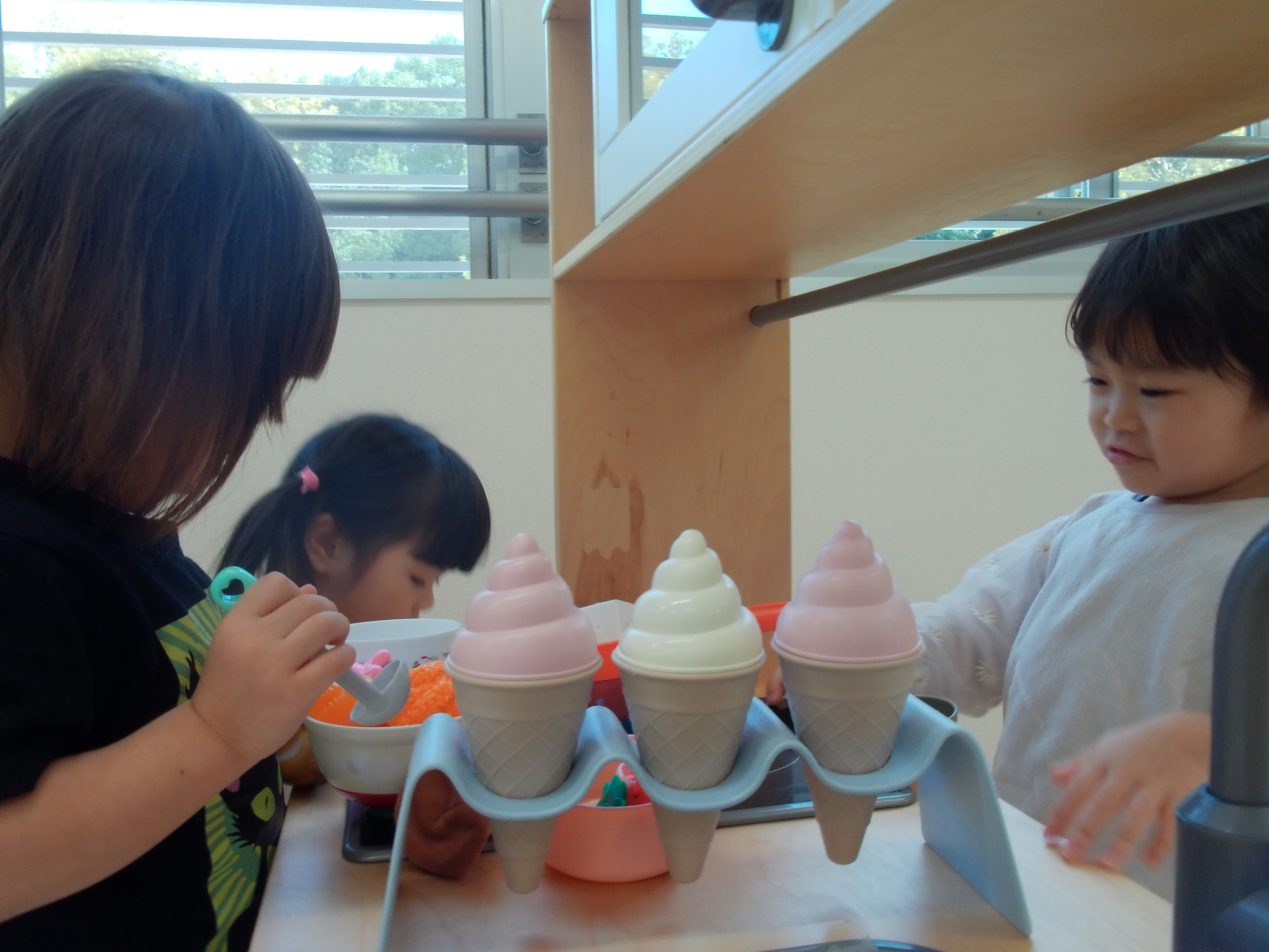 27 10月 2025 美木多 幼稚園 美木多チコスブログ 2025年10月27日 美木多 幼稚園 アイスクリーム屋さん(そら組) アイスクリームのおもちゃで楽しんだ今日のそら組さん。暑い夏にアイスクリームをいっぱい食べたことを思い出したようです。