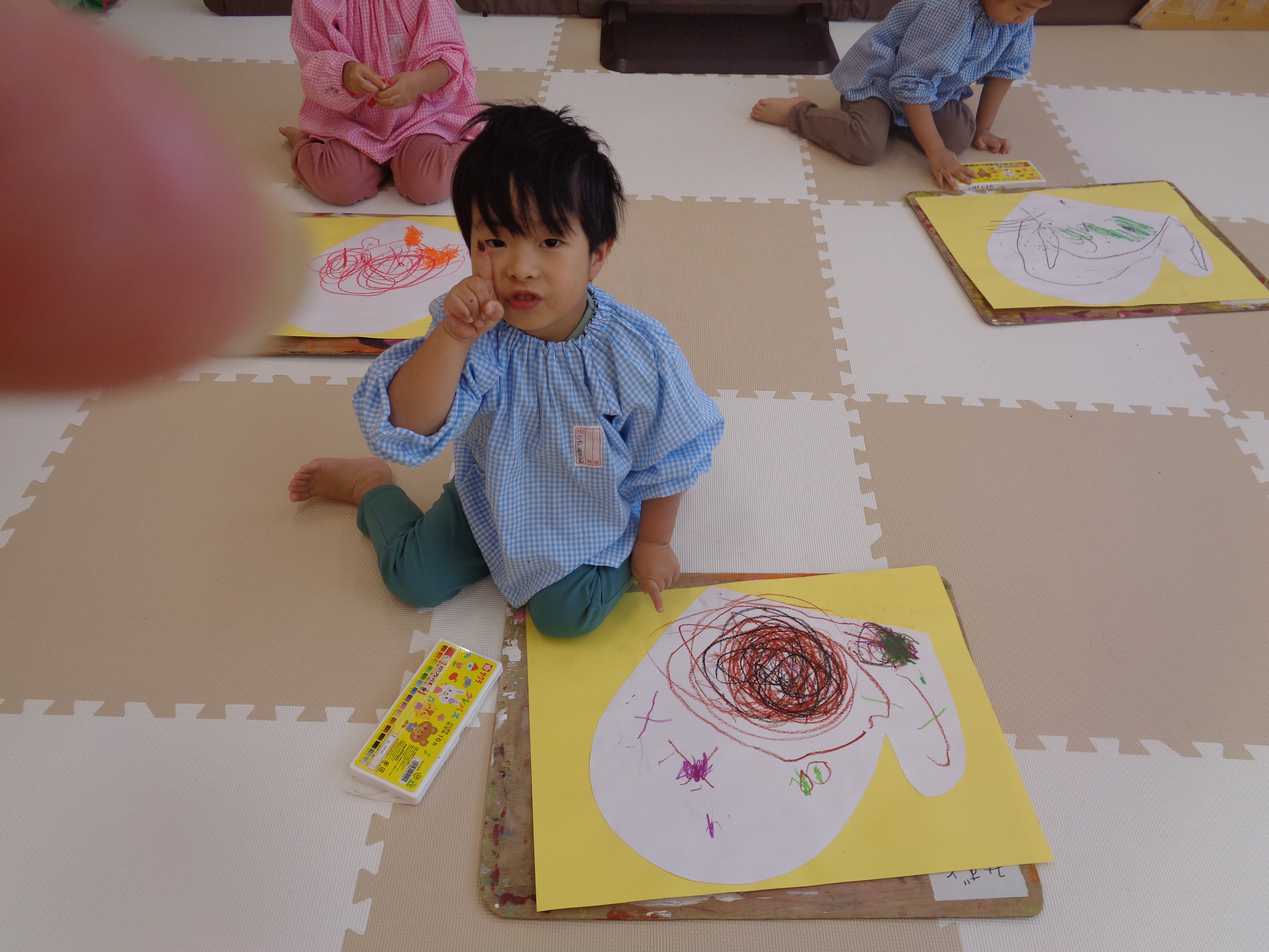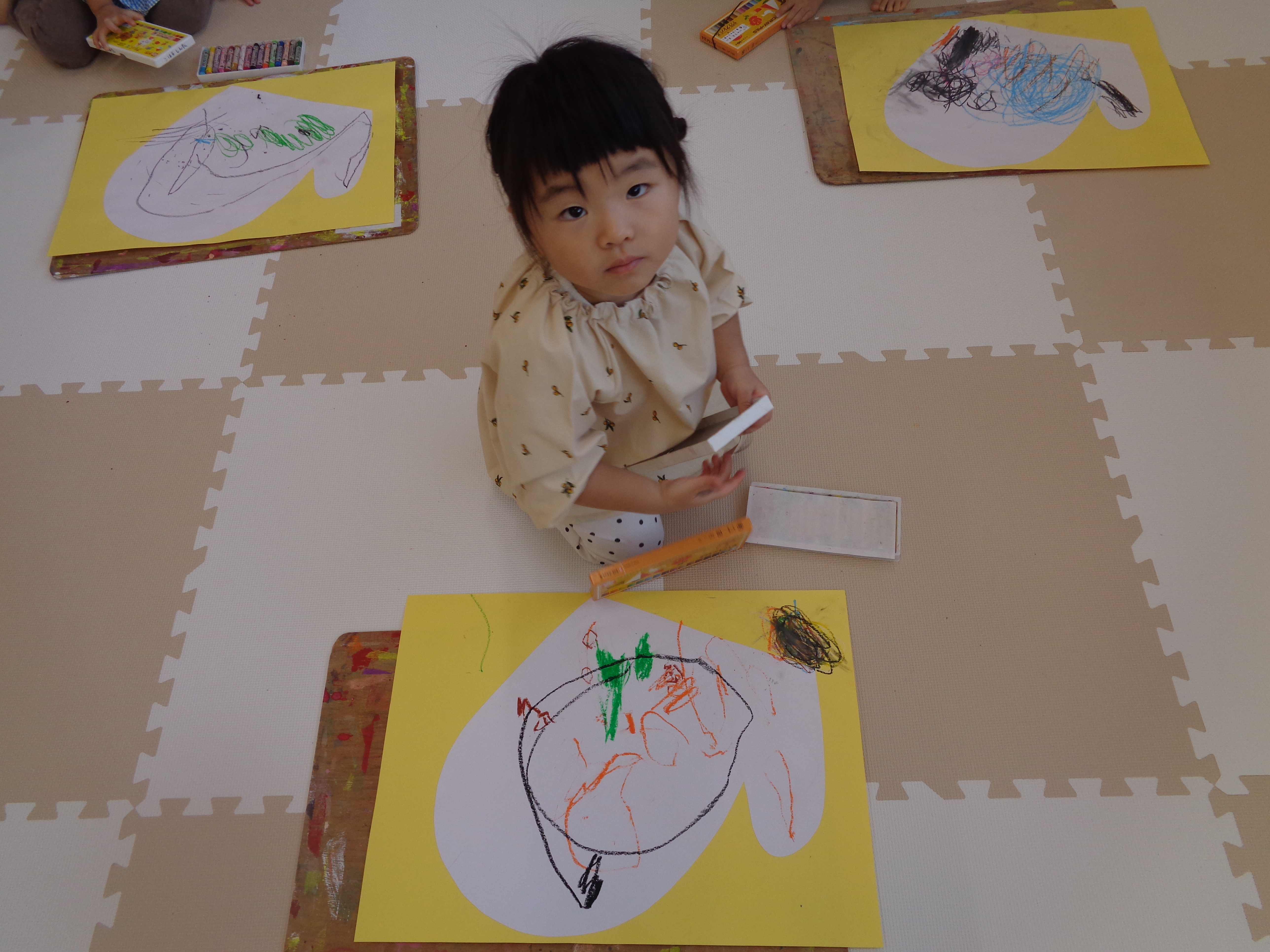 29 10月 2025 美木多 幼稚園 美木多チコスブログ 2025年10月29日 美木多 幼稚園 てぶくろ(そら組) 寒くなってきました。お話の絵を描きました。今日の題材は手袋。可愛い模様の手袋が出来上がりました。
