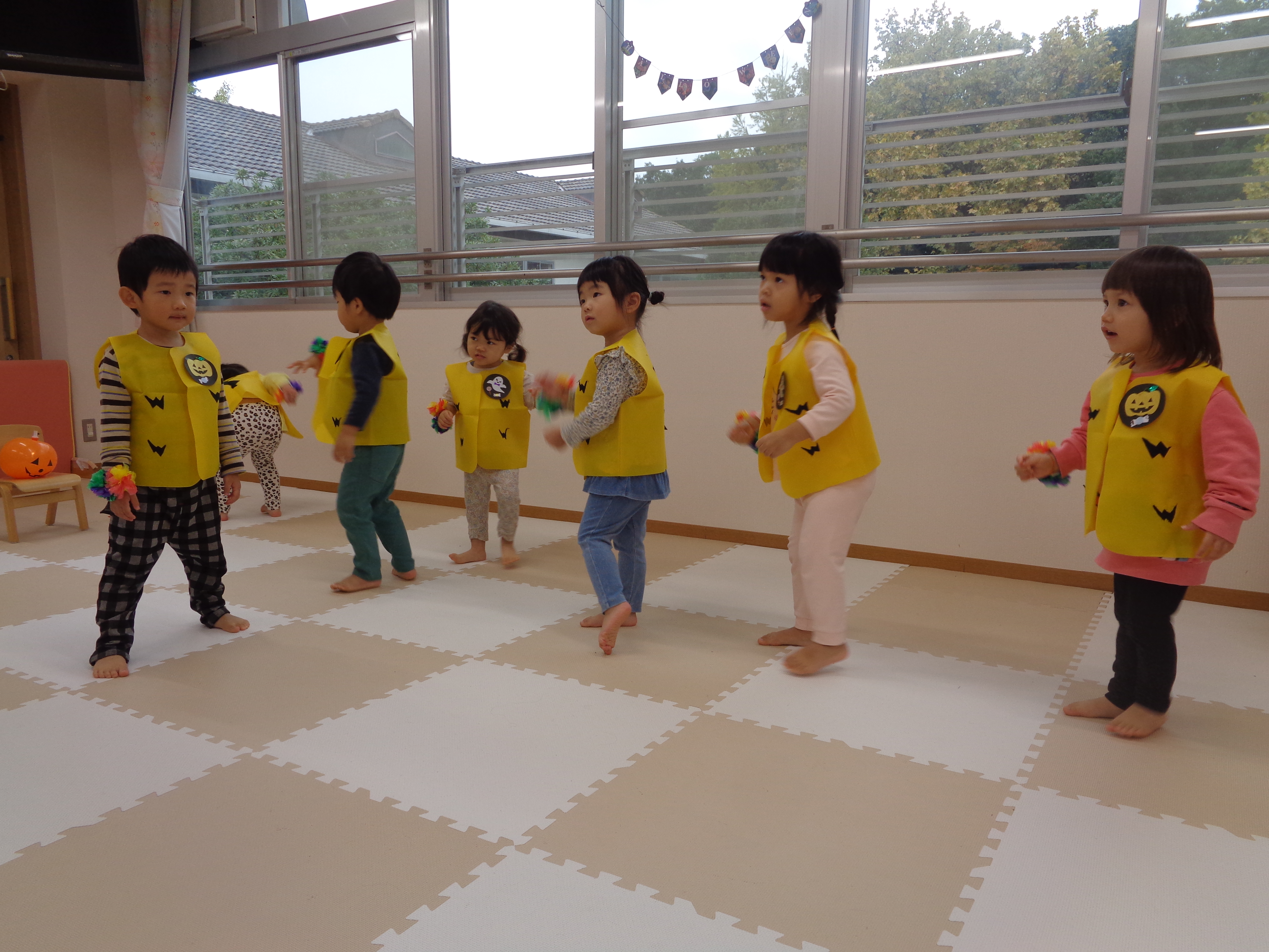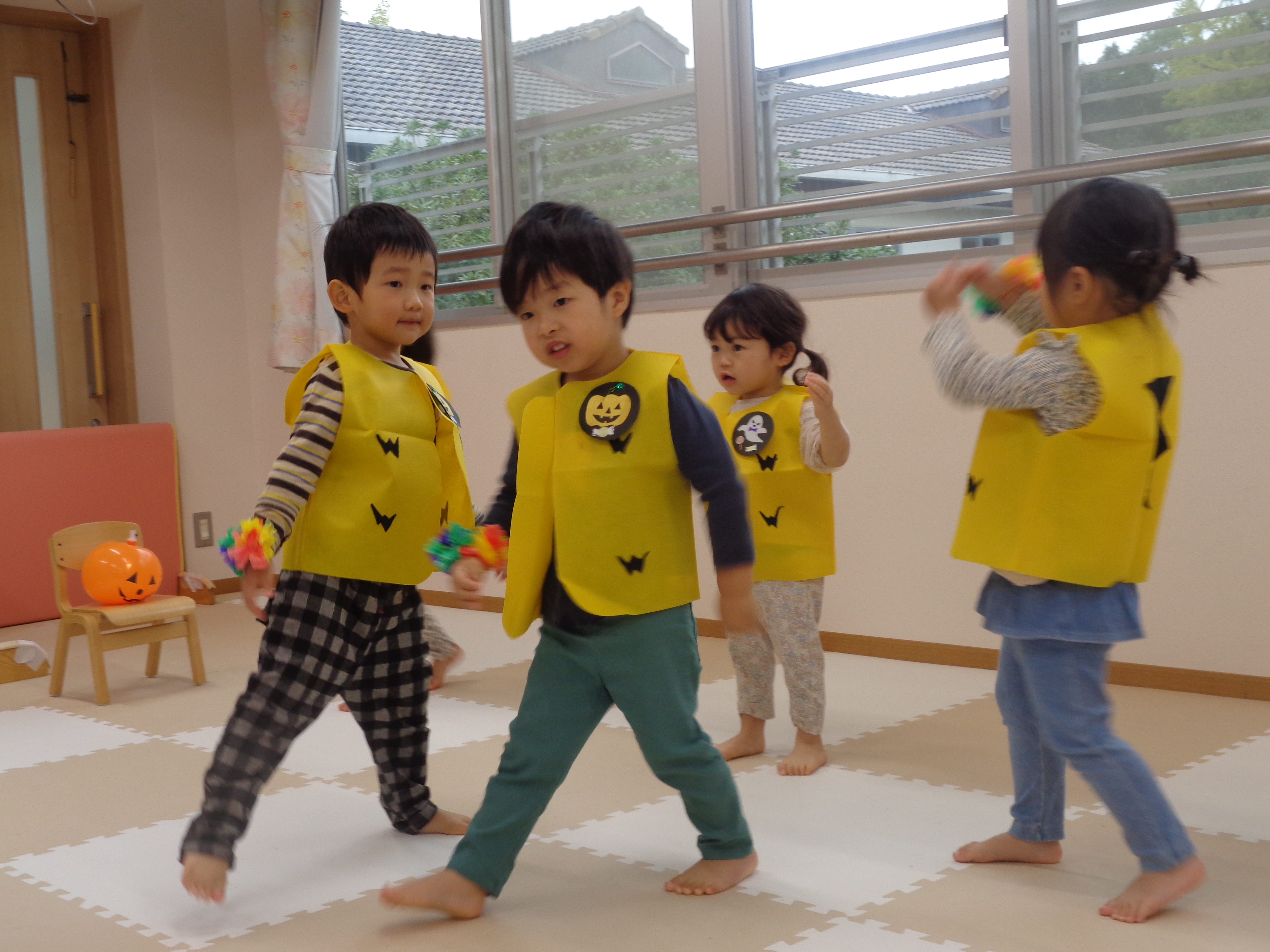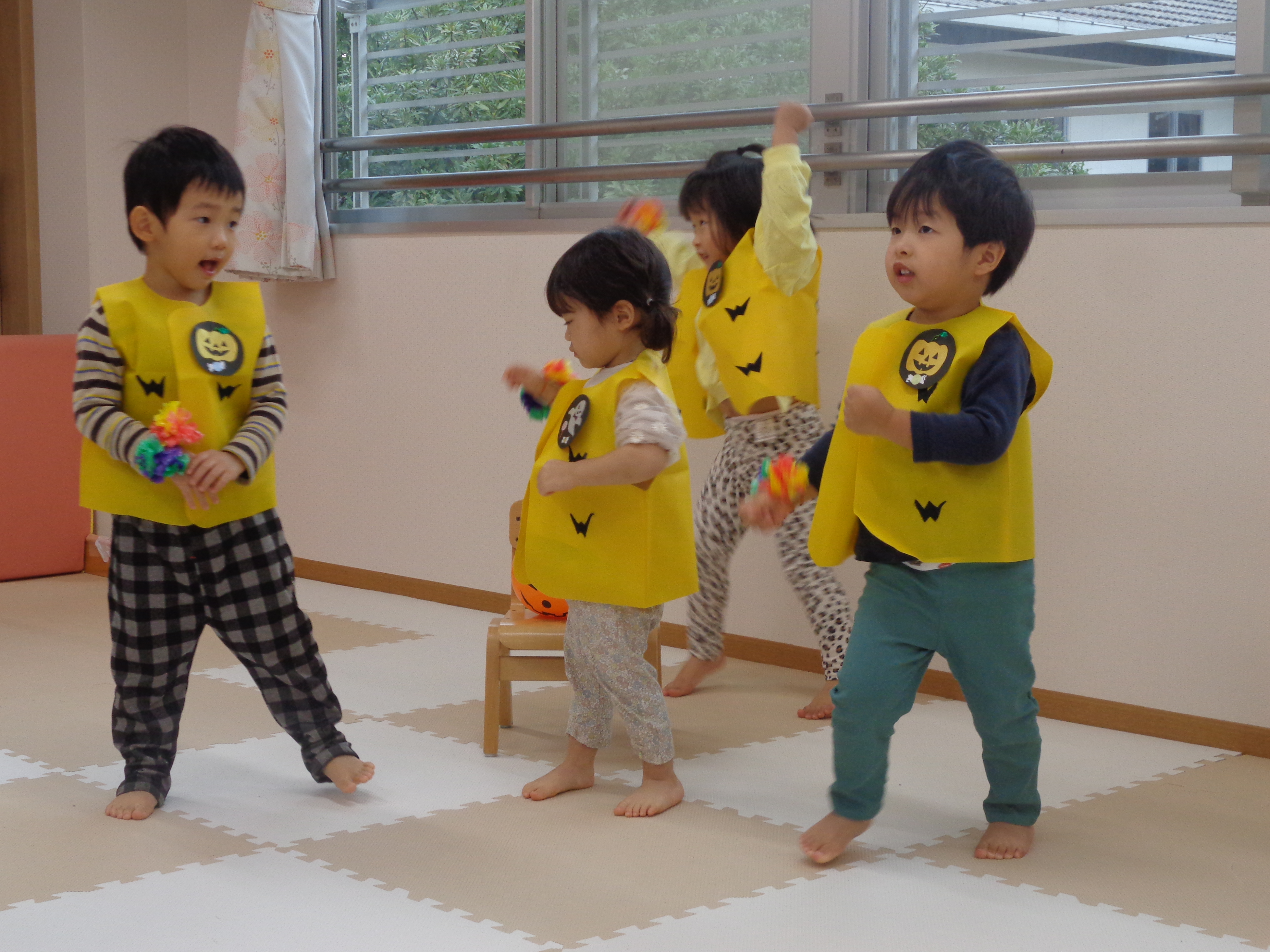 31 10月 2025 美木多 幼稚園 美木多チコスブログ 2025年10月31日 美木多 幼稚園 そら組のハロウィン そら組のハロウィンは運動会の衣装を使った仮装ダンス。ワッペンはもちろん先生の手作り。お昼もハロウィン風ランチを楽しみました。
