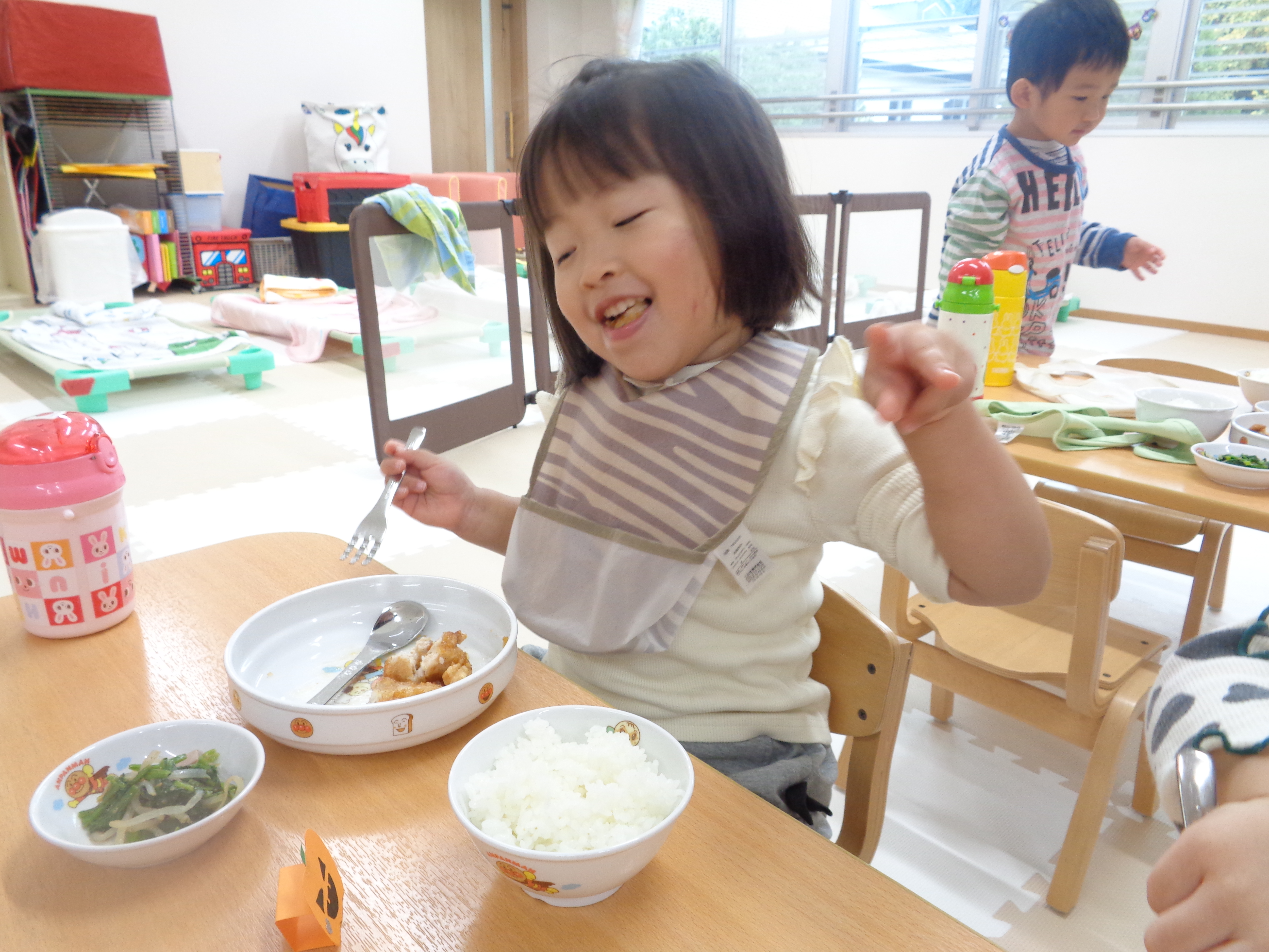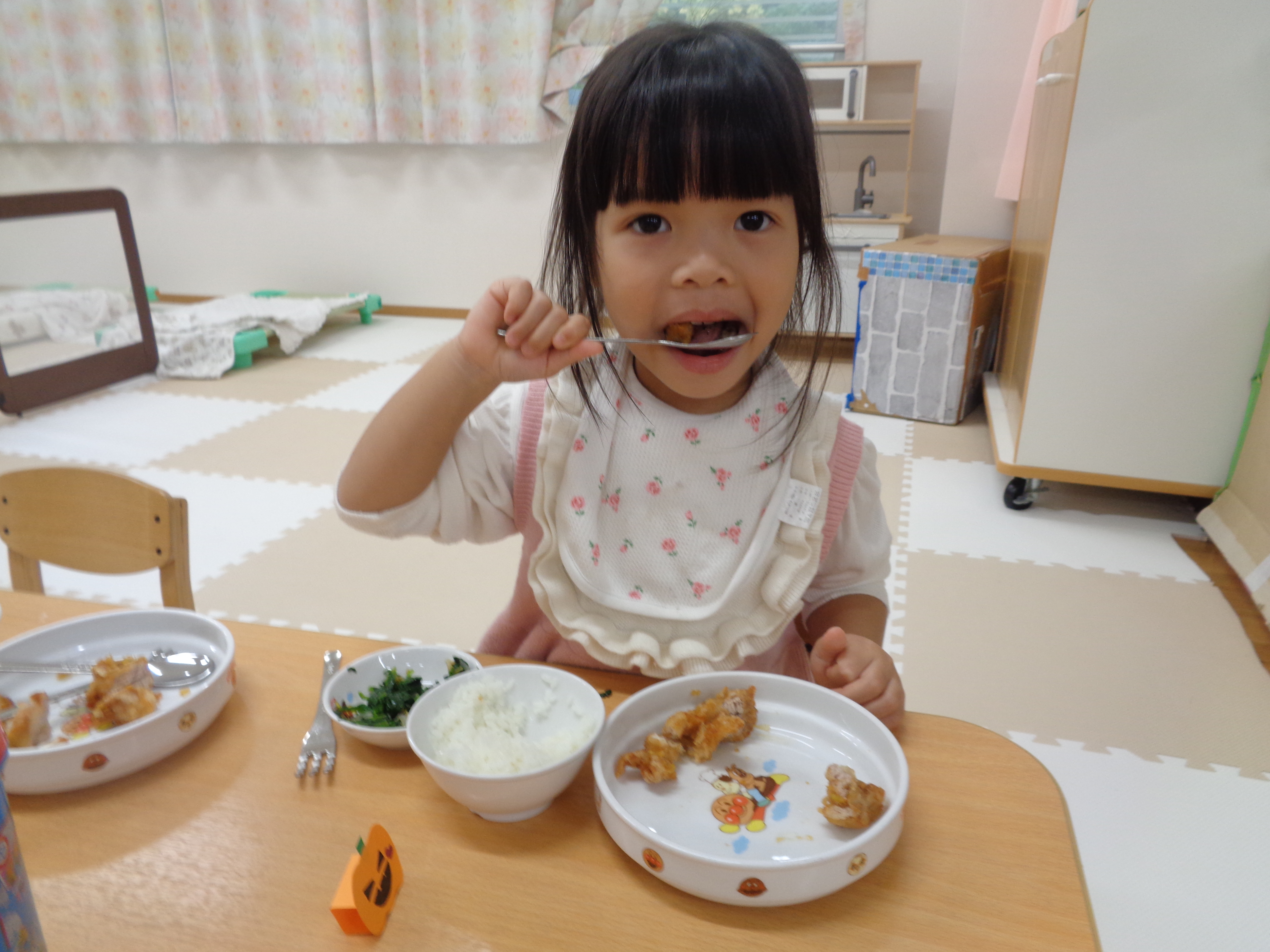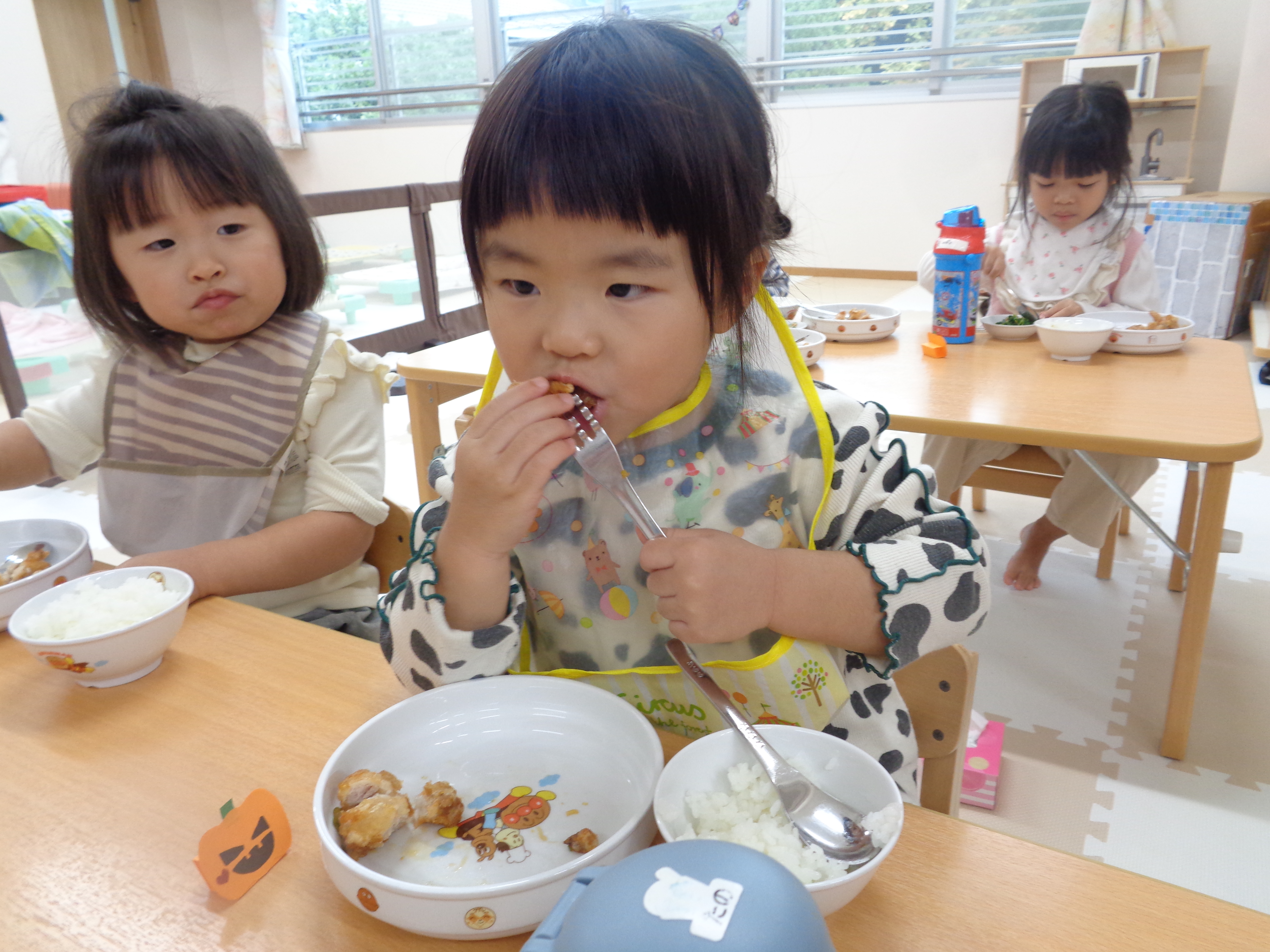 31 10月 2025 美木多 幼稚園 美木多チコスブログ 2025年10月31日 美木多 幼稚園 そら組のハロウィン そら組のハロウィンは運動会の衣装を使った仮装ダンス。ワッペンはもちろん先生の手作り。お昼もハロウィン風ランチを楽しみました。
