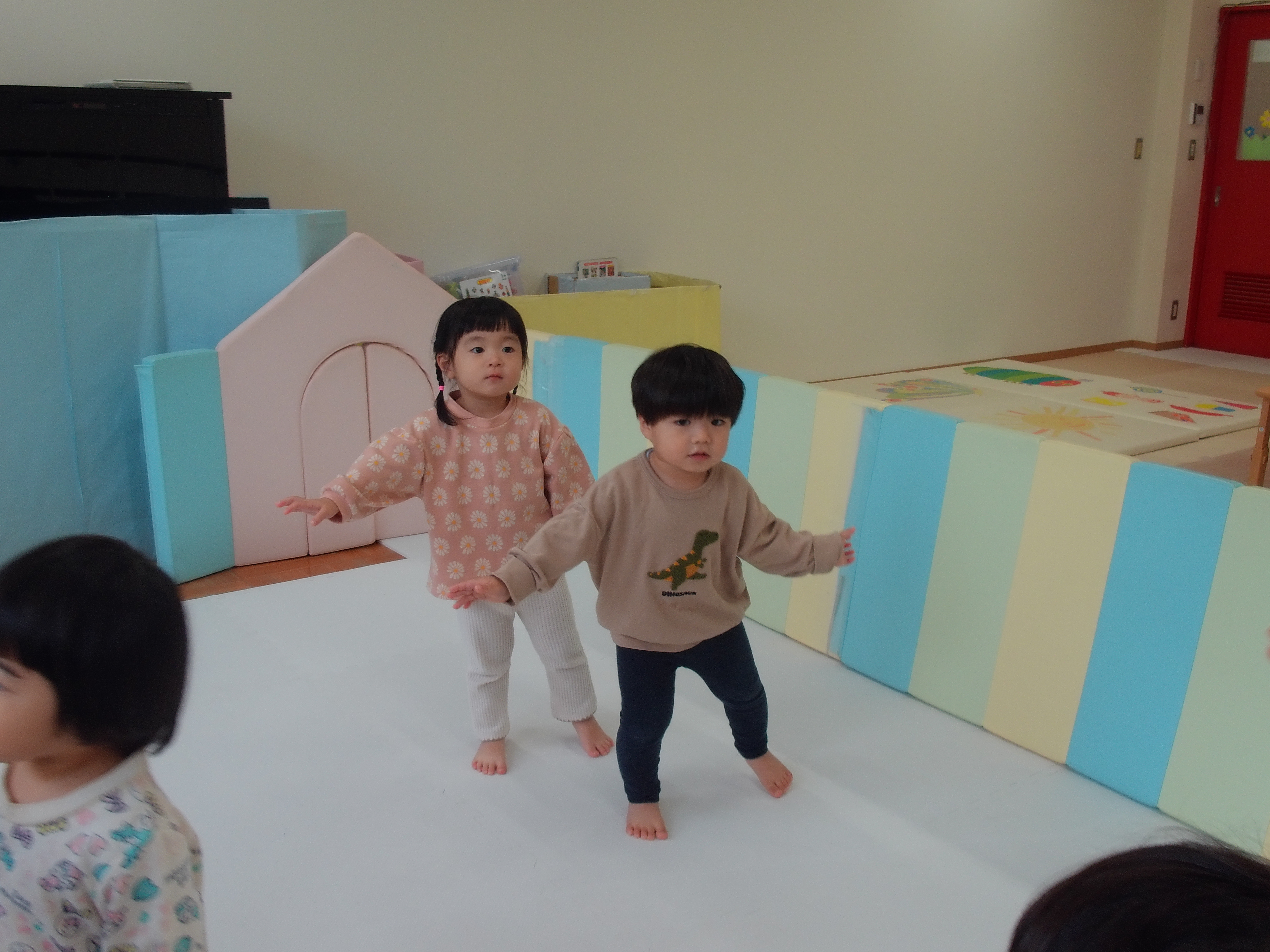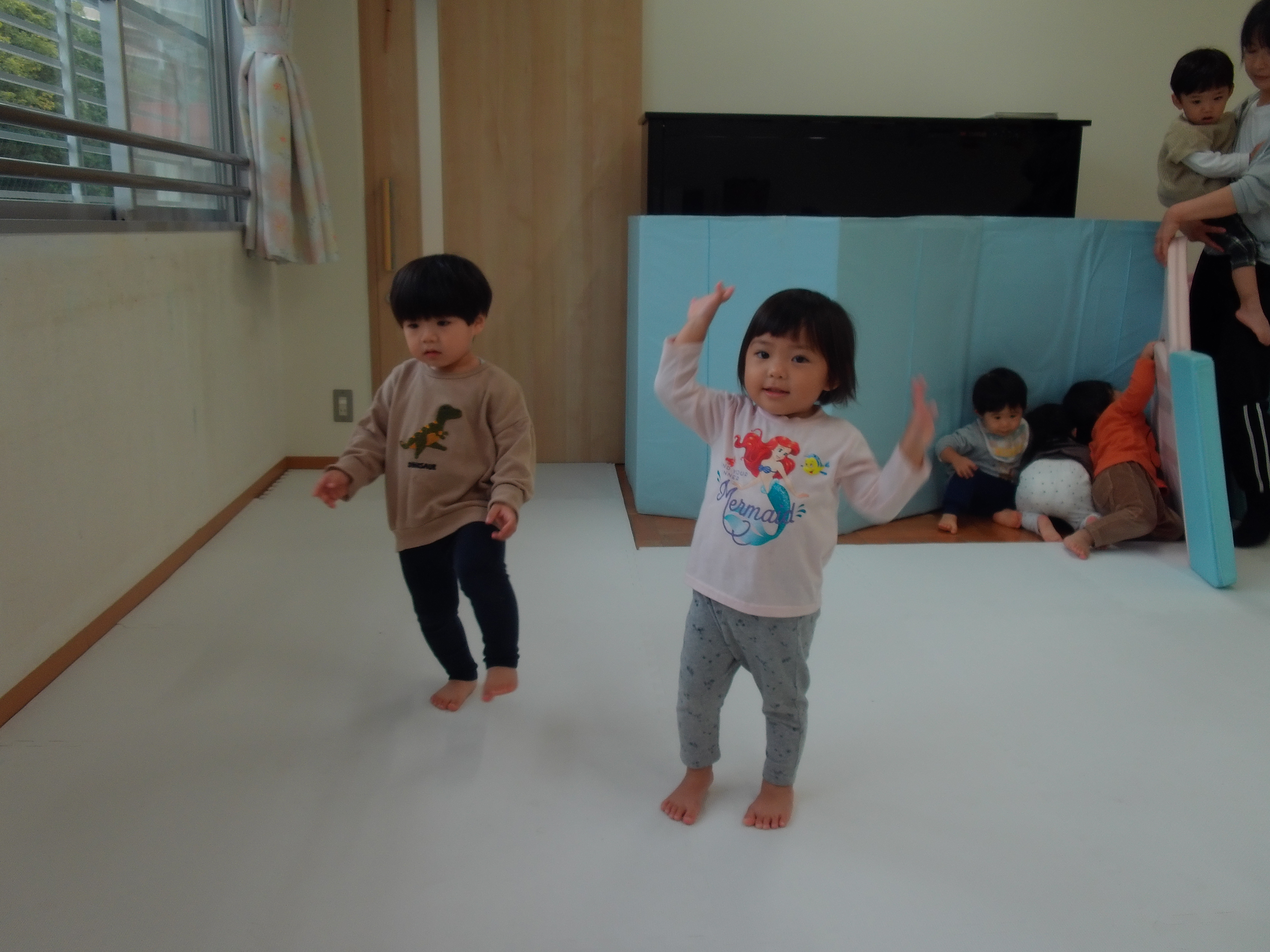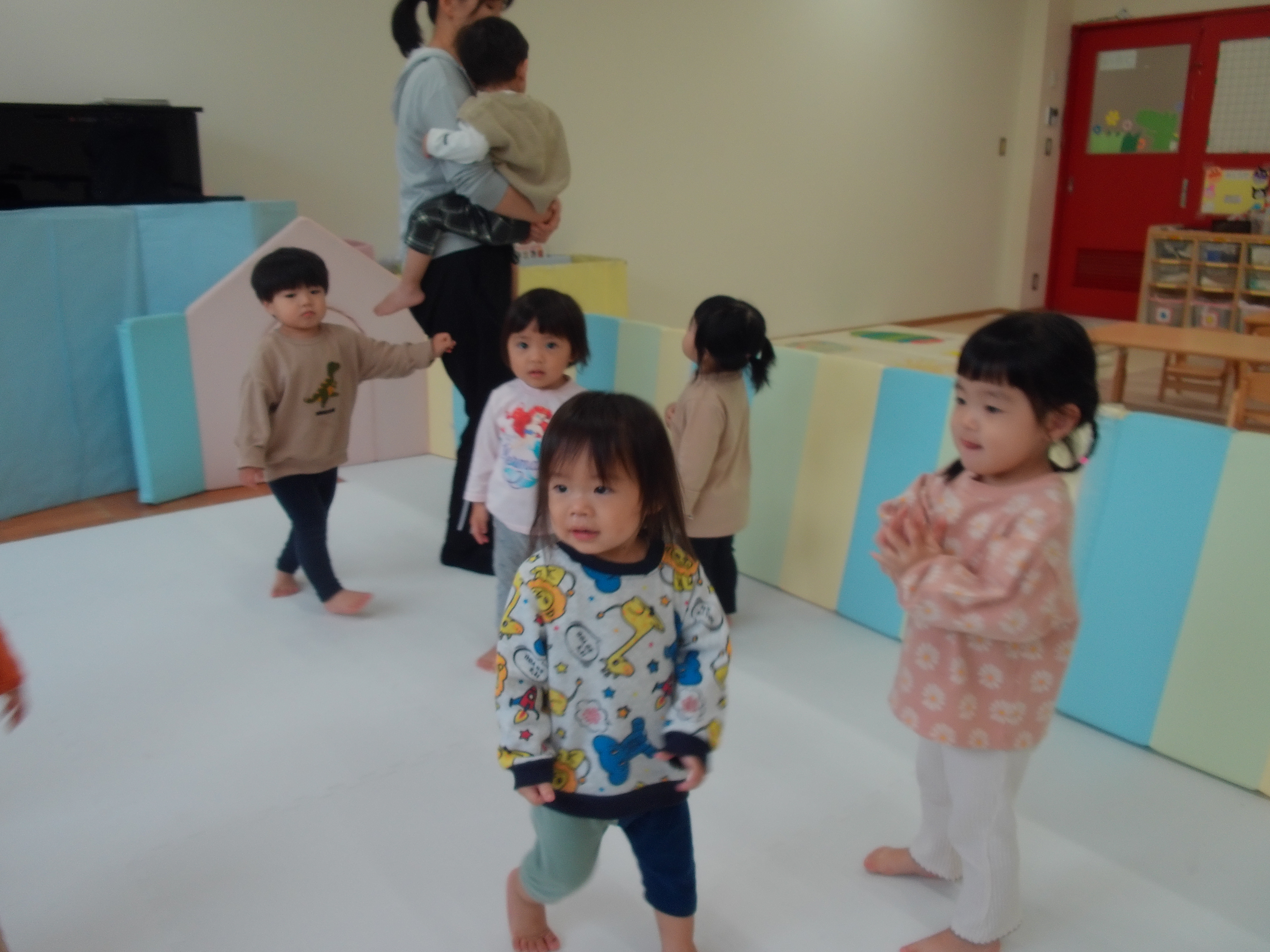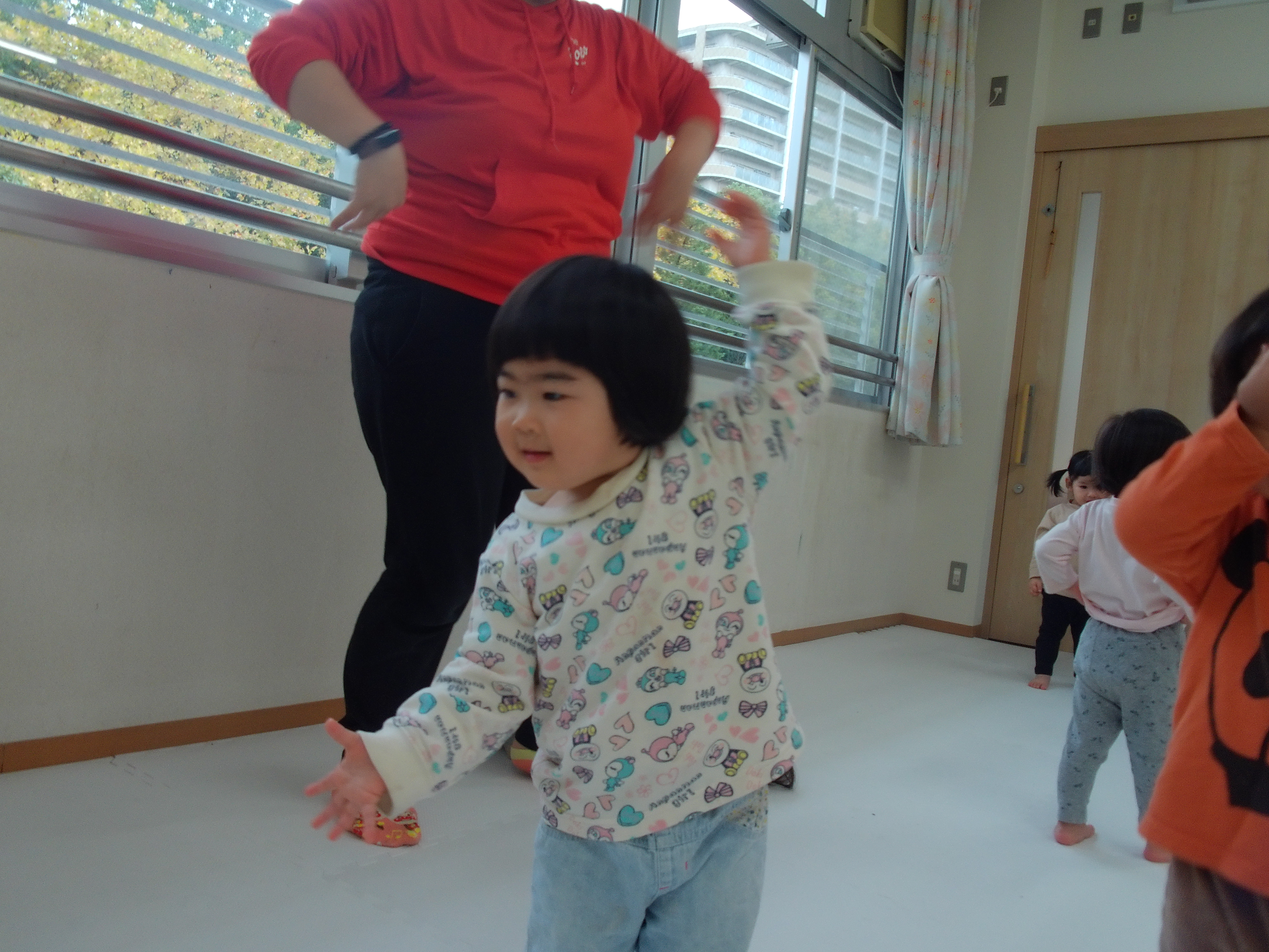 06 11月 2025 美木多 幼稚園 美木多チコスブログ 2025年11月6日 美木多 幼稚園 リズムにのって(つき組) つき組のお部屋がとても賑やかな時間がありました。そっと見に行くと、みんなでリズムに乗って楽しく体操をしていました。みんないいお顔です。