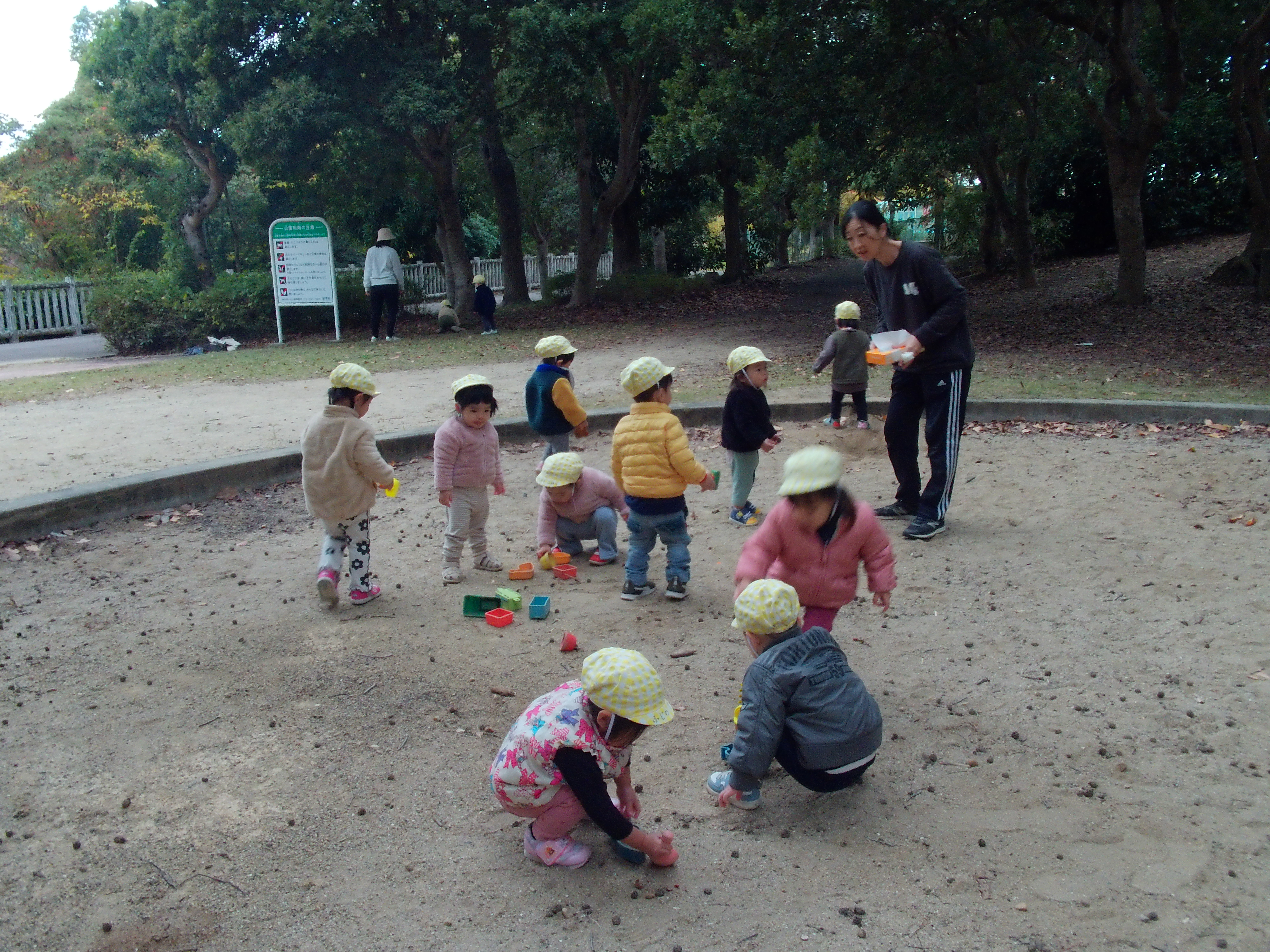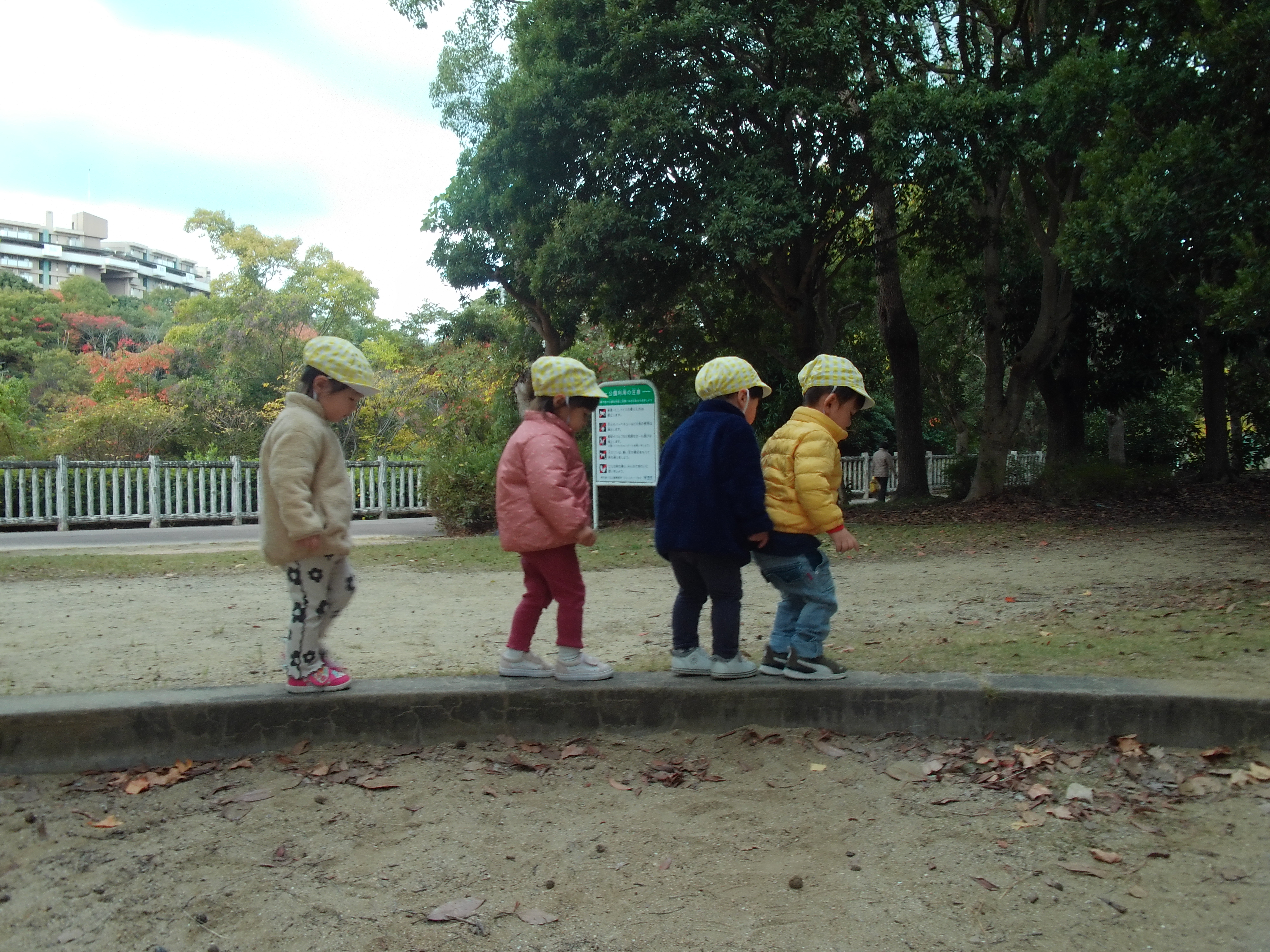 19 11月 2025 美木多 幼稚園 すべての記事, 美木多チコスブログ 2025年11月19日 美木多 幼稚園 お山の公園 つき組は枯れ葉がいっぱい積もっているお山の公園に。お山を登るのも好きだけど、お砂場のヘリを歩く行進もお気に入りの遊びです。