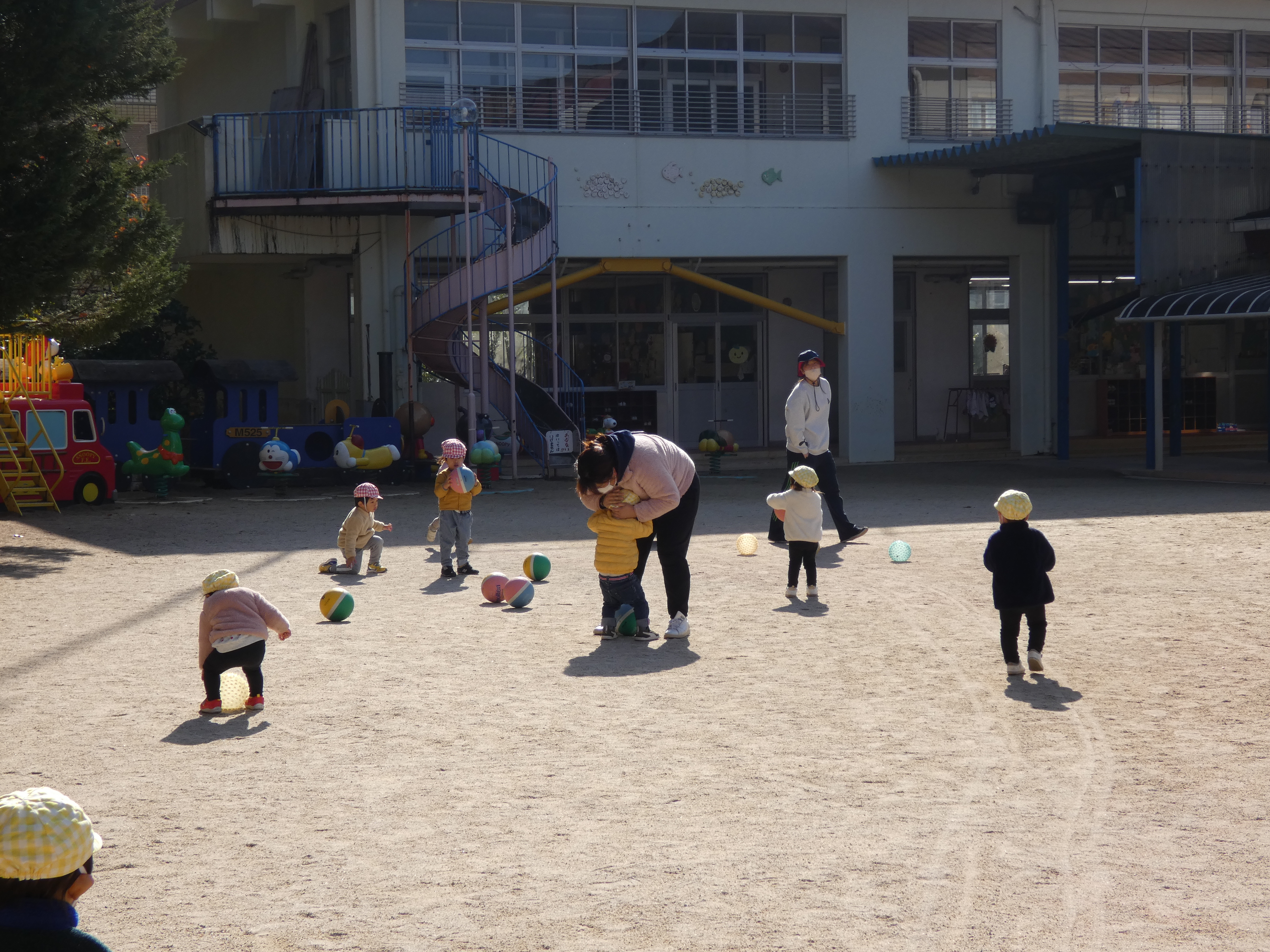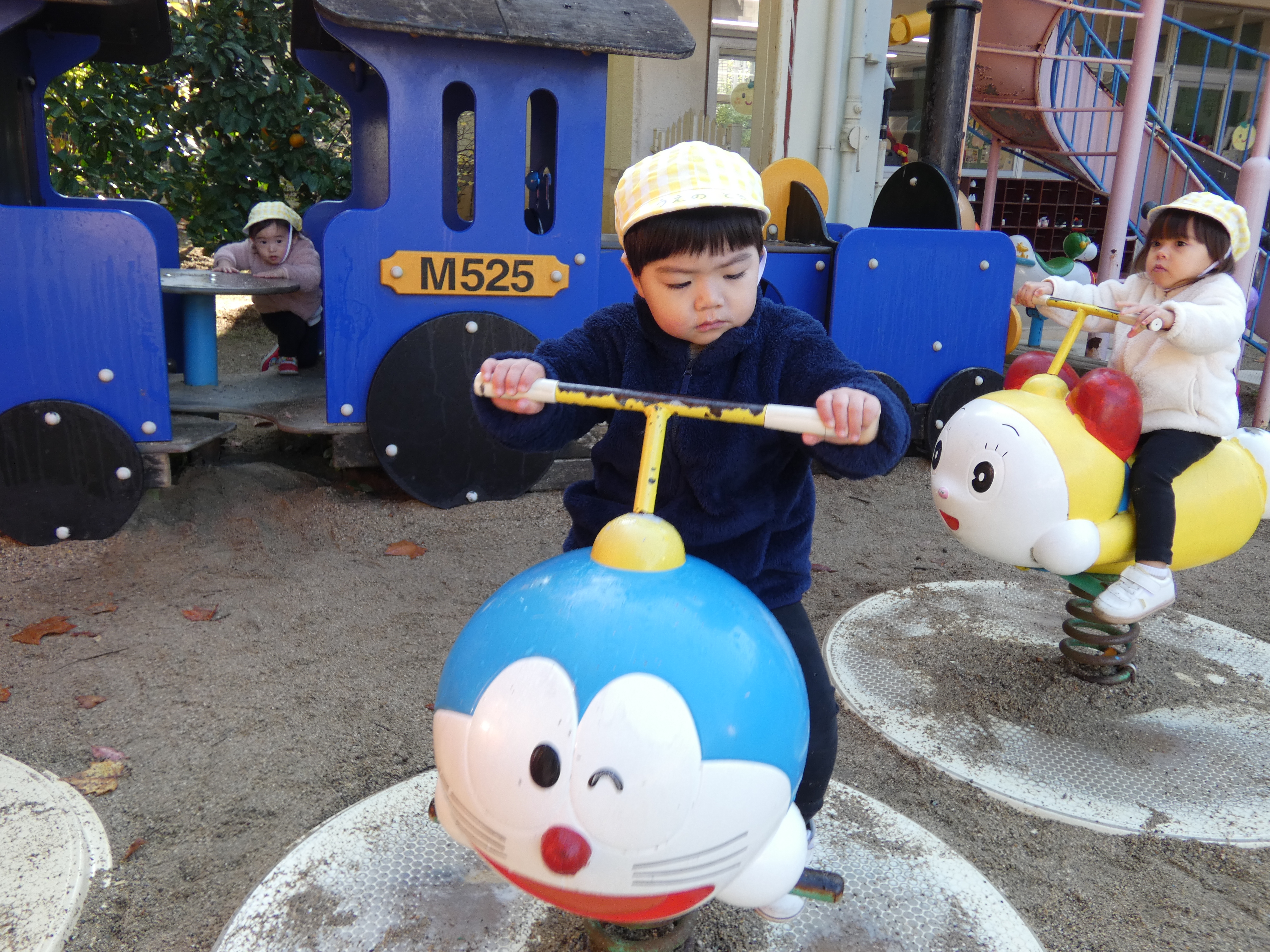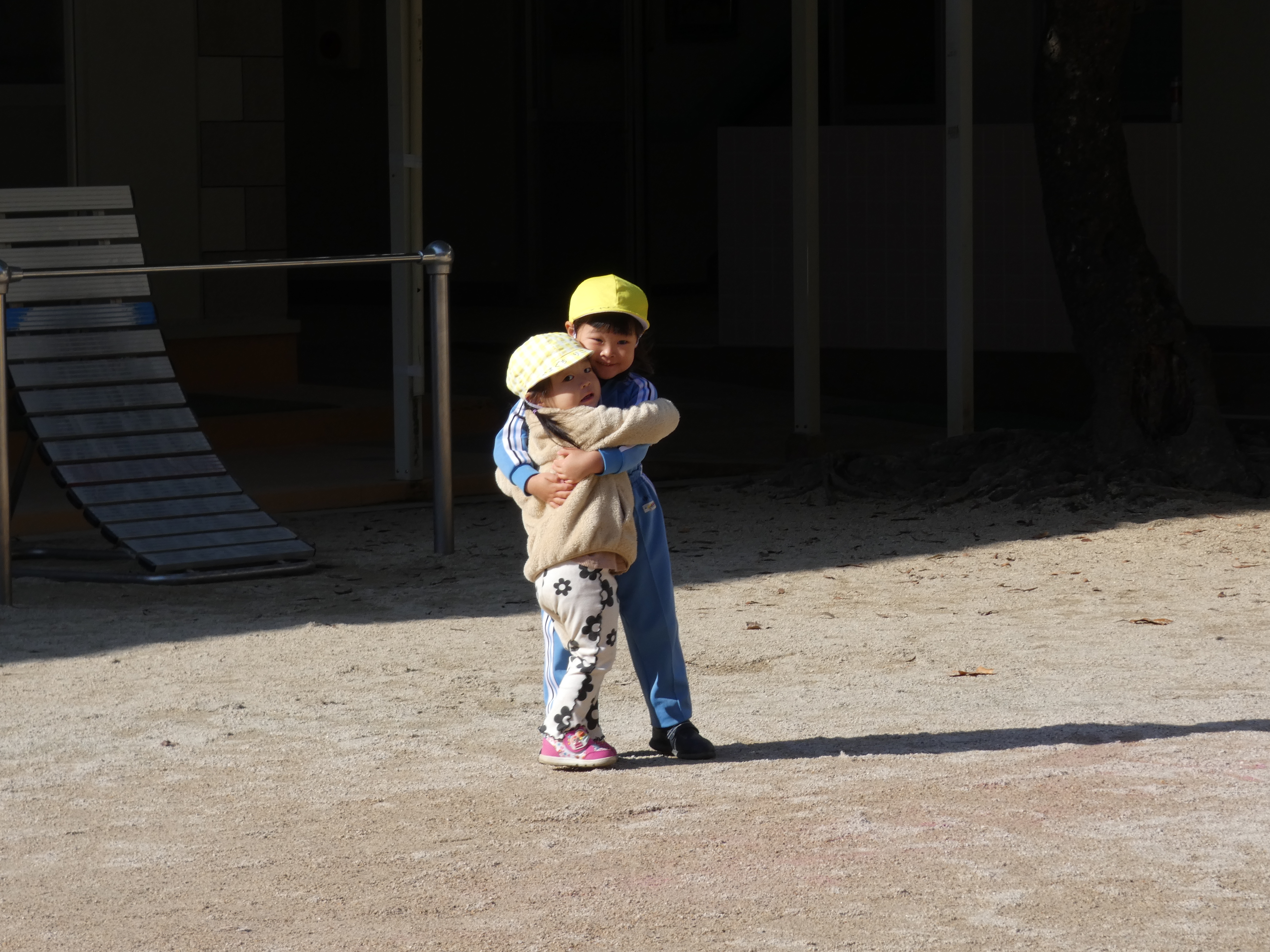 暖かい日差しが届く日になりました。お砂場で遊んだ今日のつき組さんです。