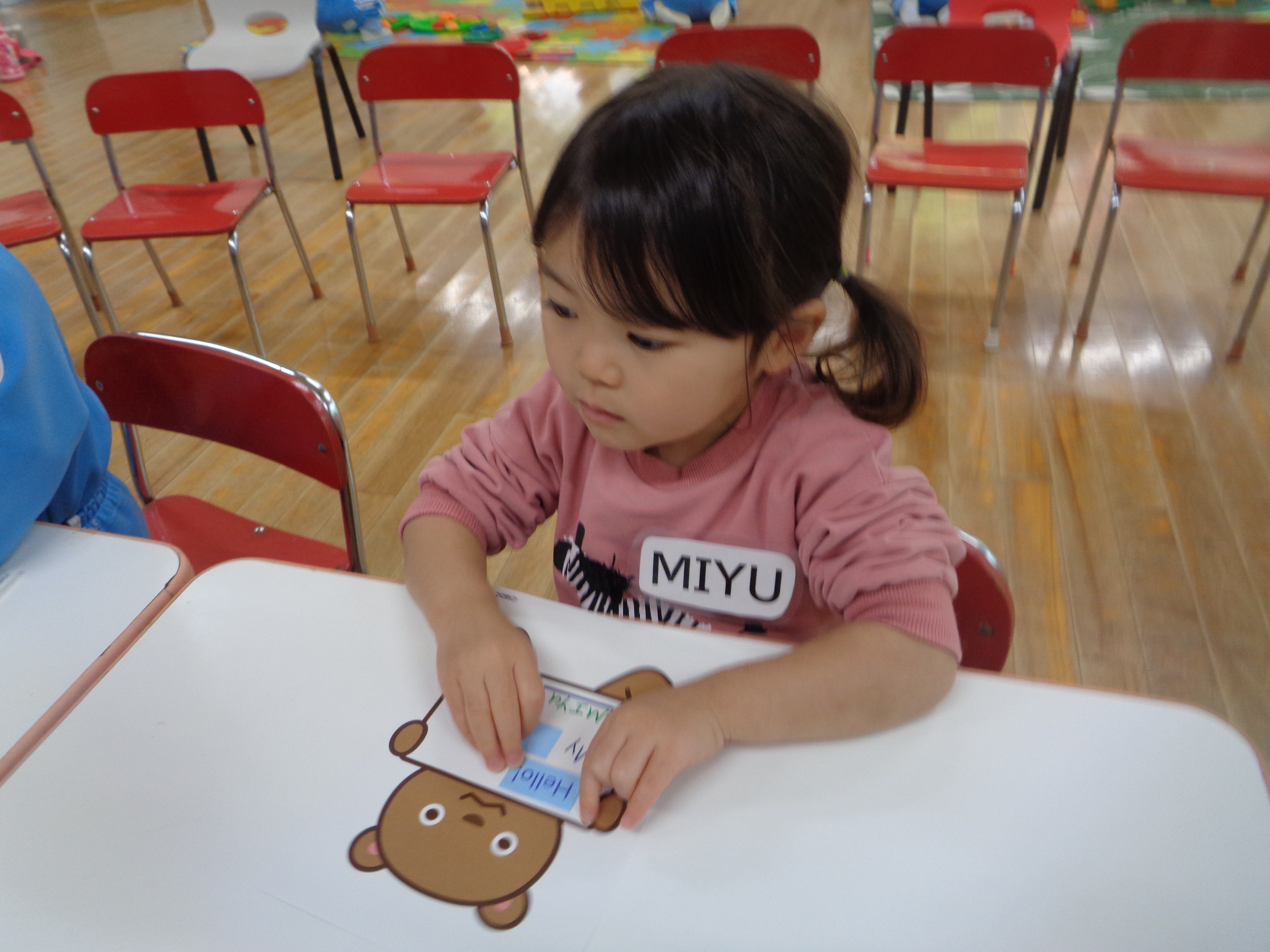 28 11月 2025 美木多 幼稚園 美木多チコスブログ 2025年11月28日 美木多 幼稚園 英語活動(そら組) すっかりなじんできた月に一度の英語活動の日です。いつもの話し言葉と違うけれど、少しづずつ耳になじんできています。
