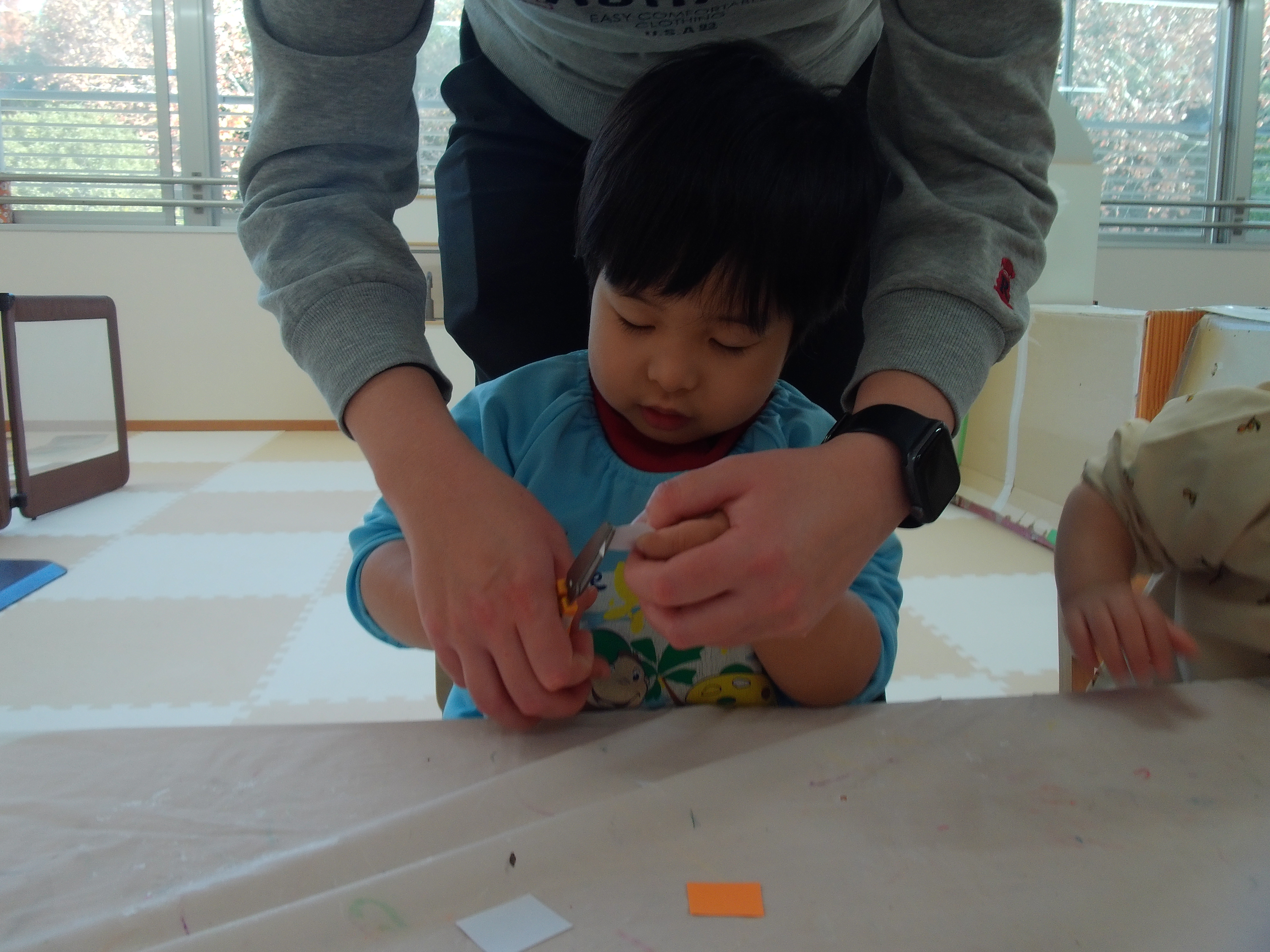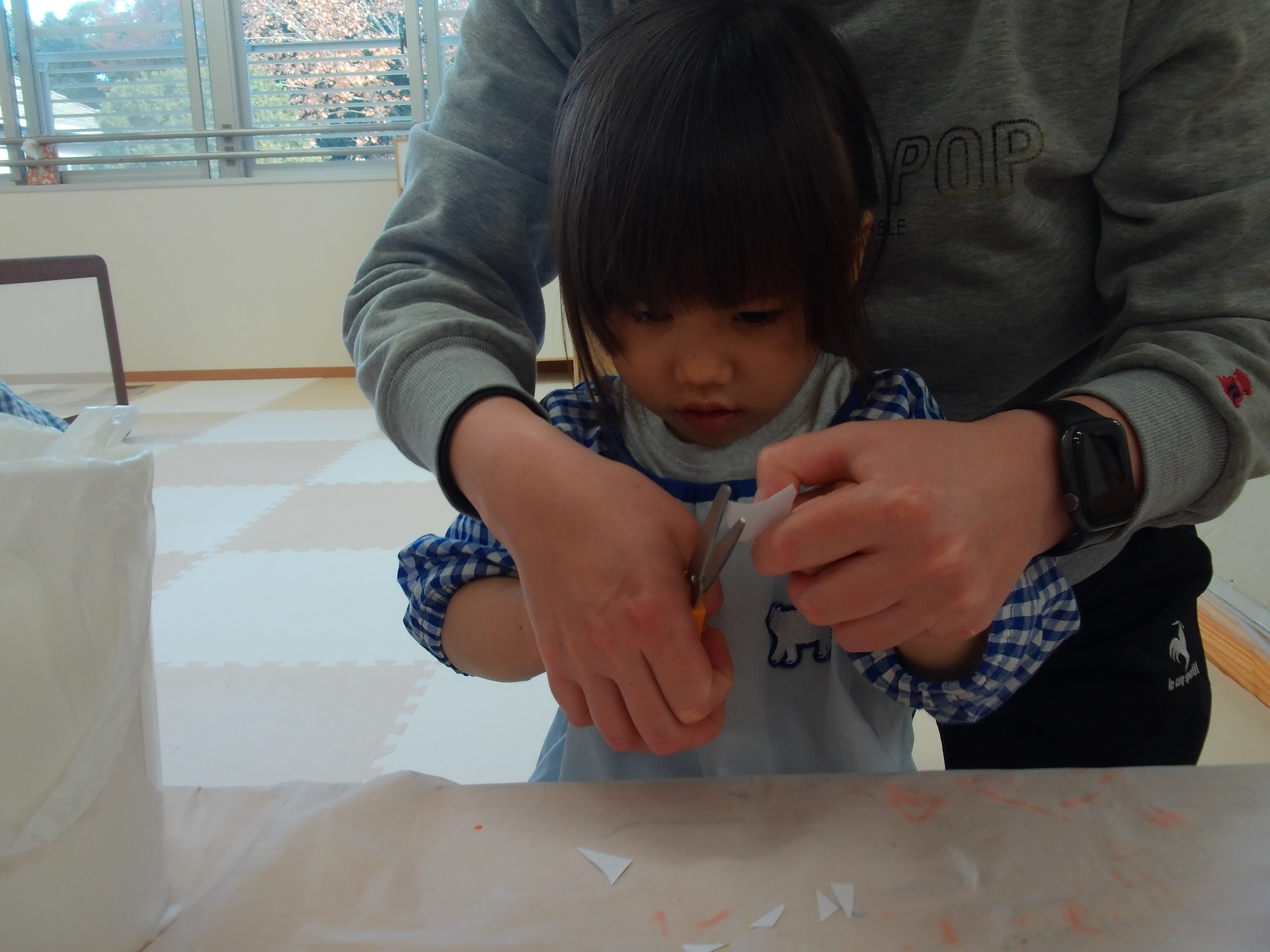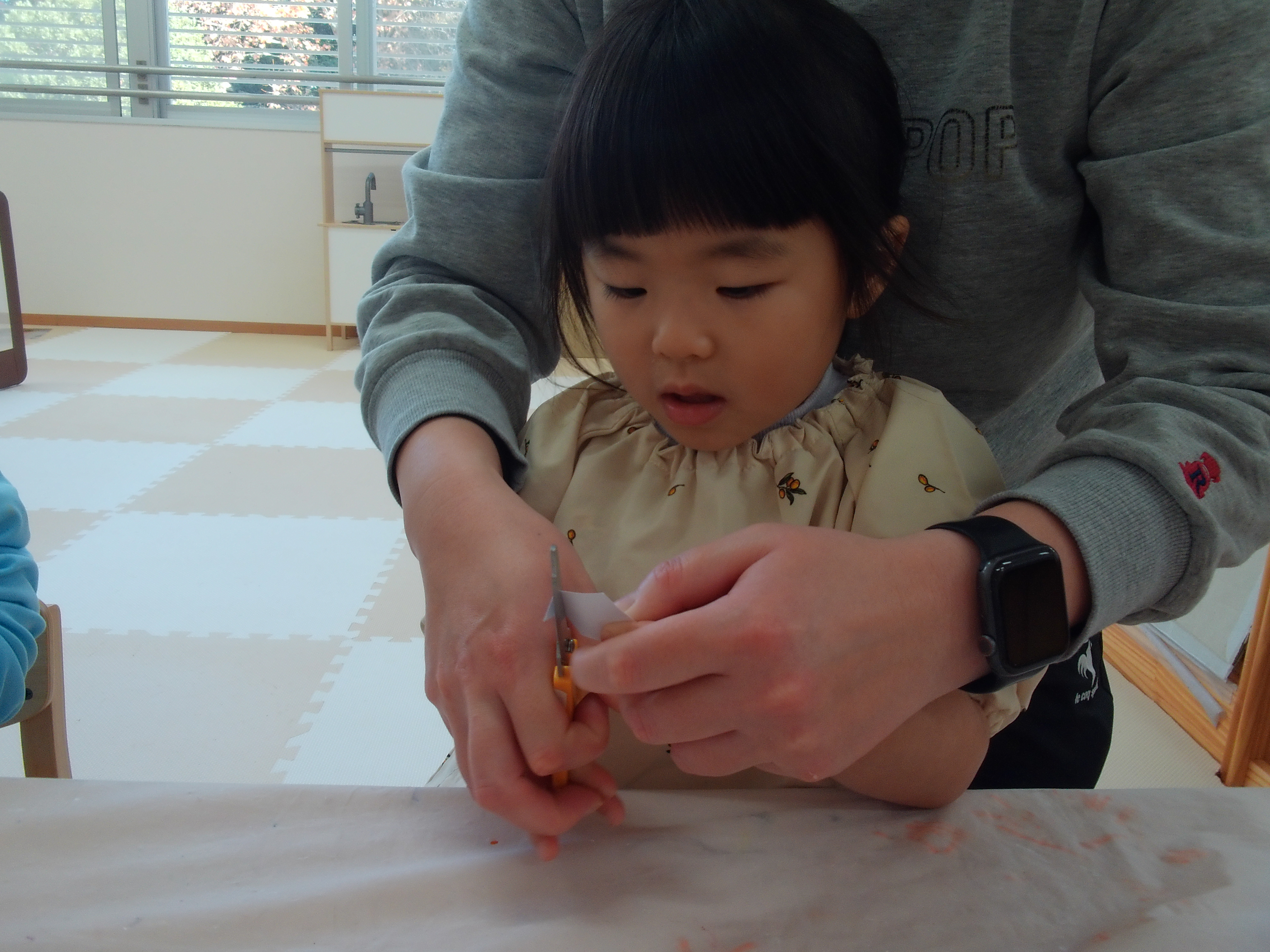ハサミを使う時は緊張してますが上手に使うことができました。