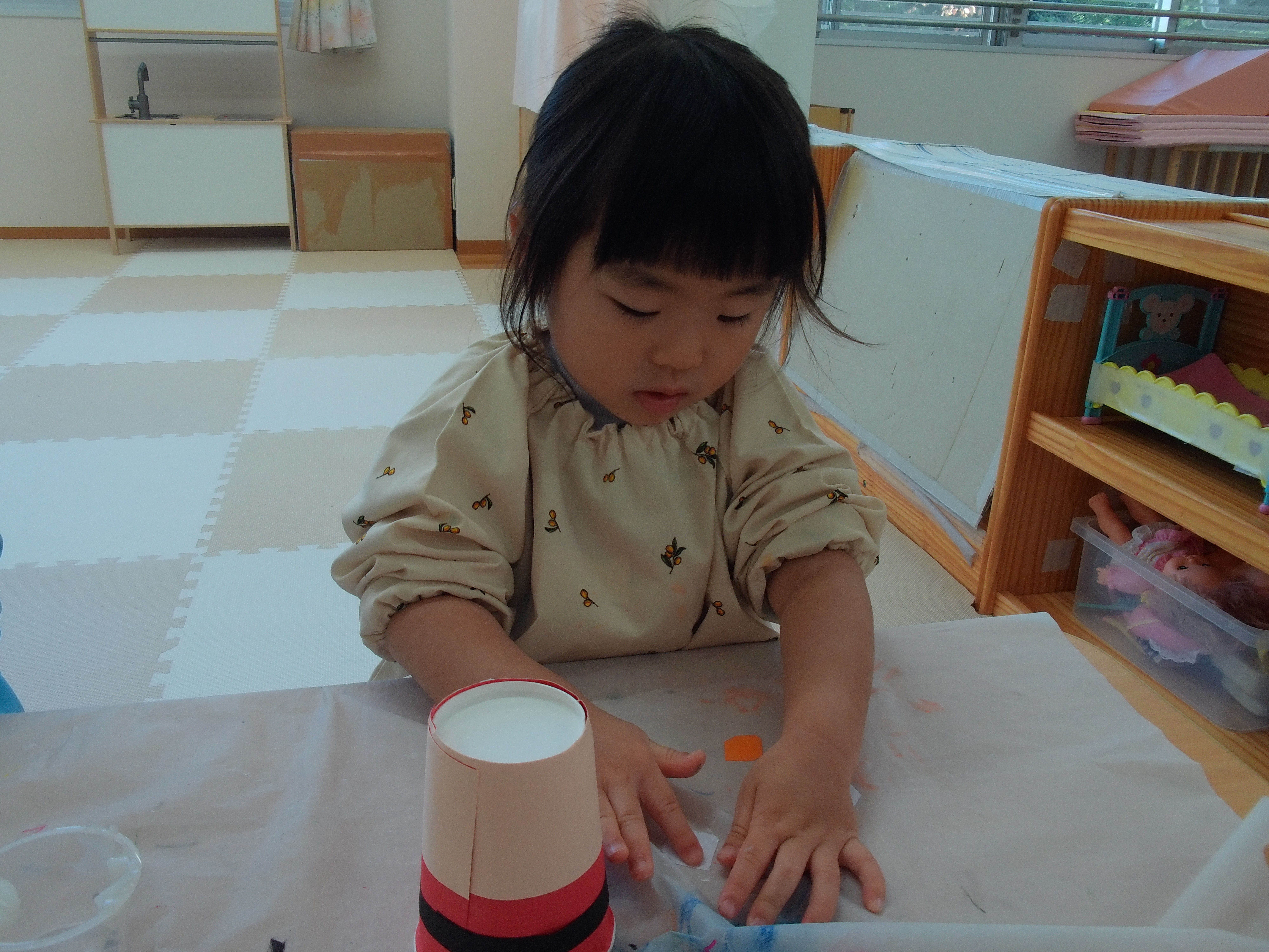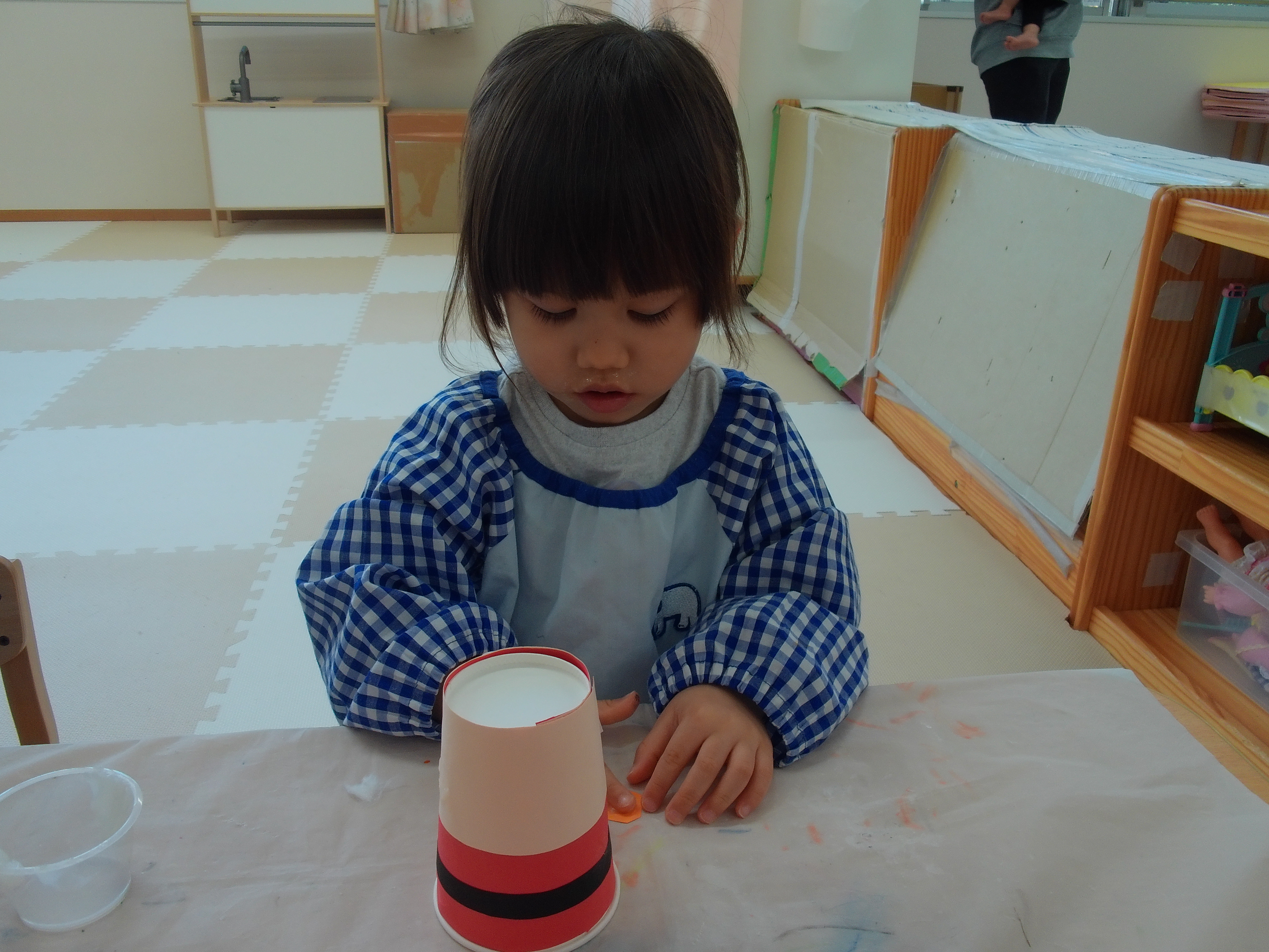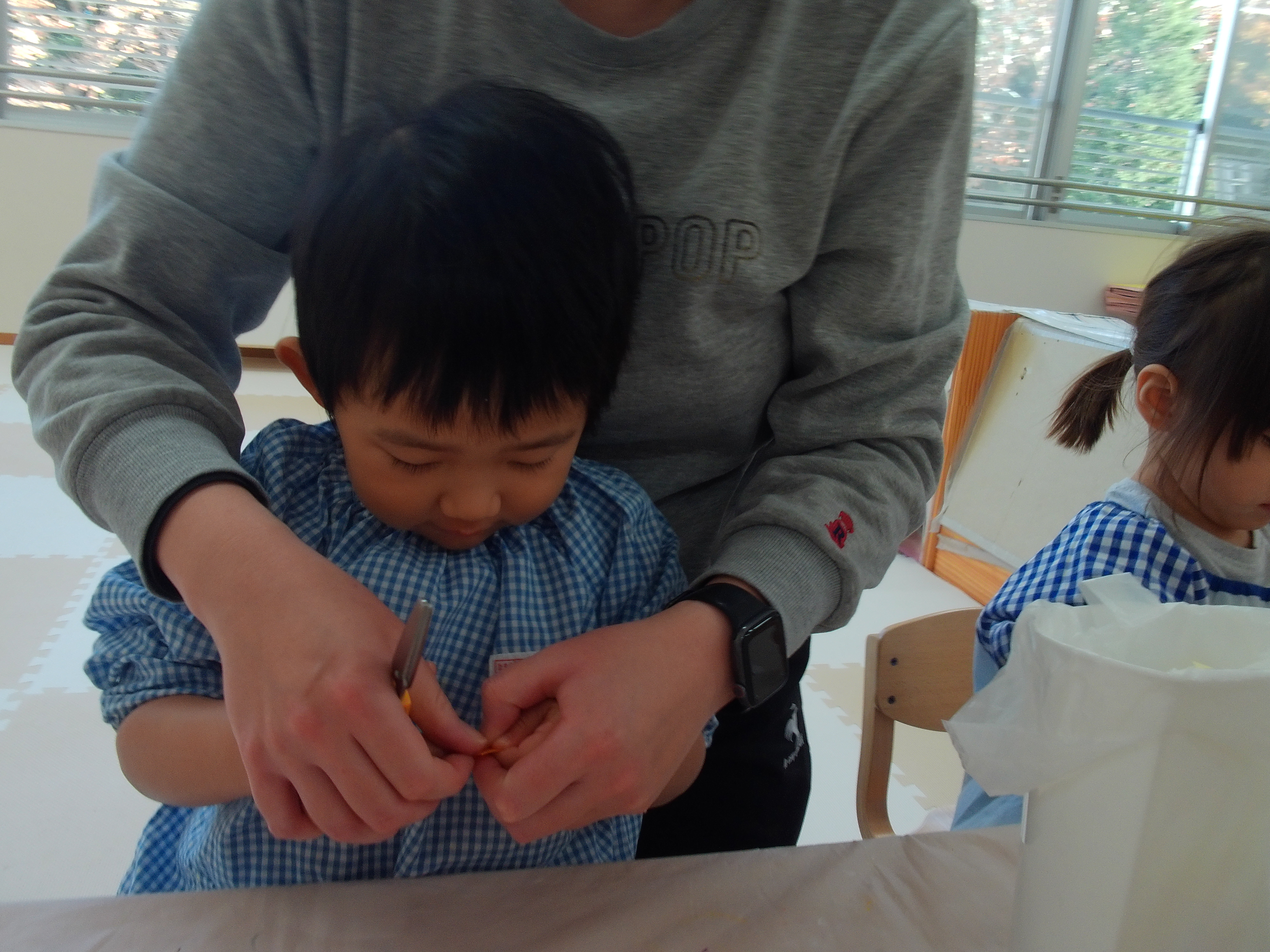 ハサミを使う時は緊張してますが上手に使うことができました。