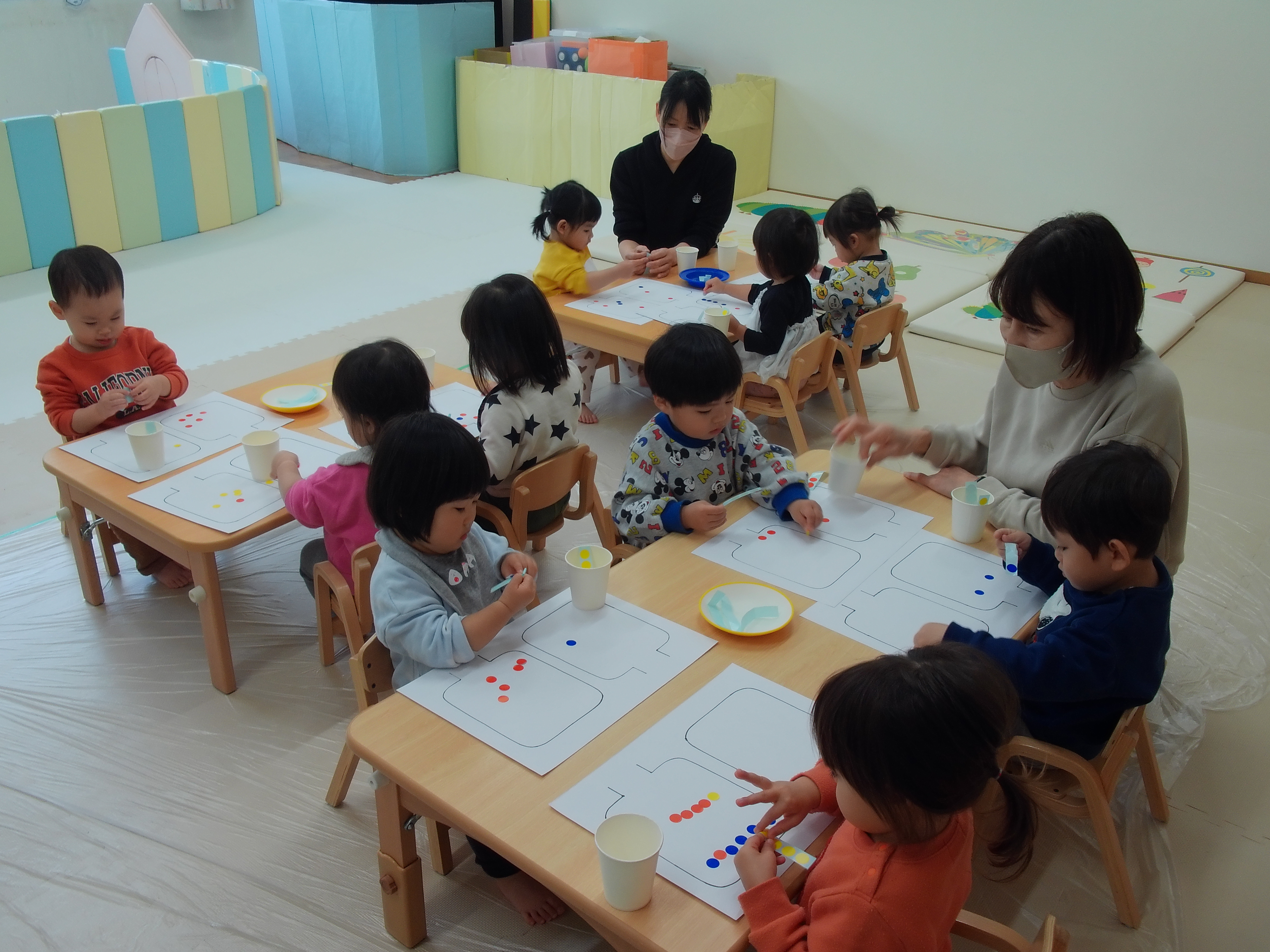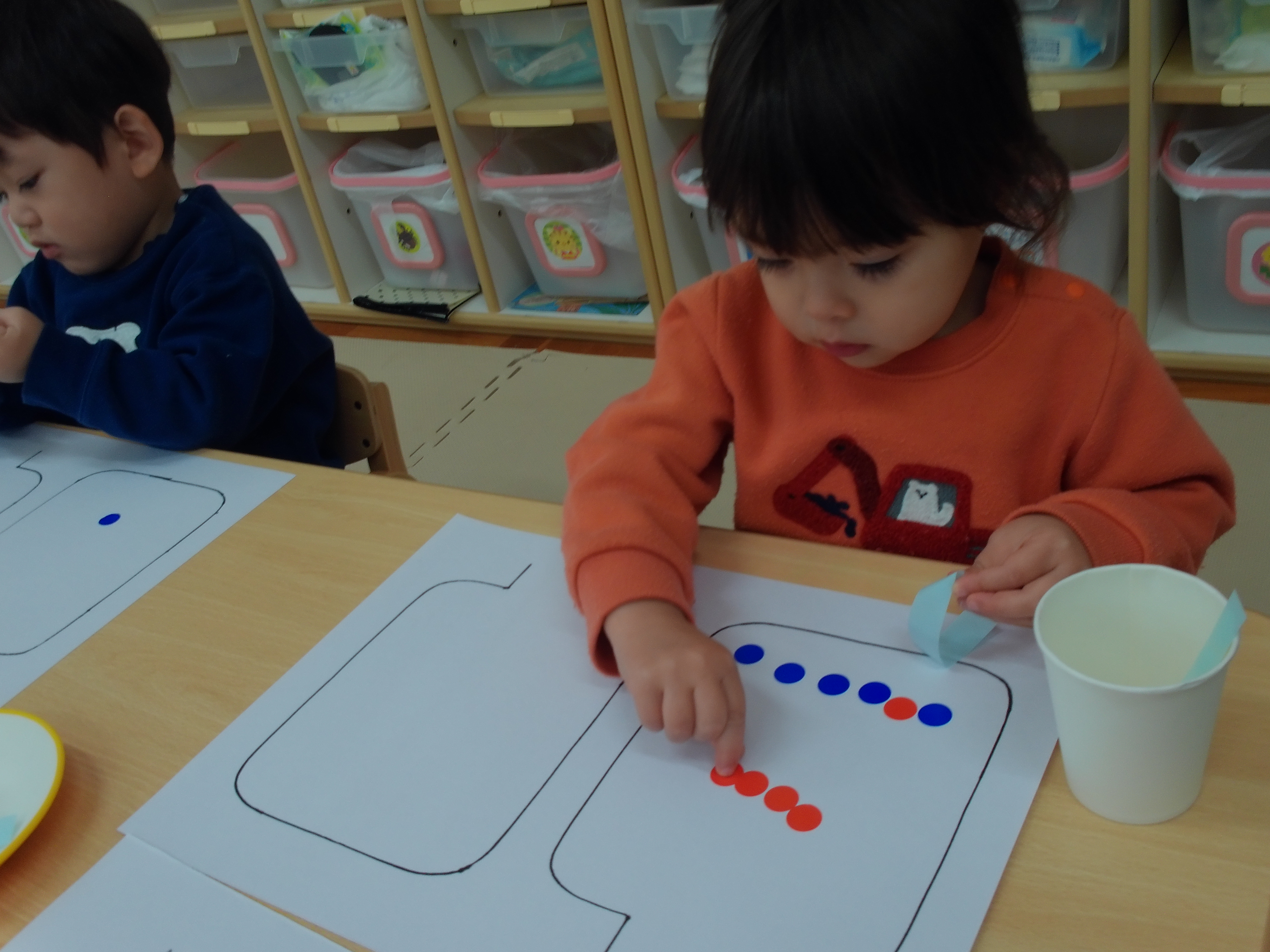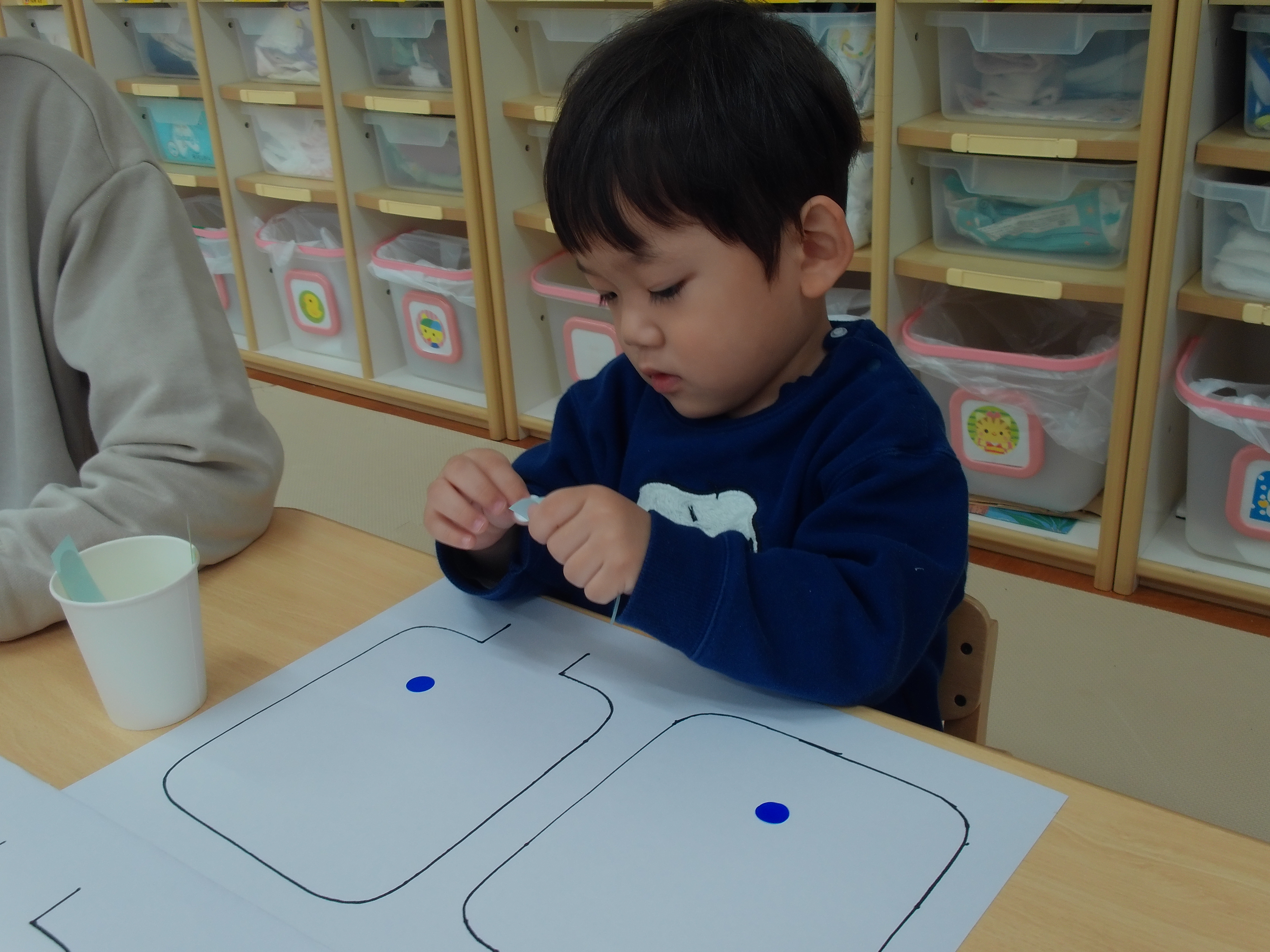 10 12月 2025 美木多 幼稚園 美木多チコスブログ 2025年12月10日 美木多 幼稚園 シール(つき組) お部屋でしばらく遊んだあとは、シール貼りの時間になりました。補助線が複雑です。しっかり貼っています。