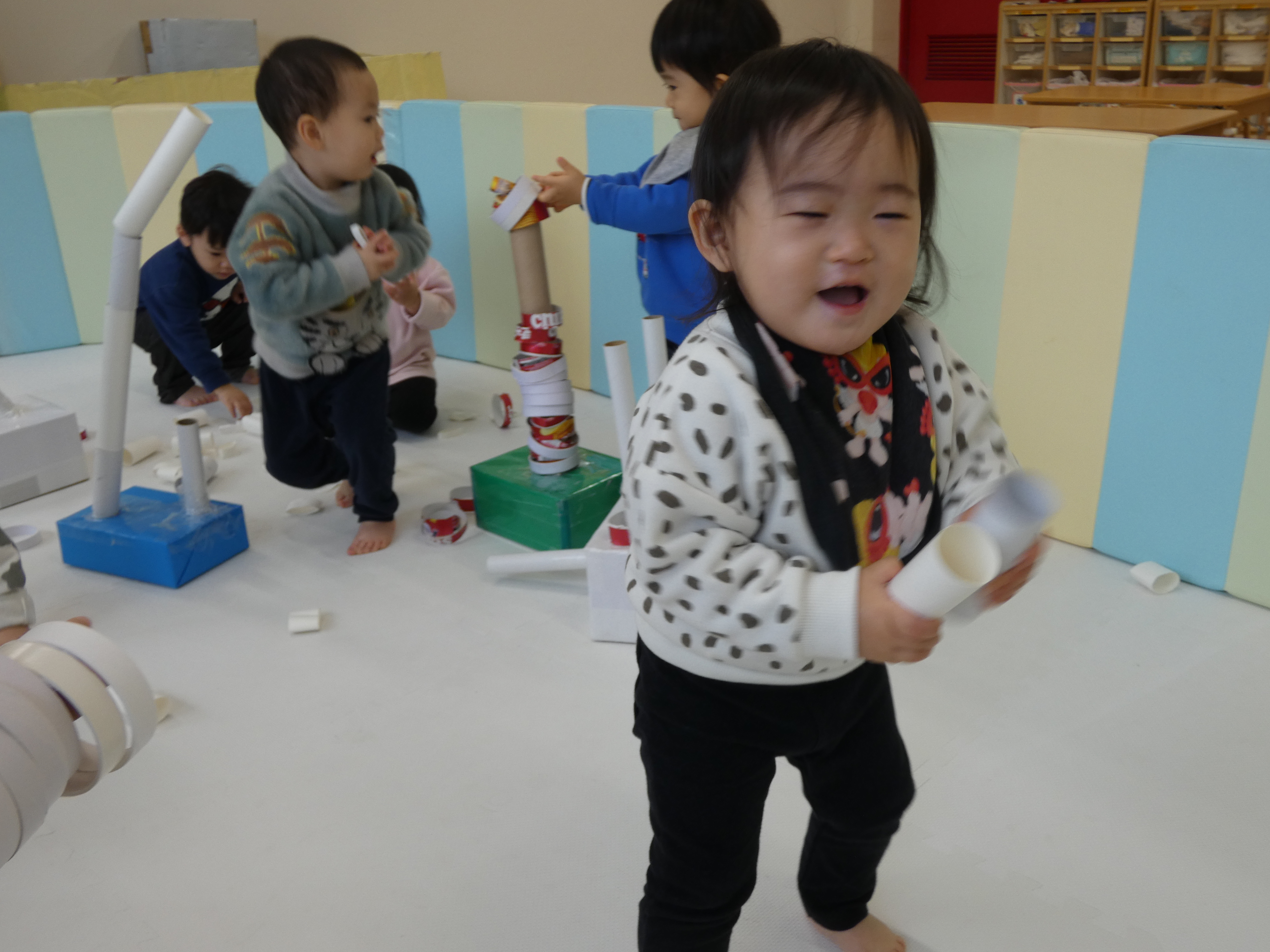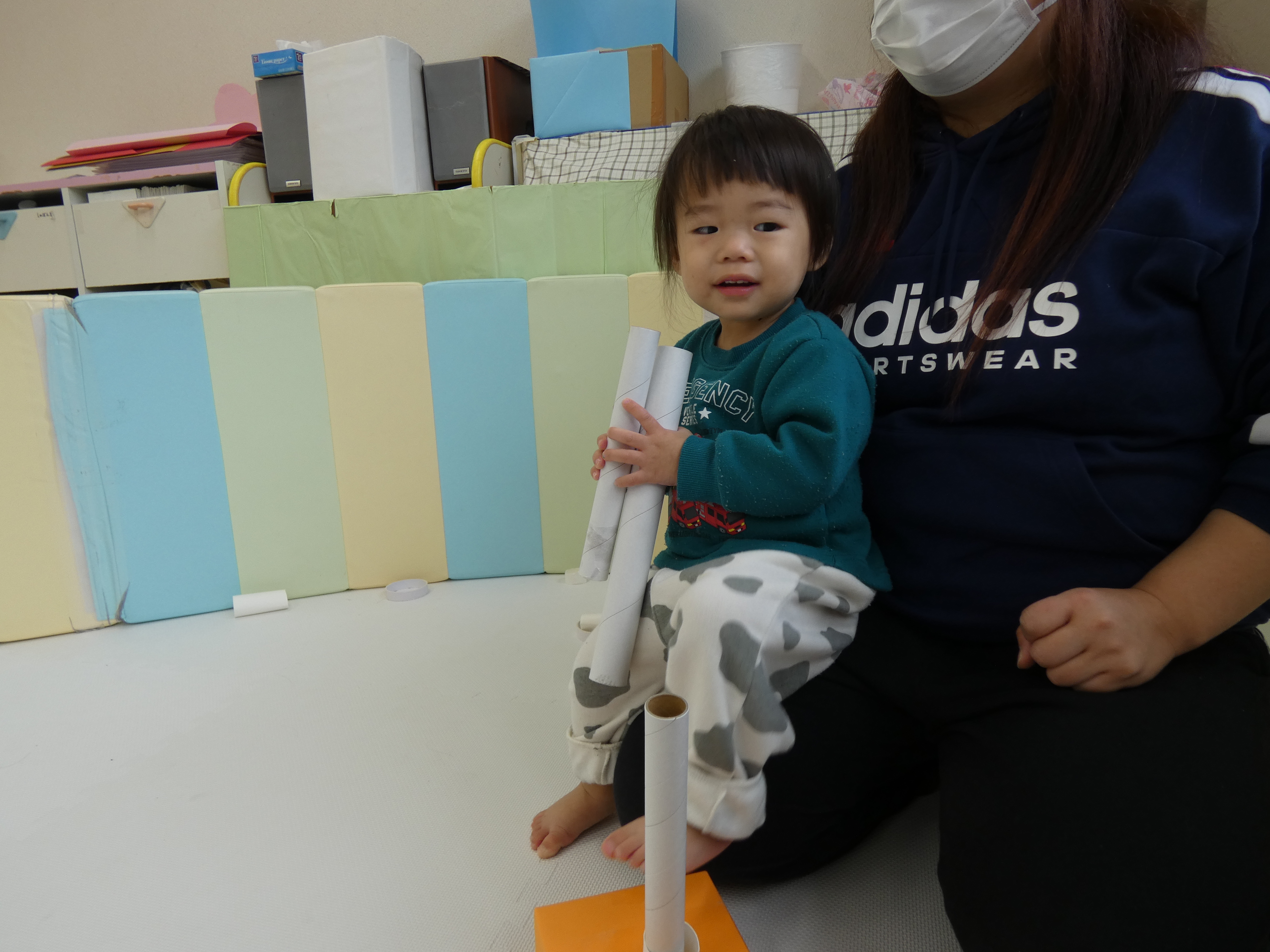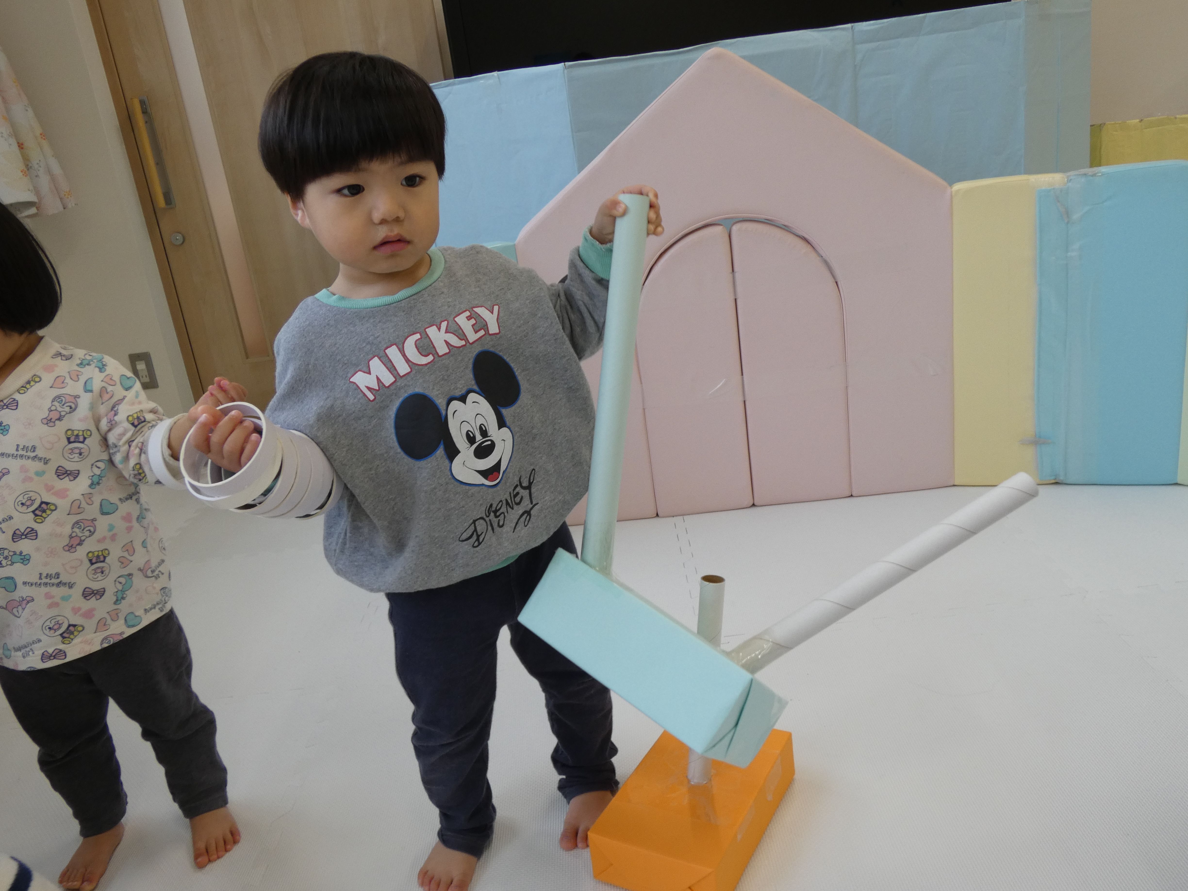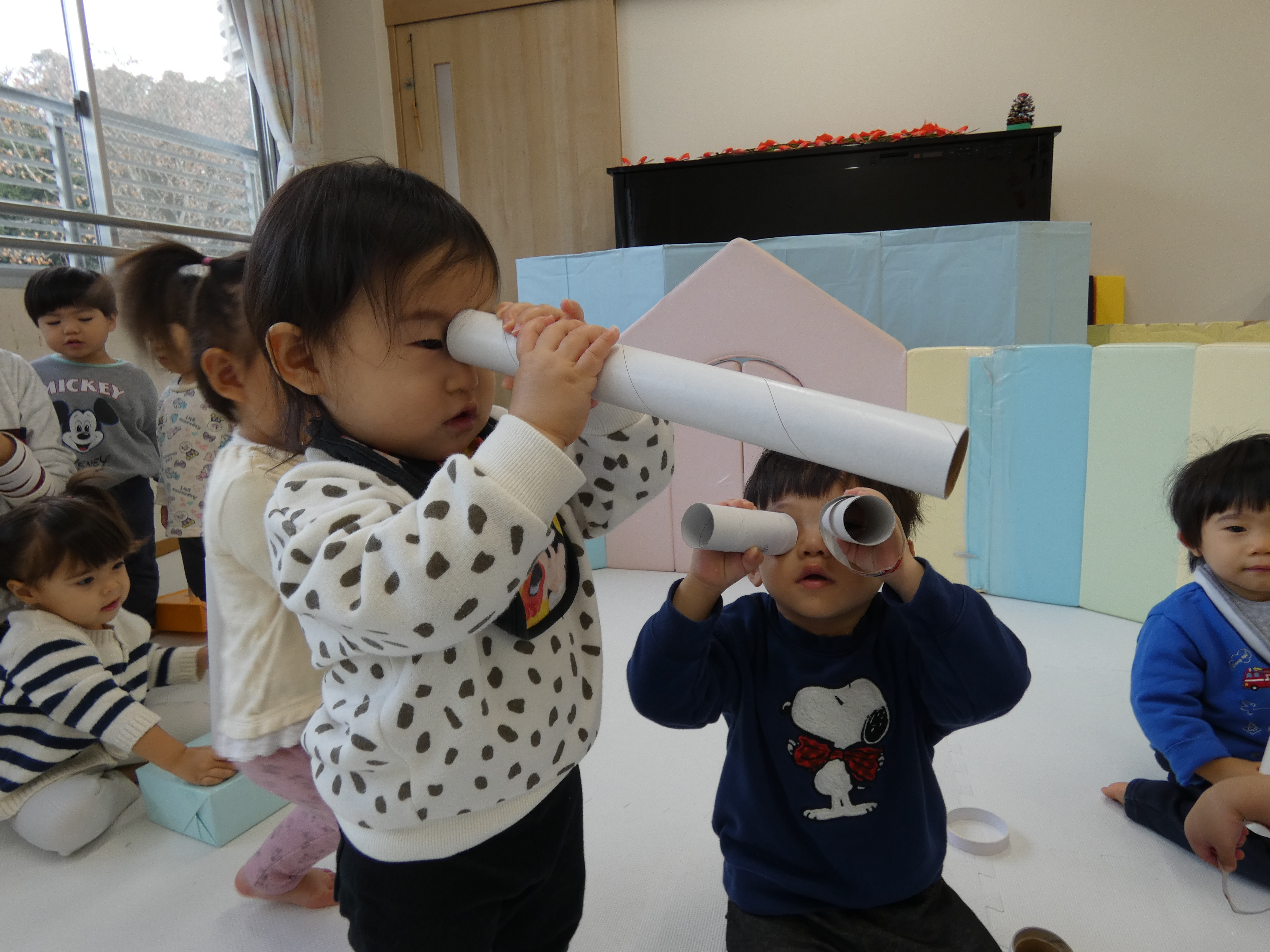 15 12月 2025 美木多 幼稚園 美木多チコスブログ 2025年12月15日 美木多 幼稚園 芯材遊び(つき組) いろいろな長さのラップそ芯で遊びました。つなげたり、さしたり、覗いたり、五感をフルに使って遊びました。