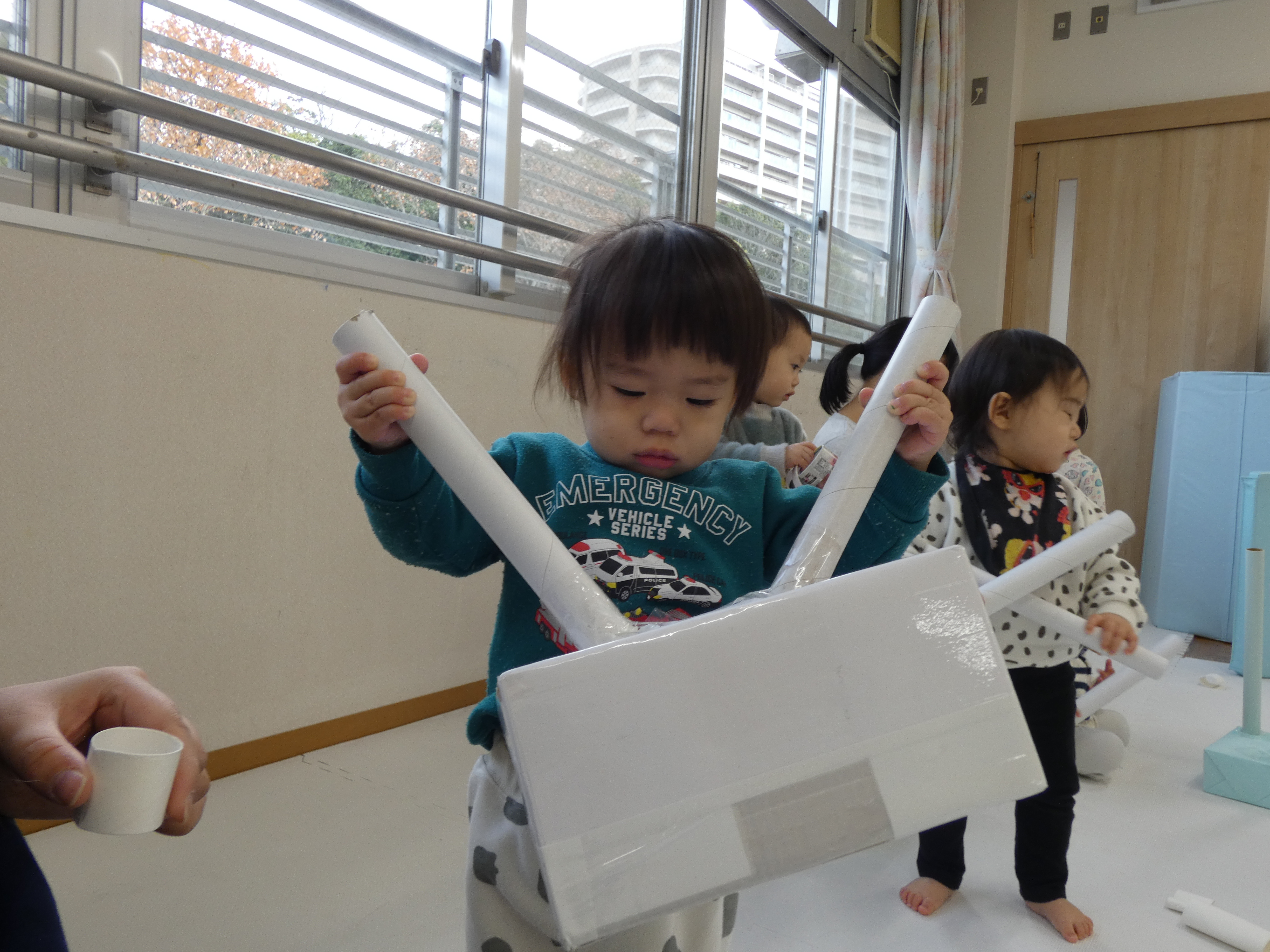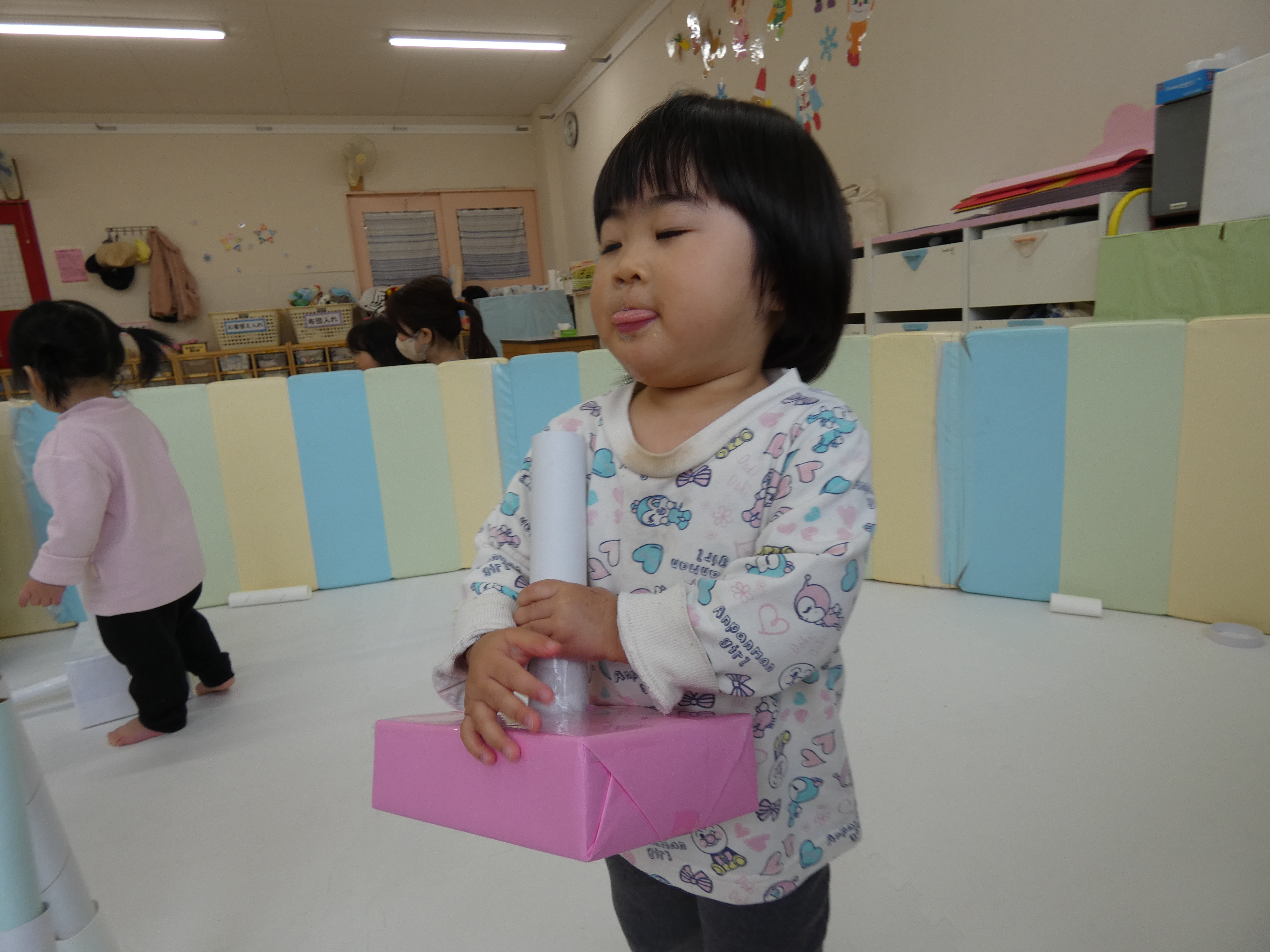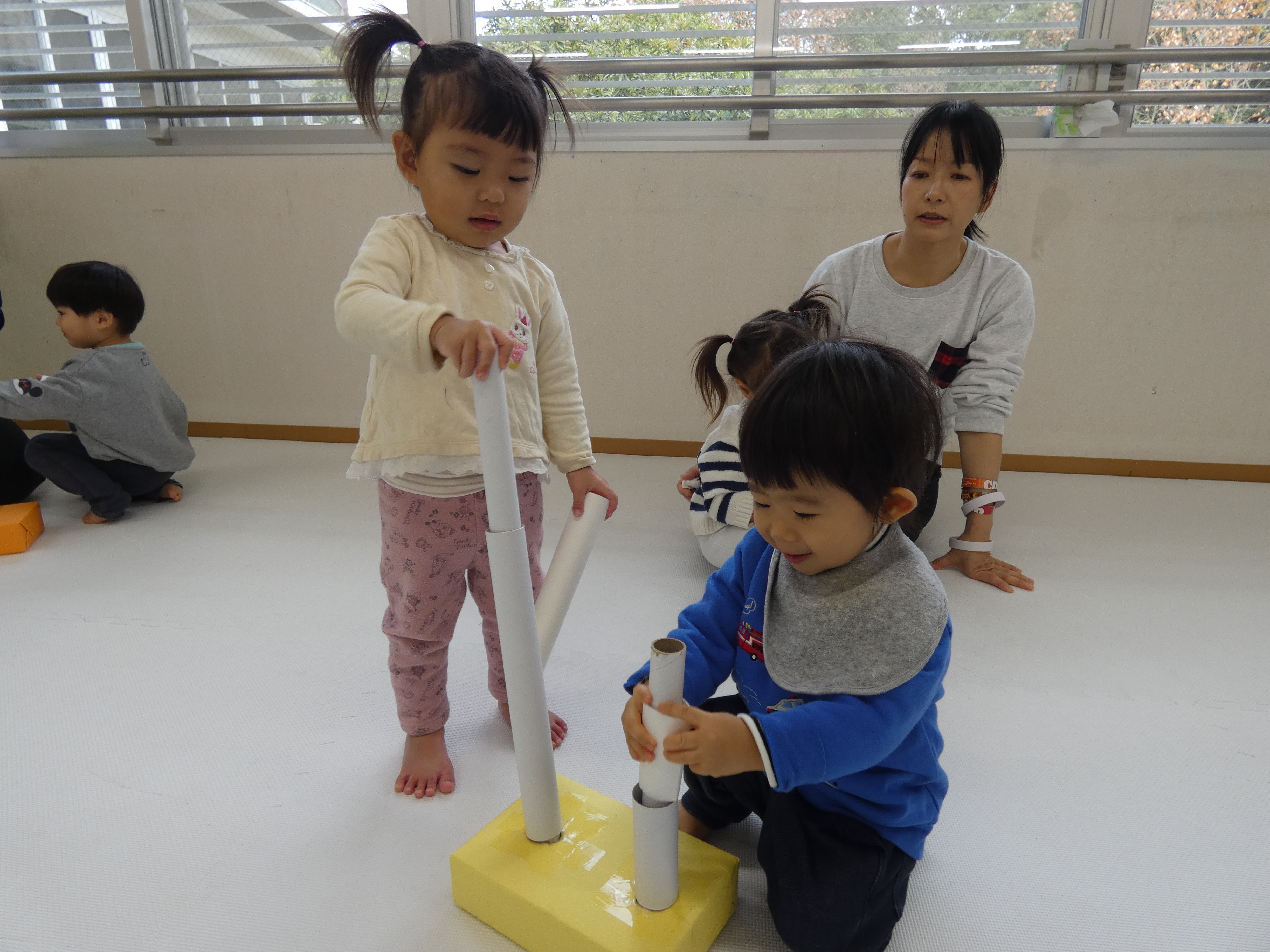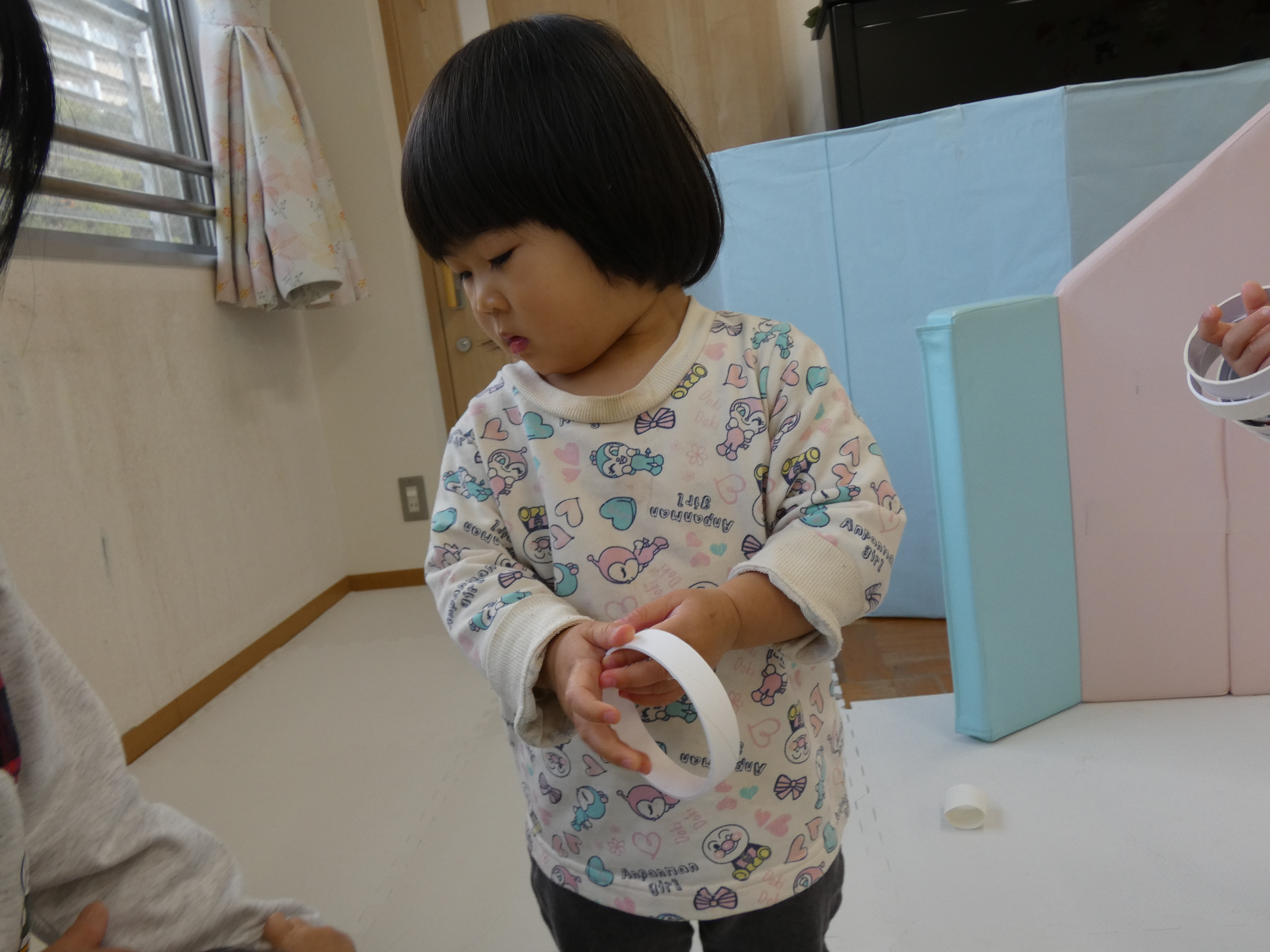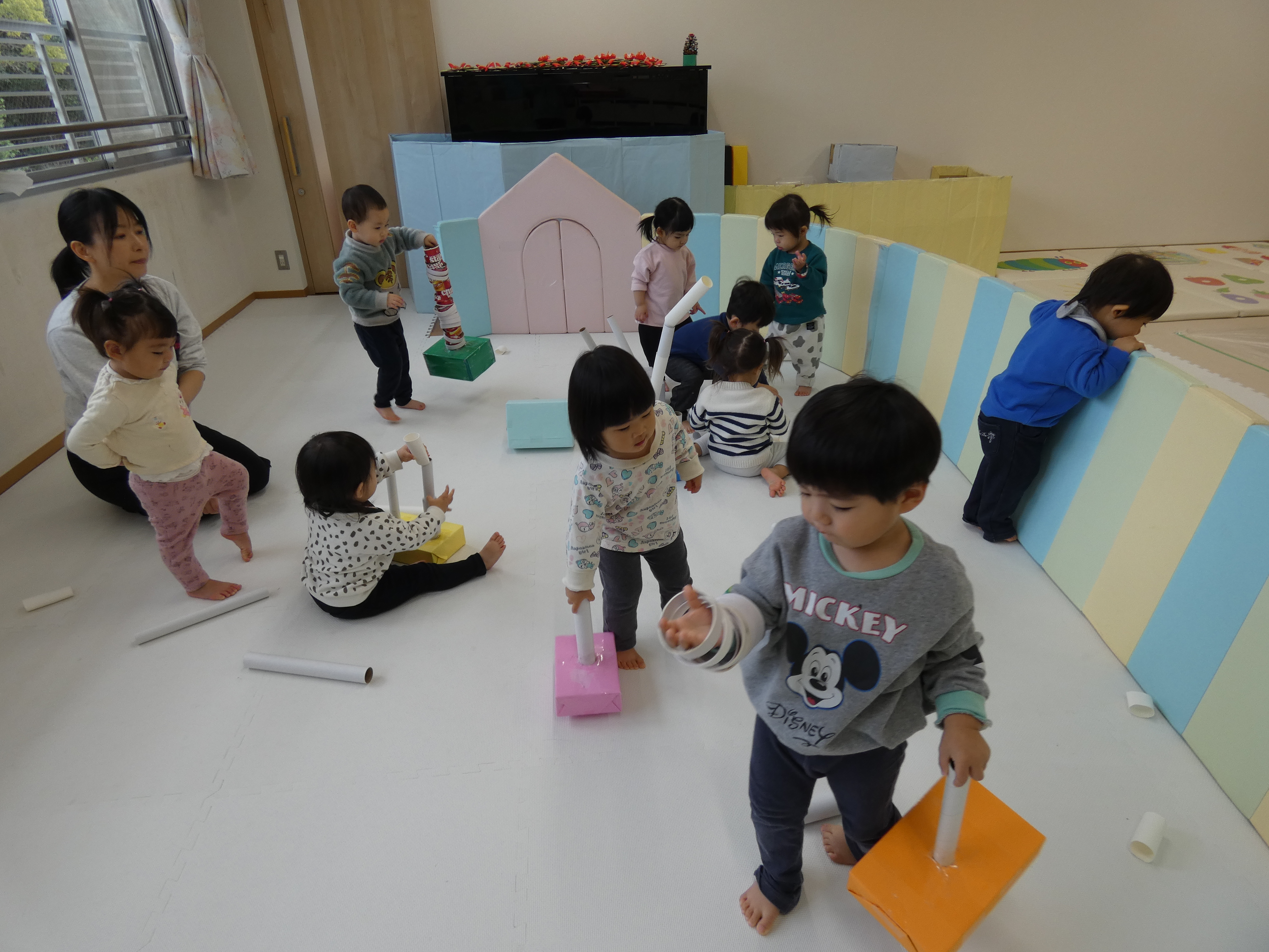 15 12月 2025 美木多 幼稚園 美木多チコスブログ 2025年12月15日 美木多 幼稚園 芯材遊び(つき組) いろいろな長さのラップそ芯で遊びました。つなげたり、さしたり、覗いたり、五感をフルに使って遊びました。