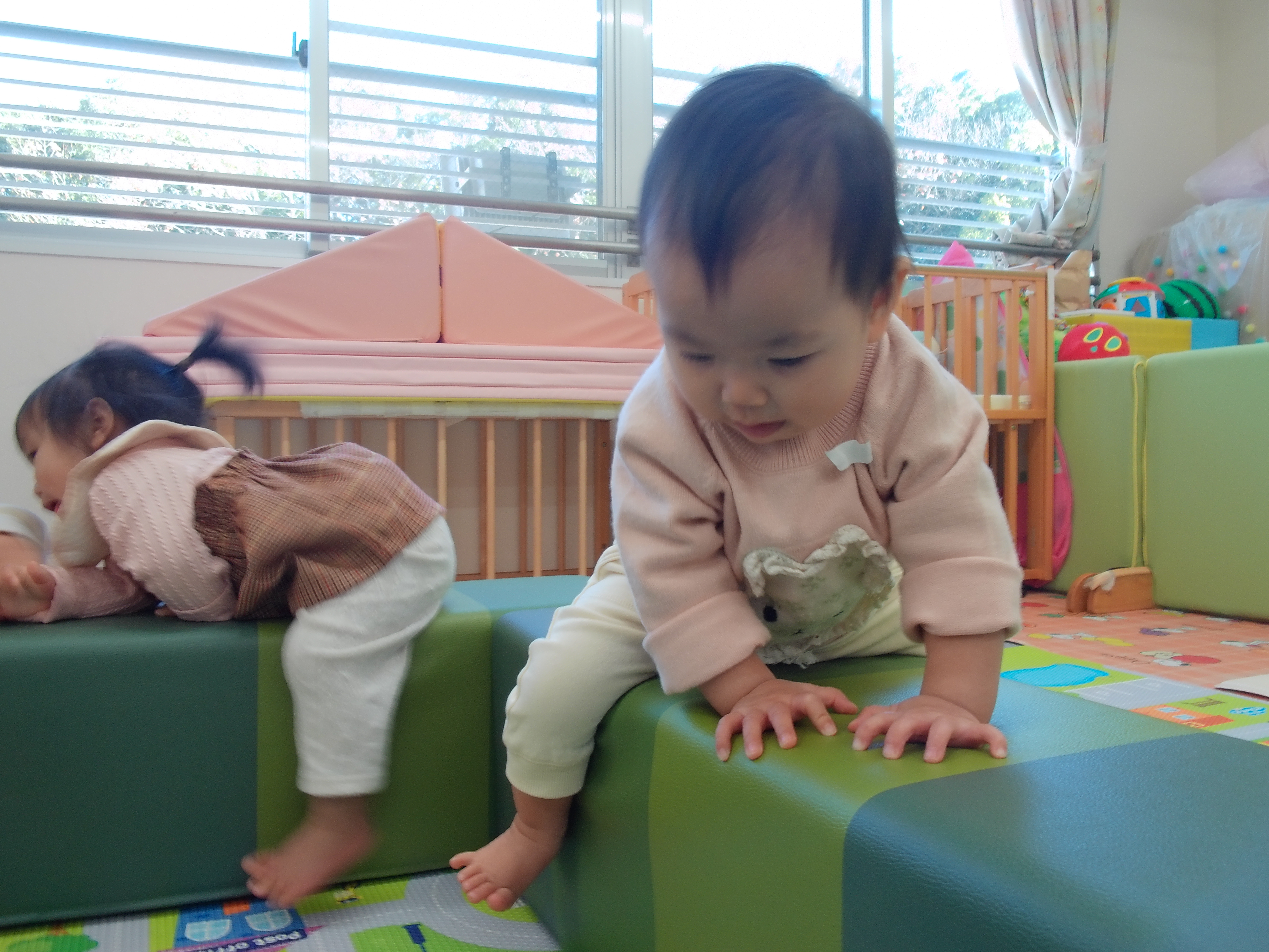 06 1月 2026 美木多 幼稚園 美木多チコスブログ 2026年1月6日 美木多 幼稚園 砦ができた。まけるもんか。(ほし組) 先生がマットで砦を作りました。みんなも負けていません。よじ登って、すぐに征服しました。楽しく遊びました。