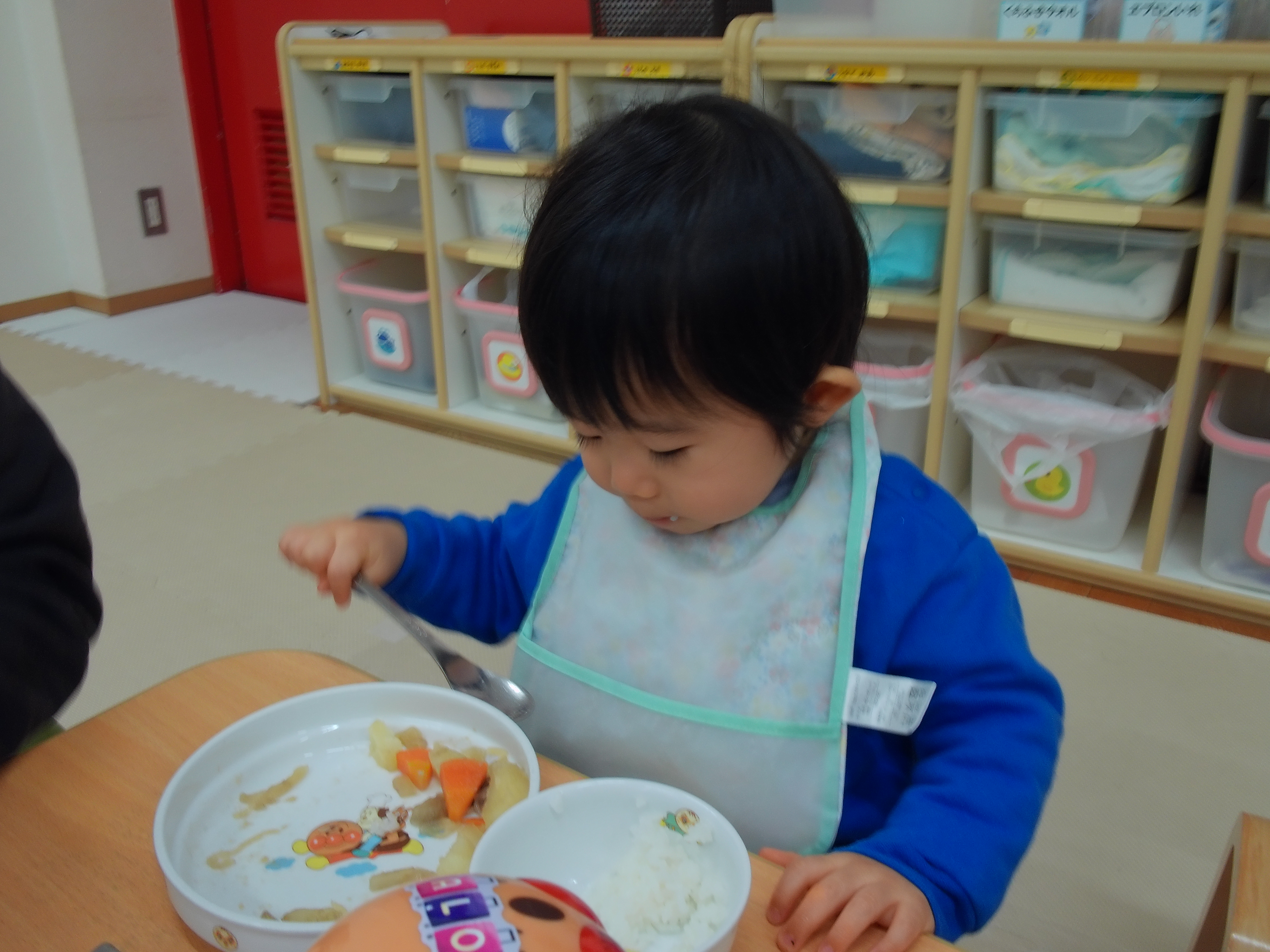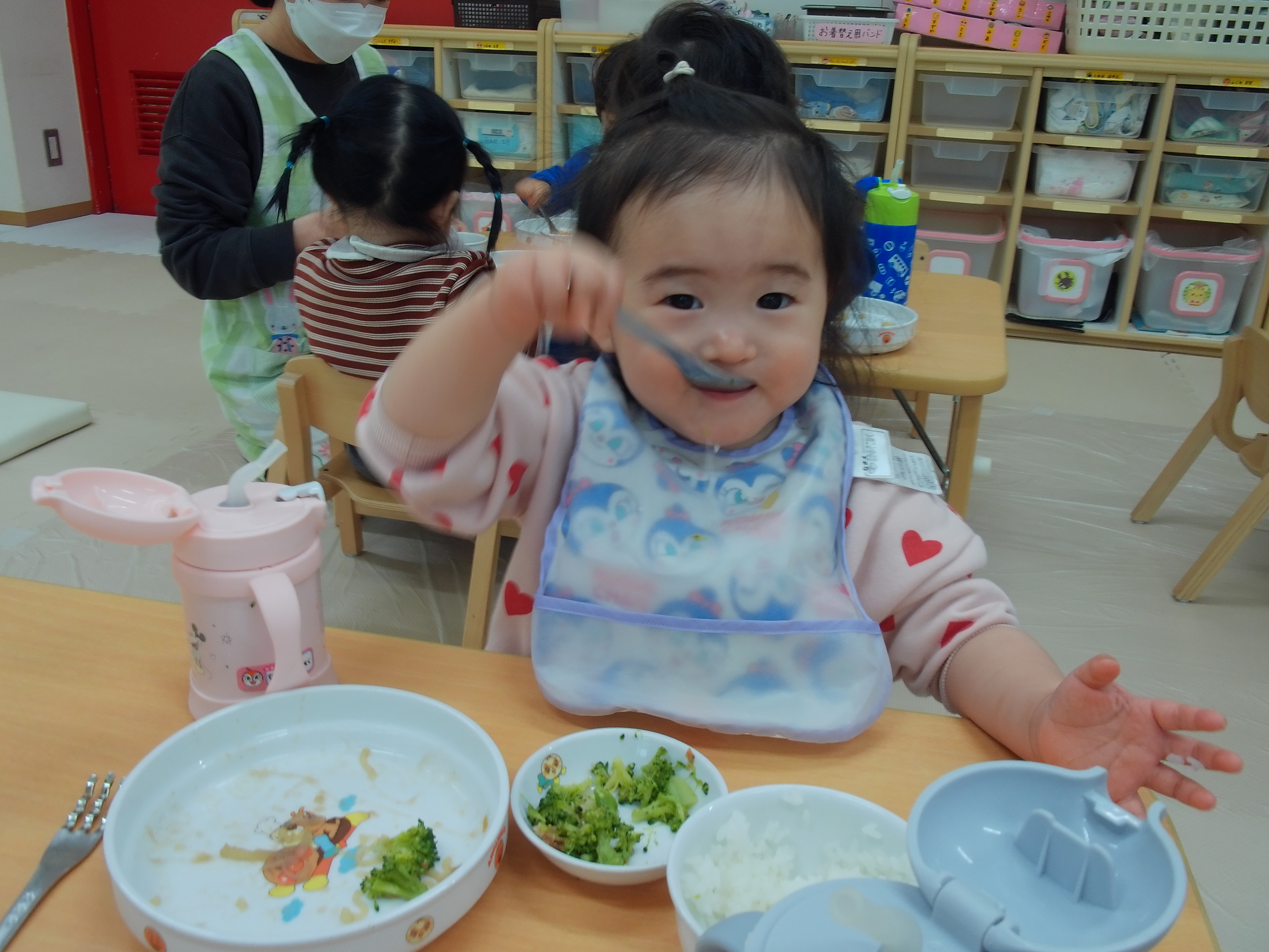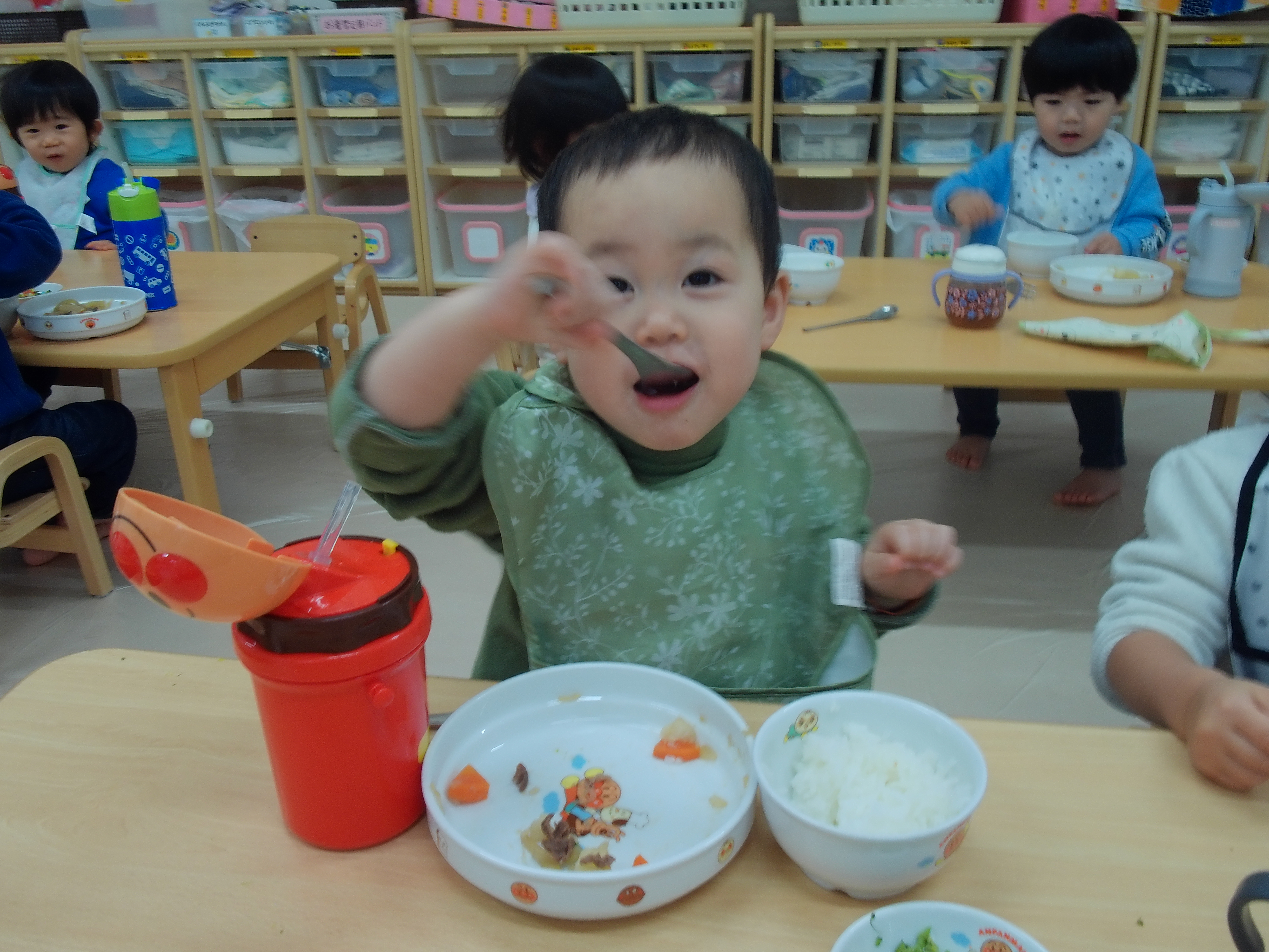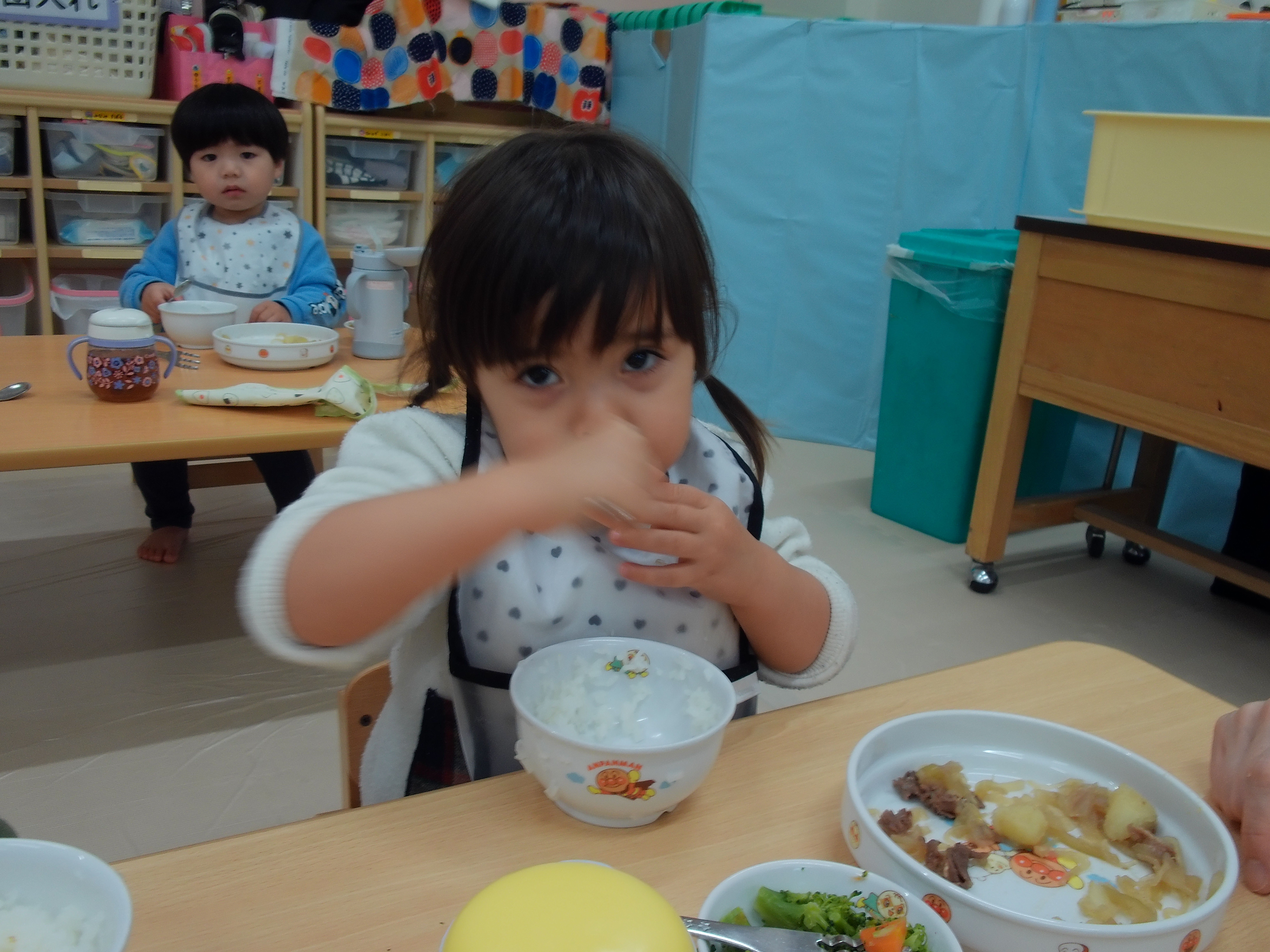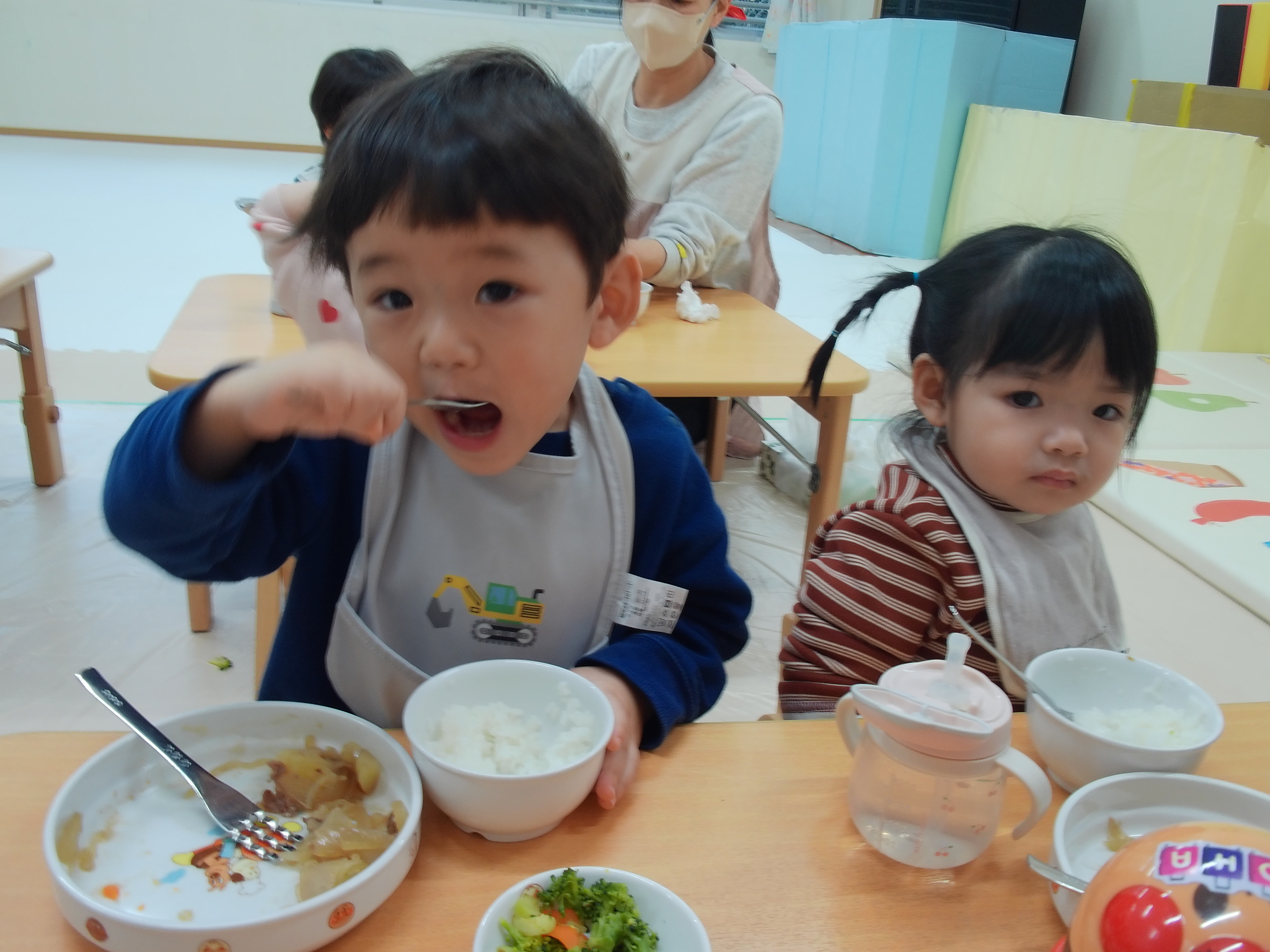 たくさん遊んだ後は給食です。今日も美味しくいただきました!!