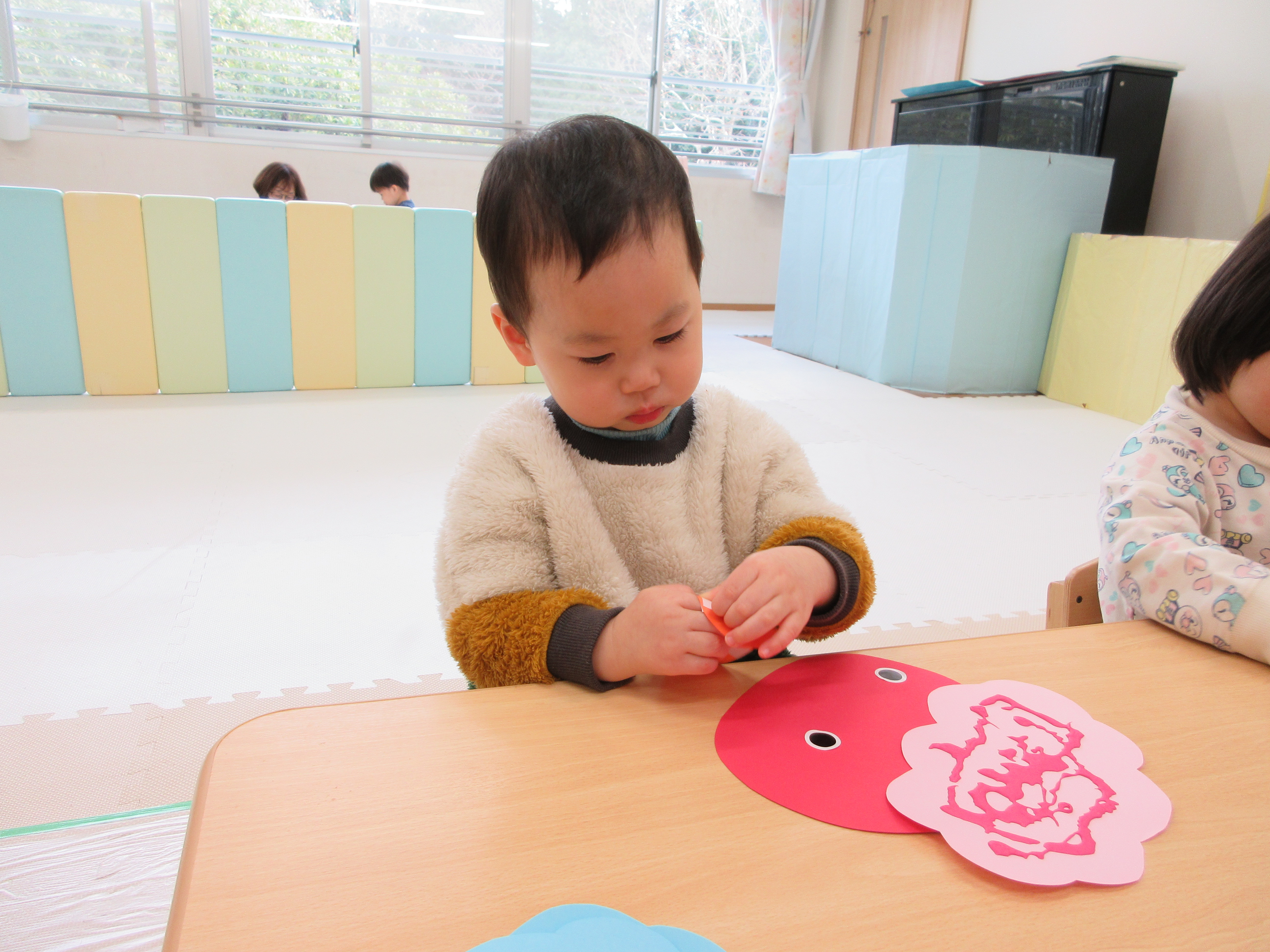 20 1月 2026 美木多 幼稚園 美木多チコスブログ 2026年1月20日 美木多 幼稚園 鬼の制作(つき組) 鬼の制作の仕上げをしました!! 出来上がるとみんな嬉しそう「見てみて~」とどことなく自分に似た鬼さんを見せてくれました。