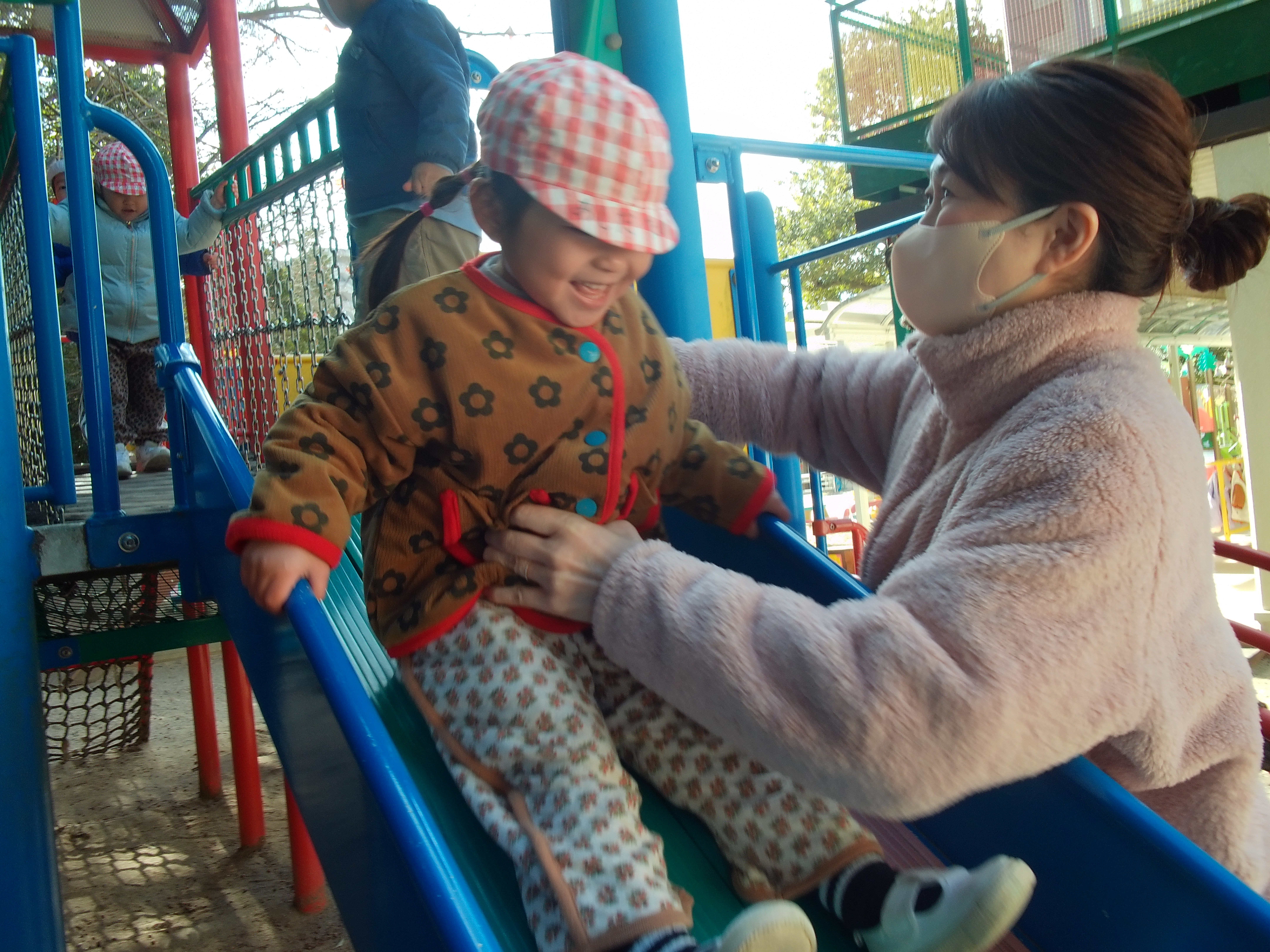 29 1月 2026 美木多 幼稚園 美木多チコスブログ 2026年1月29日 美木多 幼稚園 園庭で元気いっぱい(そら組) 「お外に行くよ」と声をかけると「やったー!!」と準備に取りかかったそら組さん!! すべり台を何度も滑り、最後はテーブルで女子会が始まりました♪