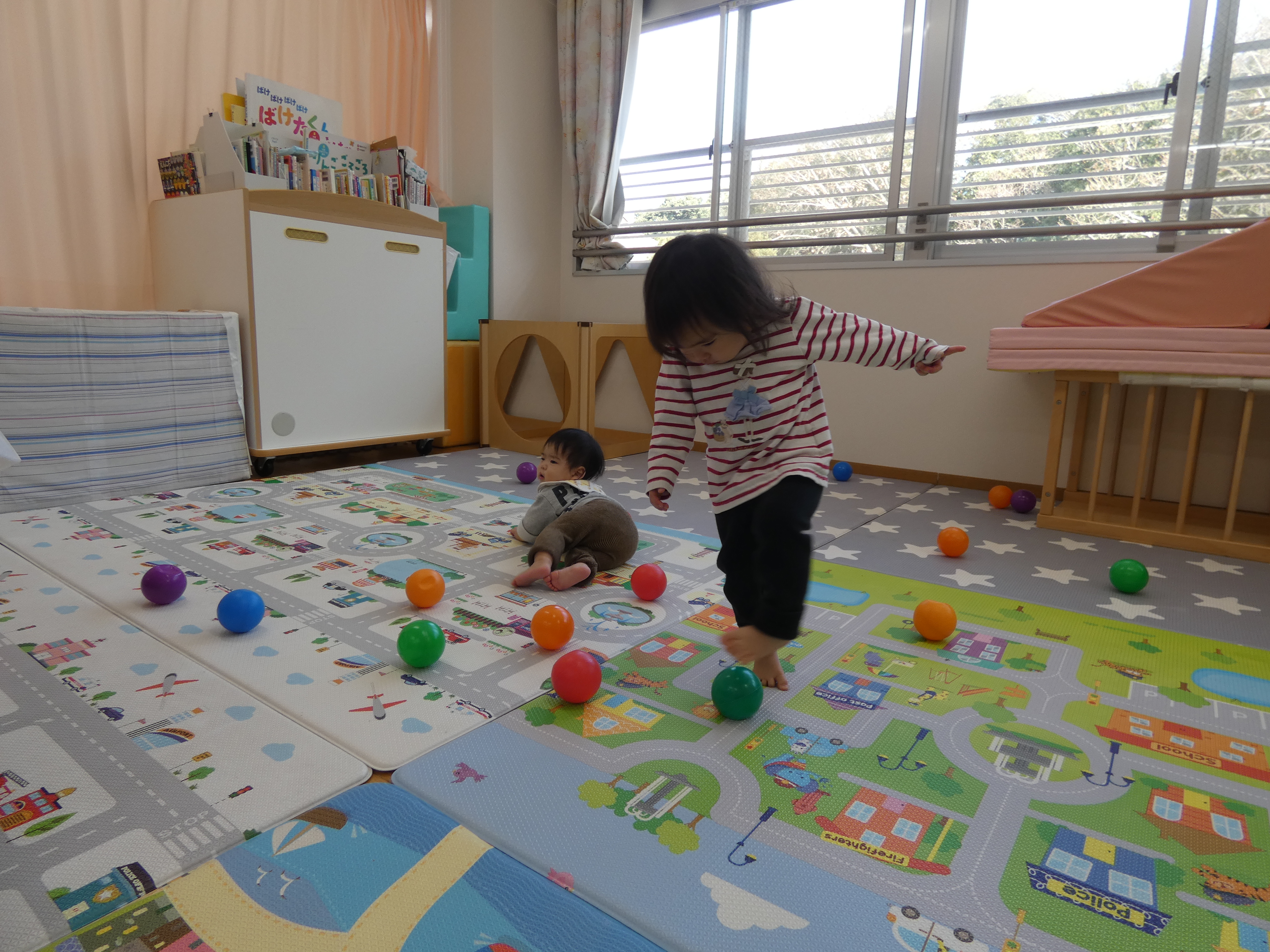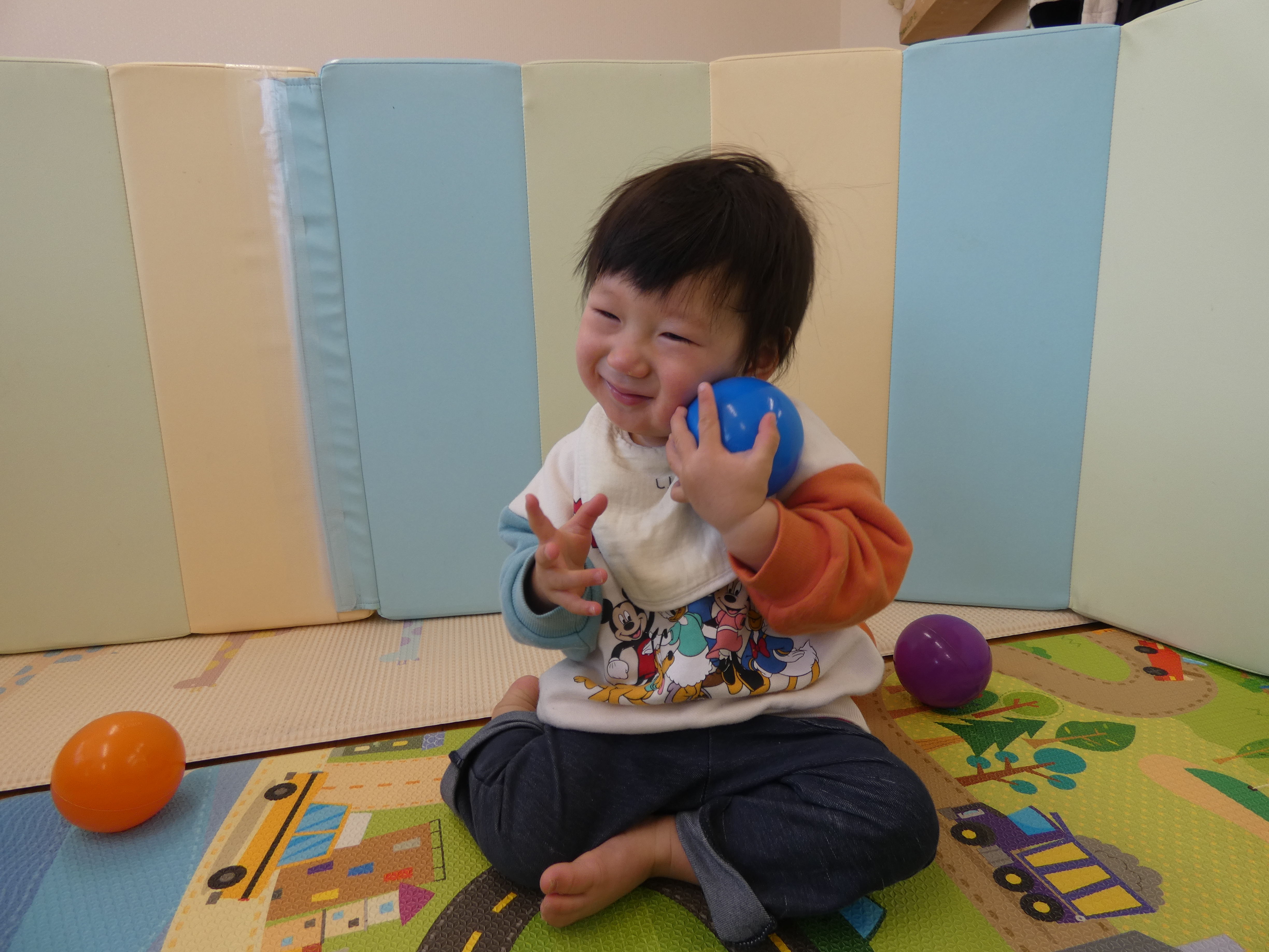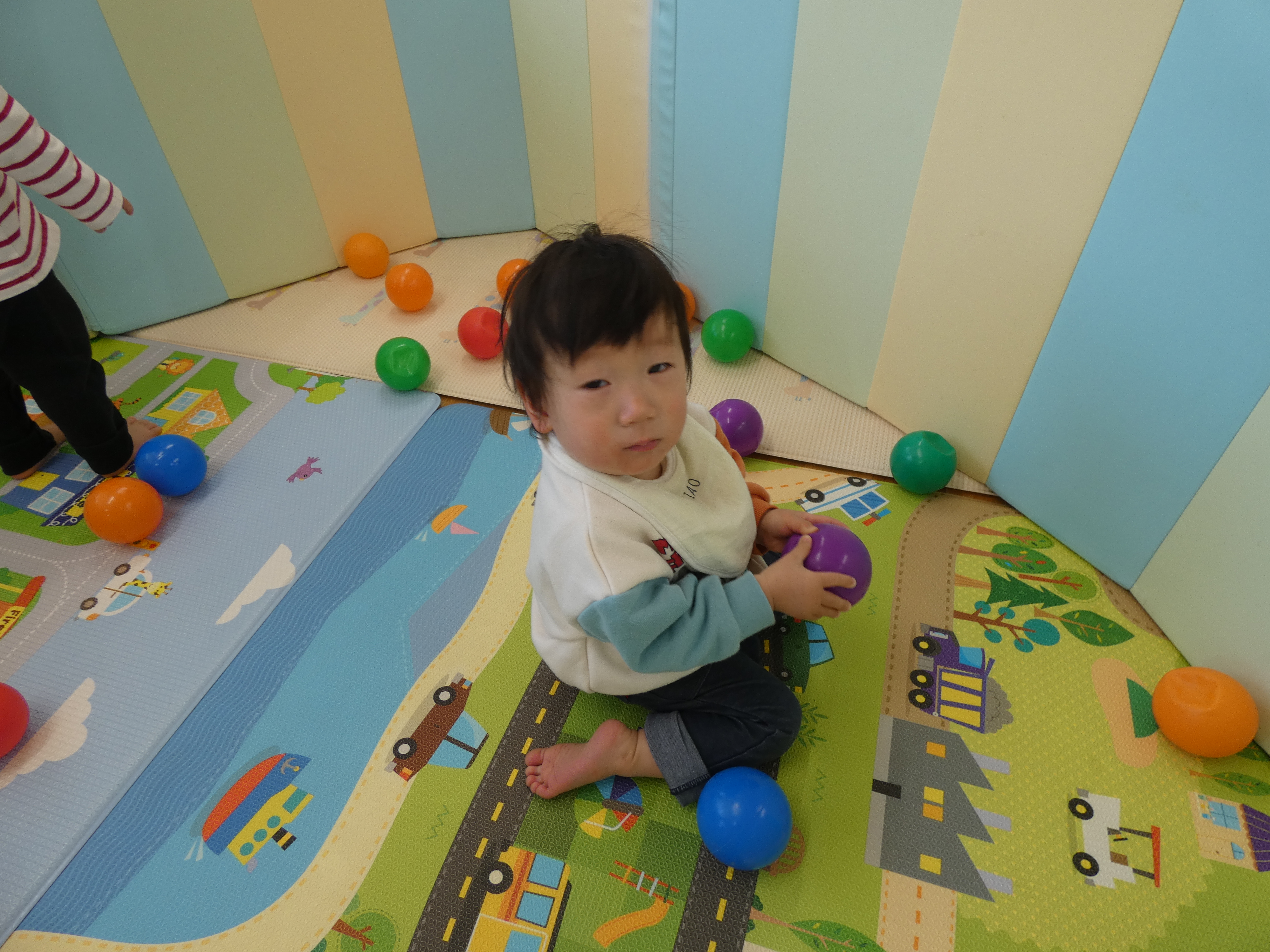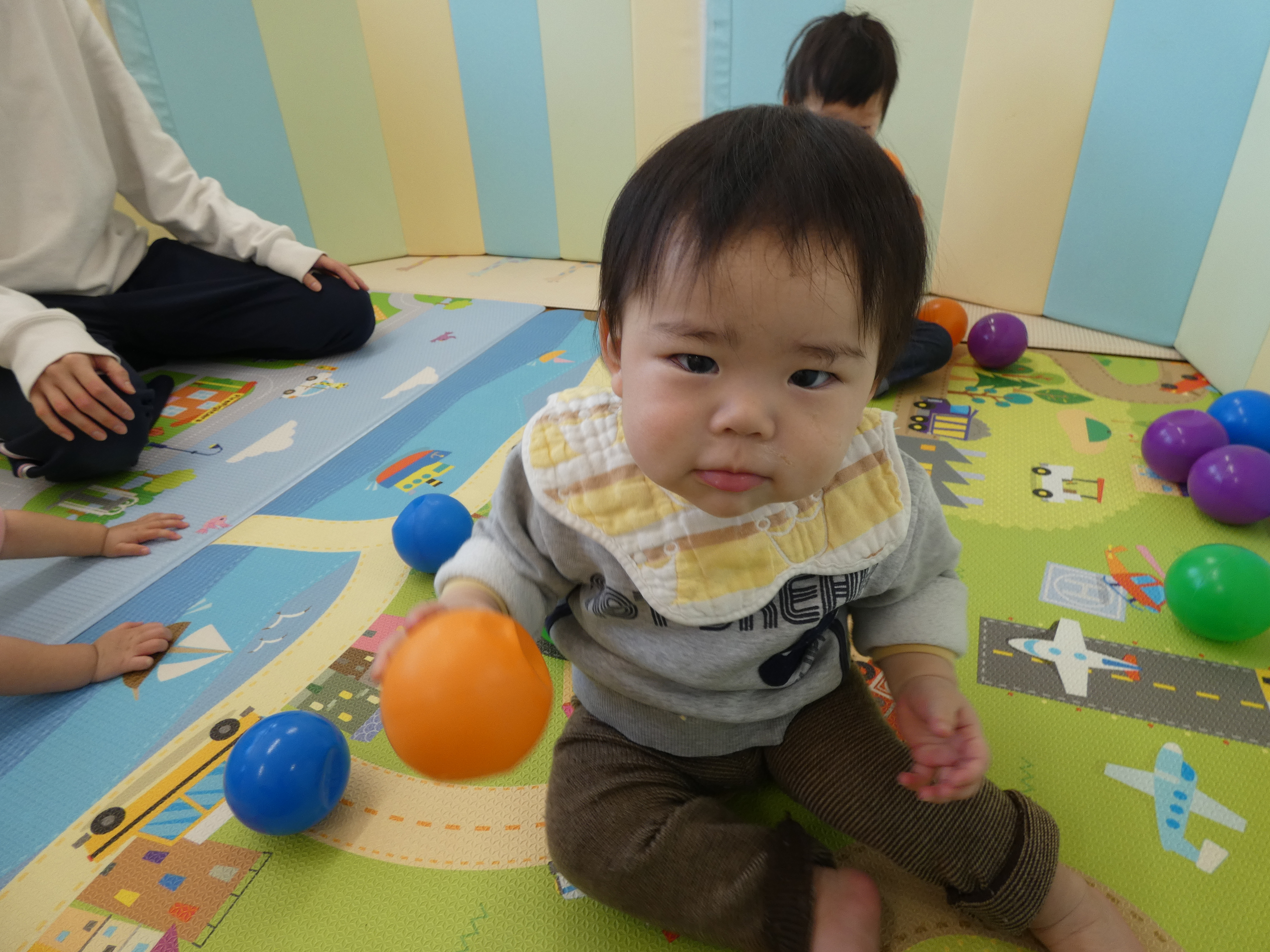 ボールで遊んだ今日のほし組さん。週明け、みんな元気です。