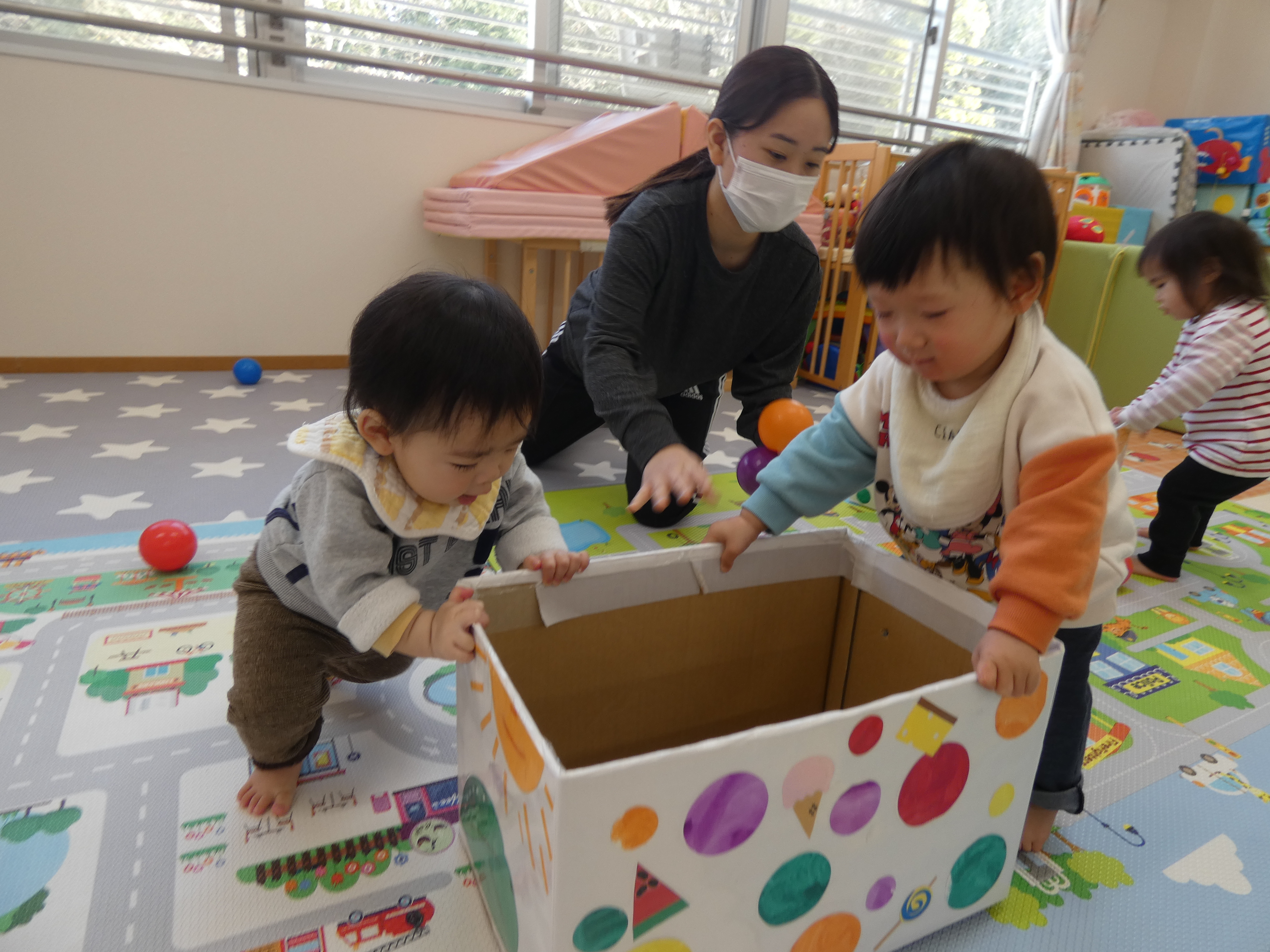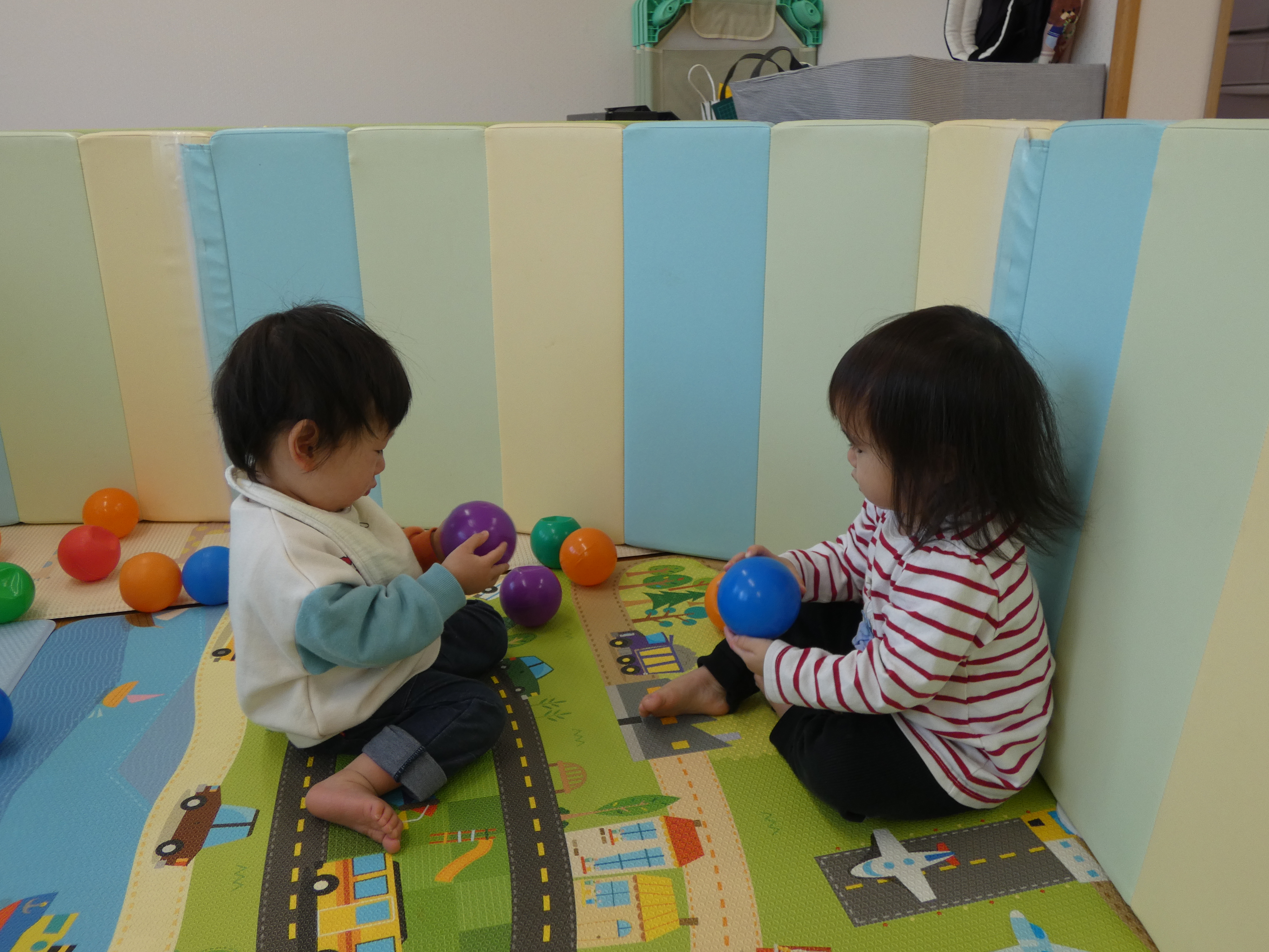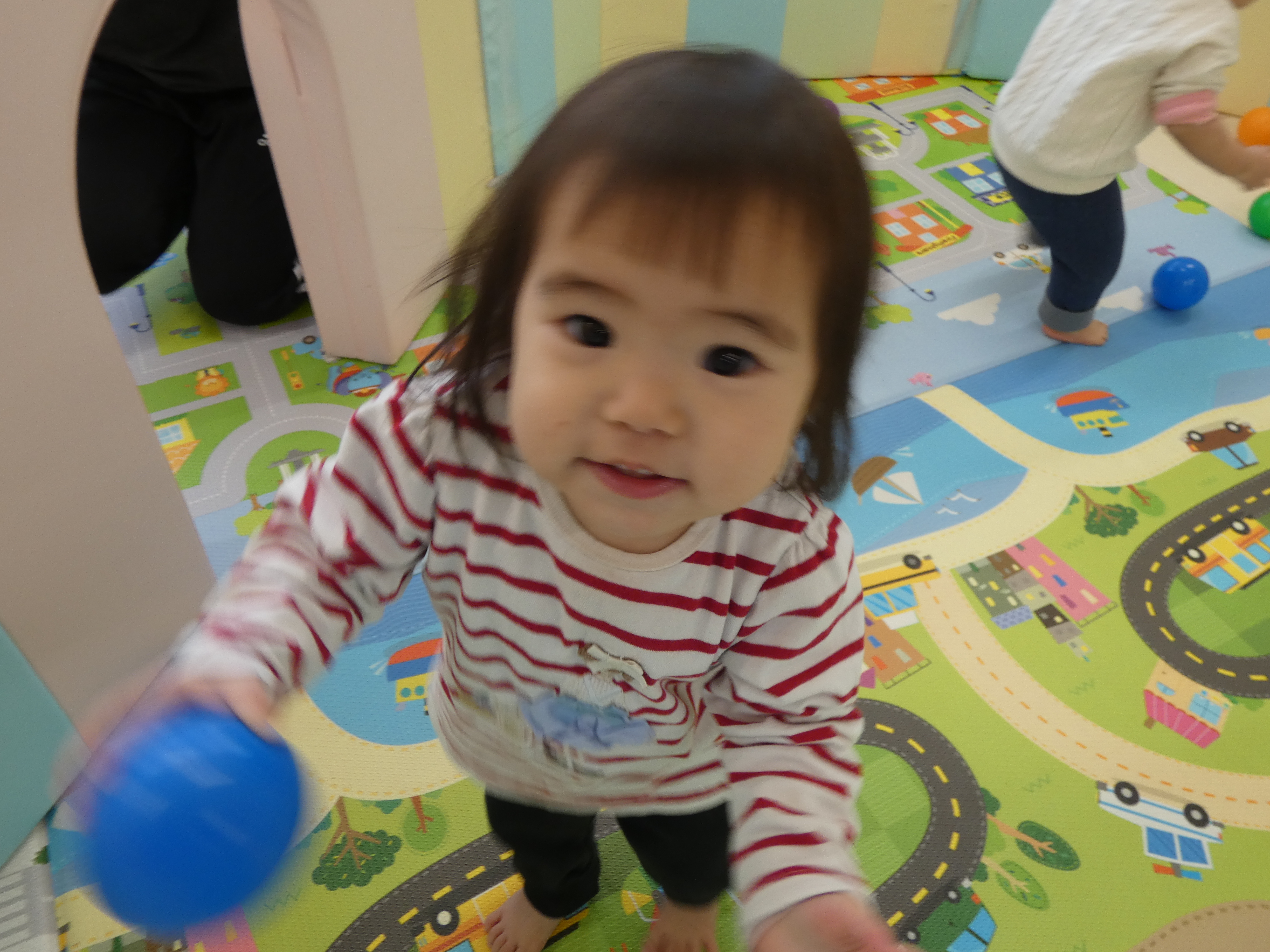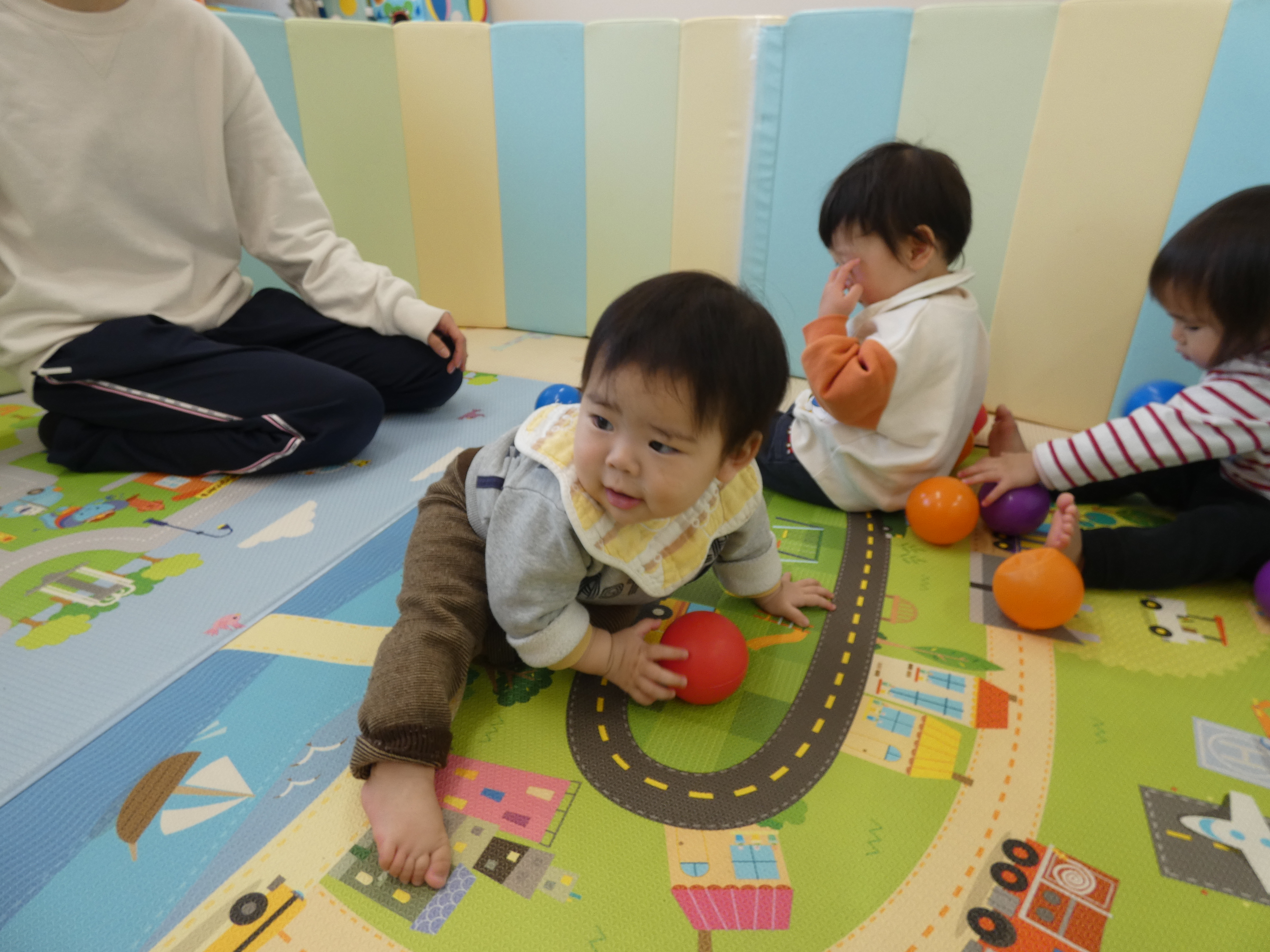 ボールで遊んだ今日のほし組さん。週明け、みんな元気です。