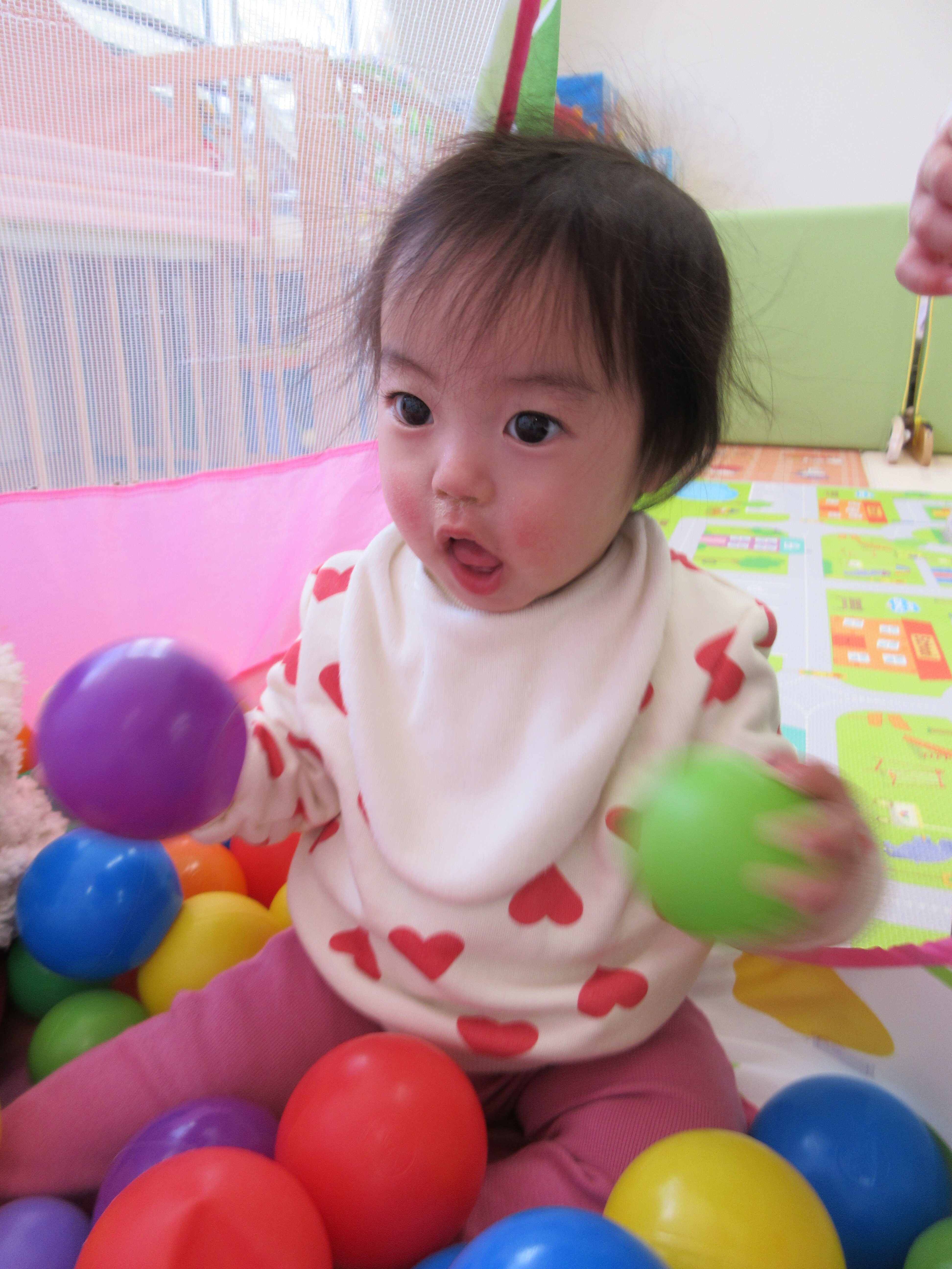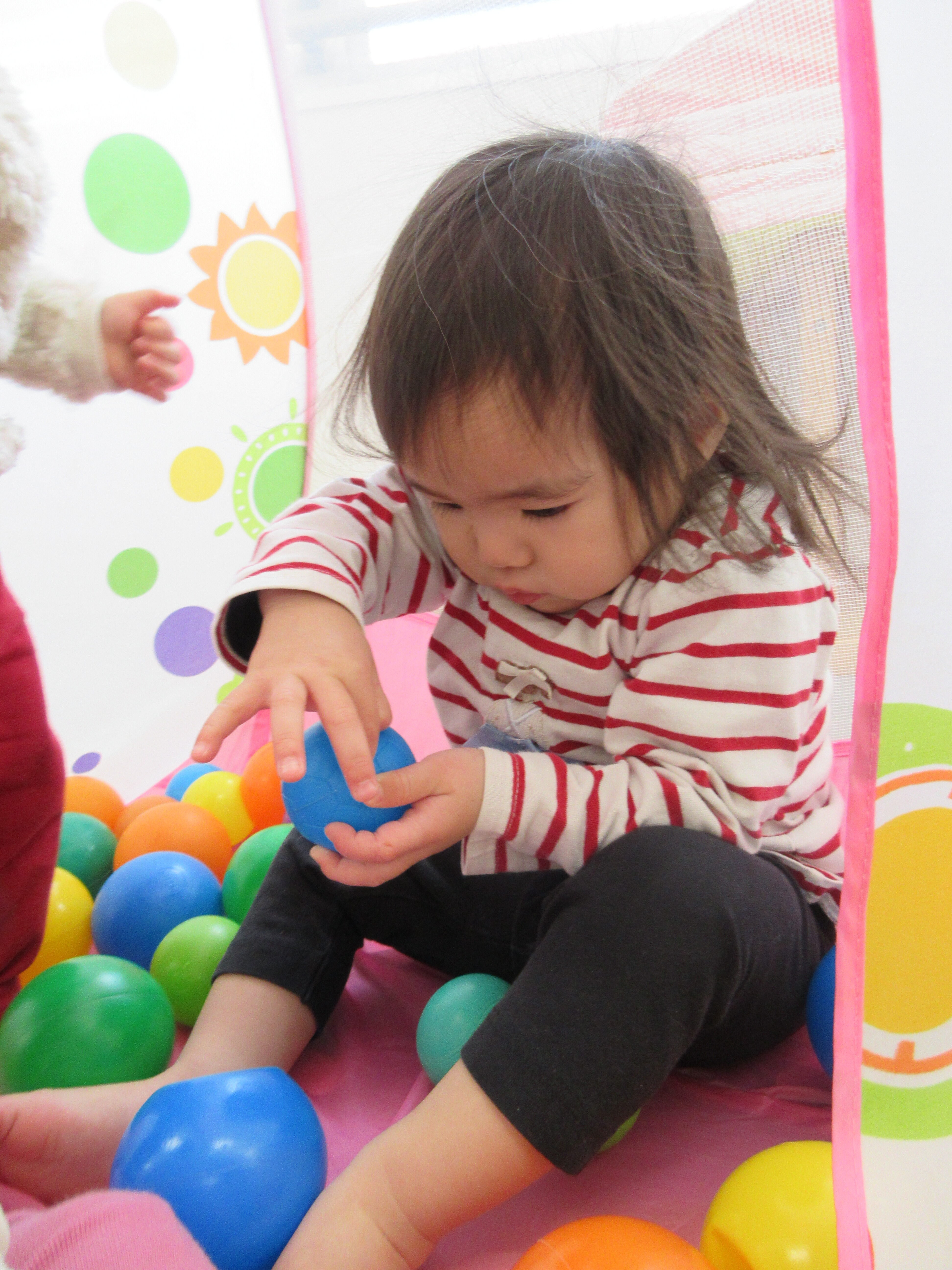 発表会でもつかうボールで遊びました。ボールの大きさにも慣れてきました。