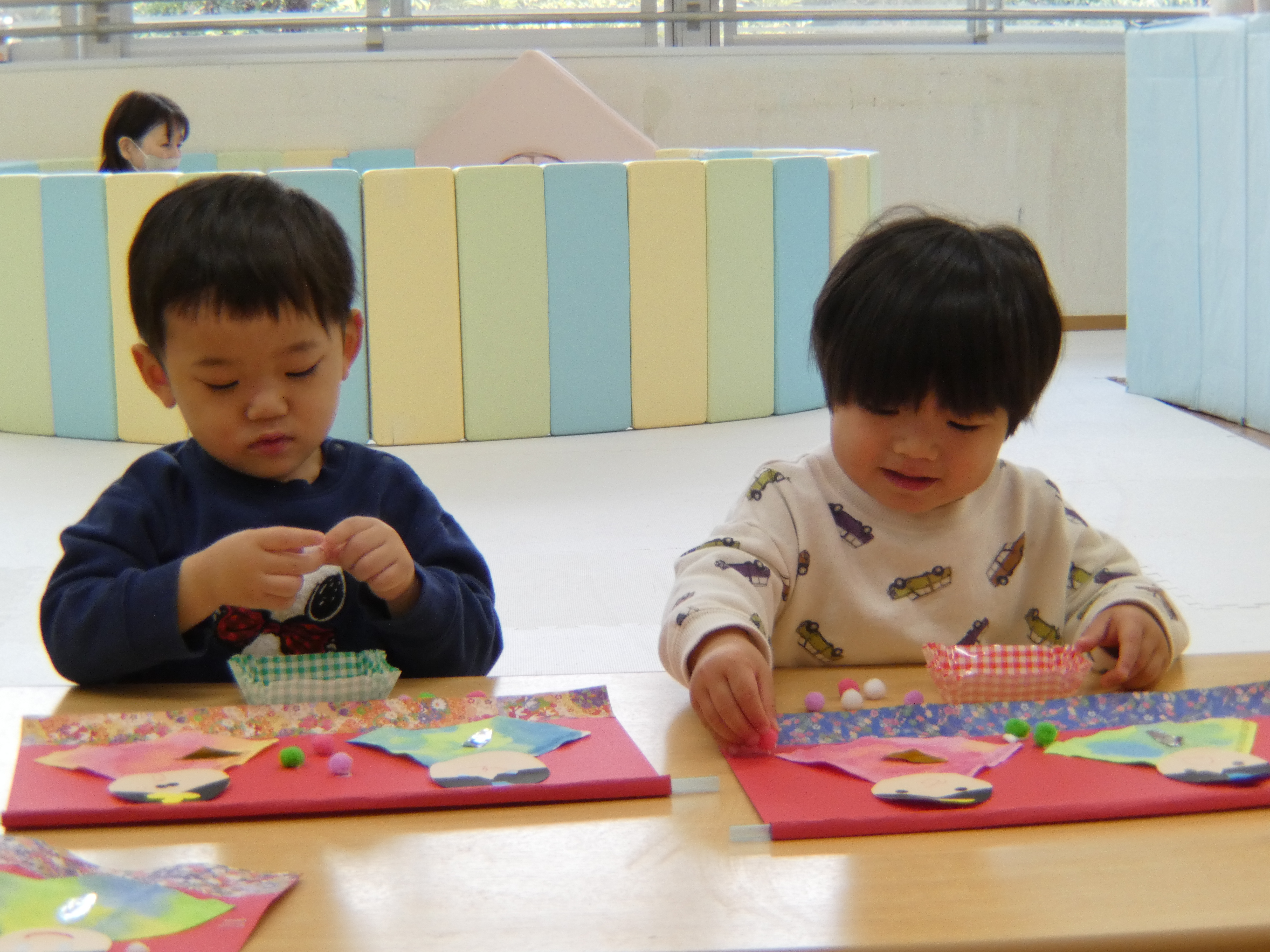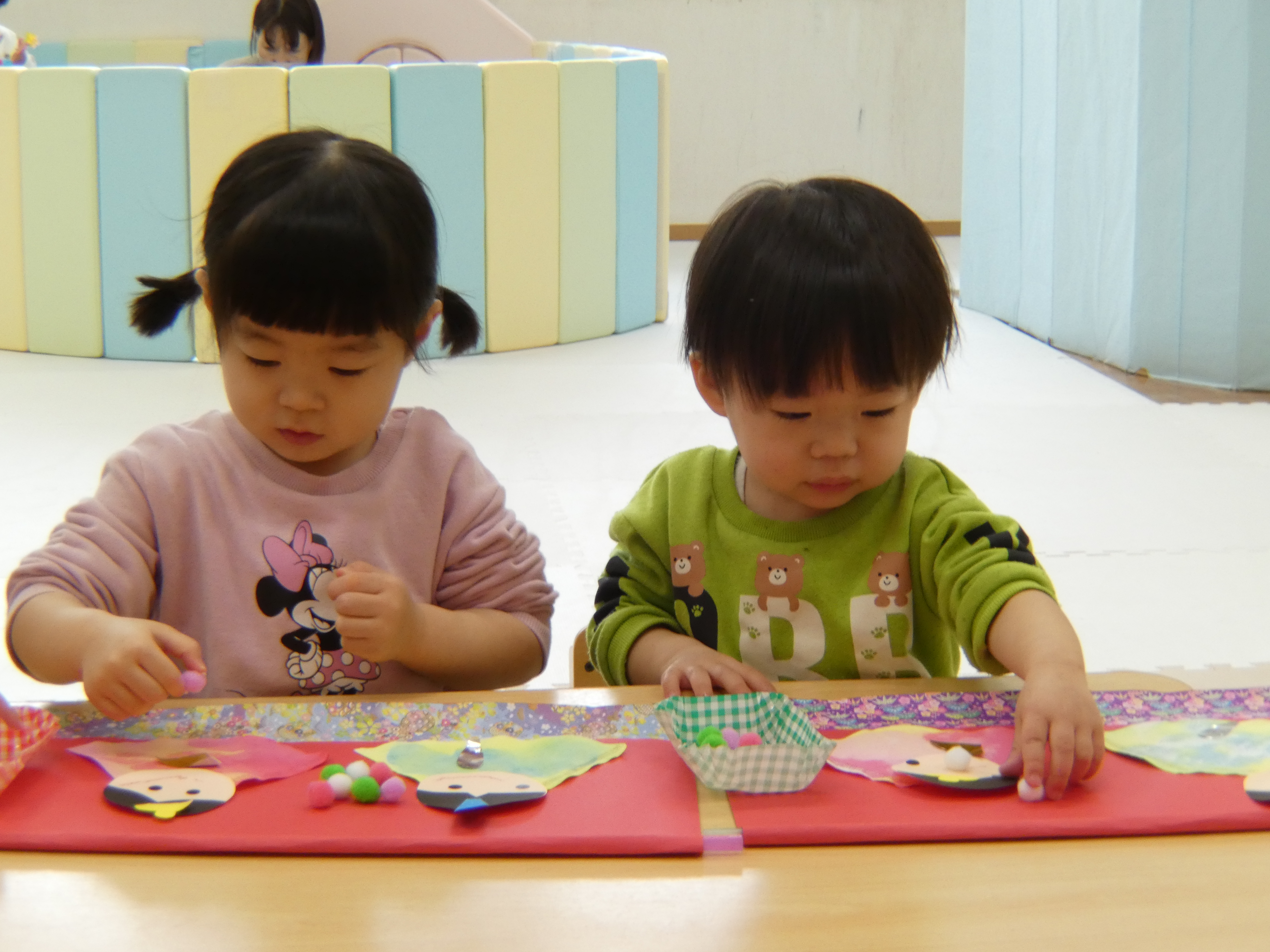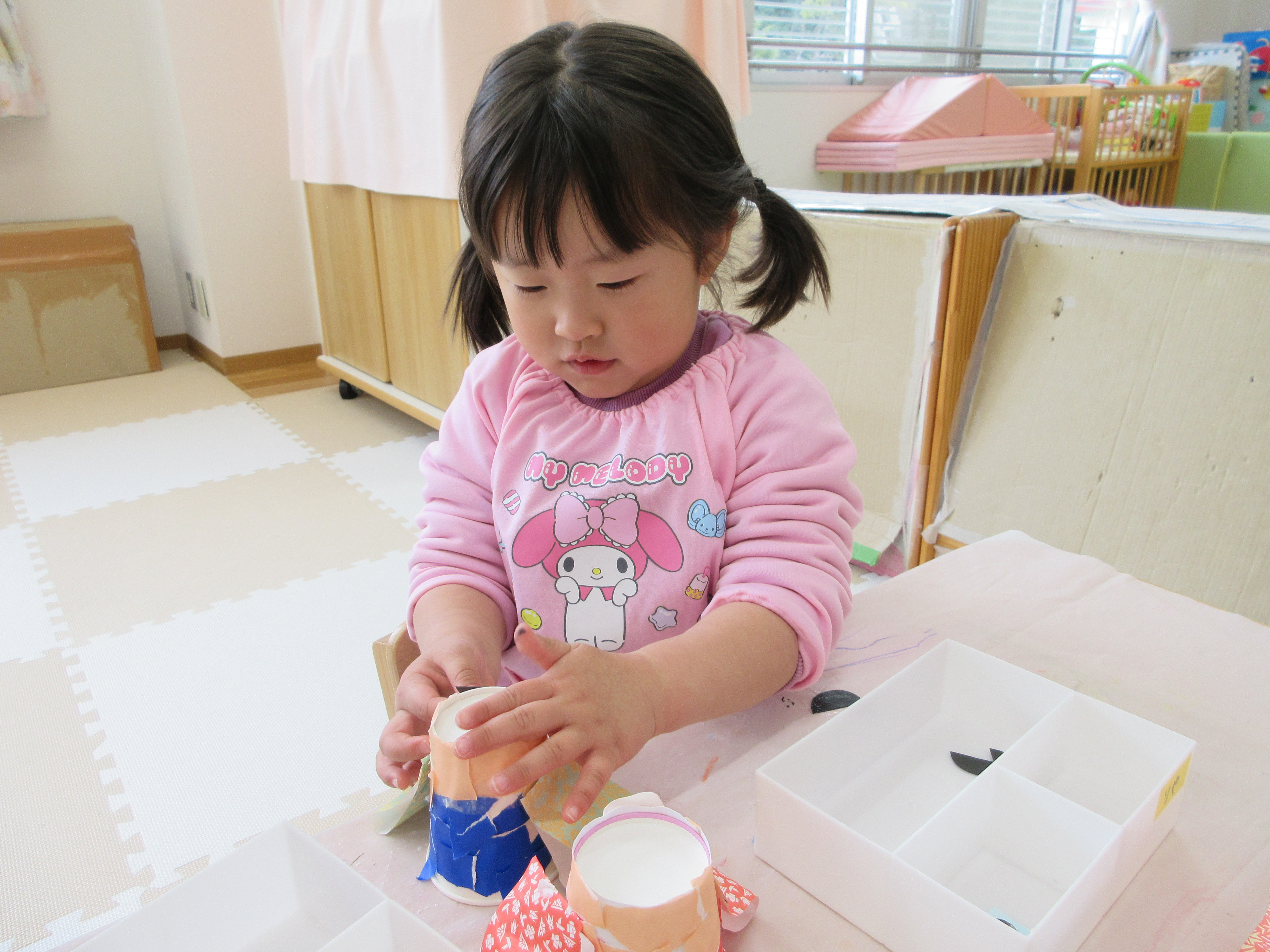 今日は一日お部屋で過ごしました。お雛飾り制作をがんばったみんなです。