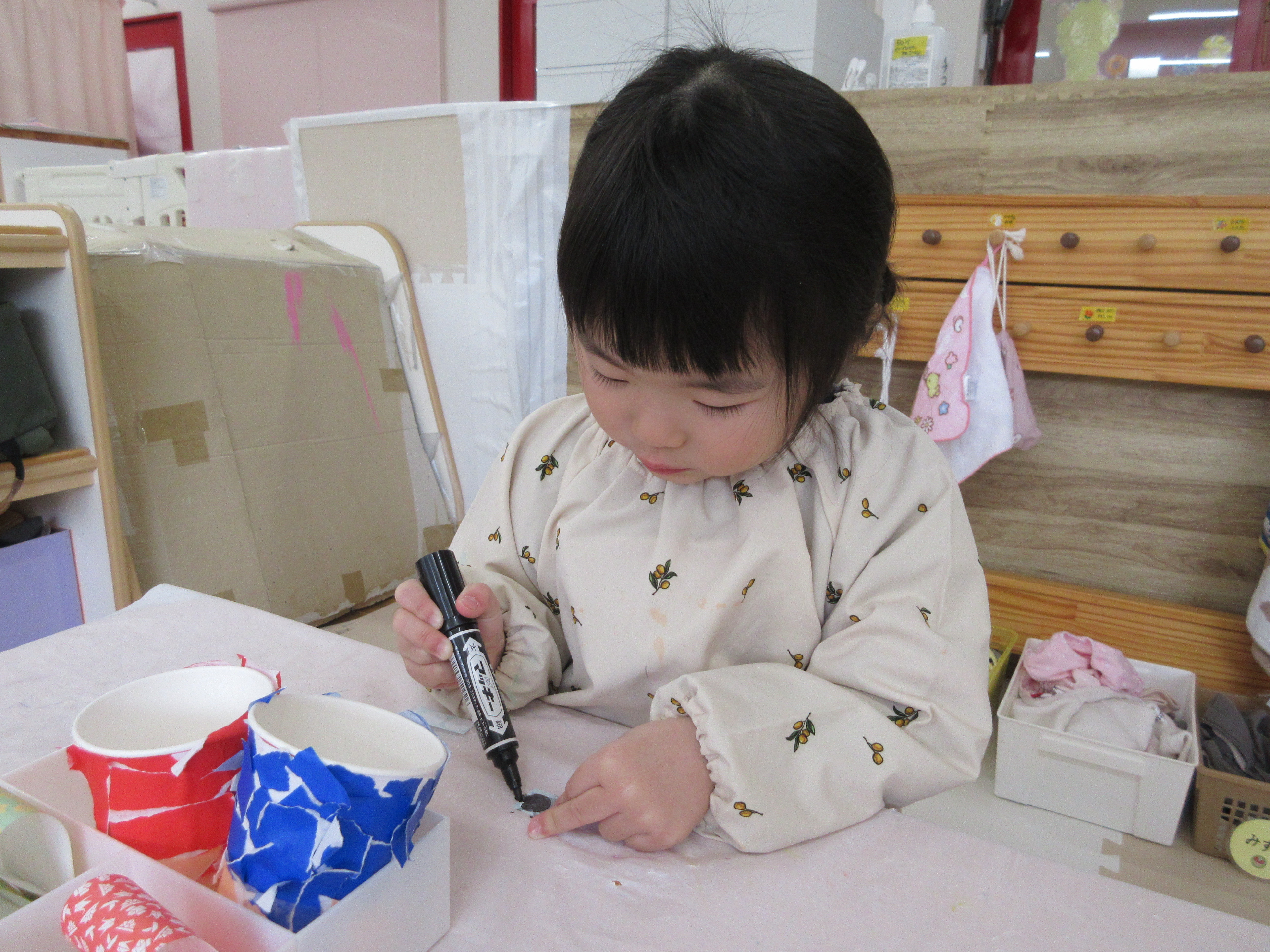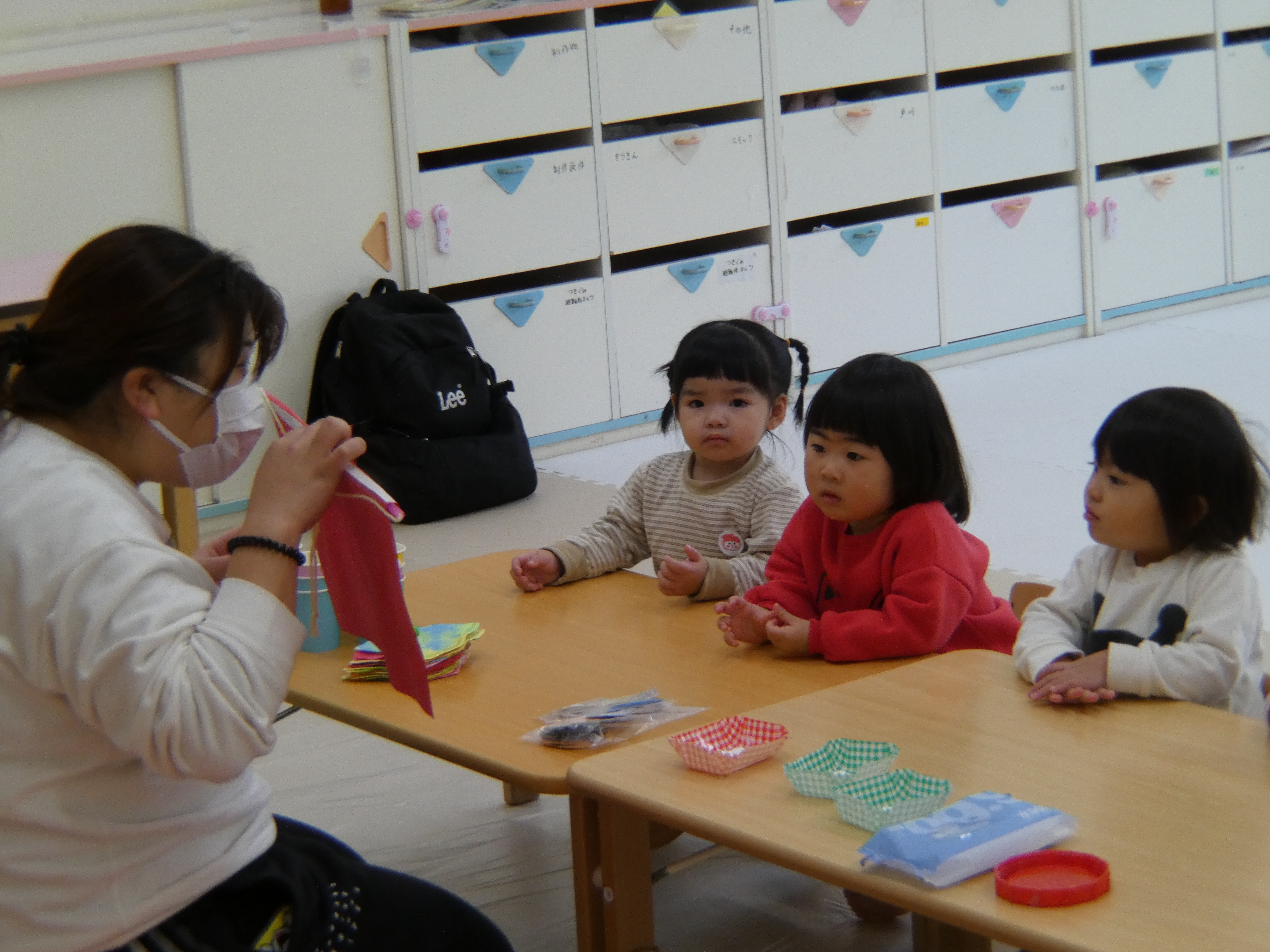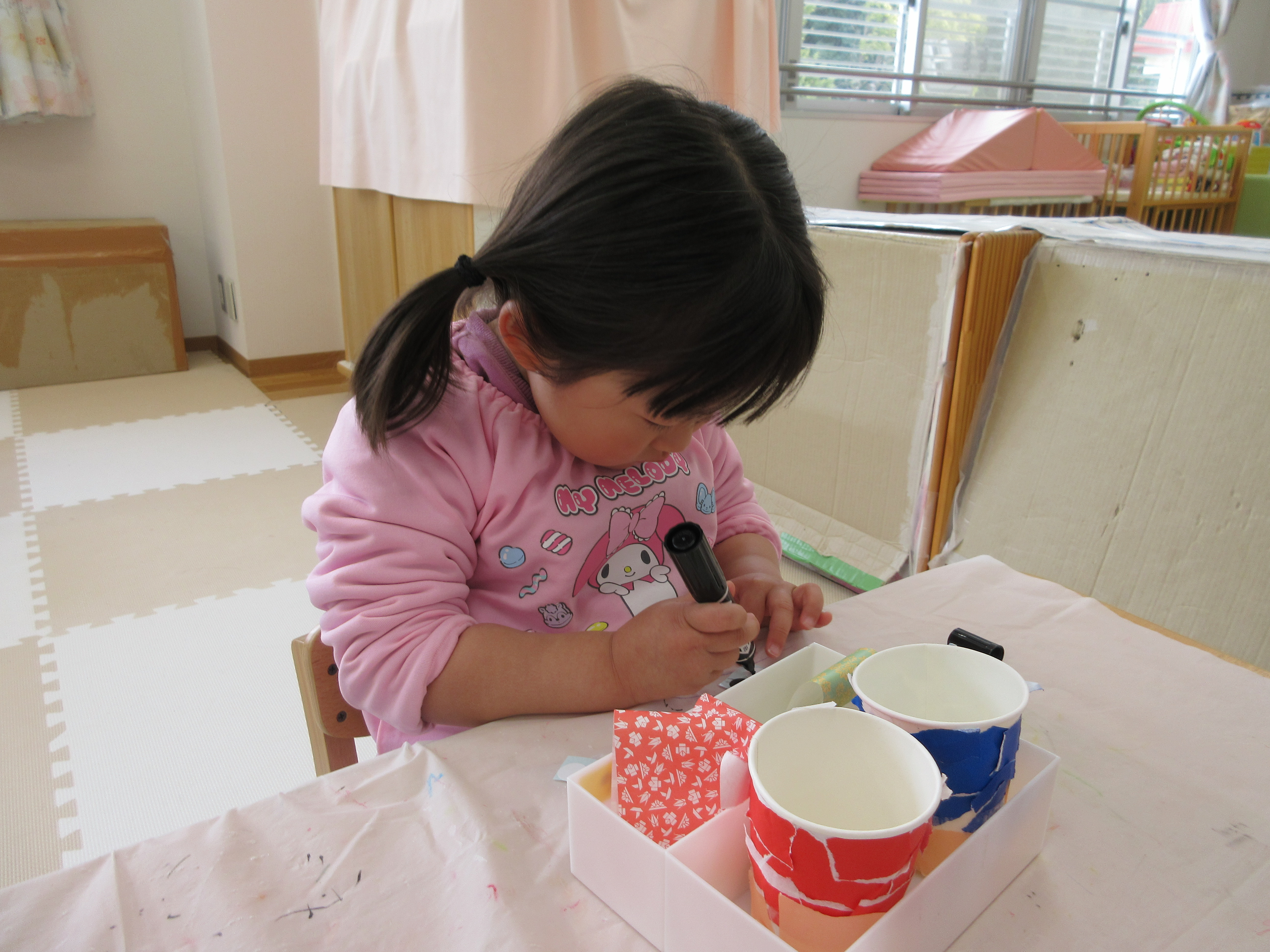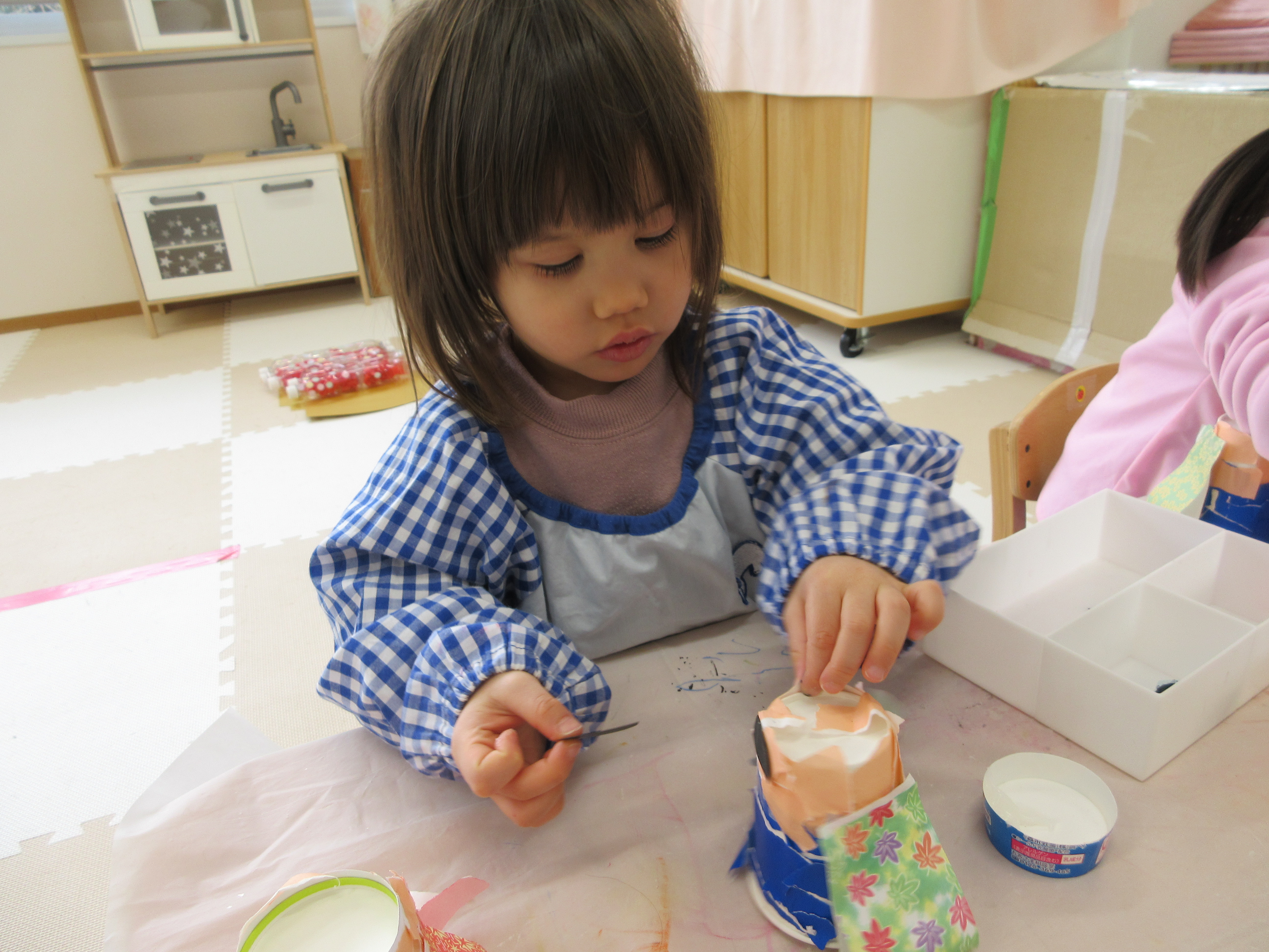 今日は一日お部屋で過ごしました。お雛飾り制作をがんばったみんなです。