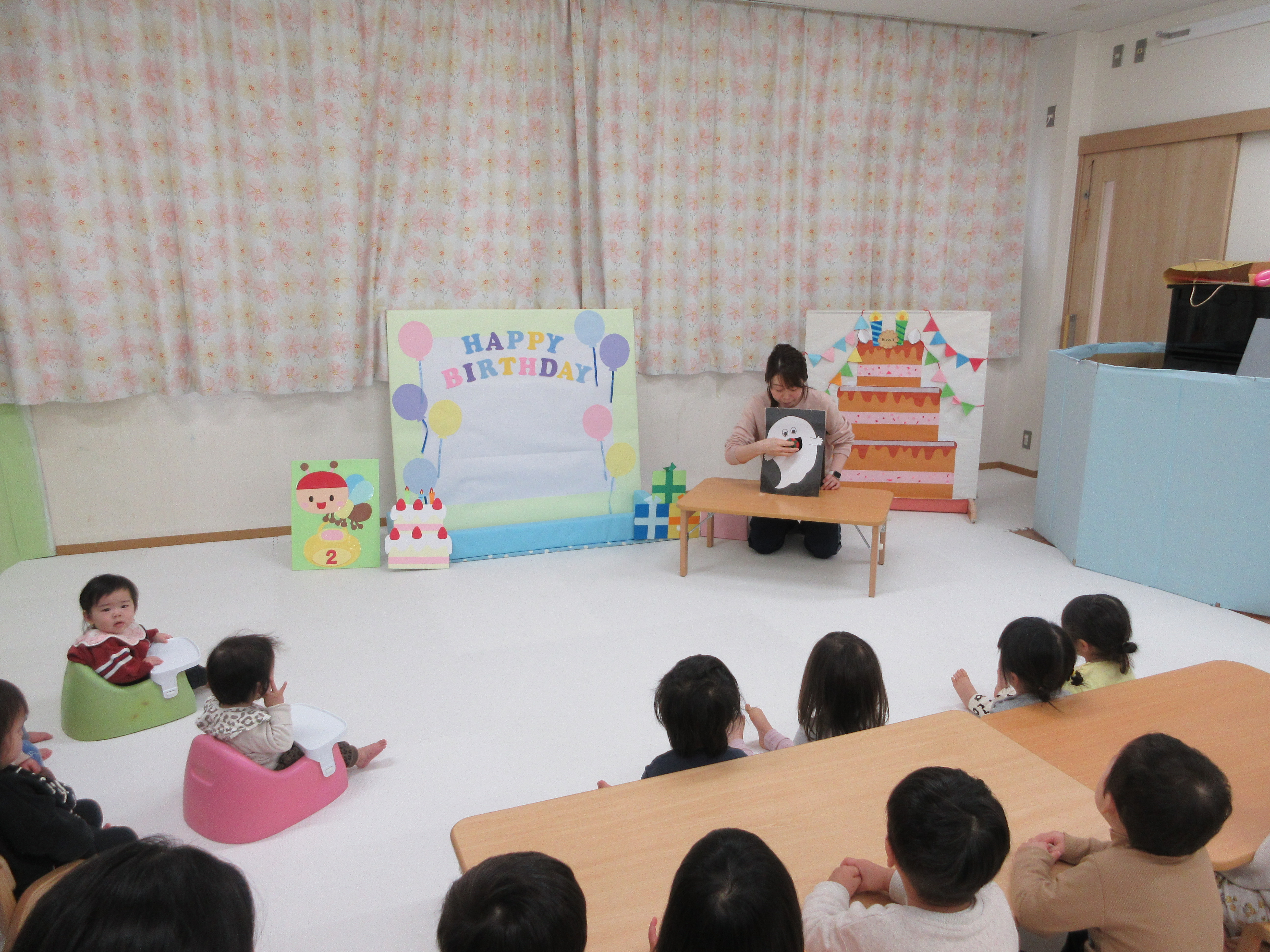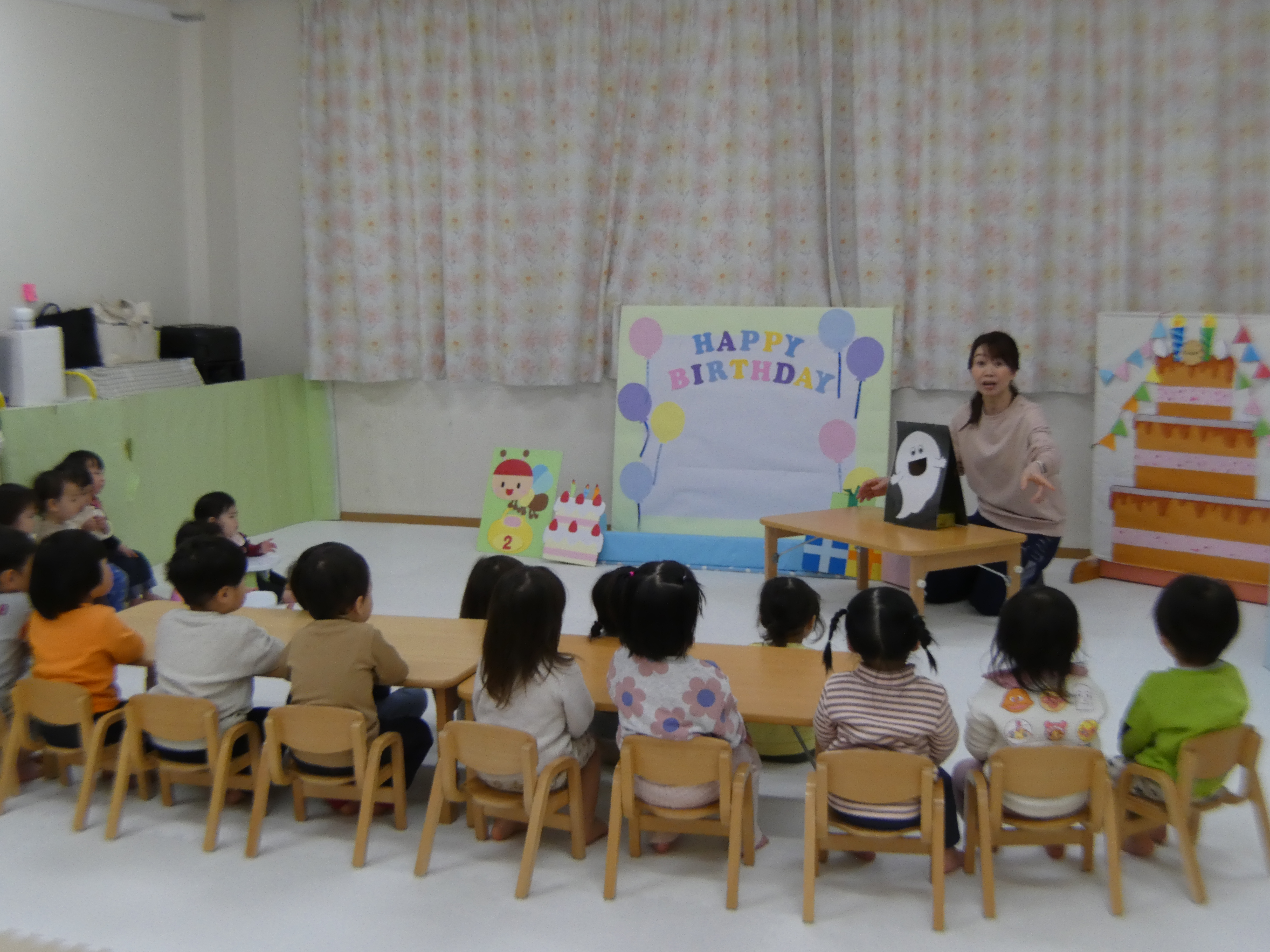 26 2月 2026 美木多 幼稚園 美木多チコスブログ 2026年2月26日 美木多 幼稚園 2月のお誕生会 2月生まれのお友だちのお誕生会をしました。今日の先生の出し物は「お化けのばけたくん」。みんなで盛り上がりました。一つ大きくなったお友だち。おめでとう!