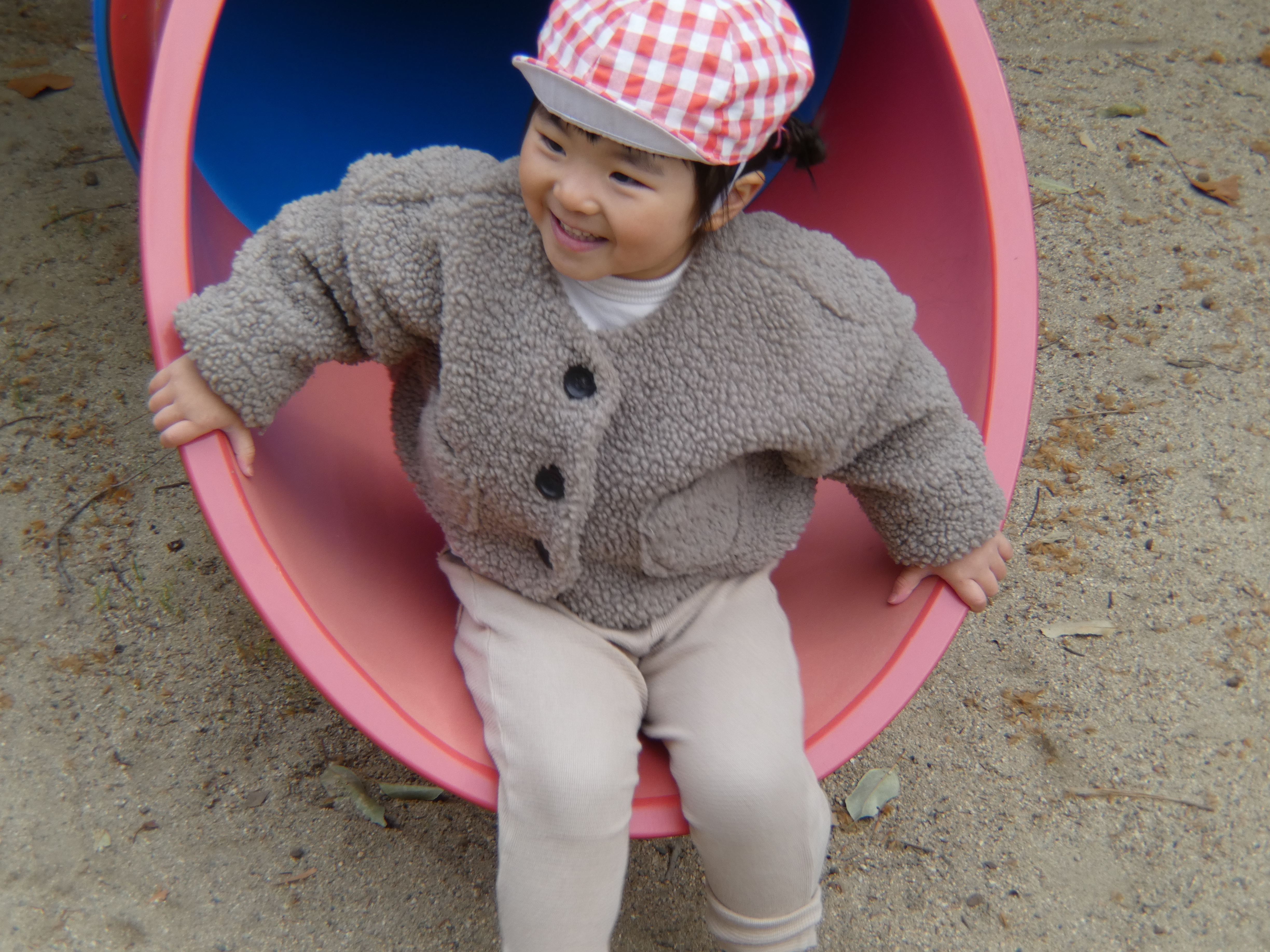 そら組さんも今日はお外で遊びました。すごく寒い日でしたが、笑顔からは寒さは感じられませんね。