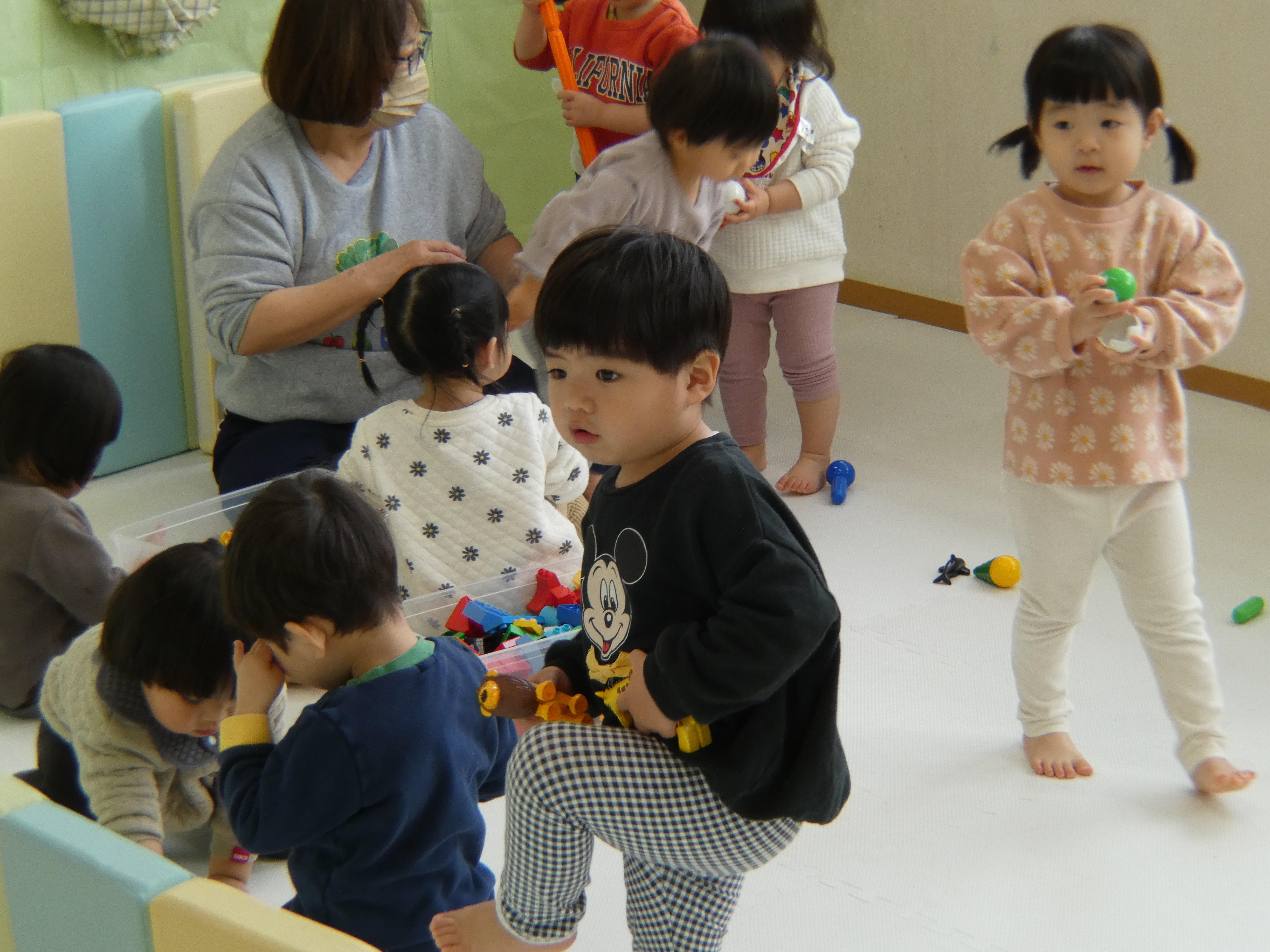 今日は10人のお友だちが登園しています。みんな元気でーす。