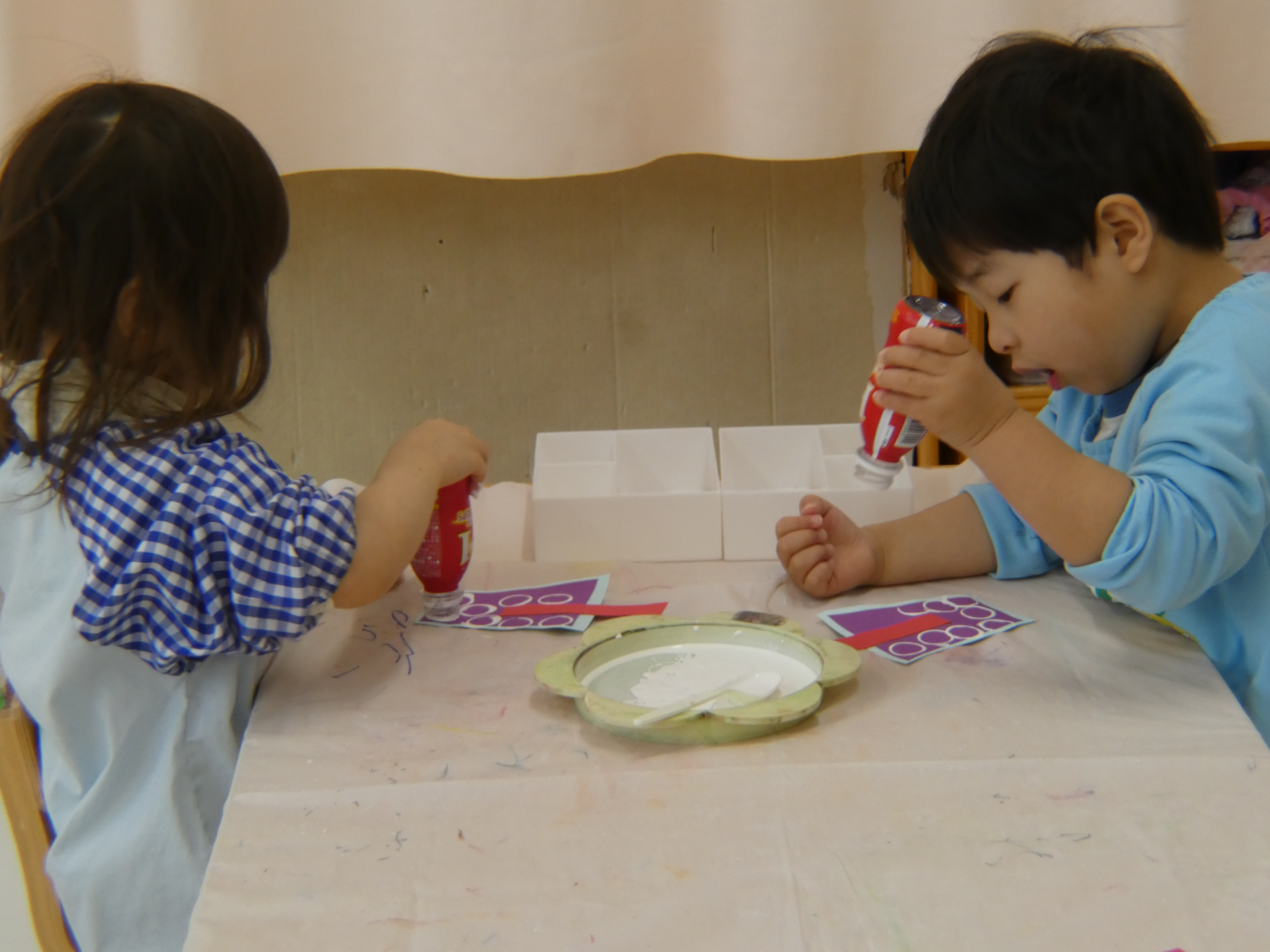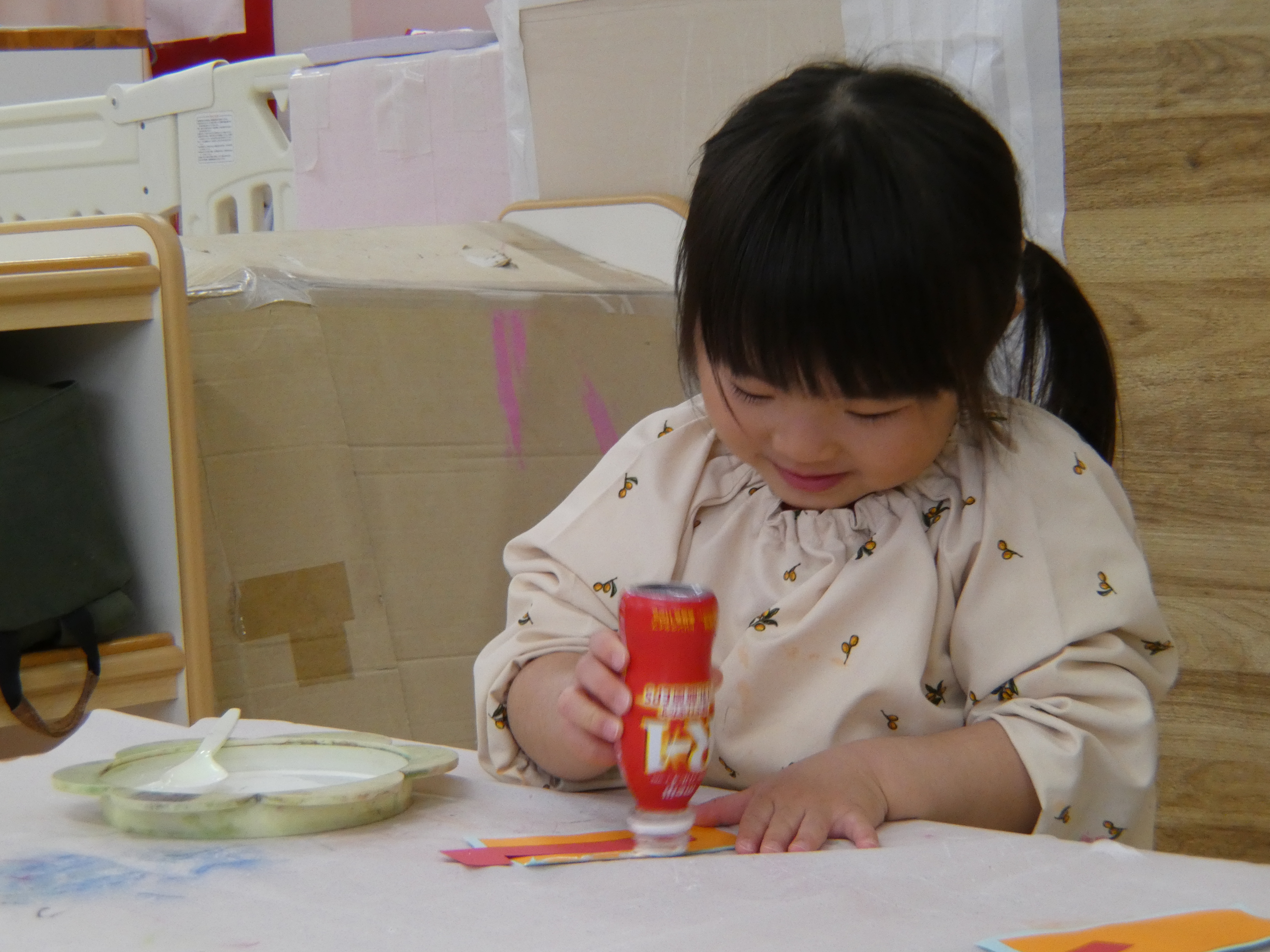 19 3月 2026 美木多 幼稚園 美木多チコスブログ 2026年3月19日 美木多 幼稚園 ぺったんぺったん(そら組) 廃材の空容器をつかって制作をしました。ペッタンペッタンがはまってしまいそうです。