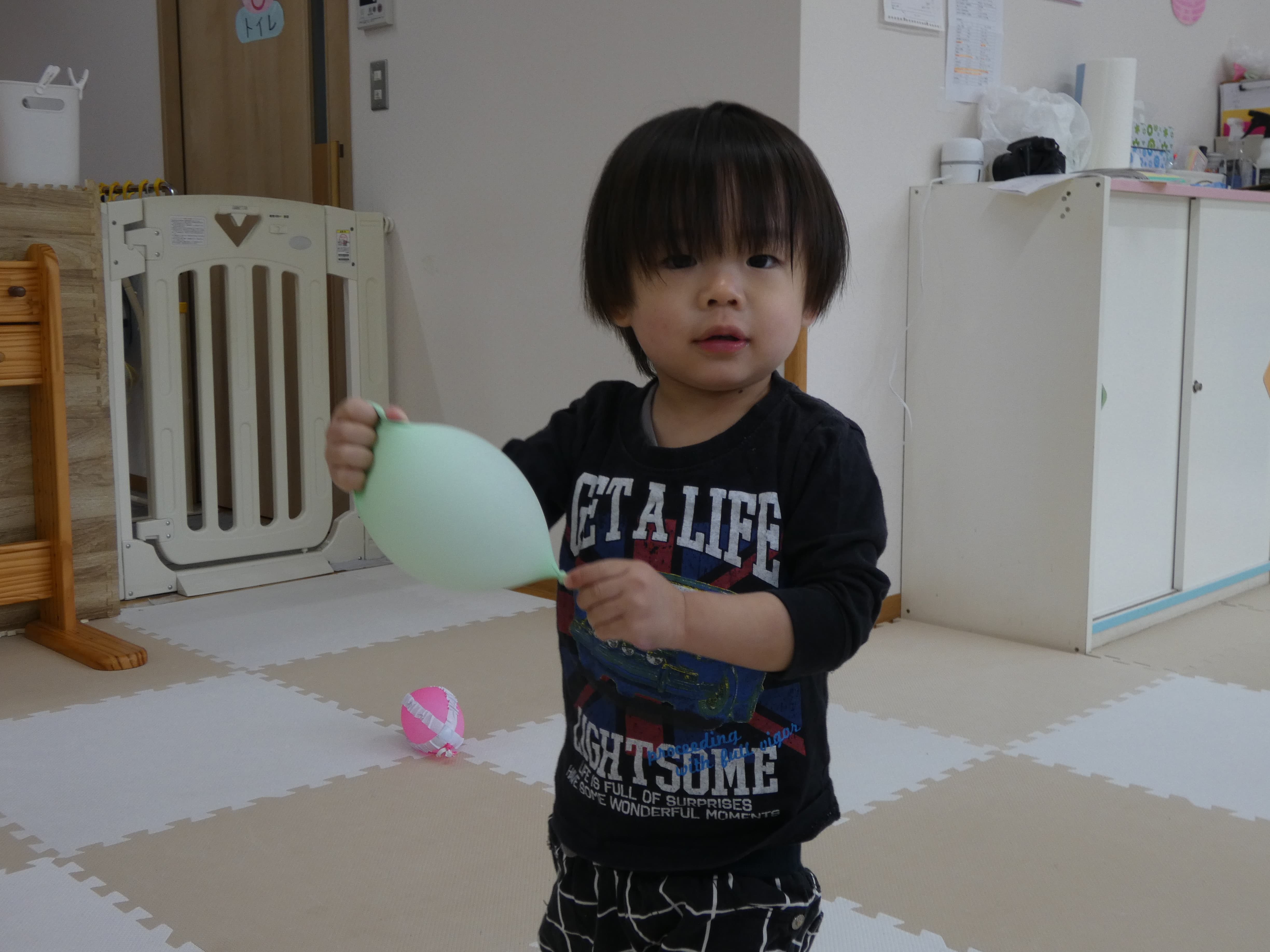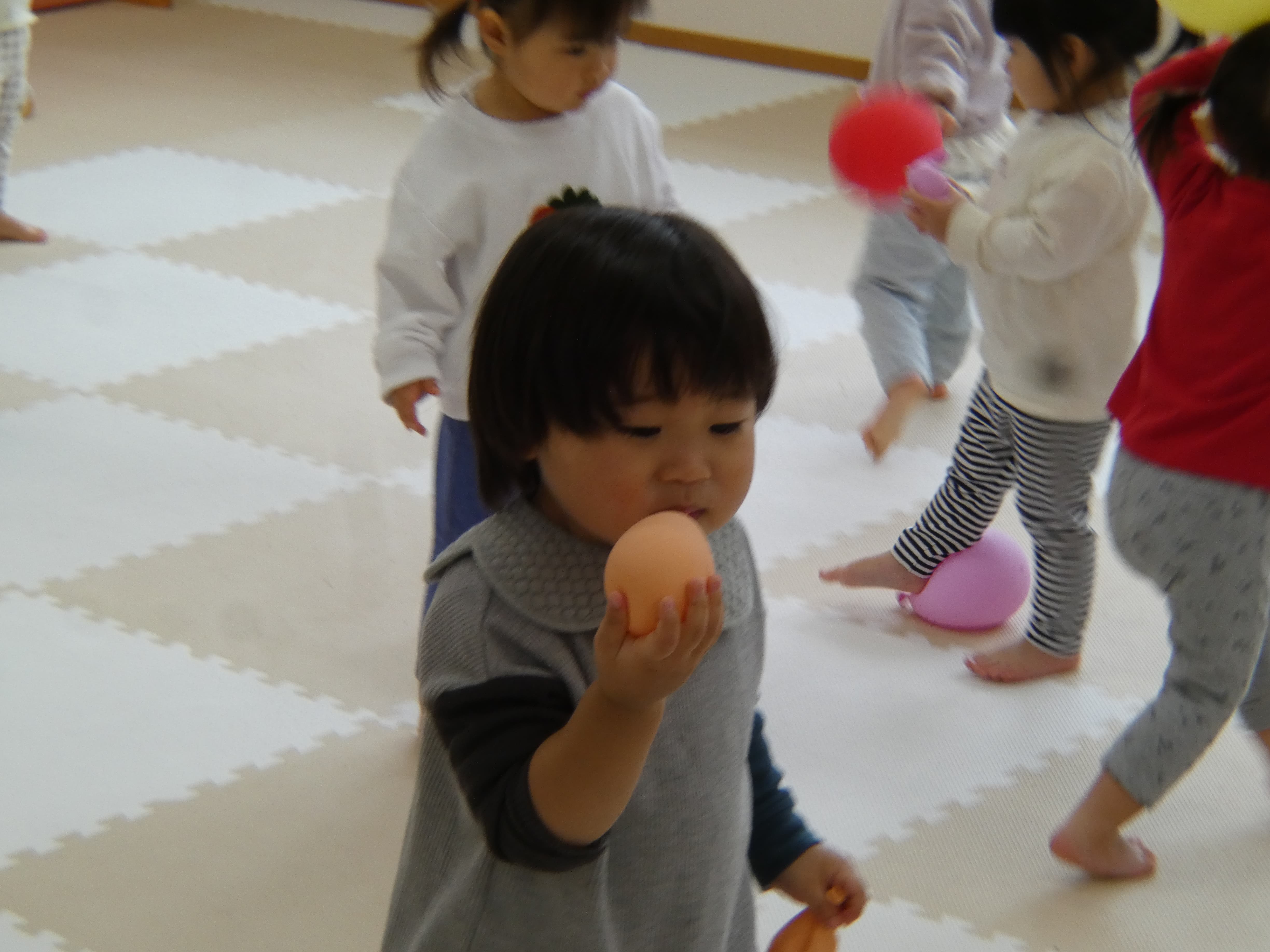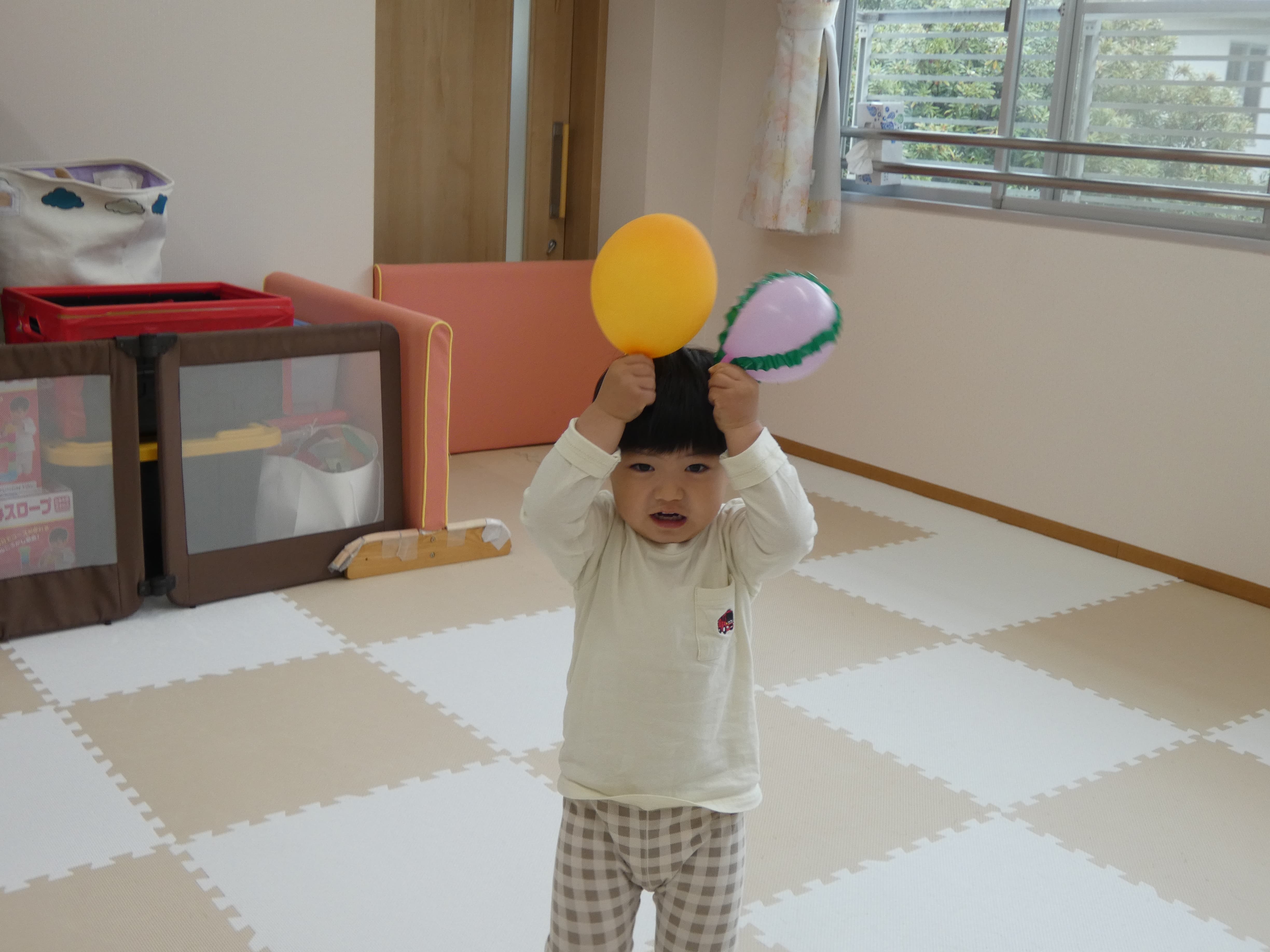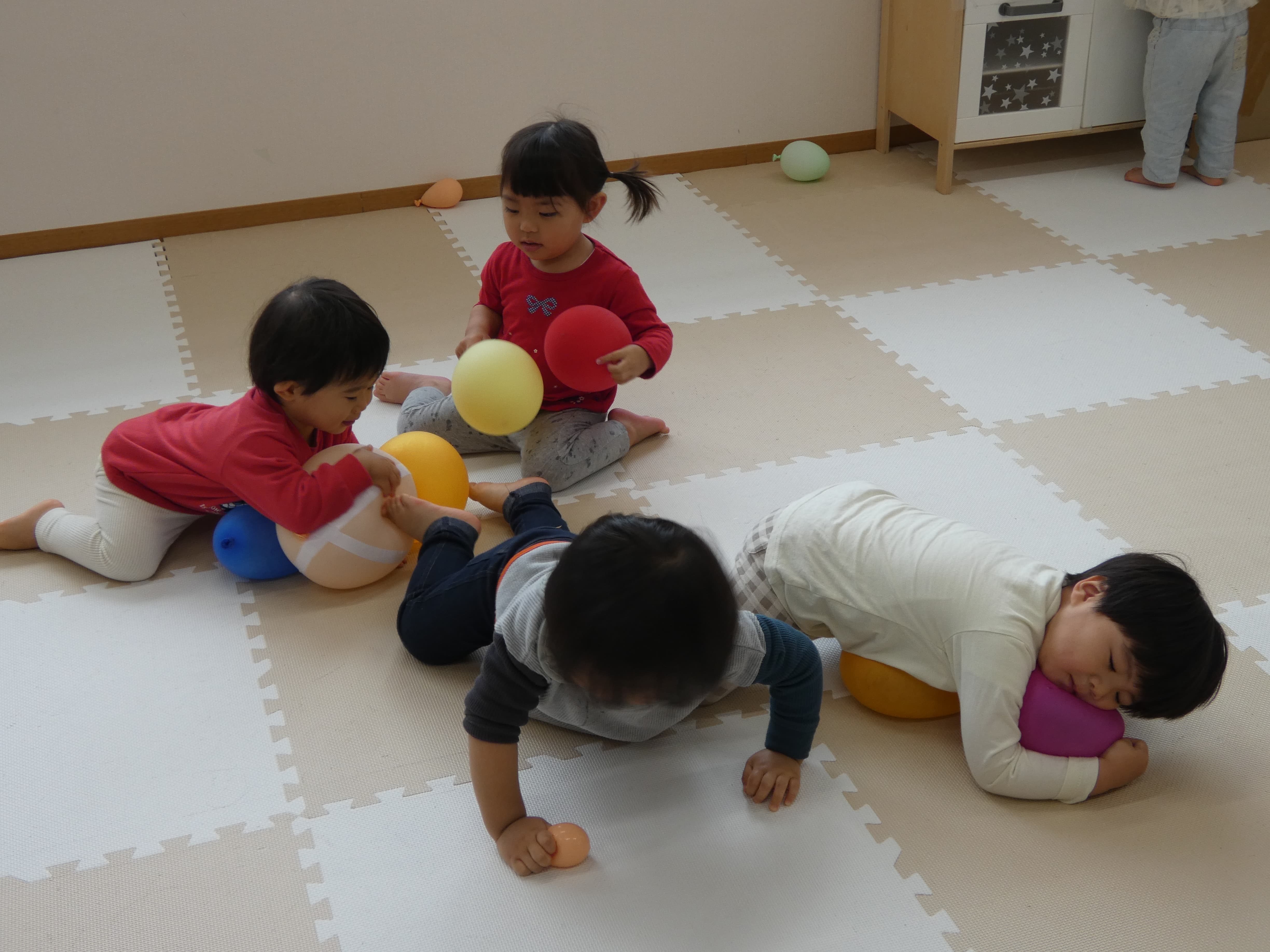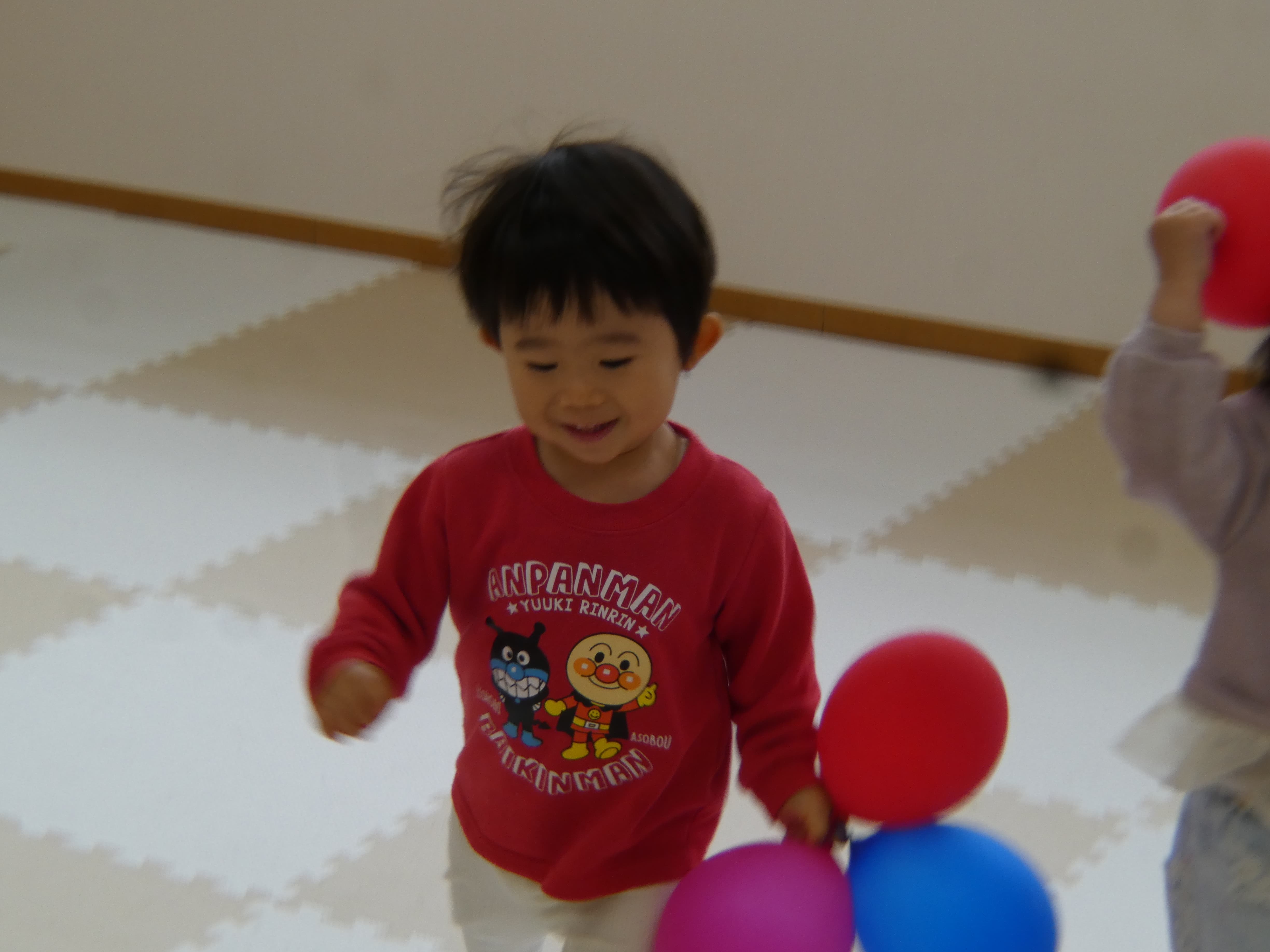 雨でお外遊びができないけど、身体を動かしたいみんなは風船でたくさん遊びました。