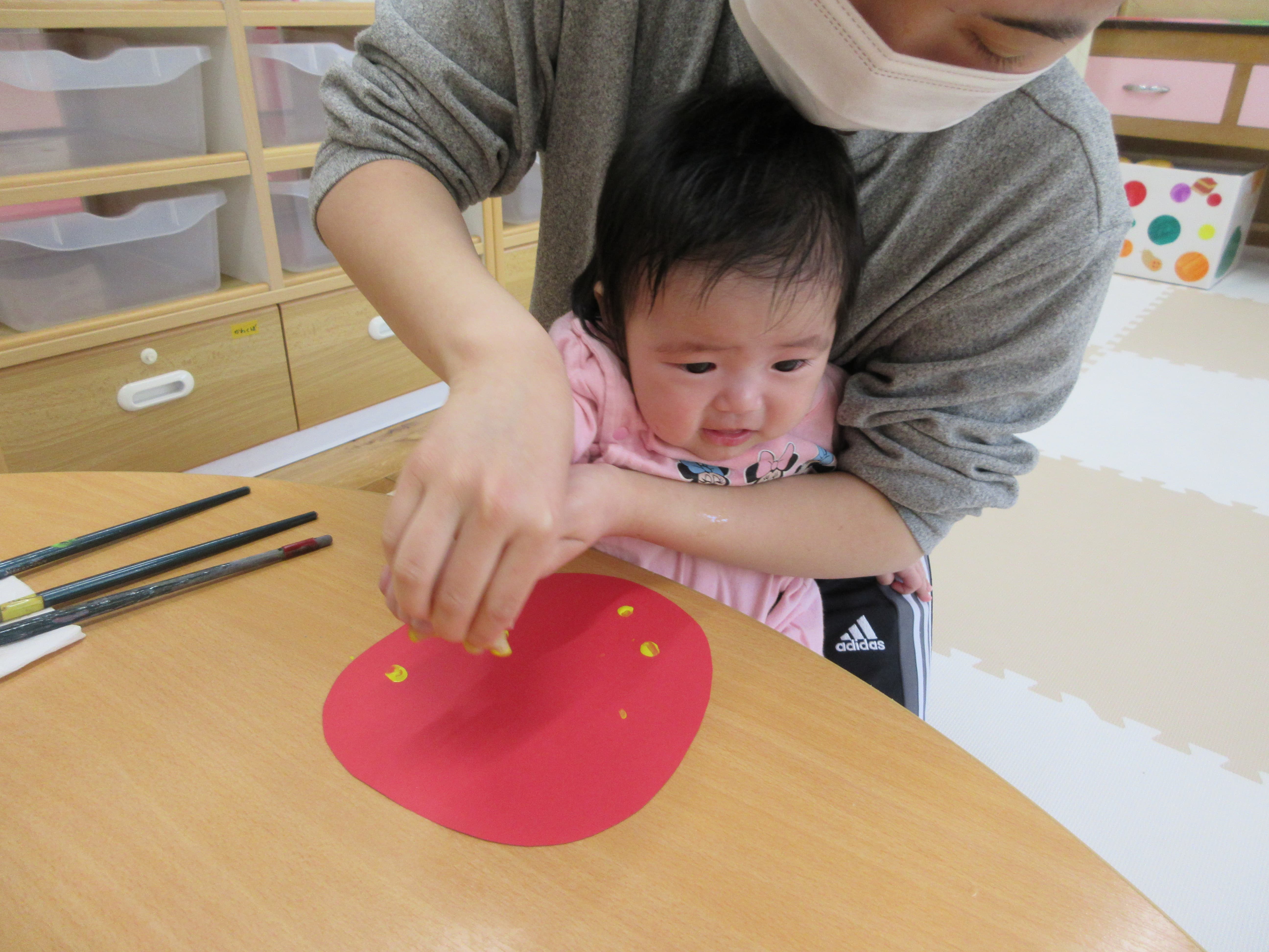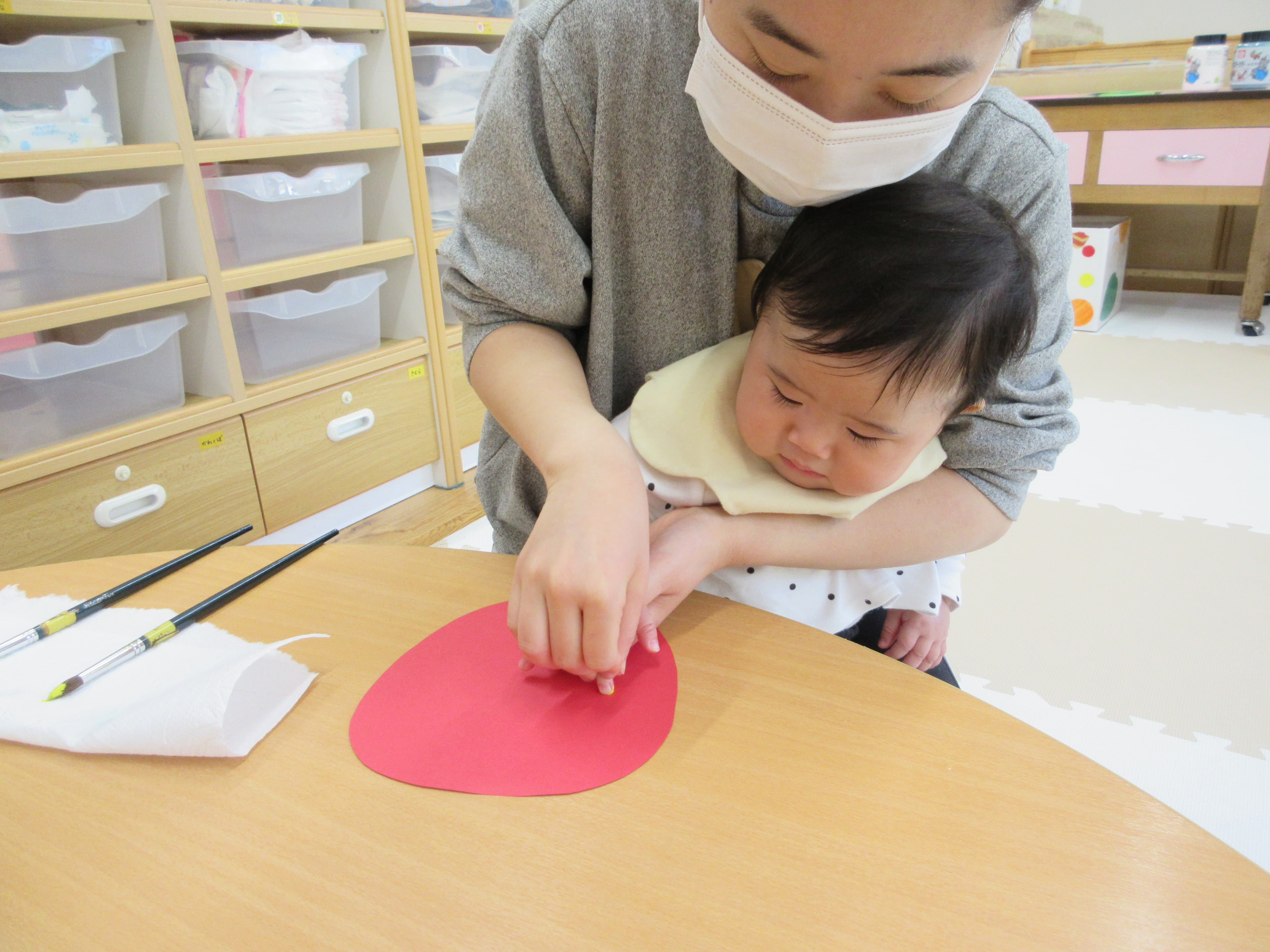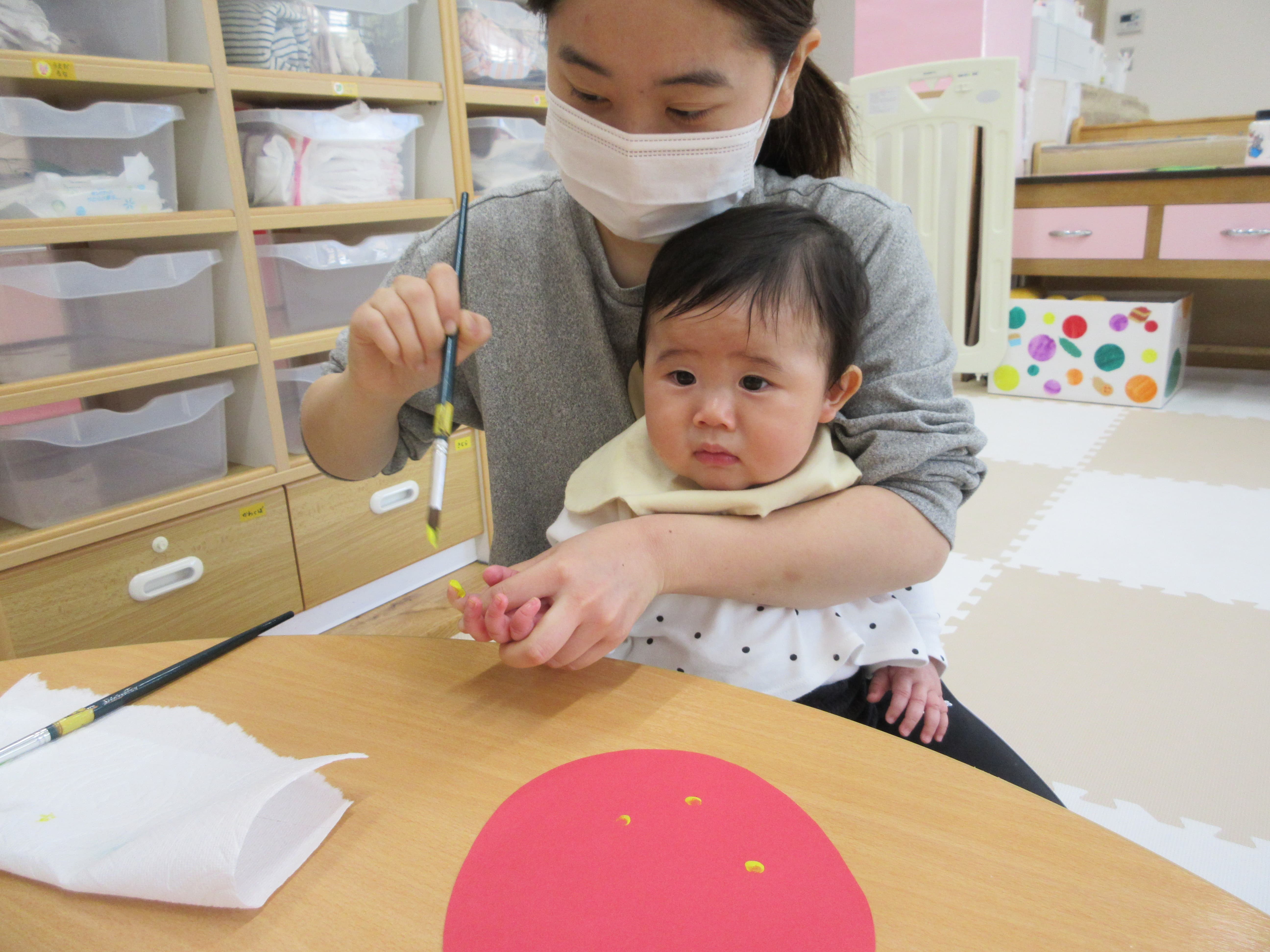 16 4月 2026 美木多 幼稚園 美木多チコスブログ 2026年4月16日 美木多 幼稚園 手形ペッタン(ほし組) こいのぼり制作で使う手形ペッタンをしました。みんなの何とも言えないお顔がまた可愛いです。初めての体験だったのでしょうね。