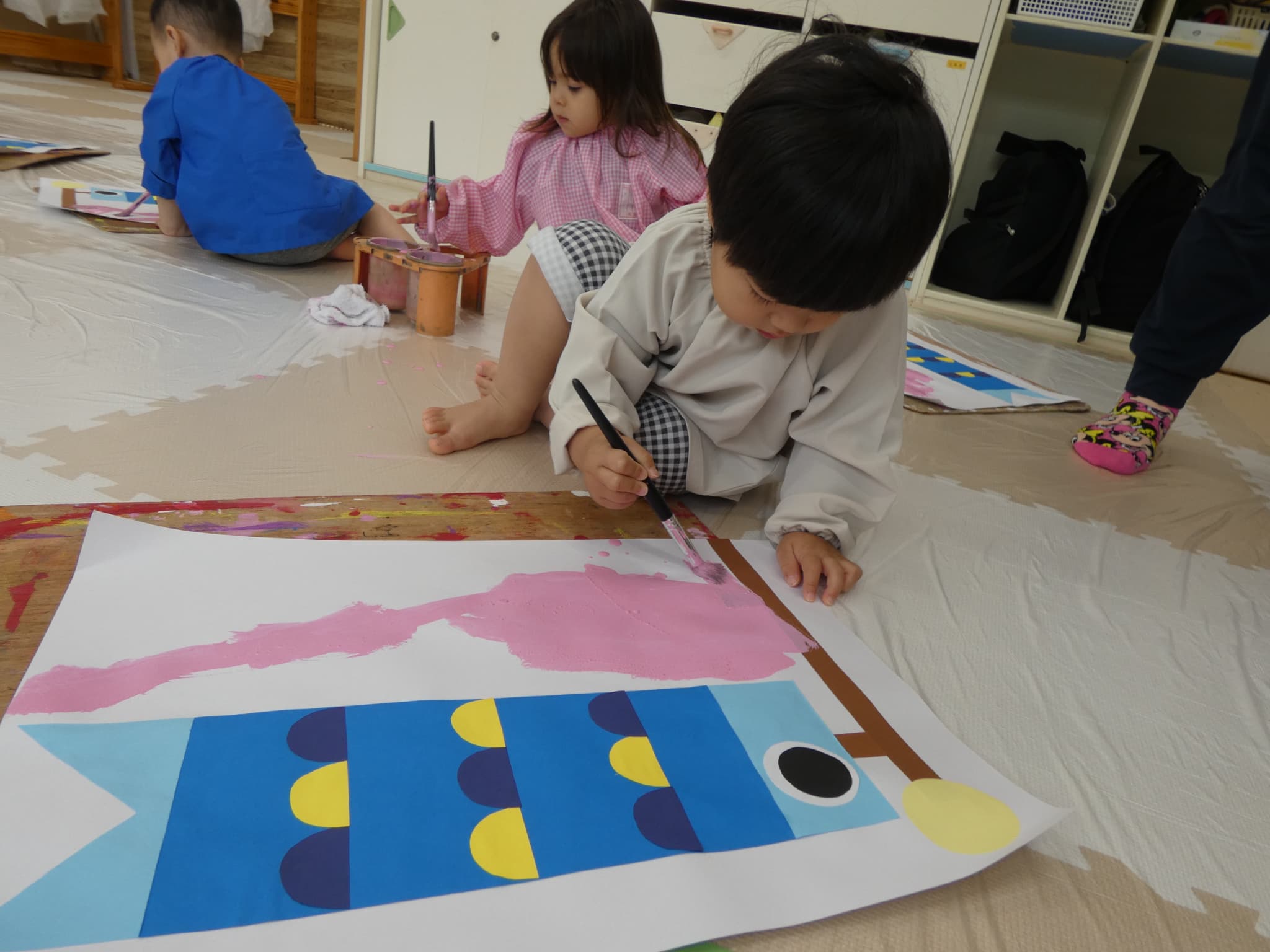 23 4月 2026 美木多 幼稚園 美木多チコスブログ 2026年4月23日 美木多 幼稚園 大きなこいのぼり(そら組) そら組になって初めて、筆を使って絵画活動をしました。筆の持ち方や座り方を一生懸命聞き、こいのぼりを描いていました。とても集中していましたよ。