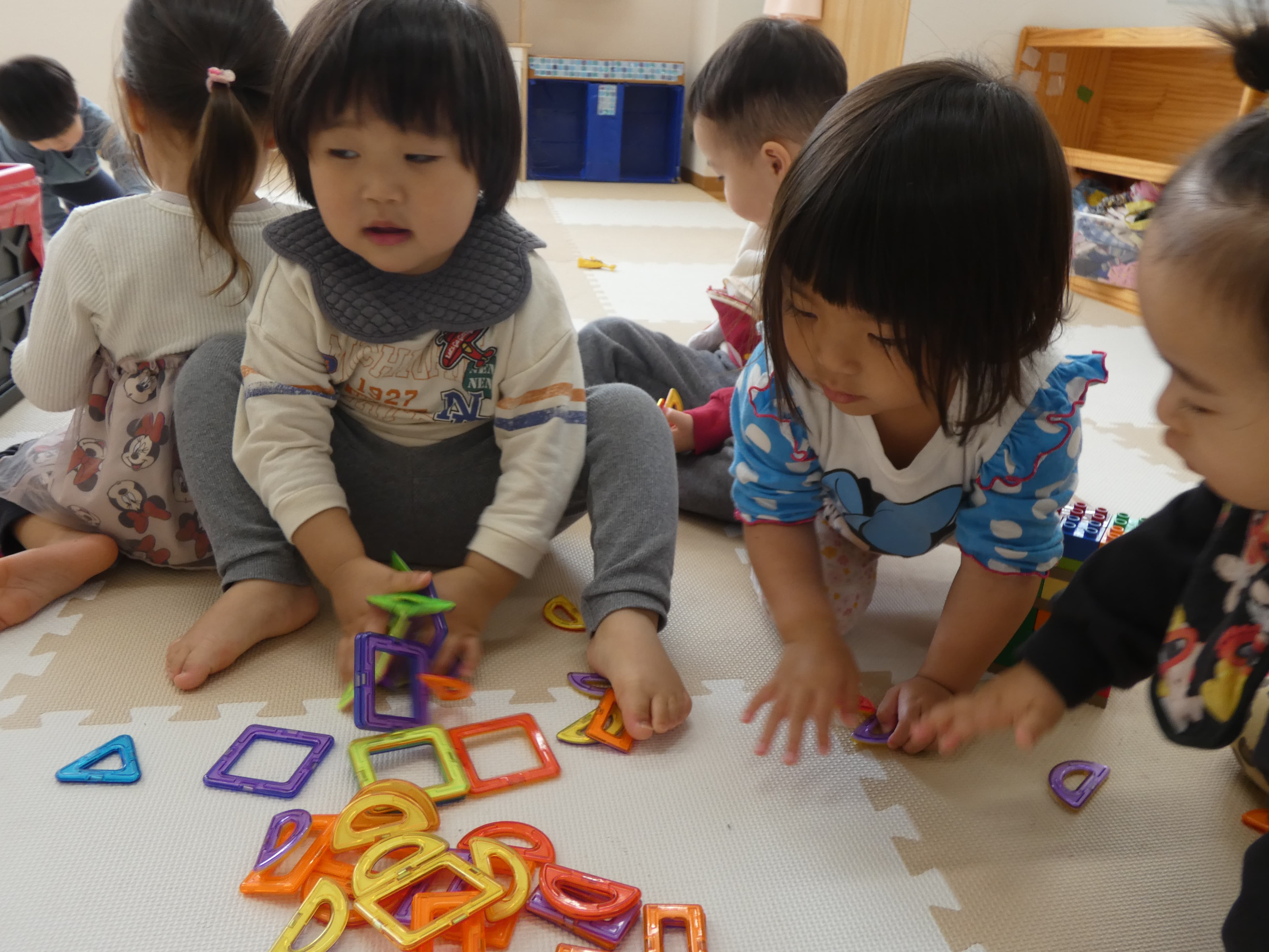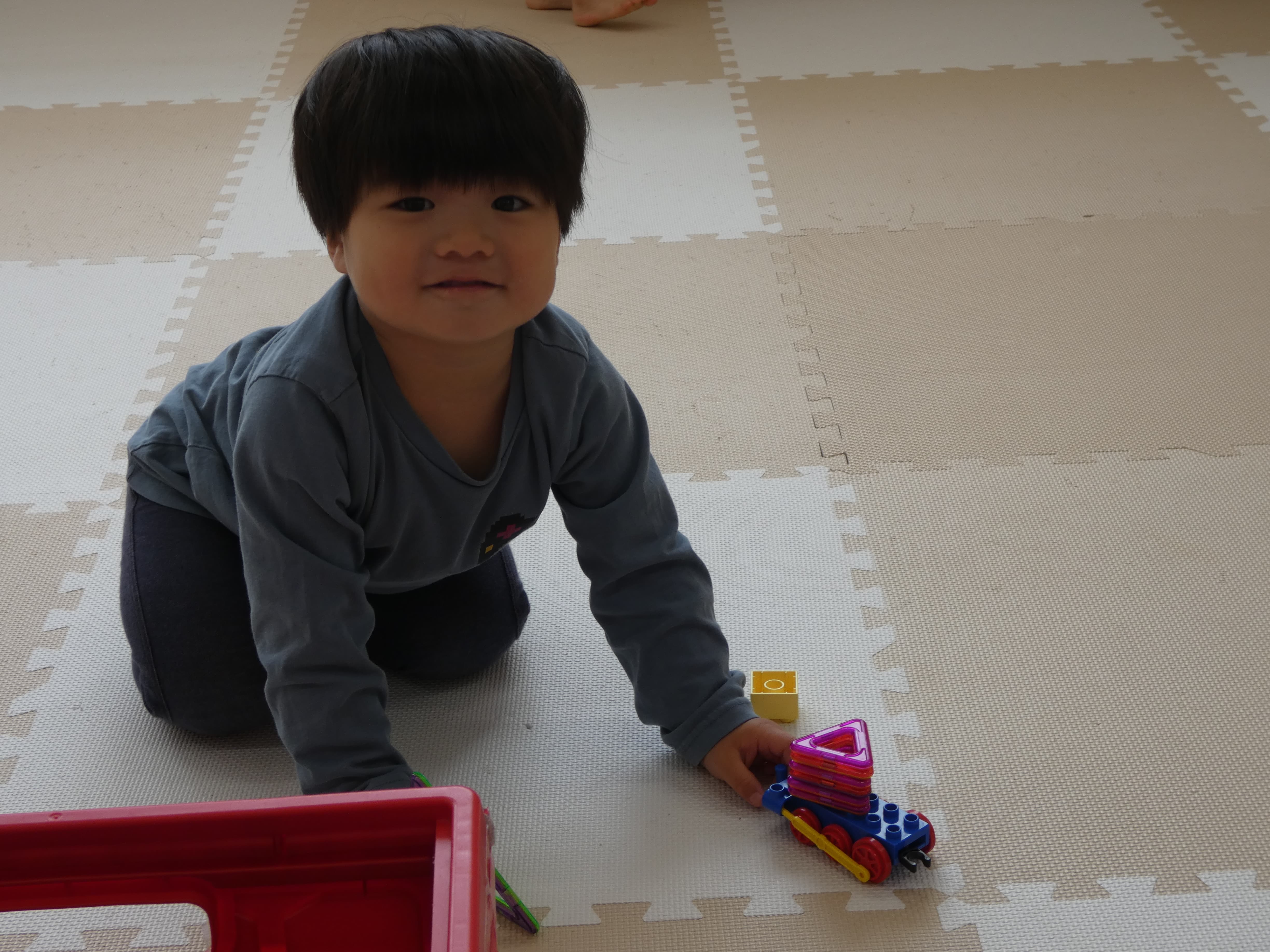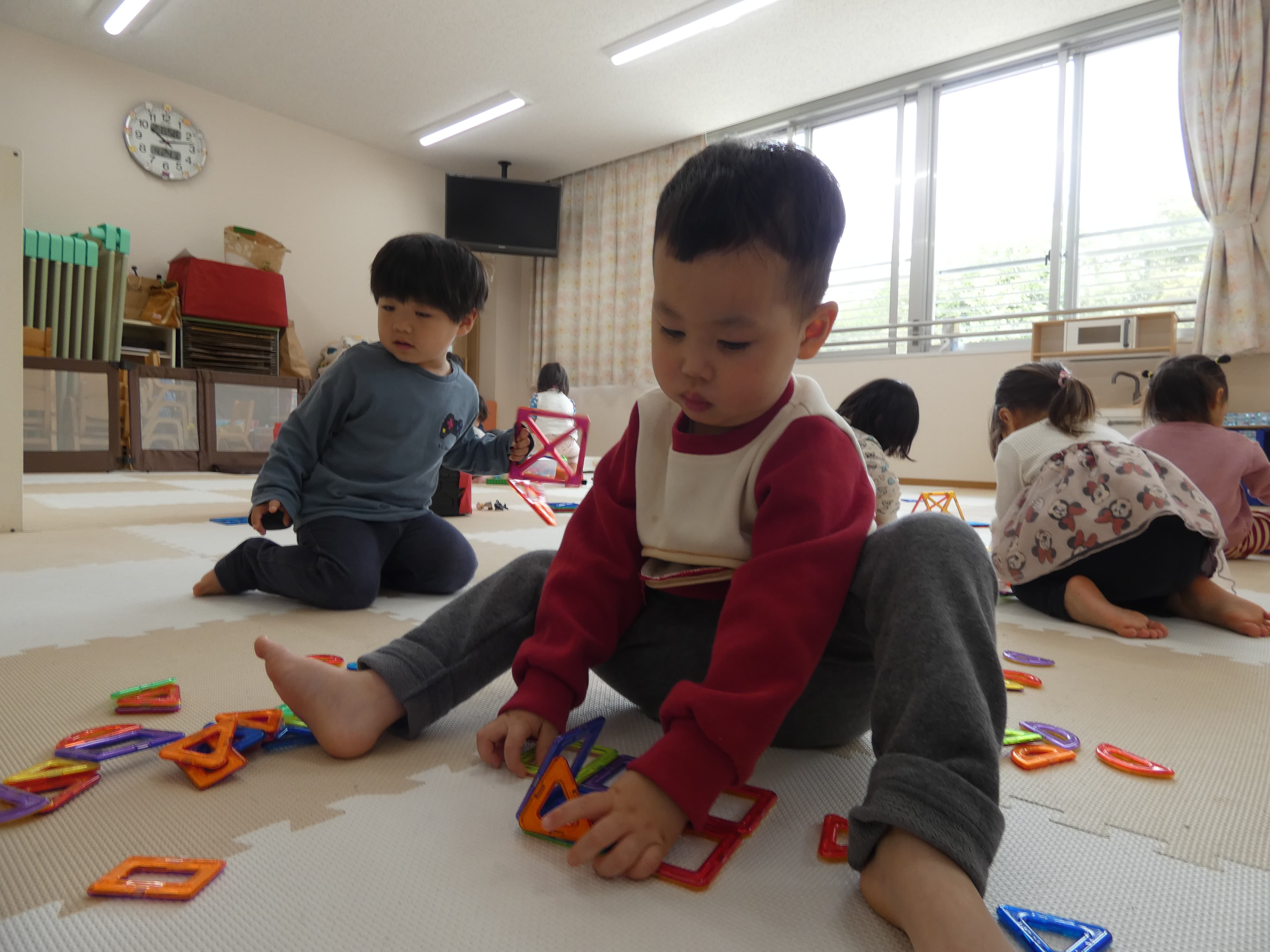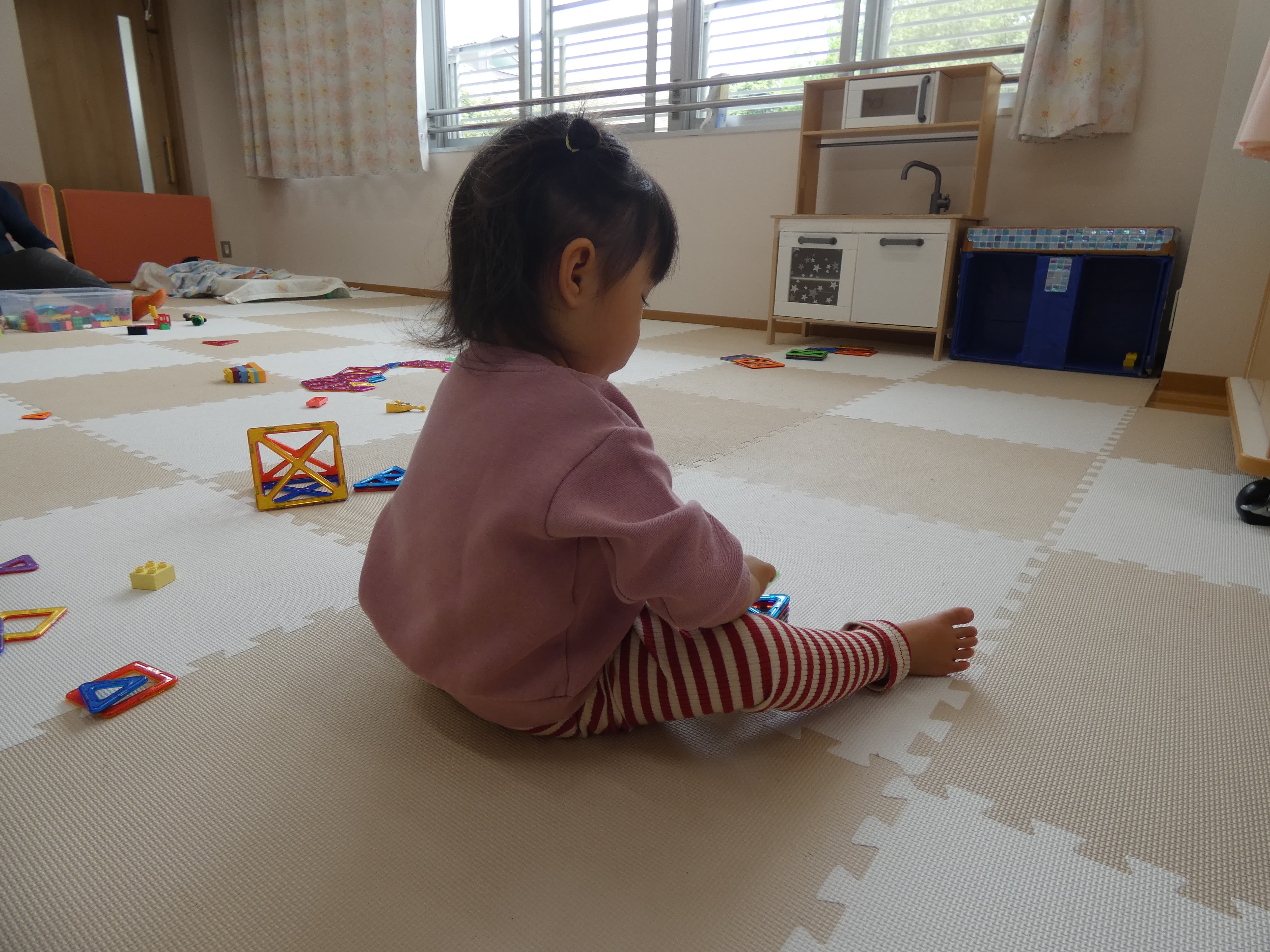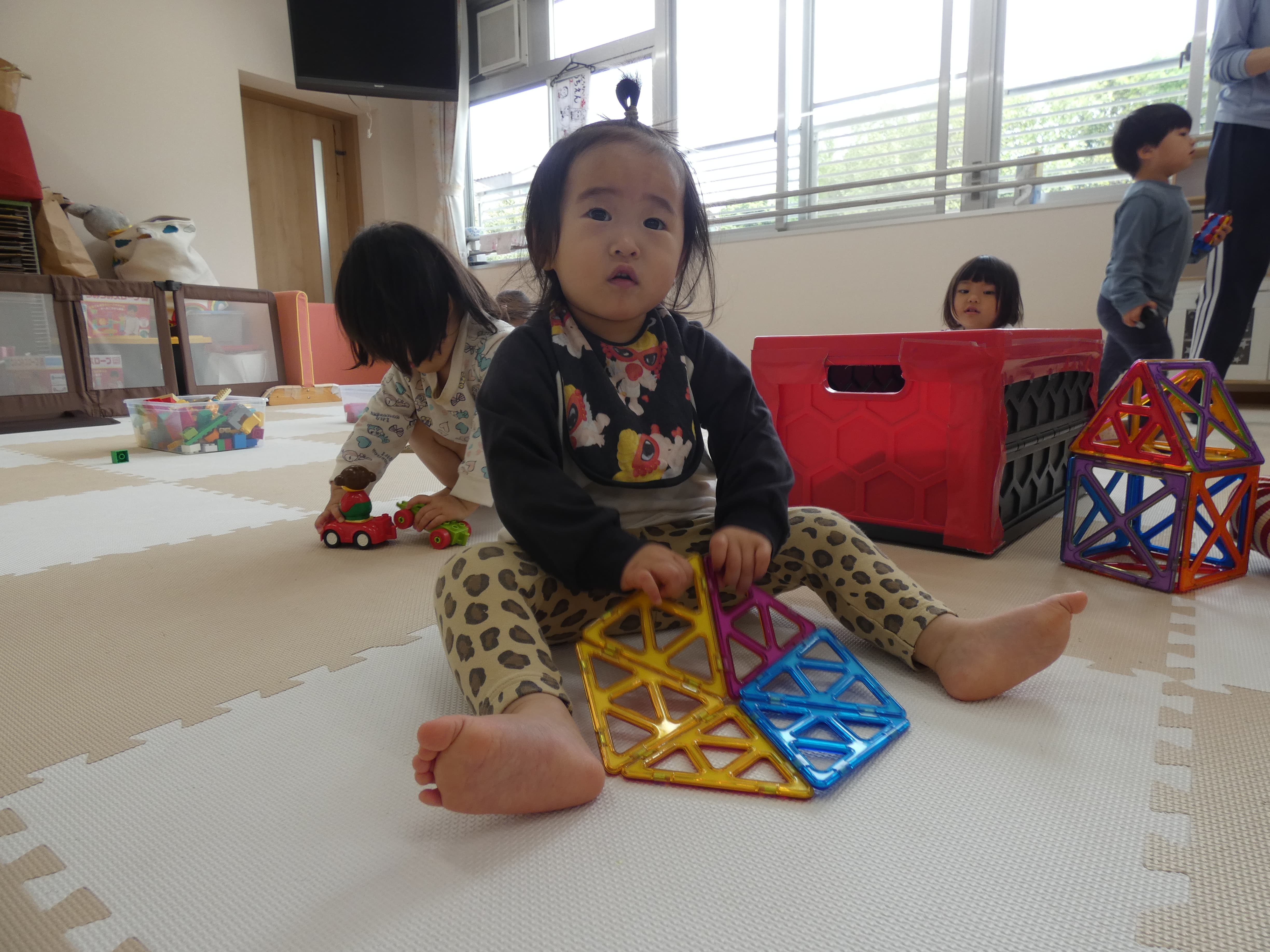 園庭も昨日の雨で少し湿っています。お部屋でいろいろなことをして過ごした今日のそらです。