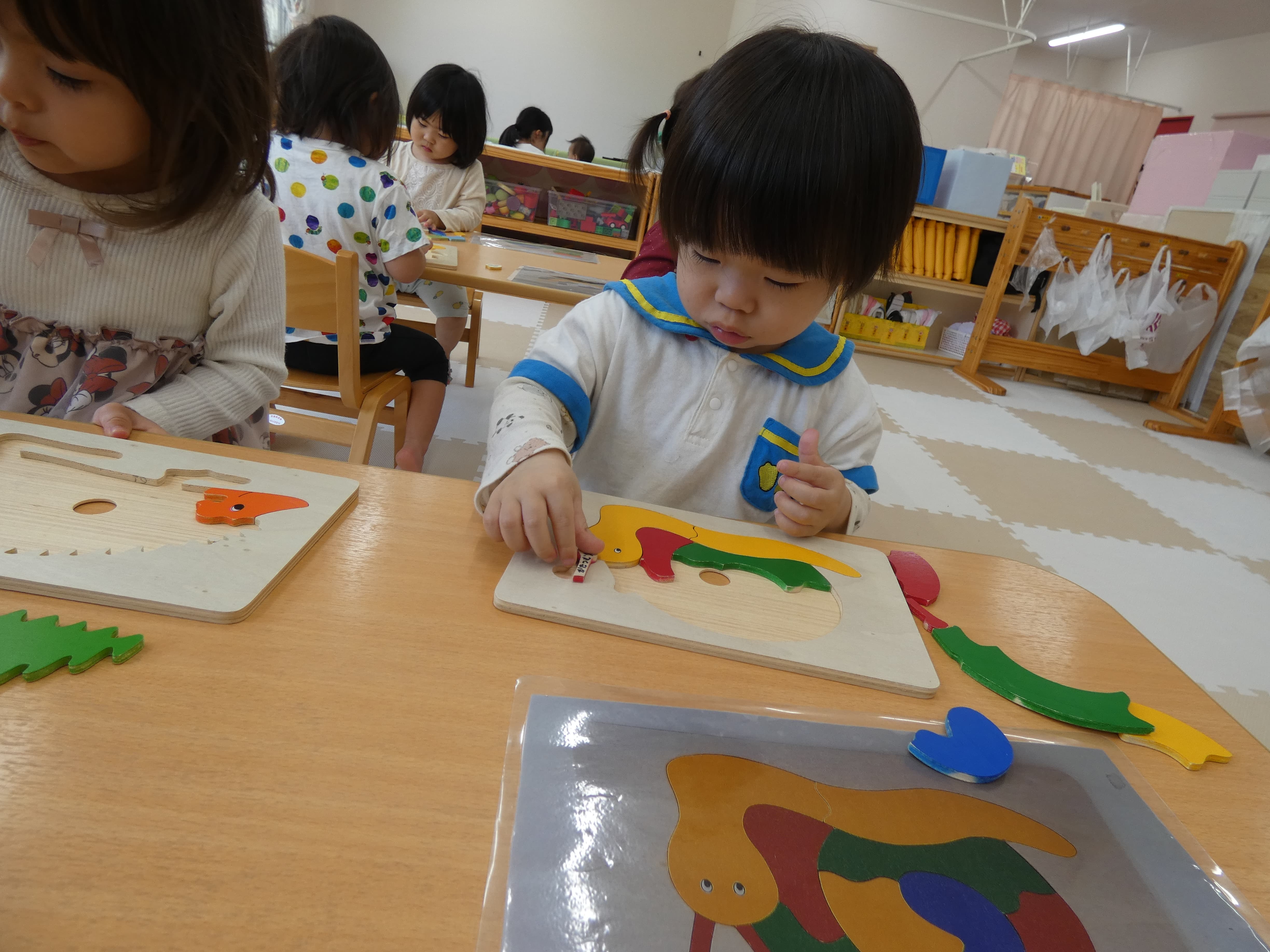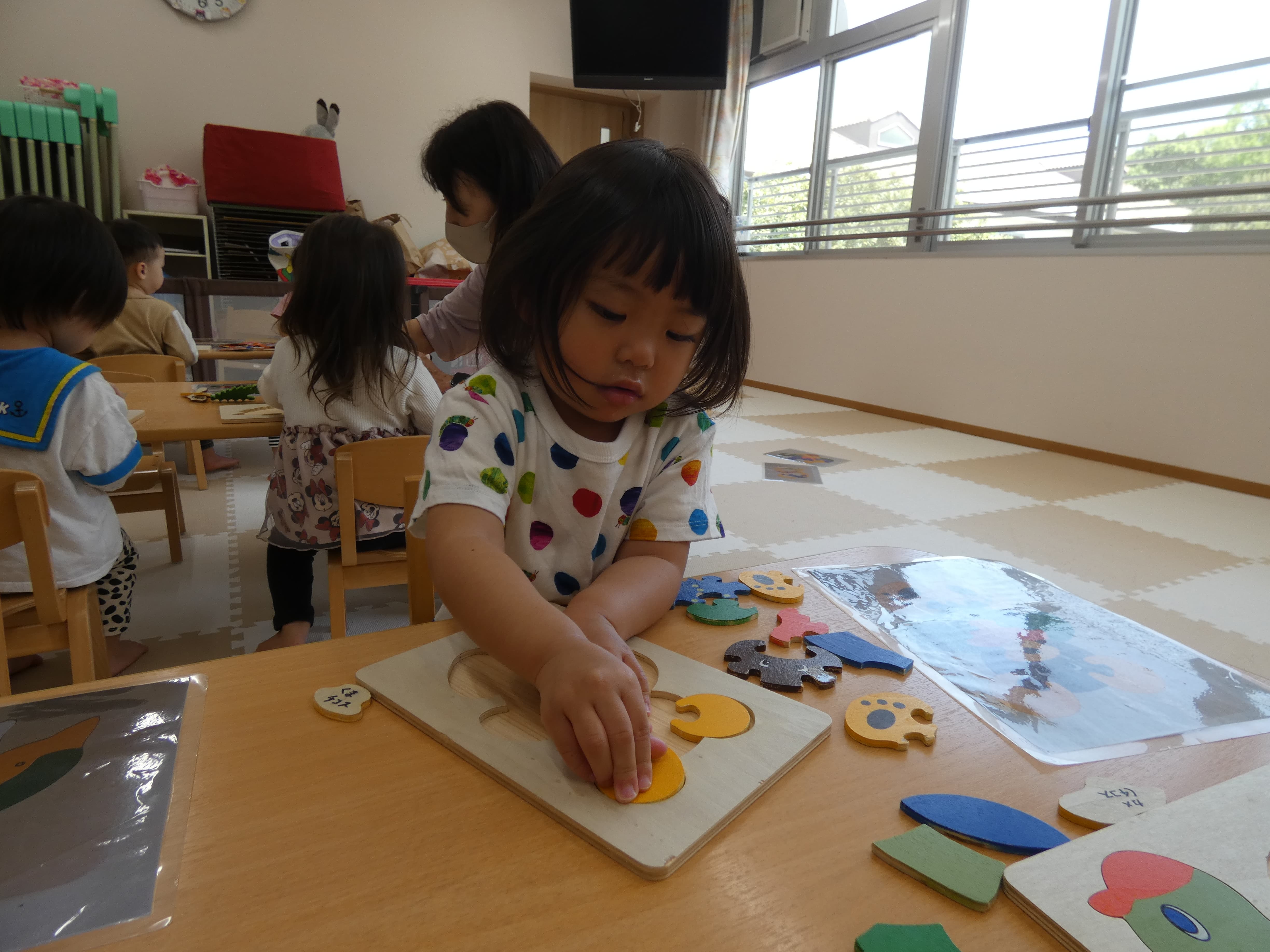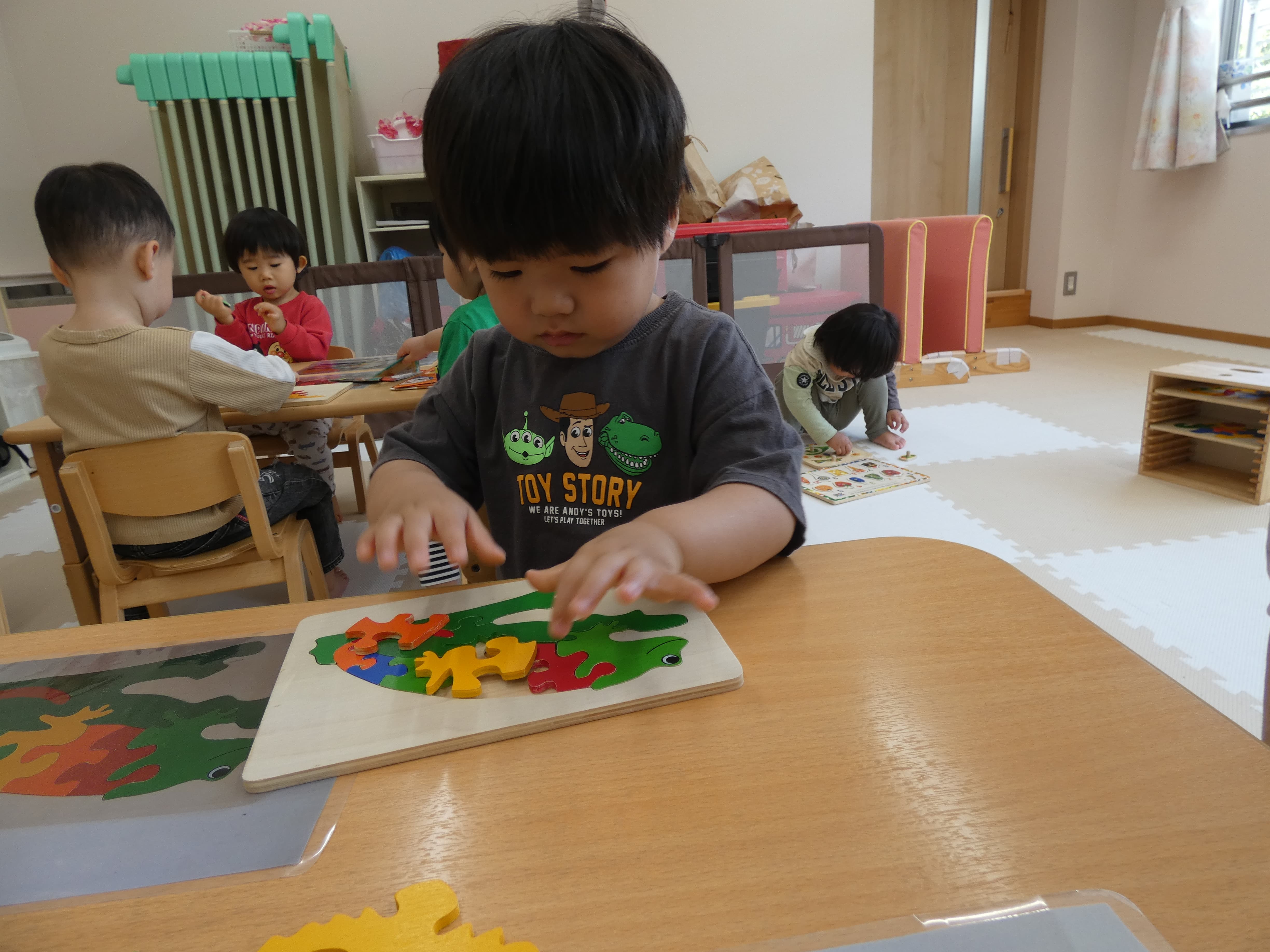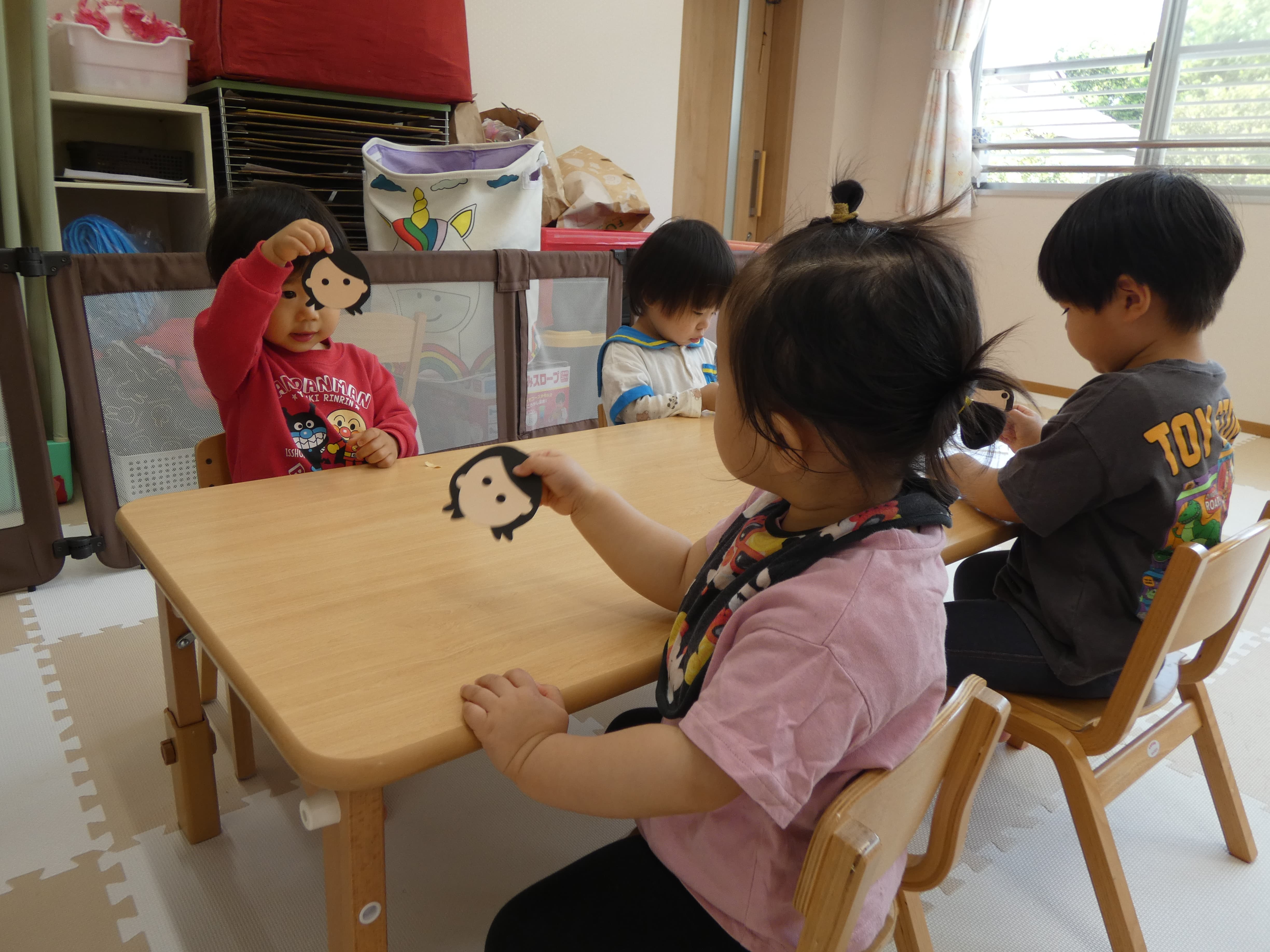 お誕生会が終わった後お部屋で活動をしたそら組さんの様子です。