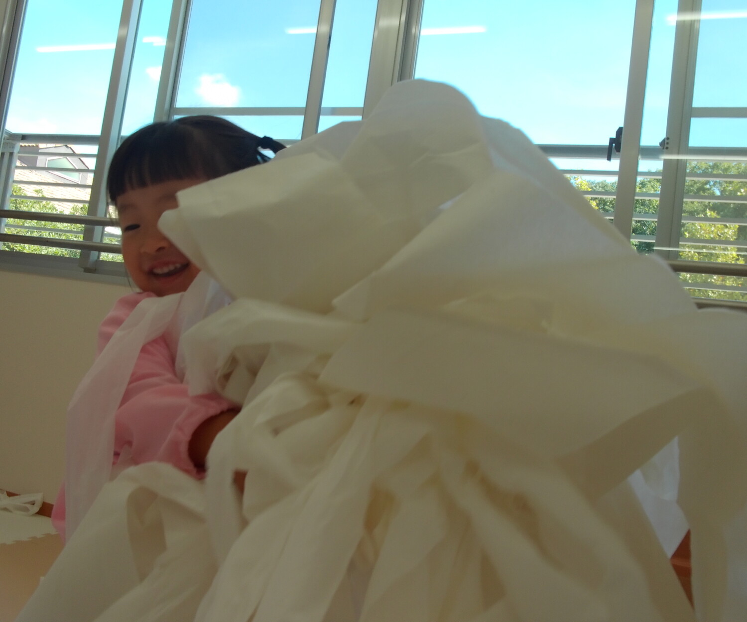 美木多チコスブログ 21 8月 2025 お部屋で思いっきり遊んだよ(つき組) つき組さんも敬老の日の参観に向けて、ふれあい遊びやプレゼント作りを頑張っています。その後は、風船や大きな布を使ってたくさん遊びました。 美木多 幼稚園