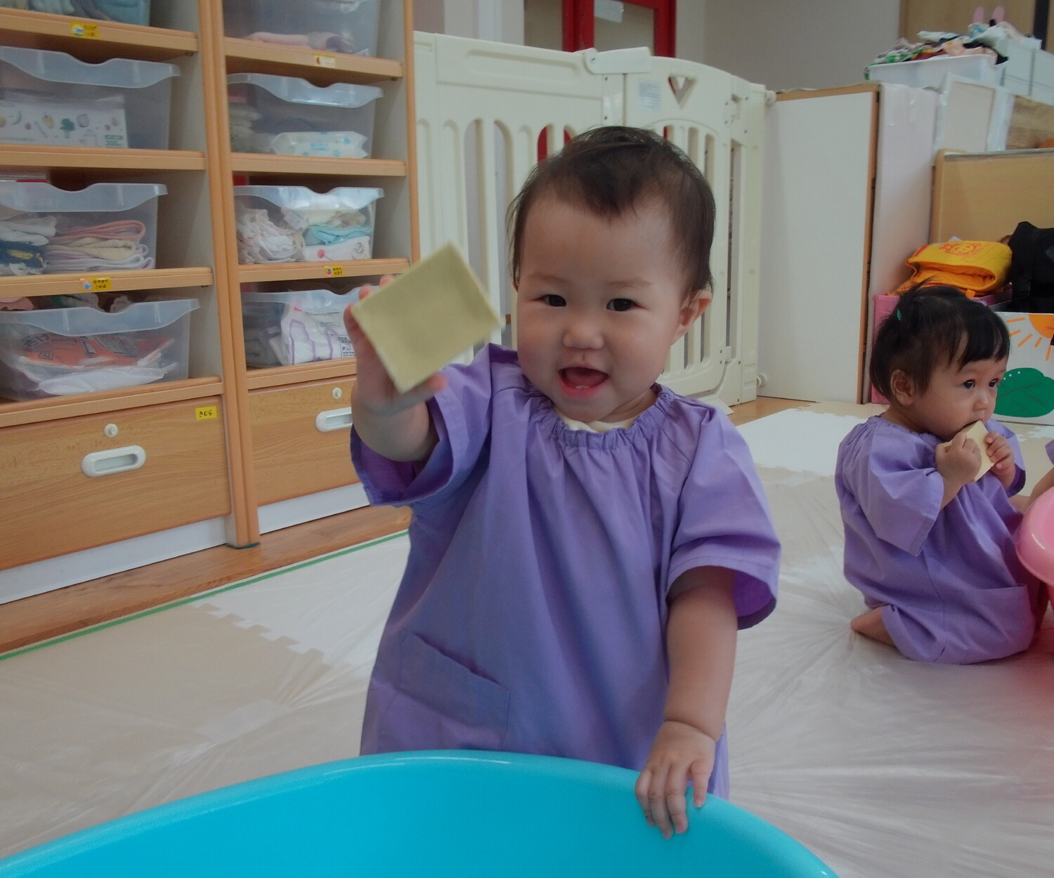 美木多チコスブログ 11 9月 2025 ほし組は高野豆腐で感触遊び 高野豆腐を使った感触遊びをしました。水ひたすと柔らかく、おしていくとぐうっとちいさくなっていきます。不思議な感触を飽きずに楽しみました。 美木多 幼稚園