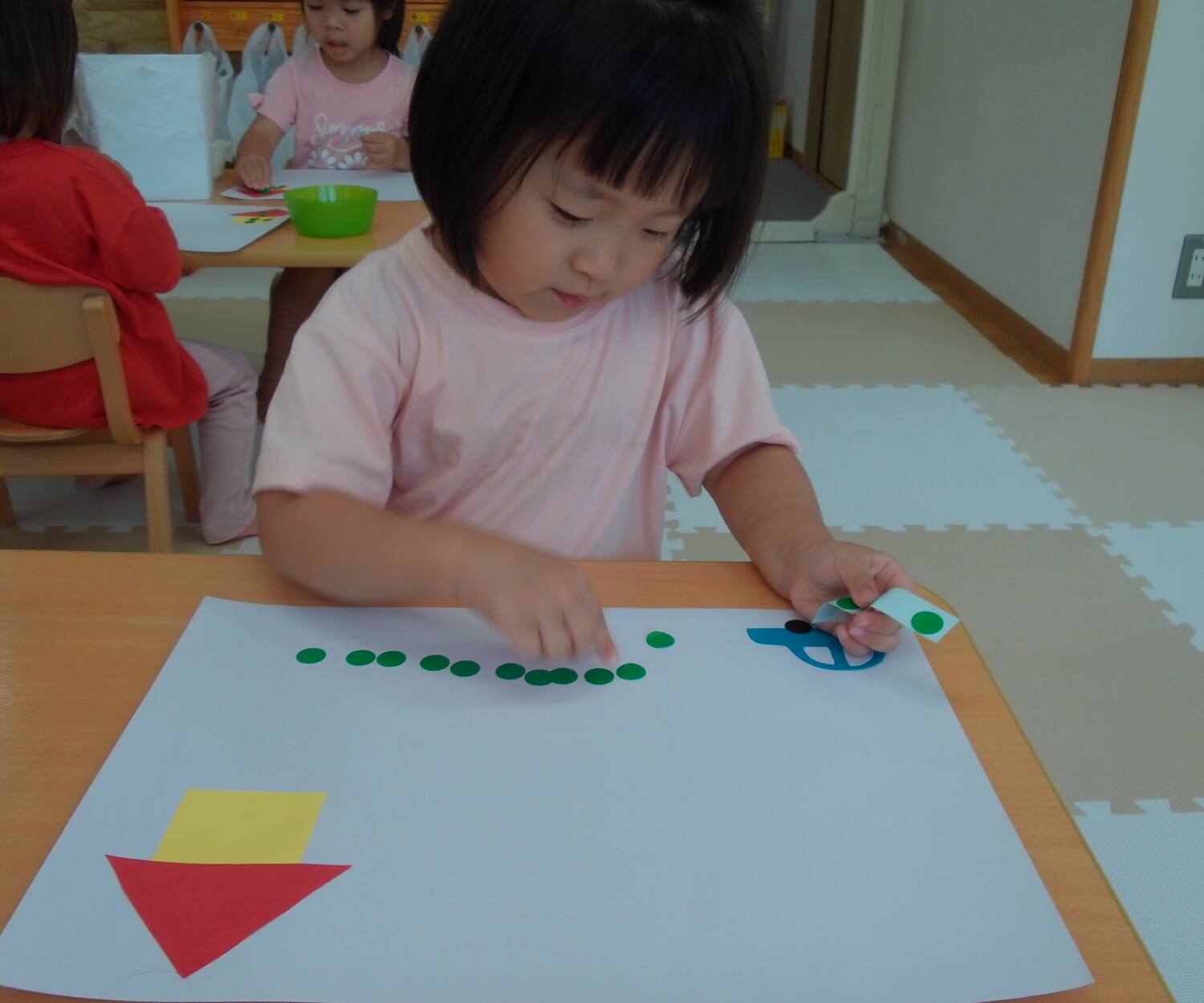 美木多チコスブログ 20 6月 2025 シールぺったん(つき組) 指先を使うシール貼りにも少しずつ慣れてきたつき組さんです。 たくさんのシールを貼ることができるようになってきました。シールの貼り方にも個性がありますね。 … 美木多 幼稚園