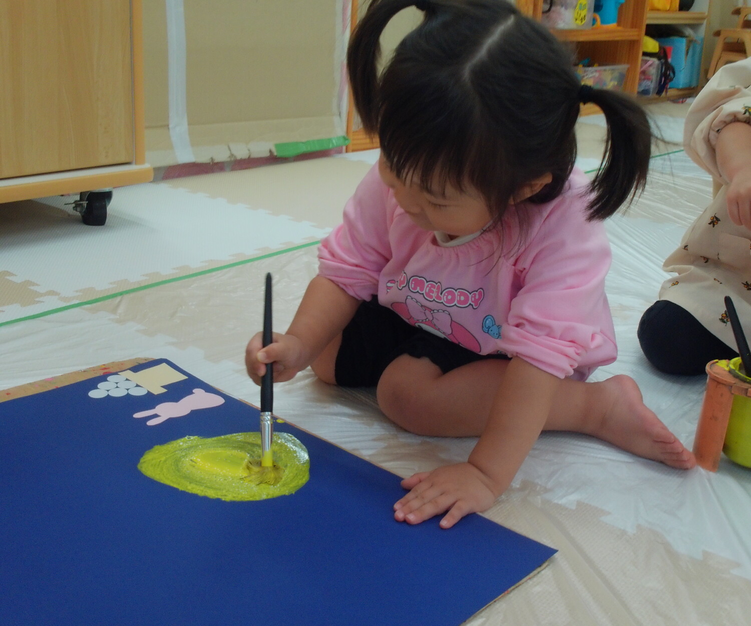 美木多チコスブログ 10 11月 2025 ゆったりとすごしたつき組さん 舟井先生の絵画指導のため、そら組さんと合同保育の時間がありました。広いお部屋だからへっちゃらです。ゆったりとすごしました。 美木多 幼稚園