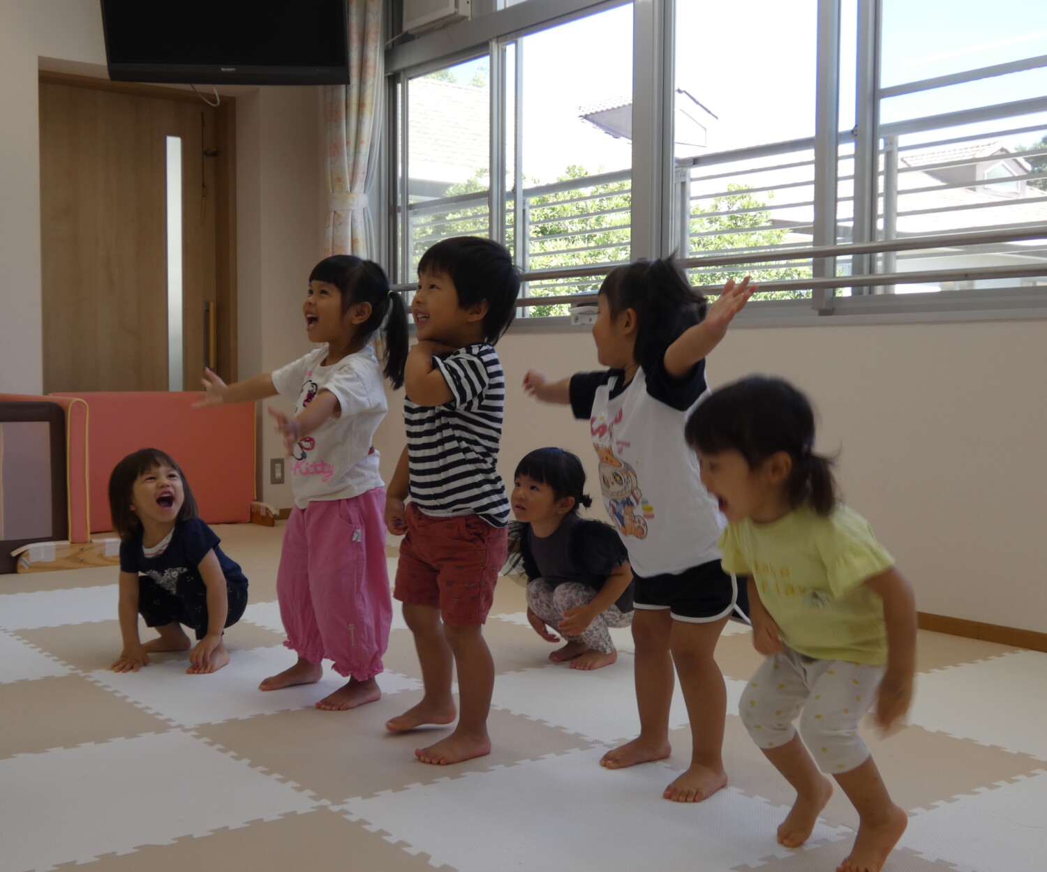 美木多チコスブログ 21 8月 2025 広い部屋で練習(そらぐみ) 敬老の日の参観で広い保育室を使うので、今日は広いお部屋でふれあい遊びの練習をしました。みんな広いお部屋を存分に使ってふれあい遊びを楽しみましたよ。 美木多 幼稚園