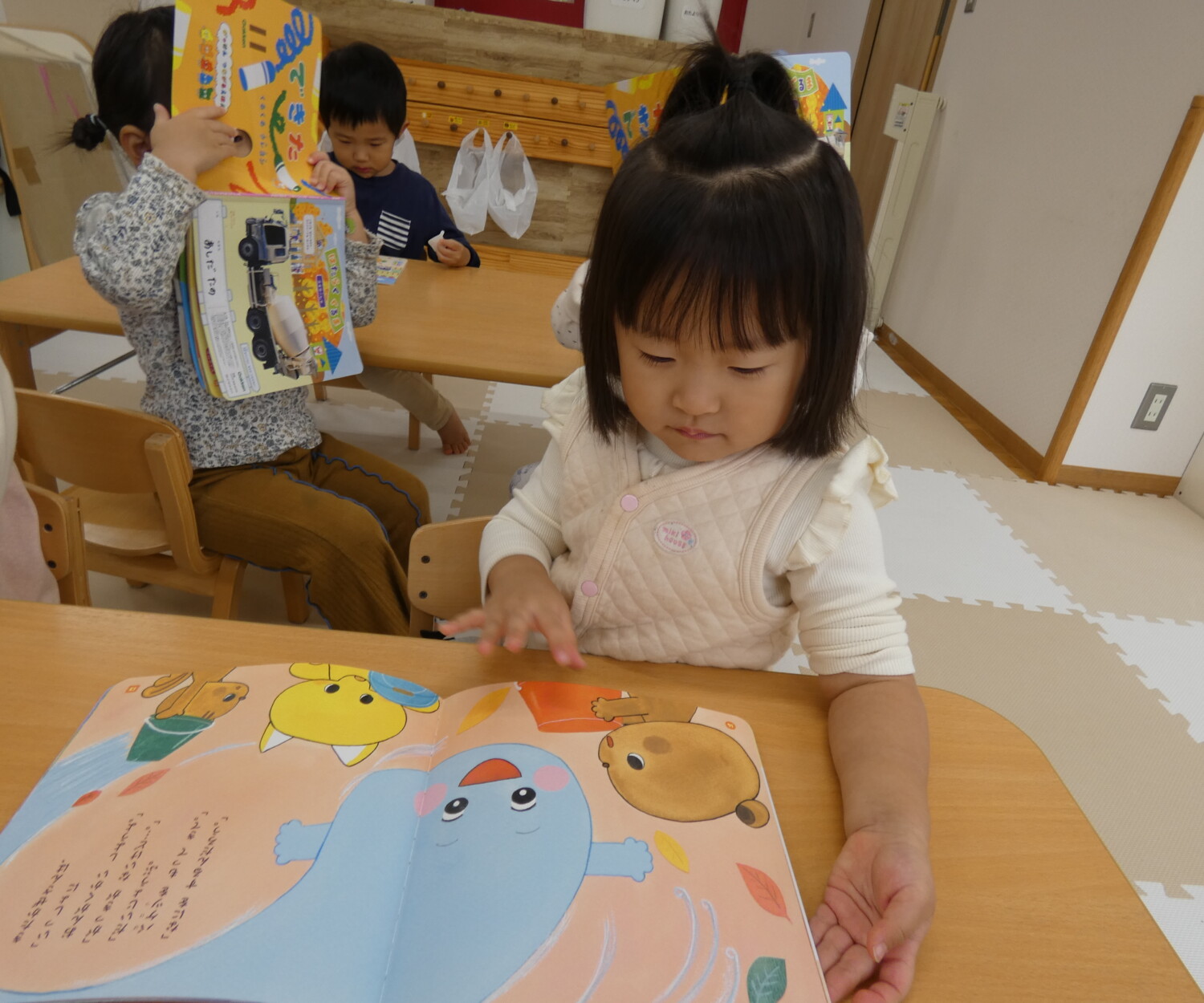 美木多チコスブログ 06 11月 2025 絵本をみたよ(そら組) 月に一度配布される絵本を見ました。シールも貼れて、ワクワクな気分になる絵本です。その後は作品展に出品する制作物をみんなで作りました。 美木多 幼稚園