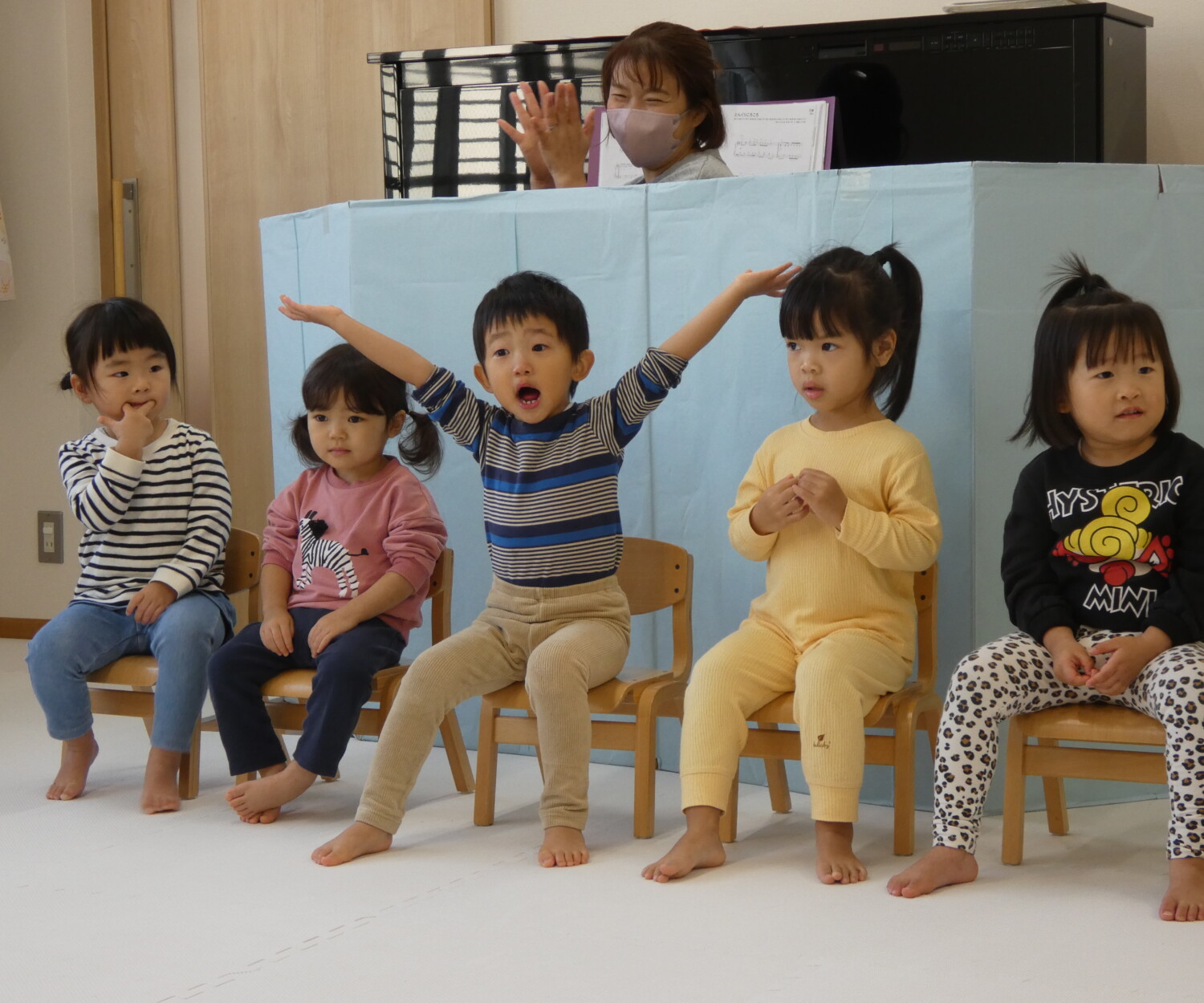 美木多チコスブログ 06 11月 2025 リズムにのって(つき組) つき組のお部屋がとても賑やかな時間がありました。そっと見に行くと、みんなでリズムに乗って楽しく体操をしていました。みんないいお顔です。 美木多 幼稚園