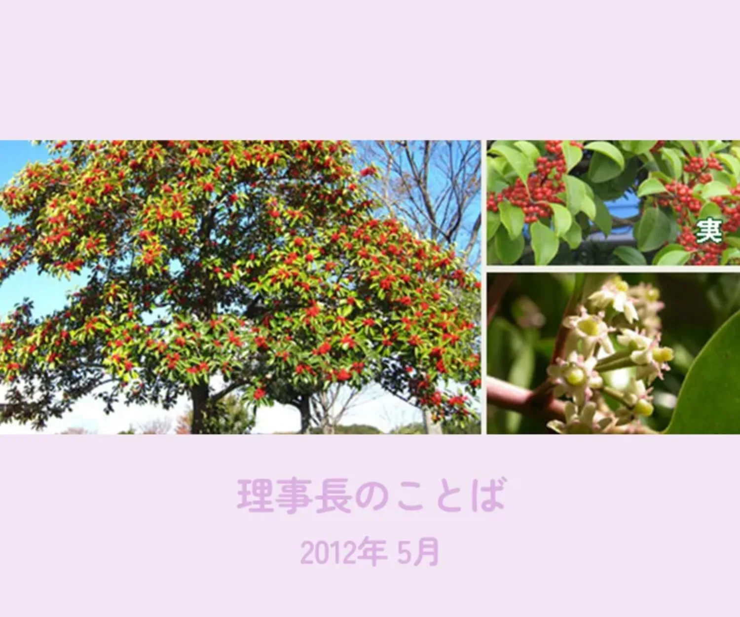 青い実が年を越えると急速に真っ赤に色づくクロガネモチ(略称モチの木)、関西以西の地で庭の主木や街路樹として広く一般に植えられている。その赤い実をめがけてヒヨドリが押し寄せ、一瞬のうちに実がなくなり、新芽の出る準備をする。因みにこの木は鳥が来る、鳥が入る、なまってトリイル、そこから派生して物が入る、財が増えるということで縁起の良い木とされている。それが今年は何かおかしい。葉をすべて落としたモチの木は赤い実がそのまま残り満開の状態だ。ヒヨドリが来ない。いつもピーピーと鳴いていた大柄のその鳥が一向に姿を見せない。素人なりに考えることがあった。赤い実を食べるヒヨドリの天敵はカラス、そしてカラスの天敵のトンビはほとんど消えてしまった。今やカラスは傍若無人、昨年は家に来ていたツバメの巣も壊し、中の卵も食べてしまった。カラスに個人的な恨みや憎しみはないが、自然の輪廻の輪を壊されるのは残念で仕方がない。この小鳥たちの小さな変化がこれからの大きな変化につながっていく。昔から続いてきた様々な連鎖の世界を壊したのも、この小鳥の世界での出来事と同じ、環境の変化や公害を生み出した人間だろうか。今原子力発電の再稼働が大きな焦点となって人々の話題になっている。10年以上も前にこの園便りで人に聞いたことを少し書いたことがあった。それは当時電力会社と密接に関係のあった大企業の幹部社員で私の高校時代の同級生が言った言葉「原子力に限らず全てのことで、人間のすることに絶対安全はない。人間は誤りを犯すものだ。」ということであった。又当時原子力発電所には電力会社の正規の職員がほとんど常駐せず、大部分は下請け企業の社員であるとも言った。現在のことは知らない。今は安全、安心であるかもわからない、しかし20年、30年以上生まれ故郷へ帰ることができない人々の心情や放射能の子どもに与える影響の恐ろしさを思うと何とも言えない気持ちにさせられる。反対に今はそんな心情を持たれるとしても、時がたてば、原発バブルとか、補償成金といった色目でみられたり、揶揄されたりするかもしれない。原発に賛成、反対であれ、あとからやってくる子孫や次世代の人たちに賢明な結論であったと言われるようにしなければいけない。戦争を持ち出すのは気が引けるが先祖の人々はある意味無謀な戦いに挑み、300万人以上の同朋が生命を落とした。しかしその後艱難辛苦に耐え、世界に尊敬される国になった。日本人は耐えることもできるし、新しいことにも挑戦できる優秀な民族、一時的な迷いがあっても長い目で見れば良い方向に進むことができる人たちだと思う。あとからくる子孫に拍手喝采され、喜ばれる決断をしていかなければいけない。幼稚園の小さな幼子たちを見るにつけ、その思いは募ってくる。この子供たちは立派に大人に成長し、命の終わりが来るまで人生をしっかり享受することを願ってやまない。「うさぎ追いしかの山、こぶな釣りしかの川・・・・」昔の童謡が頭から離れない。昔熊取町に住んでいた女性の先生がいた。ある時、熊取町の原子炉のことが話題になった。そのときそれまで黙っていた女性は急に立ち上がり、「私たちは身近に原子炉があることを忘れよう、忘れようと思って過ごしている。それを今更思い出させるような話には強い怒りを感じる。」と言った。原子力は安全、安心と宣言されたが事故のない時にも近くに住んでいる人々の心境は複雑だった。原子力発電所はなぜ電力消費地から遠く離れた電気を送るにも効率の悪い地域に立地しているのだろうか。職住近接ではないが、発電職住近接ではないのだろうか。安全地帯に身を置いて是非を判断するのは少しエゴイズムでないのだろうか。その女性は強く私たちに問いかけた。今、赤やピンク、白のハナミズキが満開、人通りの多い地に咲いた花はその美しさを大いに称賛されるが、人の目に触れない場所でもその存在を誇示するかのように艶やかさを見せている。時には人の評価に左右されずに自分の意見を主張する大切さを暗示しているのかも。