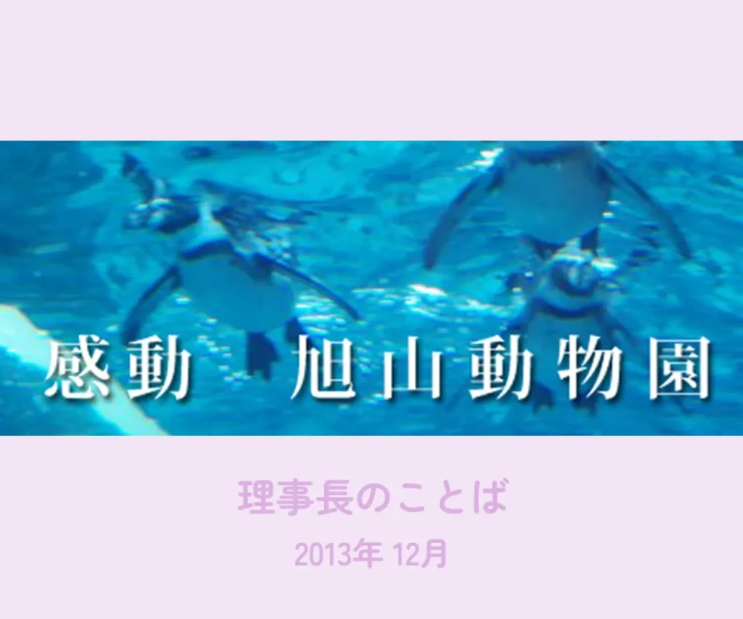 動物園と聞いたらどういうイメージを思い浮かべるだろうか。まず天王寺動物園、この頃は大分きれいになったが、いかんせん敷地が狭いためにごちゃごちゃした感じ、あるいはアフリカを少し真似した各地のサファリパーク、それらが私たちの頭の中に固定化された動物園の姿、そこでは動物が見世物であることが強調され、本来の姿をあまり見ることはできない。旭川市の中心から少し外れた郊外にそれがあった。小高い丘すべてが動物園であり、今までのイメージと全くかけ離れた公園の中の動物園、樹木に囲まれた動物たちの緑のオアシスであった。ここには人をそれで呼び集めるような「珍しい動物」はいません。普通の動物たちの素晴らしさを伝えることに主眼を置いているそうです。さらに言えば、動物の価値に差があるような見せ方をしていないし、「ありのまま」の素晴らしさを感じ、価値を見つけ、「自然の大切さ、命の温もり、命の尊さ」を気づいてもらいたいと考えている。10年前に廃園の危機に会った動物園がいかによみがえったか、そして年間20万人しか来なかった動物園に同じ顔ぶれで300万人の来場者(単純計算で1日8000人強、1日何万人の来園者もあるとか。北海道の人口36万の旭川市ということを考えればこれは驚異的)を迎えるようになったか。そしてリピータも多い。私は危機に際して職員一丸となって、動物園の原点に立ち返り、動物たちの凄さと命の輝きを多くの人に伝えることをテーマに動物本来の能力を引き出し、ありのままの営みを見られるように工夫した事等、様々な創意工夫した事に尽きるのではと思っています。1時間30分にわたって坂東元旭山動物園長の話を聞きました。その中で聞いたことを少し書いてみます。ある時見学者が「なんやラッコやない、ただのアザラシやないか」と言われて本当に悔しかった。そしたらただのアザラシがラッコよりもすごいところ、本来の姿を見せてやろうやないかと考えて人を水の中のトンネルに導き、また太い透明の円柱の中をアザラシが元気よく泳ぐ姿を見せて大好評になった。動物の命を預かっているのだからこっちの動物がすごい、あっちの動物がたいしたことはないという意識が持てない。みんな同じという考え、珍しいものを入れてお客さんに来てもらうことはしない。私たちは生かされている。死の順番を待っている。動物たちも私たち同様生きたいと思っている。動物たちは与えられた環境の中で生きている、たんたんと生きている。たとえ狭い檻の中であってもオオカミはオオカミらしく発揮させてあげたい。動物園では動物が生まれたのはニュースであるが、死はタブーであるのはおかしい。命を閉じ込めているのだから死にましたという知らせをするべきで、死を認め、心の中で生き続けるようにしたい。死は日常の中にあり、動物たちも命を次世代に伝えることを本能的に行っている。誕生するだけ死があり、命を終わらせてくれる仕組みの中で命があふれているのが自然である。次の世代にバトンタッチするために動物は生まれてくる。私たちはそれぞれの種として一生送れる環境を整えてあげることが大事であり、ありのままが一番美しいと考えている。広い野生の地の動物が狭い場所で生活するのは動物の虐待と批判されることに対して、動物の居場所が次の世代に暮らす場所でないと繁殖しない。動物園で生まれ、育ったものがすぐに野生に返しても無理でないか。実際のところ、動物園の動物の80%以上が動物園(その動物園に限らないが)で生まれた動物で野生とは言えず、野生にいるから幸せとは限らない。初めての旭山動物園であったが感動があり、また来たいと思わせるような何かがある動物園でした。 2013年、平成25年もいよいよ最終月、うれしいこと、悲しいこと、思い通りにいかなかったこと、いろいろあったでしょう。しかしけじめをつけて新鮮な気持ちで新しい年を迎えましょう。この1年間保護者の皆様には貴重なご意見、多大なご協力本当にありがとうございました。来る年も皆様方にとって幸多き年になりますよう心よりご祈念申し上げますと同時に21世紀を支える尊い人の育成に手を携えて一緒に進んでまいりましょう。最後になりましたが来年度も本年同様よろしくお願い申し上げます。