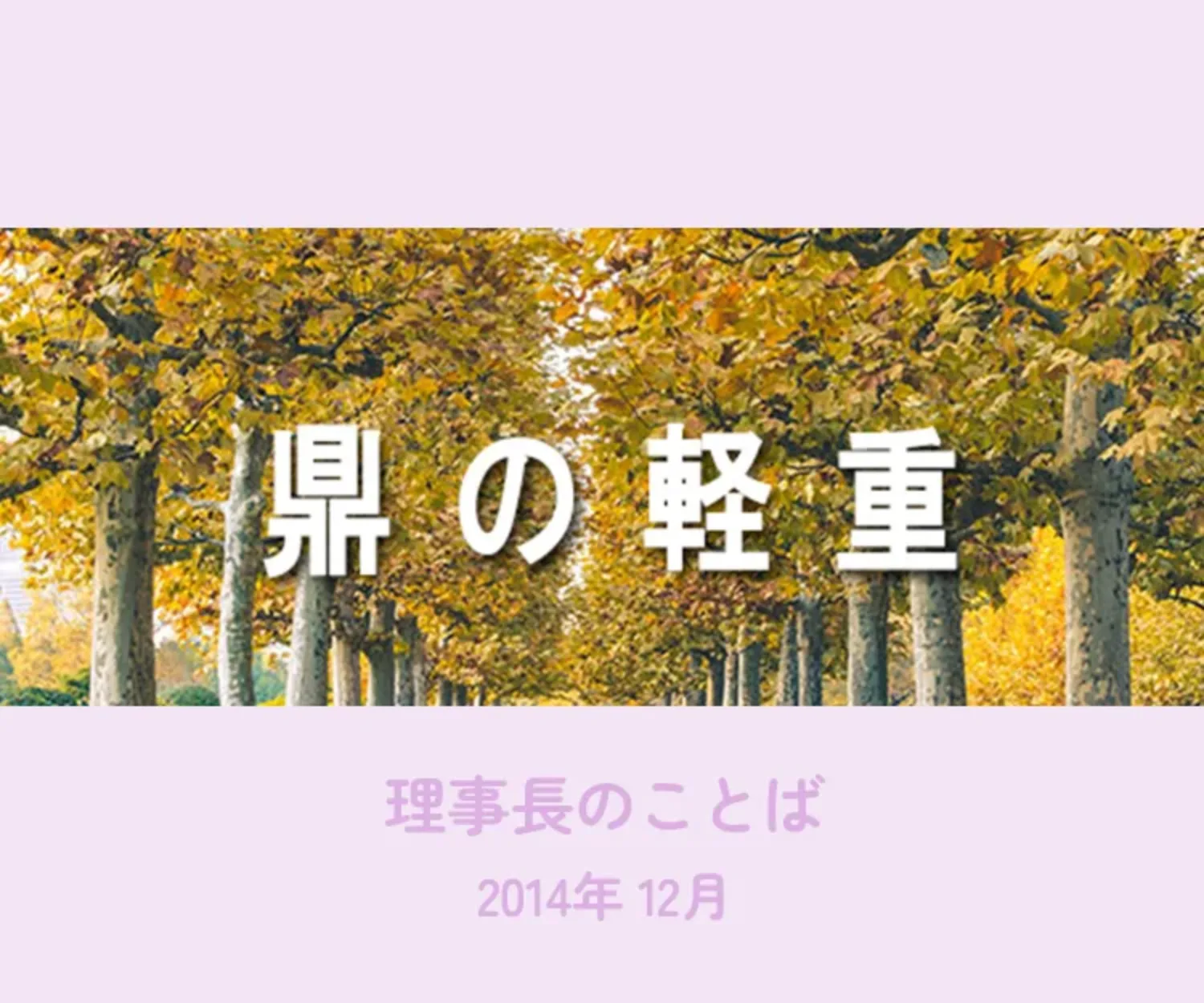 「旅に病んで、夢は枯野をかけめぐる」(芭蕉)「枯葉が落ちねば次の花は咲かん」 荒涼たる原野、厳しくたたきつけるような吹雪、この世の終末とも思えるような原風景が織りなす様々な心の葛藤と寂寞とした気持ち、芭蕉の時代は私たちが想像するよりももっと激しい自然の洗礼を受けていたことでしょう。樹木が余計な装飾をかなぐり捨て、身軽になって厳しい冬の準備を整い始めました。人は反対に科学の粋を集めた温かい化学繊維によって身を守る工夫です。長年続けられた自然界の厳しさとそれに対峙する人間界の知恵とのいわば小さな戦いです。戦いは別として、人はこの瞬間においても必ず何らかの判断、決断に迫られている。何もそれは人生をあるいは国の在り方を決めるような大きな決断でなくとも、朝起きて今食事をするか、会社へ行く途中で食べるか、今人にそのことを話すべきか、後の方がよいか、あの人に贈り物をすべきか否か、お葬式に行くべきか否か、数えきれないほどの判断の必要性に迫られ、その人なりの規範に従って結論付けていく。善悪の判断にしても、自分の考え、性格、育った環境、受けた教育に従って答えを出している。しかしそれが他の多数の人の判断基準から外れていると「常識のない人だ」「変わった奴だ」とか言われて世間から隔離されることもある。私たちはたとえ大多数にそぐわない意見を持っていたとしても、人に嫌われるのを恐れて自分の意見を封印しがちだ。それが鼎の軽重を問われることになっても。人が生活していくうえで、善悪の判断が非常に難しいことがある。正か否か、しかない2極で判断すれば案外簡単であり何も悩む必要がない。しかしそれでは日常生活が立ち行かなくなり、生活も無味乾燥で、成長、発展への意欲も潰えたものになり、ただ与えられた枠の中で決められた活動しかできないことにもなりかねない。たとえば他人の土地に一歩足を踏み入れるだけで、スピードを1kmオーバーするだけで、罪を問われたら、私たちはどうなるのだろうか。グレーゾーンがあるから私たちはそれなりに社会生活を送ることができるし楽しむこともできる。しかしどこまでがグレーゾーンであるのかの基準はそれを取り締まる人の恣意的な判断やさじ加減になるのは憂慮すべきことかもしれないが絶対的な規範がない以上、それもありうるのだろう。ある人にとっては法律の中には遵守できないような条項もあるかもしれないが法治国家としての法律である以上守らねばならない義務がある。世間一般の常識とかけ離れてそれが存在する場合は、その法律の正当性が問われ、はっきりと善悪を決めることができるかは難しいところだ。所詮判断は人が決めるものであり、地域性や裁く人の人間性によっても大いに左右されることがある。日本人の常識が世界の常識であるようなユニバーサルスタンダード的なものがあれば、人は快適に世界中と交易をし、旅をし、談笑することができる。現実は180度異なる国がある。政体も違い、主義主張も歴史も異なり、生活水準も違う。Aの国で良いことがBの国では全く逆で、Cの国では重い罪に問われかねない。国体を変える為に示威行為をする人もおれば、天国に行くことができると言って戦いで命を落とす人もいる。特攻隊を作った日本にとっては他人事でない話。アフリカの常識が、イスラムの常識が、ユダヤの常識が、欧米の常識が、中国や韓国の常識がそれぞれ異なっている。通信や交通手段のますますの発展により問題はより身近なものになり、複雑になっている。それぞれの常識や判断基準を一方的に正しいと言って他国に押し付けるのは是とするのだろうか。難しい問題だ。このころテレビや街角で美容整形の広告を見ない日はない。顔や胸に手を加え、体型を整えて、見目麗しい美形に変えていく。女性の永遠のテーマ、しかしその判断基準には絶対的なものがあるのだろうか。蓼食う虫も好き好き、人の嗜好も多様な今、整形医学の進歩には脱帽するとしても、それに踊らされている面もあるのかもしれないが、美を追い求める欲求は男女ともに永遠に続く不変の思いだろう。残念なことにいくら整形しても、子ども達の天真爛漫とした美しさにはかなわない。人それぞれ判断基準が異なるから人生が面白い。判断基準という広い道、端を通ろうが真ん中を通ろうが道を踏み外さなければ構わない。子ども達には正々堂々と21世紀を生き抜いてほしい。幼子たちへの願いは大きい。来月は平成27年、2015年、皆様方にとって健康に恵まれ、幸多き年でありますよう心よりお祈り申し上げます。この一年のご厚情心より感謝申し上げます。有難うございました。