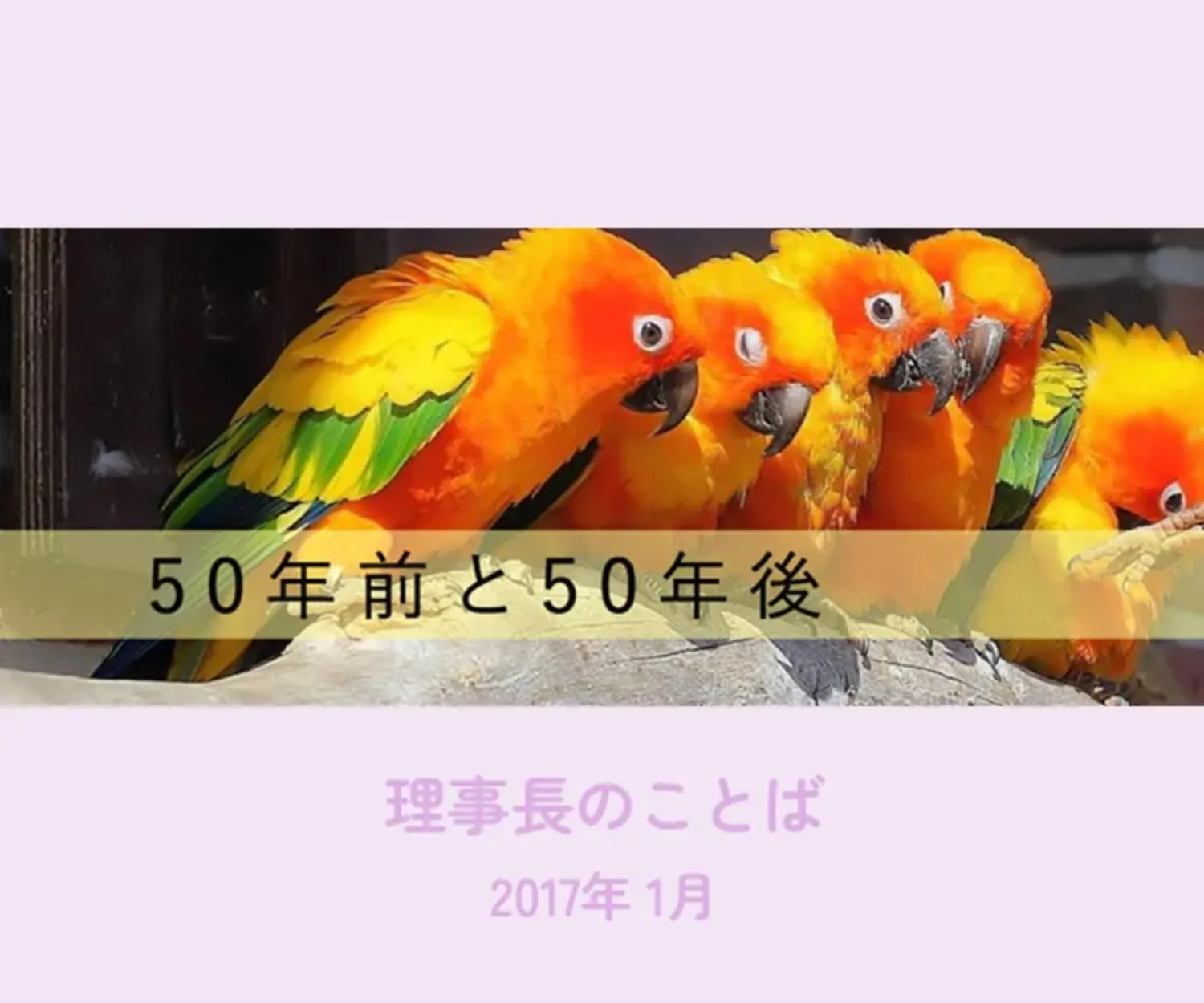 新年明けましておめでとうございます。 新しい年が皆様にとって素晴らしい年になりますよう心よりご祈念申し上げます。 さて、私たちは気の遠くなるような過去から現在に至り、悠久の未来に流れ去っていく。その時間の連続性の瞬間に生かされている。その中で喜怒哀楽を感じ、小さな出来事に無上の喜びやこの上ない悲しみを感じながら運命に身を委ねている。いや私は自分自身の力で自分の道を切り開いているのだから、運命に身を委ねるという言葉は当たらない、と考える人もいるが、所詮、蝸牛角上の争いに過ぎない。そうは言っても、人の平均寿命は80年、その中で過去を慈しみ、現在を享受し、未来に希望を託したい思いは誰もが持つ願い。誠に個人的なことながら今から50年前を思い出し、これからの50年後の予想をしてみるのも満更悪くないかもしれない。それが個人の目を通した偏見と浅はかな知識に基づいた根拠のない意見であっても。 50年前は1967年(昭和42年)、私は大学4年生であった。毎日美木多村(7年前まではそうであったが、このときはすでに堺市と合併していた。臨海工業地帯を作るために美木多村から大量の土を海に運び、その跡に泉北ニュータウンを作るためであった。当時大阪府企業局は花形であった。)を出発して鳳駅まで7kmの道を自転車かバスで往復し、阪和線で天王寺に行った。私にとって町の中心であった鳳はこの頃より少し勢いが弱まっていった。難波に行くときは羽衣に行ってそこから南海本線に乗った。浜寺、諏訪森はお金持ちの住む大邸宅が沢山あったが、まだまだ至る所に畑が点在し、畑に水をくみ上げる風車が回っていた。今考えると信じられない風景であった。しかしそこに住んでいる人々の中には今ほど規制のない工業地帯から押し寄せる公害に憤りを感じて去って行く人もいた。高度成長期であり、少し前の中国と同じように健康と関連した公害問題に真剣に向き合うことはなかった。 50年後、2067年(平成79年)、堺はどうなっているのであろう。先日、お葬式に行ったときに「火葬場がいっぱいで2、3日待たされた」と言っていた。生まれる人より亡くなる人が遙かに多い。50年後には、今の20歳代後半の人が寿命を迎える。その時もまだまだ人口が減り続けているだろう。泉北ニュータウンは今でも超高齢社会になっているのに加え、人口減に歯止めがかからず至る所が虫食い状態になって家々が存在しているであろう。あるいは、日本に移住してきた人々が大きなソサエティを作っているかもしれない。昔の単一民族が特徴だった日本人はその面影をすっかりなくしているであろう。細い道、曲がりくねった道の多い鳳や諏訪森は逆に都市計画が進み、スッキリした街並になっているかもしれない。道路が整備され、採算の合わない鉄道は廃止されているかもしれない。車も全てが自動運転に変わり、電気自動車だけになるだろう。その中で、大容量のバッテリーを積んでいることや、大きなトルクのモーターを備えているなどが話題になるだろう。 教育の世界はどうだろうか。50年前、大学進学率は10%以下であった。今では大学に行かない人を探すのが難しいくらいだ。50年後、いま不足している保育園は定員が充足することはなく、24時間保育や病児保育も当たり前になっているだろう。幼稚園もその制度が残ればの話だが、多くは認定こども園に変わり、保育所機能を備えた施設となっているが、一部は幼稚園の矜恃を保ったまま独自の教育理念をもって幼稚園として生き残っているだろう。公立の小学校や中学校は廃校や統合がすすみ、建前ではなく本音の教育方針が徐々に示されているだろう。公私を含め、高校は取捨選択され、生き残り競争に突入している。大学は今の数多くのエセ留学生が減少し、経営が厳しくなり今ある大学の半分以上が淘汰されているかもしれない。そして受験生も自分の資格・能力を磨くことに努力し、高度な専門学校が伸びるだろう。また、超高速旅客機の出現により、一週間ごとに講義を受ける国や言語を変えることが出来、国境を超えた単位の取得が可能になっている。バイリンガル以上の言語を話す人が活躍し、言葉が不得手な人も一瞬のうちに自動翻訳機で意思の疎通ができるようになっている。現金やカードを持ち歩くことがなくなり、その人の指や目で認証されている。また、宇宙から地球を眺める宇宙旅行がツアーの目玉となり、地球一周が短時間となっていく。その一方で地球温暖化が加速され、生物の淘汰が進み、私たちが住みにくい地球になっているかもしれない。まだまだ50年先、これからの私たちの努力で良いようにも悪いようにも舵を切ることができる。時間のあまり残されていない私たちにとっては「こんな地球に誰がした」と非難されることのないように、美しい地球を作り出していく使命をもっともっと自覚していきたい。同時に仕事を発展・拡大させていくことも大事だが、過去から守り続けられ