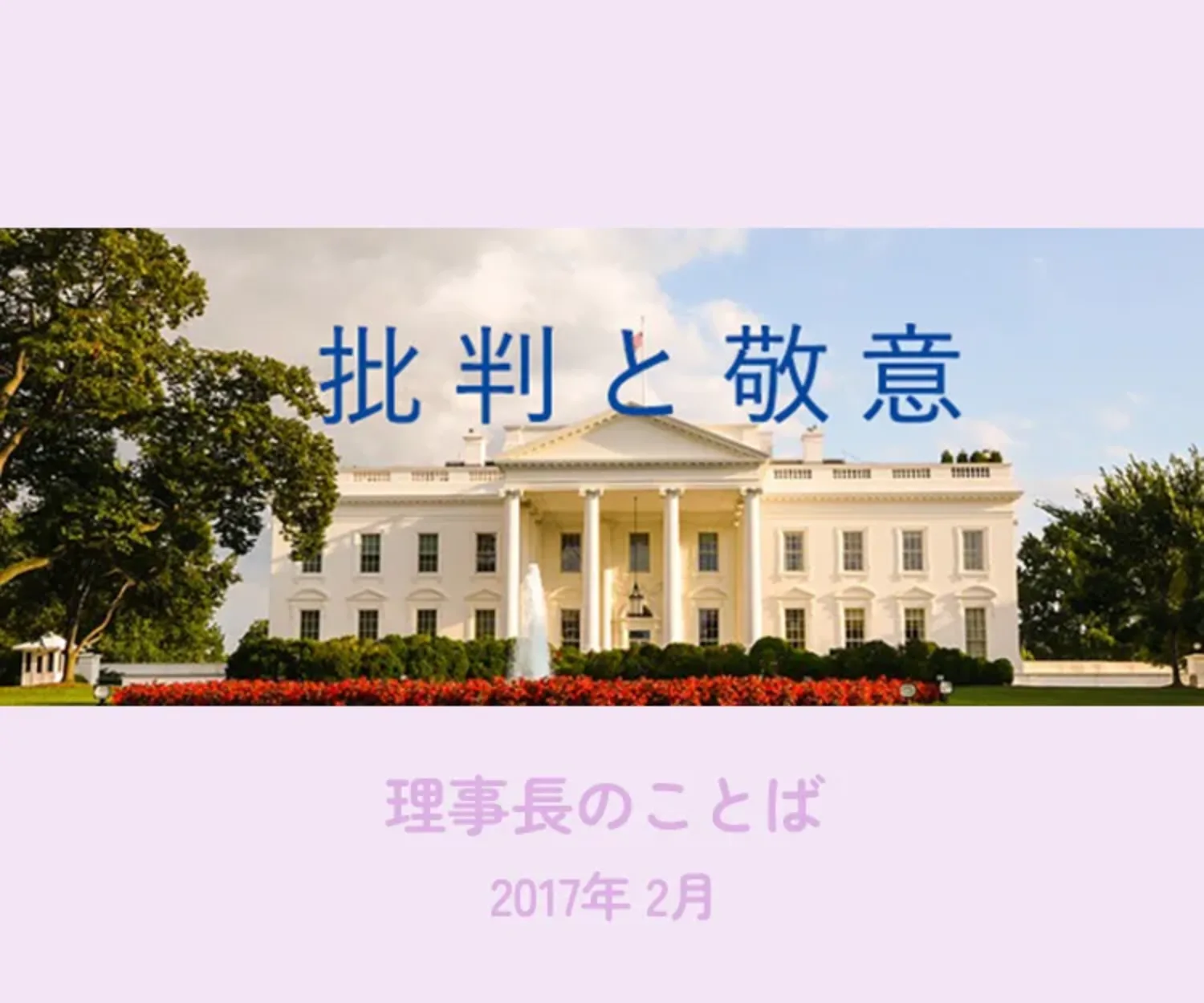 流れが変わった。2017年1月20日、不動産王と言われているドナルド・トランプ氏が第45代アメリカ合衆国大統領に就任した。「America first」を中心テーマにこれからどのような政治をしていくのか興味深い。12月下旬、ニューヨークに行った時、市内ツアーに参加した。日本語のガイド付きで、その女性は日本人で、現地に20年余り住んでいた。彼女は市内案内をしている間、少しでも時間があるとトランプ氏の悪口を言った。お金を払って市内案内をお願いしていた。トランプ氏の悪口を聞くためにお金を払っているのではなかった。たまりかねて「トランプ氏の悪口を言うことをやめてほしい。そのためにお金を払っているのではないのだから」と言った。実際ニューヨークに限らず大きな都会では反トランプが多い。民主的に選ばれた大統領が嫌いだからと言って何でもやっていいわけでないし、マスコミも芸能人も少し冷静になるべきだと思うのだが。私はトランプ氏について何も知識を持ち合わせていない。それどころか昔活躍した過去の人というイメージであった。しかし不動産王として成功をおさめたのであれば、普通の人以上に才能と才覚があるのだろう。実際就任演説を聞いても、オバマ氏の謙虚で建前の多い話とは対称的に率直で遠慮なく本音で語っている。政治の世界で弁護士や教育者が多い中、ビジネスマンが辣腕をふるって活躍するのも案外いいのかもしれない。それに強力なユダヤ人の勢力が控えているのも大きな強みだ。兎に角、就任後数か月すれば、反対派の人が心配するような事になるのか、あるいは「案外やるのでは」と評価に変わるのか興味津々だ。トランプ氏にとって最初の支持率が40%なのだから。それより下がる心配はいらないし、むしろどこまで伸ばせるかであろう。考えによっては気楽で余裕のある大統領であるのかも。政治の世界では前例にとらわれ、保身ばかりを考えて政党を渡り歩く政治屋の皆様を見ていると、本音でずばずばいう人が新鮮に見えてくる。日本のマスコミがこぞってトランプ大統領をよく言わないどころか批判的に記述している場合が多い。成程トランプ氏の仕事はカジノを含め、あまり尊敬をもって見られるものでないかもしれない。その上何回も失敗したとか、何度も倒産したとか言われているが、そこから這いあがり、立ち直ってきた。ひとつが失敗しても他がうまくいく。或いはその失敗から回復させるようにいろいろ網を張っていたのだろう。ビジネスはいつもうまくいくとは限らない。その時に備えて今でいうリスクマネジメントがしっかりしていたのだろう。そういう意味でお金にあまり関連付けがないオバマ大統領とは著しく対照的である。何も清廉潔白な人だけがトップに就くべきだという意見に私は与しない。ビジネスの手法を政治の世界に持ち込むのも十分合理性がある。アメリカ軍は日本から出て行けと叫ぶ団体も存在するが、トランプ大統領になって実際に日本から米軍がすべて引き上げたら、ばんざいと叫ぶのだろうか。極東の独りよがりのマスコミが選挙でちゃんと選ばれたひとの国の大統領の正当性を批判し「民主主義の破壊」等と言う。いやしくも民主主義の投票で選ばれたトップを嫌いだからと言って良い記事を書かない。アメリカのメディアがそれを聞いて新聞にそのことを書くと、アメリカの人たちはどんな反応をするだろうか。反対にアメリカのマスコミが日本の政治家について徹底的に批判すると、日本人はどんな気持ちになるだろうか。それにしてもテレビなどのコメンテーターの解説には驚くことが多い。「そんなことは誰でも知っていること」と共通理解していることを臆面もなく得意にしゃべる。視聴者を馬鹿にしているのか、解説者のレベルが低いのか、あるいは余計なことを話さないようにディレクターからくぎを刺されているのか。何か知らないが、公共の貴重な電波の無駄遣いのそしりを免れないという人もいる。トランプ氏の行動や発言はこの小さな島国に住む小さな子どもたちにどんな影響を与えるだろうか。世界貿易が縮小するかもしれないし、自動車を始め輸出に頼る企業は大きな影響を受け、貿易立国の日本は経済的に困った状態になる恐れがある。国の予算が削減され、幼児教育に回ってくるお金も減るかもしれない。しかし命を取られることもないし、力を合わせて努力すれば乗り越えることができる障壁であろう。案外そのほうが日本人の団結力が復活する良い機会になるかもしれない。しかしながら過激な発言が頻発しても短いスパンでは世の中は何も変わることはない。まだ進路の決まっていない多くの受験生、そして10年後には確実に試練を受ける幼子たちにとっては寒い厳しい2月、女神が微笑ますように心より祈っています。
