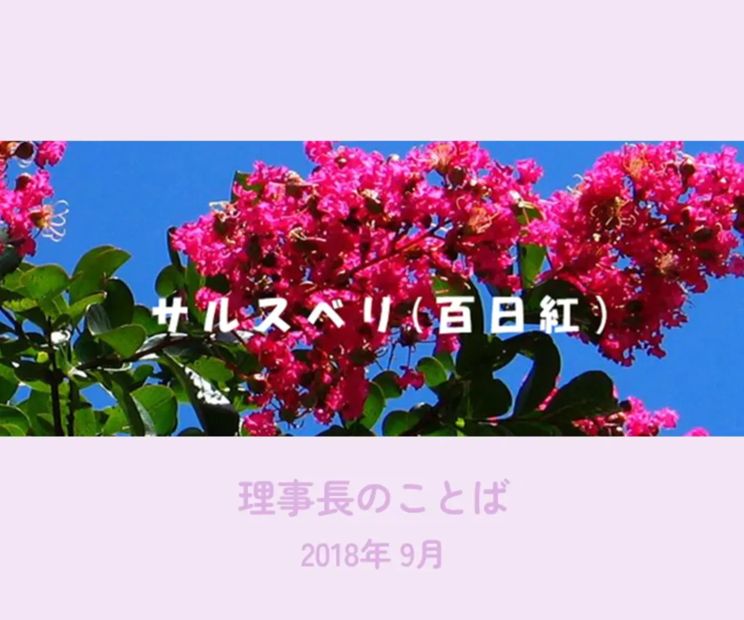 2018年、8月26日、午後3時30分、美木多幼稚園、その門の前でしきりに一人の高齢者が幼稚園や、その周辺を見回している。何事だろう、声をかけようかなと思ったそのとき、カメラを取り出し、狙いを定めて、シャッターを切った。レンズの先に何があるのかと視線を移していくと、正門横に植えている樹齢100年以上の古木のサルスベリ、最後の力を絞るかのように紅色の花を満開に咲かせている。毎日通るがゆえにその変化に気づかなかった。その花の美しさをそのときまで忘れていた。目線が上まで行ってなかったのだろう。せっかくの精一杯のお化粧をしているのを見てやれなかったことで、申し訳ない思いでいっぱいだ。花の絶えることのない幼稚園、今までそのように考え、それなりに実行してきた。春夏秋冬、それぞれの季節にふさわしい花々がある。しかし炎熱の夏に咲く花が少ない。サルスベリはその中にあって、夏に咲く貴重な花、赤、白、紫、紅、で私たちを楽しませてくれる。美木多幼稚園のそれは美原町からで、この木のために門の周りにレンガで大きな植木鉢を作った。鳳幼稚園のそれは大きな株立ちを含めて2本、奈良の宇陀,室生から、諏訪森幼稚園に咲くサルスベリは河南町からそれぞれの幼稚園に運ばれてきた。現地に行って、植木屋さんから譲っていただいたものだ。 2018年8月5日、午前9時、イタリア・ミラノ中央駅、ヴェニス・サンタルチア駅に向かう列車内、大きな旅行用バッグを棚に上げるのを一身に協力してくれた見知らぬイタリア人に気を取られていた。その瞬間、カバンが開いているとの一言、一瞬盗られたと悟った。聞くとその男と女二人の三人組だったらしい。3万円相当のユーロと何枚かのクレジットカード、運転免許証等であった。パスポートは助かった。それにしても何秒かの瞬間であった。今まで何回か海外に行き、私はLAST MAN、決して盗られることはないと思っていた。ヴェニスにつくまでの間、クレジットカードの停止を要請し続けた。その中でVISAカードは親切であった。現金が必要だったらすぐに現地の銀行に送金すると言い、仮のクレジットカードを次の宿泊先に届けるという。その言葉通り、次のフィレンツェのホテルの受付にはUPSの航空便でクレジットカードが届いていた。ヴェニスの現地警察にも行ったが、毎日何人も来るそうだ。10年少し前にロンドンのボンドストリートで財布を落とし、ホテルに帰って気づき、管轄の警察に行くと、「これか」と言って、財布を出された。そのときのうれしさは筆舌しがたい。イタリア人は悪いのは不法移民だと言う。壁に「移民はもう沢山」の落書きがよく見られた。ほんとうはどうなのか?今回時間よりもお金優先でドバイ経由欧州のエミレーツ航空に乗ったが、アラビアの国というイメージを一新、時間の正確さ、機材の新しさ、それに乗務員の対応のよさであった。 幼児教育の無償化 消費税が10%になる事で、幼児教育の無償化が来年10月より実行される。具体的なことは大枠以外何も決まっていない。例えば無償化の金額の中には給食代、光熱水費、行事費等が含まれるのかどうか、預かり保育の場合無償化対象の11300円は働いていない保護者にも適応されるのか。来年度の保育料は今年と同様ですが、10月からは無償化が実現しない場合、4月と同じ保育料、無償化があれば、保育料の変更を行います。幼児教育の世界でも、年々優秀な人材の確保が難しくなり、それに伴い人件費の大幅な上昇になっています。それに設備、教材のよりいっそうの充実を図っていかねばなりません。子どもたちの未来を見据え、41年の経験を踏まえ、一歩一歩前進をしてまいります。 今月もご支援、お力添え宜しくお願い申し上げます。